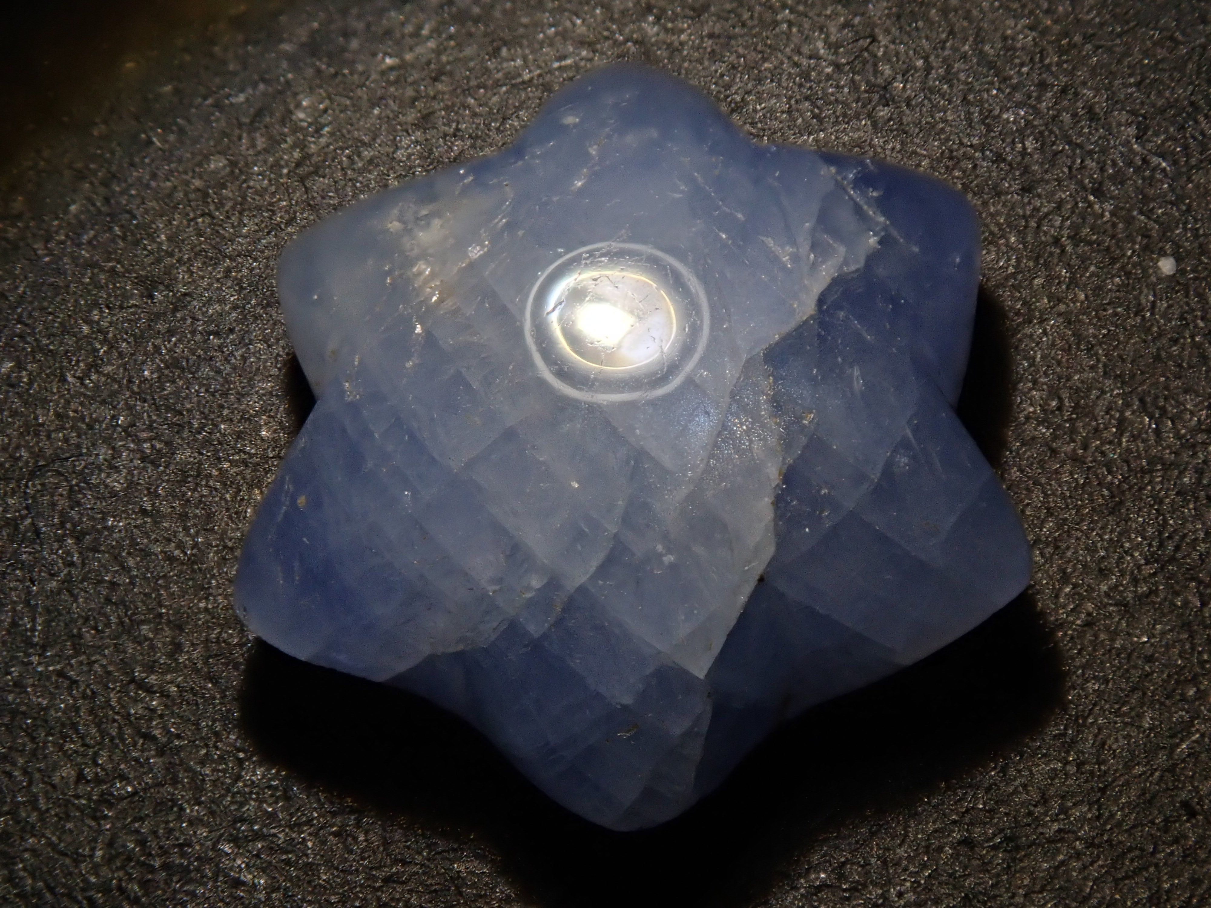 藍寶石是一種著名的寶石。礦物為剛玉,與紅寶石相同,但除紅色以外的所有剛玉稱為藍寶石。這是最正統的藍色藍寶石。藍寶石的硬度為 9,是僅次於鑽石的第二硬寶石,是一種高度堅韌、穩定且易於護理的寶石。星形剪裁,引人注目的尺寸。是藍寶石。