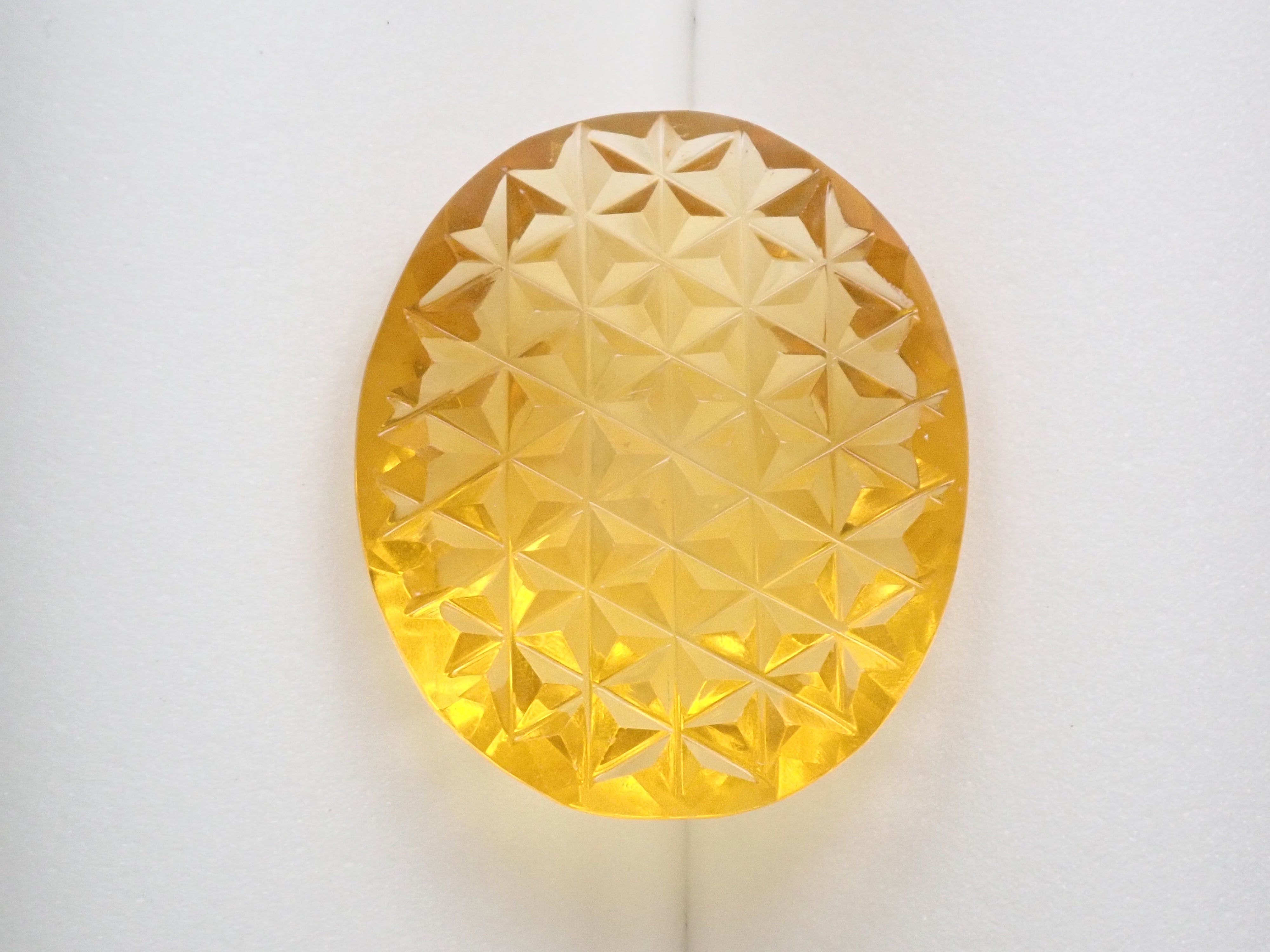 這是 Koshu Takaishi Kiriko (Checker x Light) 的黃色螢石,是 Shimizu Kiseki 和 Yoichi Fukasawa 的合作作品。甲州寶石Kiriko由清水寶石的代表人物清水幸雄和Jewelry Craft Fukasawa的代表人物深澤洋一兩位大師共同創作。清水先生負責刻面,深澤先生負責刻面。包括一個特殊的補丁。