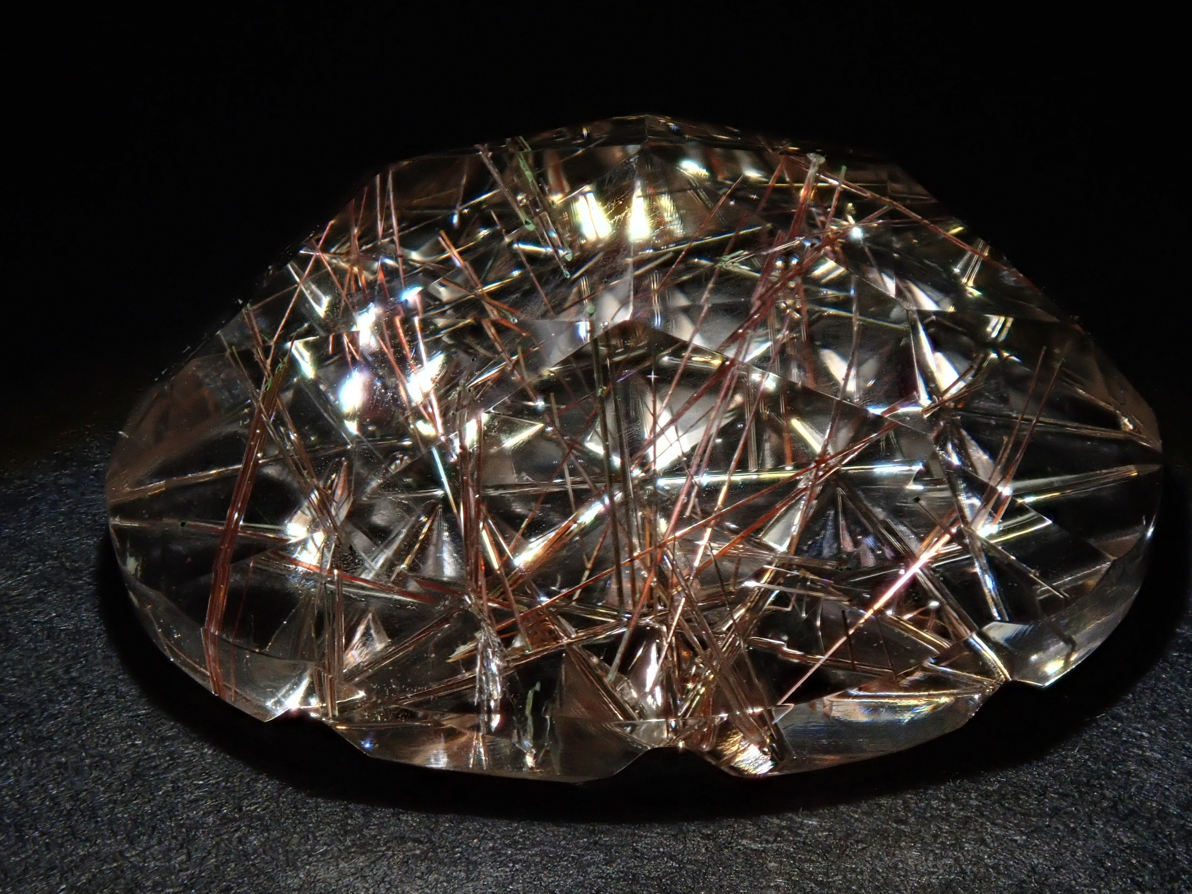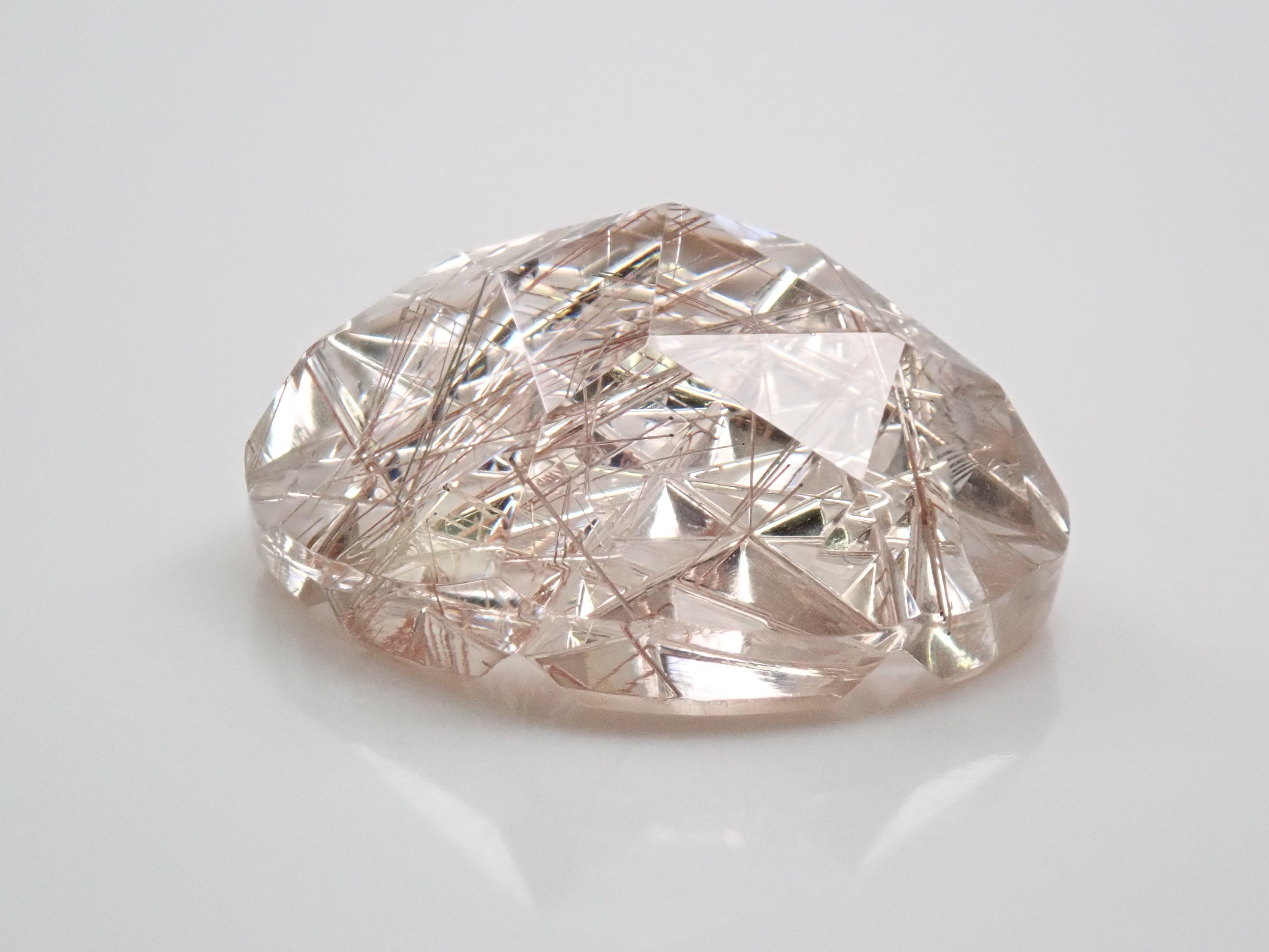Koshu Takaishi Kiriko “Rose cut x Akatsuki”金紅石石英是清水奇蹟和深澤洋一先生的合作作品。甲州寶石Kiriko由清水寶石的代表人物清水幸雄和Jewelry Craft Fukasawa的代表人物深澤洋一兩位大師共同創作。清水先生負責刻面,深澤先生負責刻面。