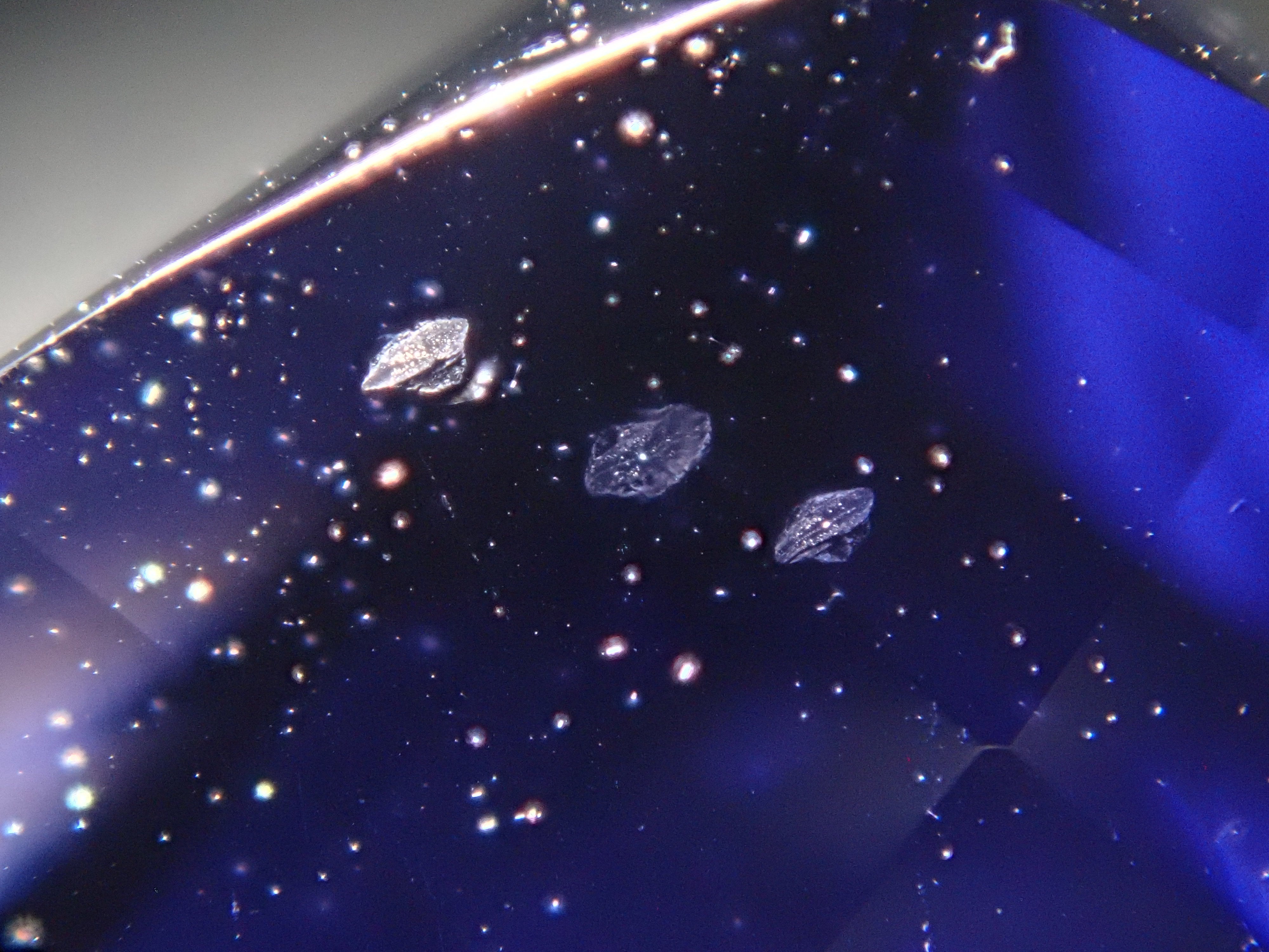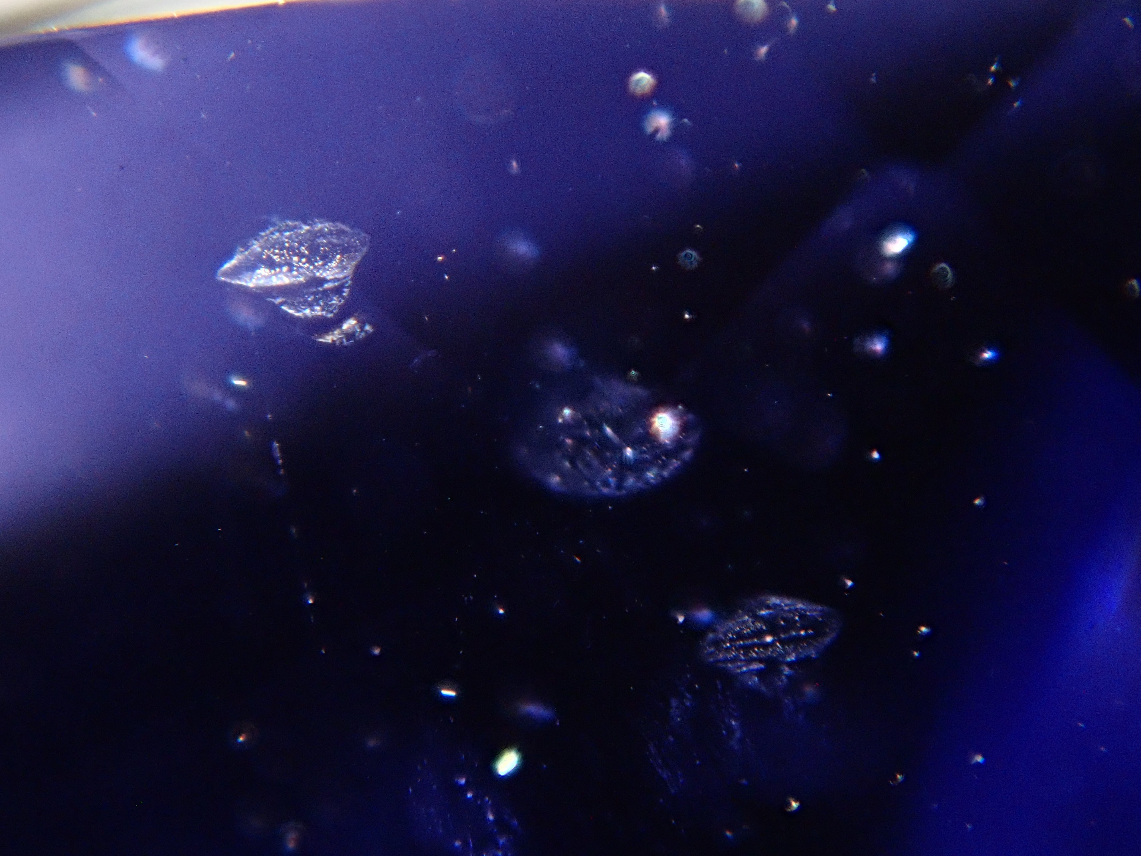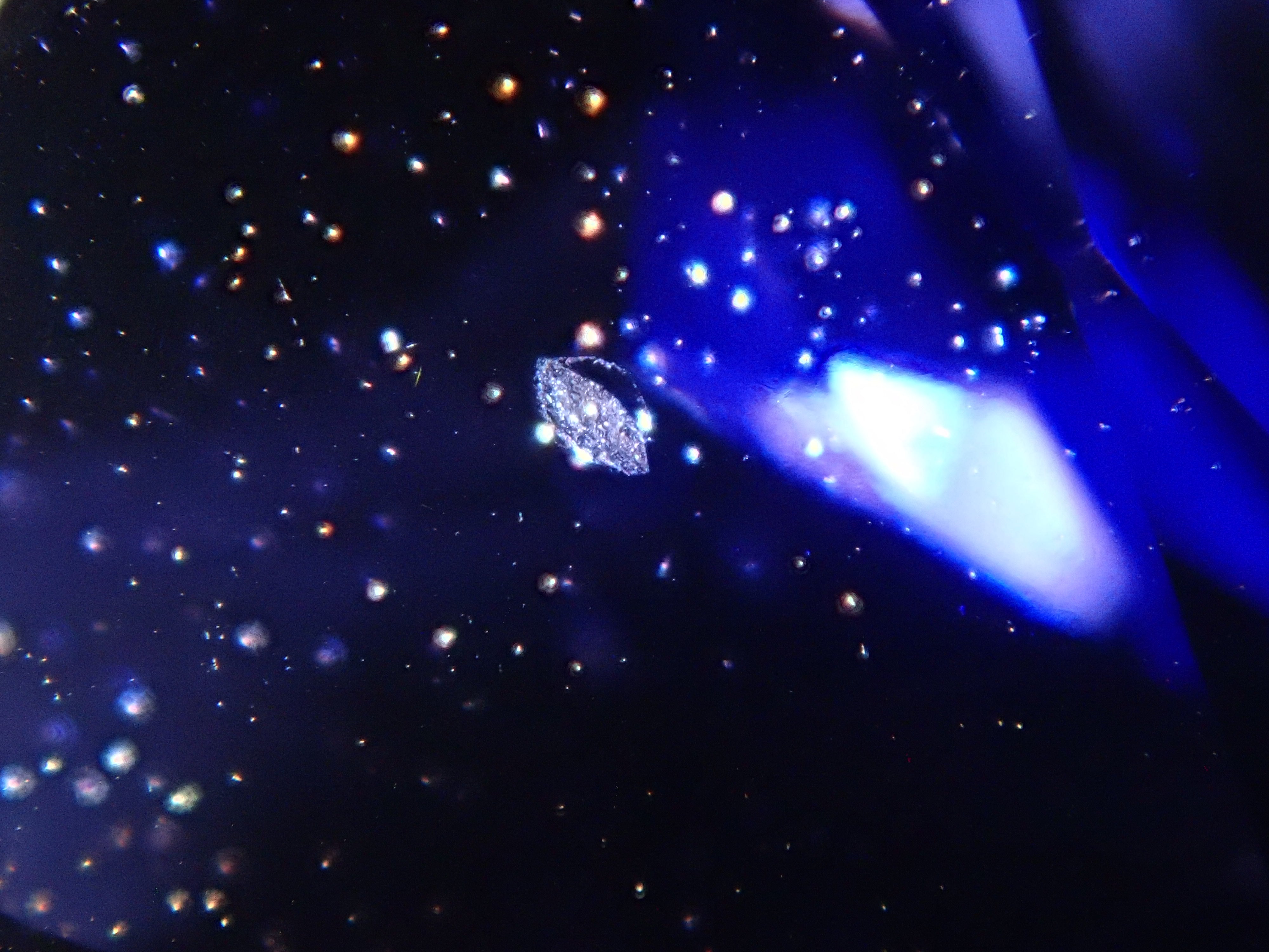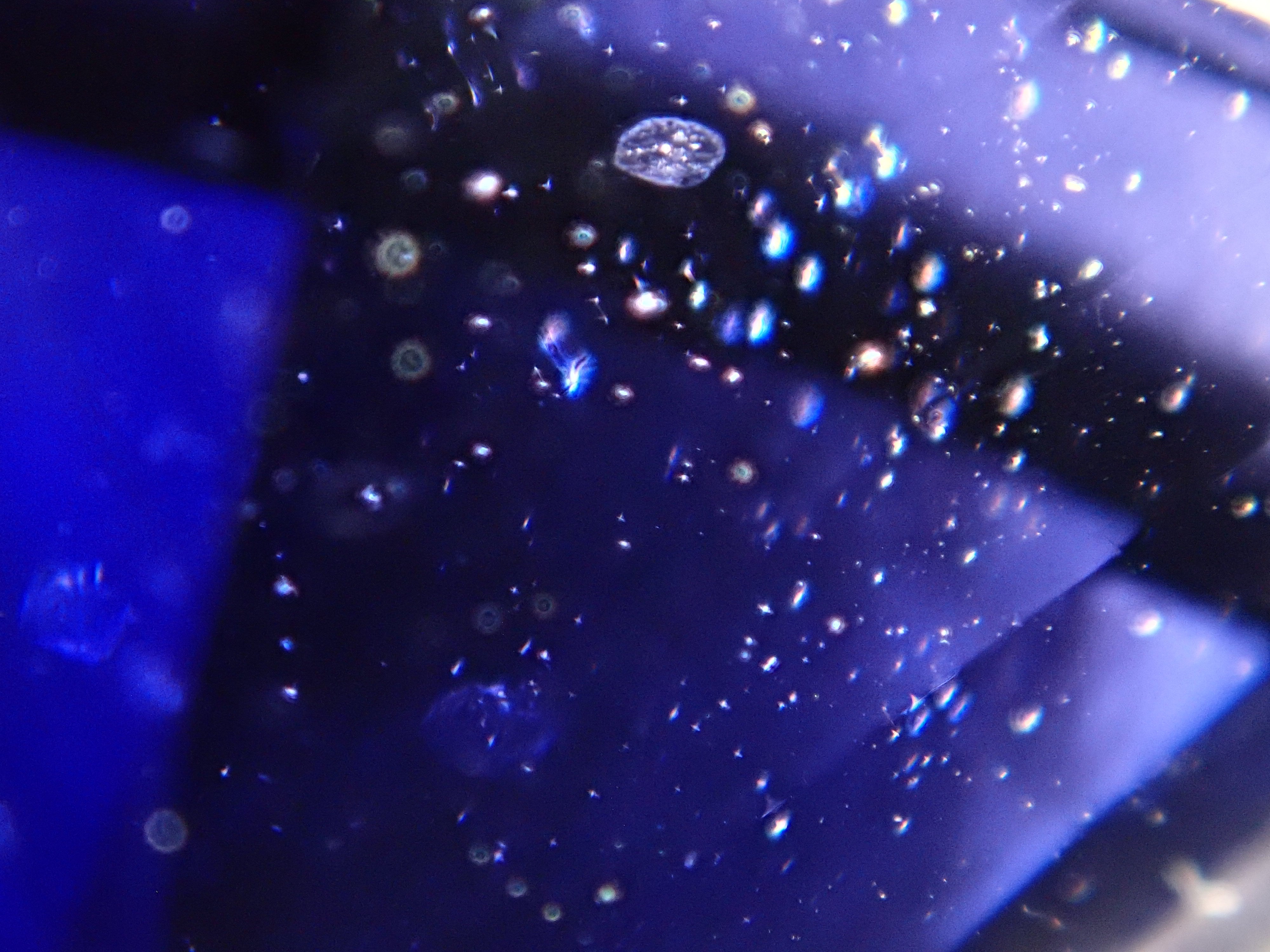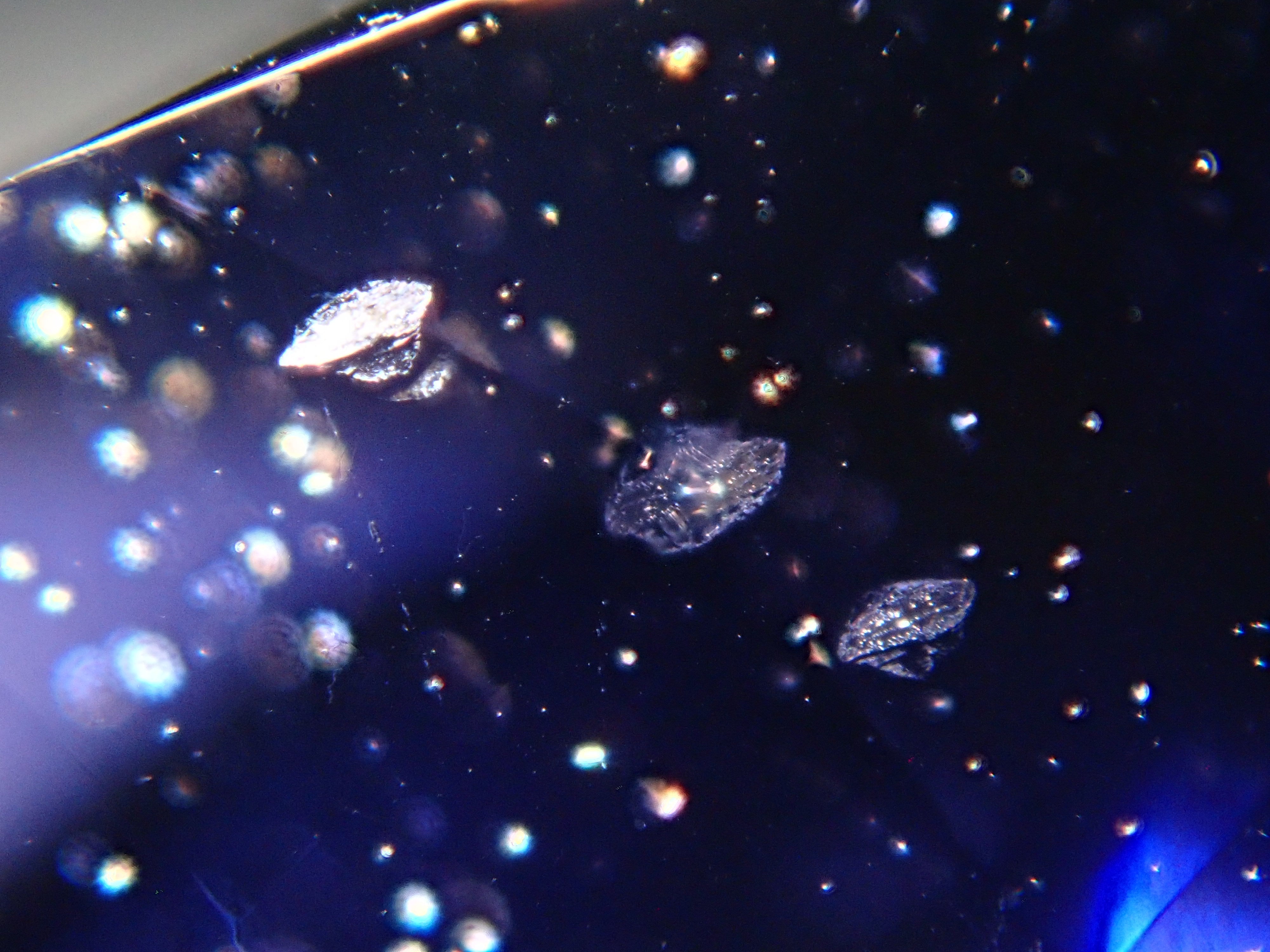 堇青石是一種美麗的深藍紫色,類似紫羅蘭花。它是一種多向色性寶石,從不同角度觀察時會呈現不同的顏色。從紫色、藍色到黃色的顏色變化,讓您感受到寶石的深邃魅力。這是一種堇青石,具有類似閃光的光學效應,稱為散光現象。它通常被稱為“堇青石日光石”或“漫金堇青石”。閃閃發光的藍紫色光芒,就像夜空中閃爍的星星。請盡情享受觸手可及的星空。我拍照時使用筆形手電筒。