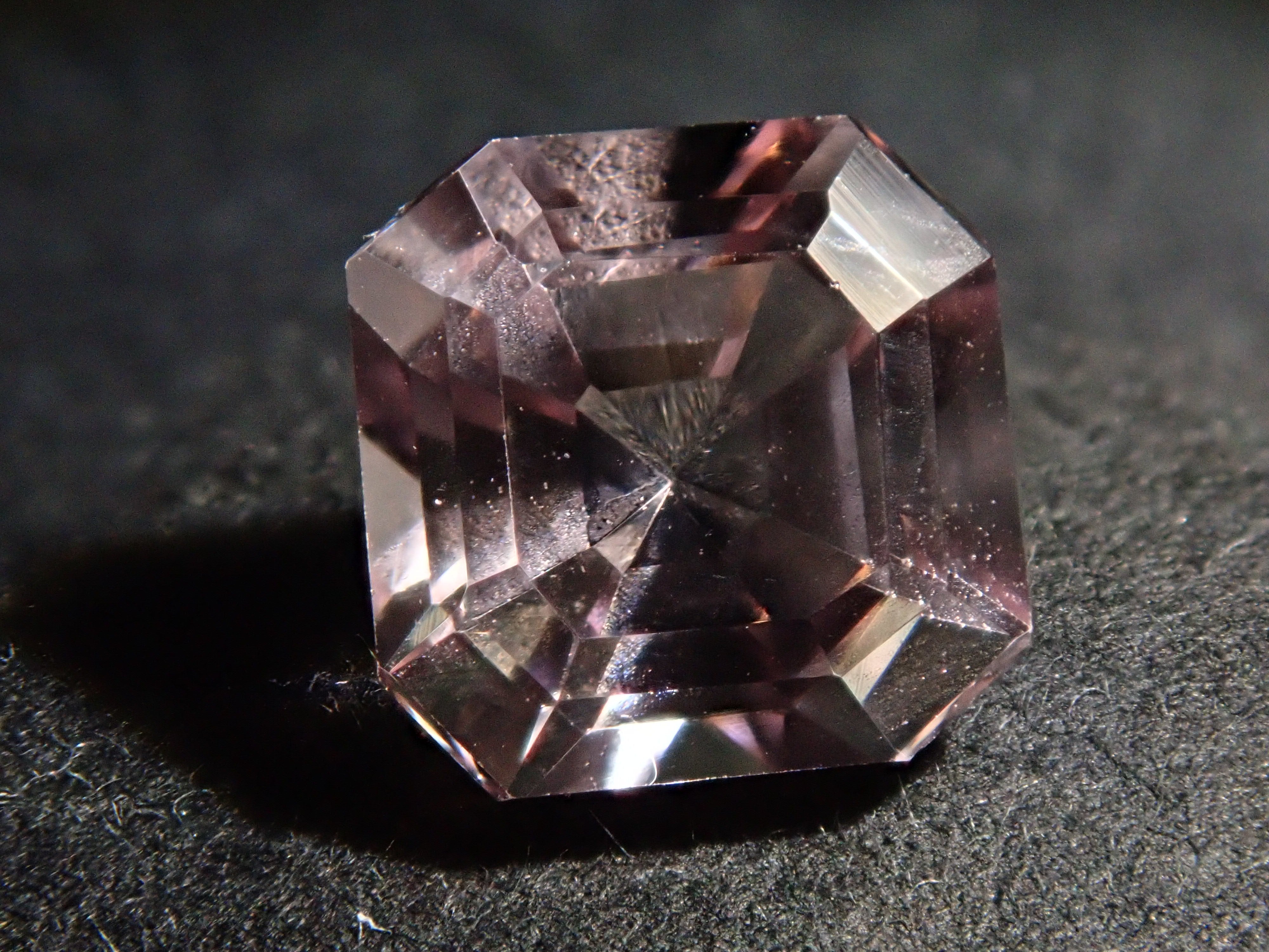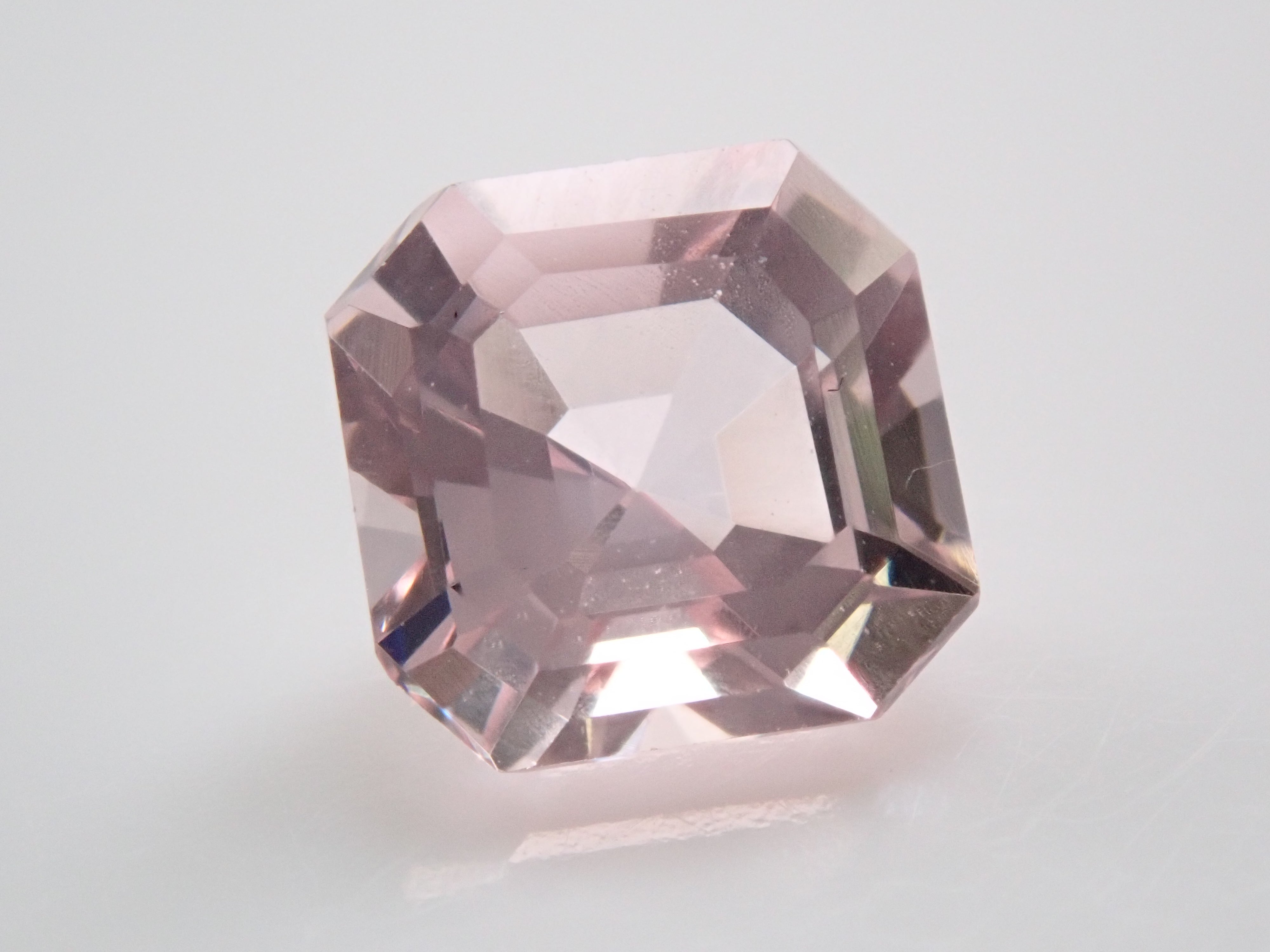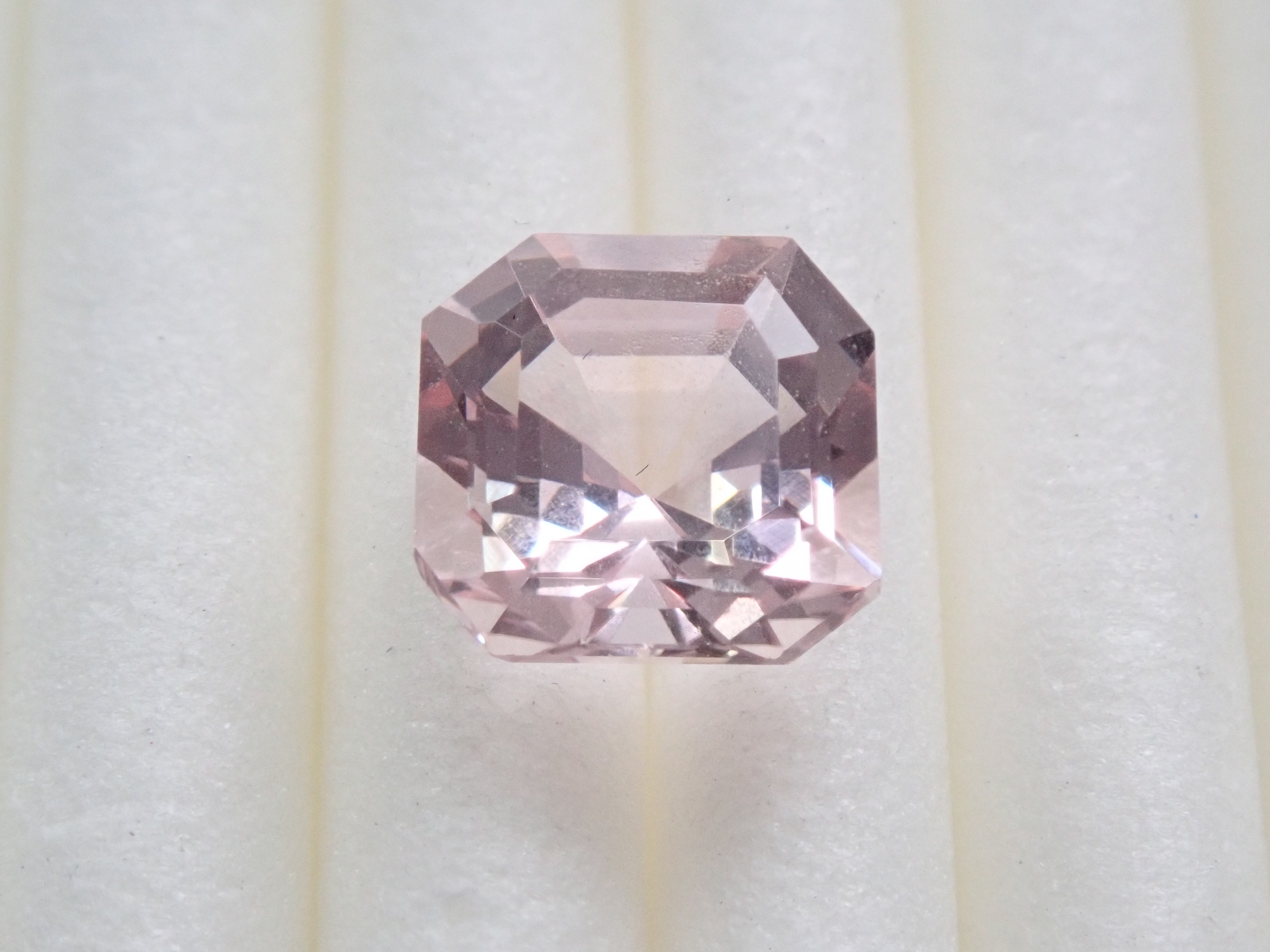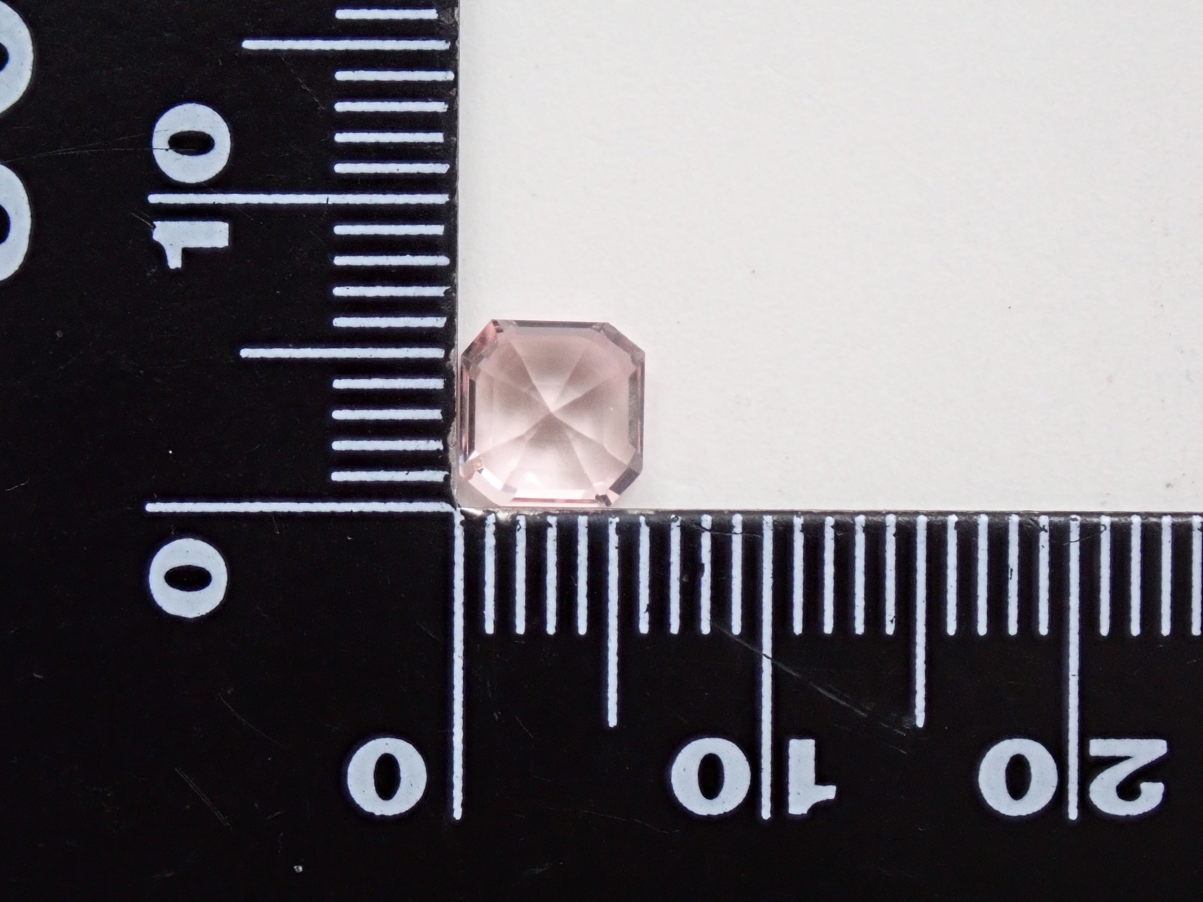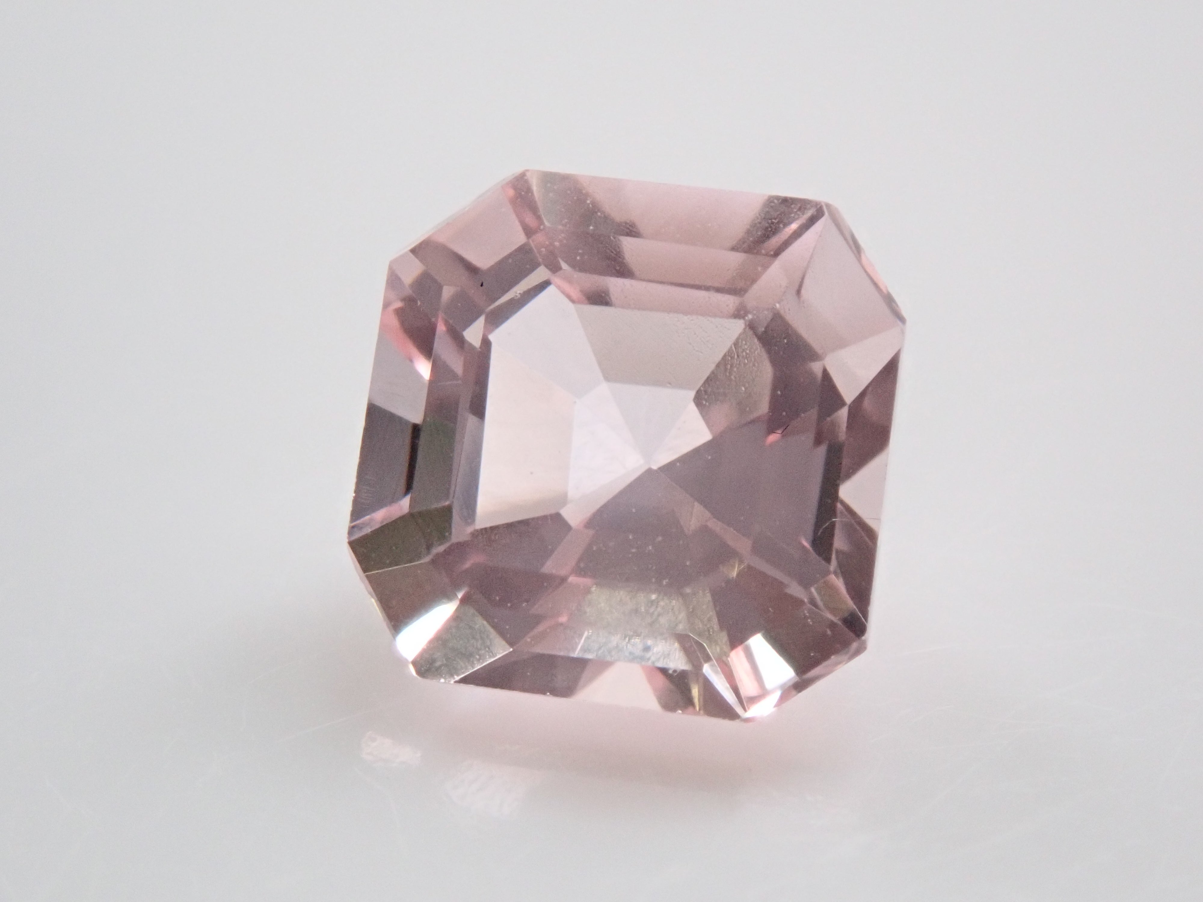 Asscher 切工粉紅色摩根石。質地疏鬆,透明度高。