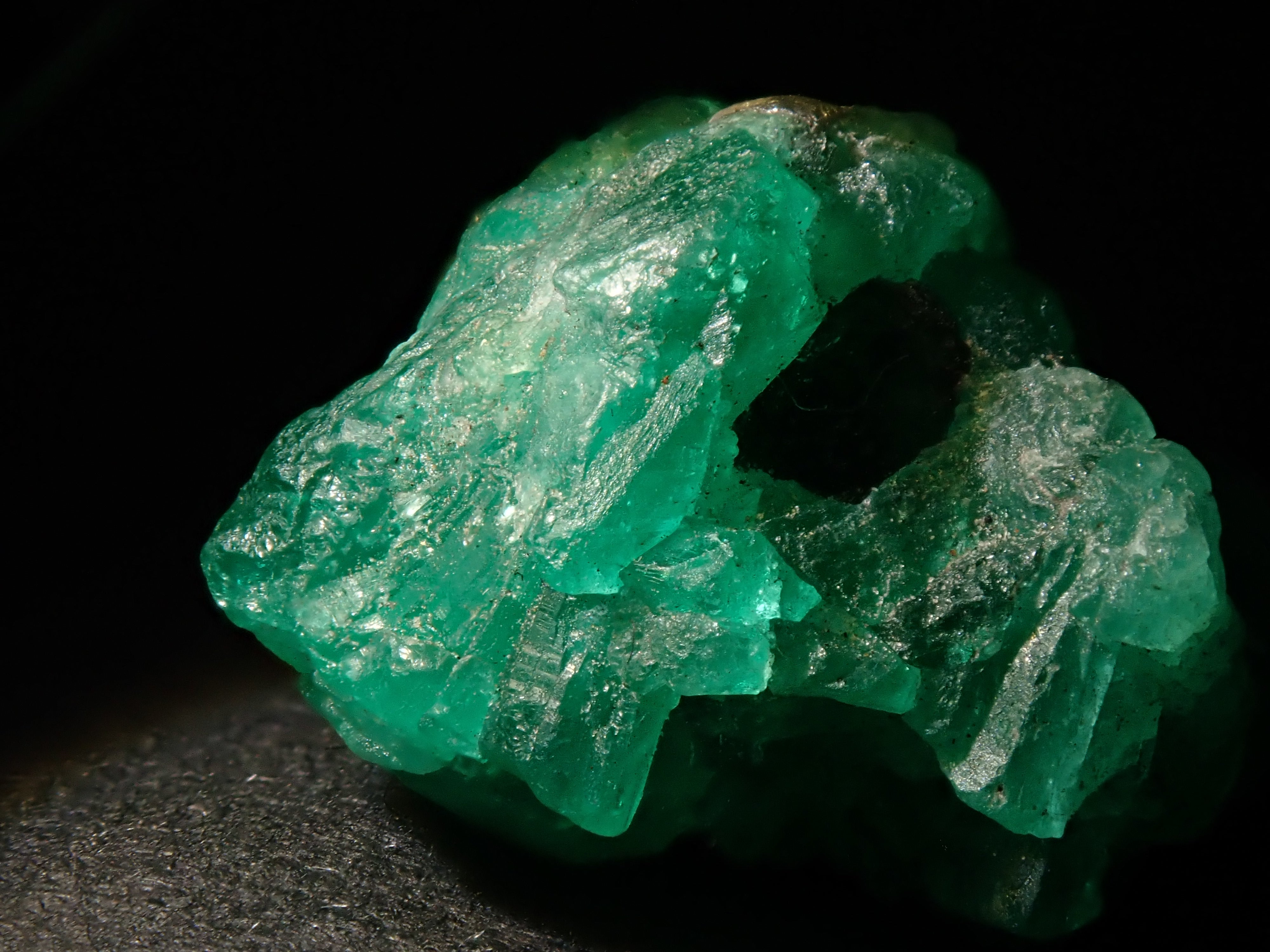 據說祖母綠的美麗綠色會因產地而異。這顆產自哥倫比亞的祖母綠,據說擁有特別深邃的綠色。祖母綠通常容易出現刮痕,因此通常會用油進行處理,使刮痕不那麼明顯。請欣賞它優雅的綠色。