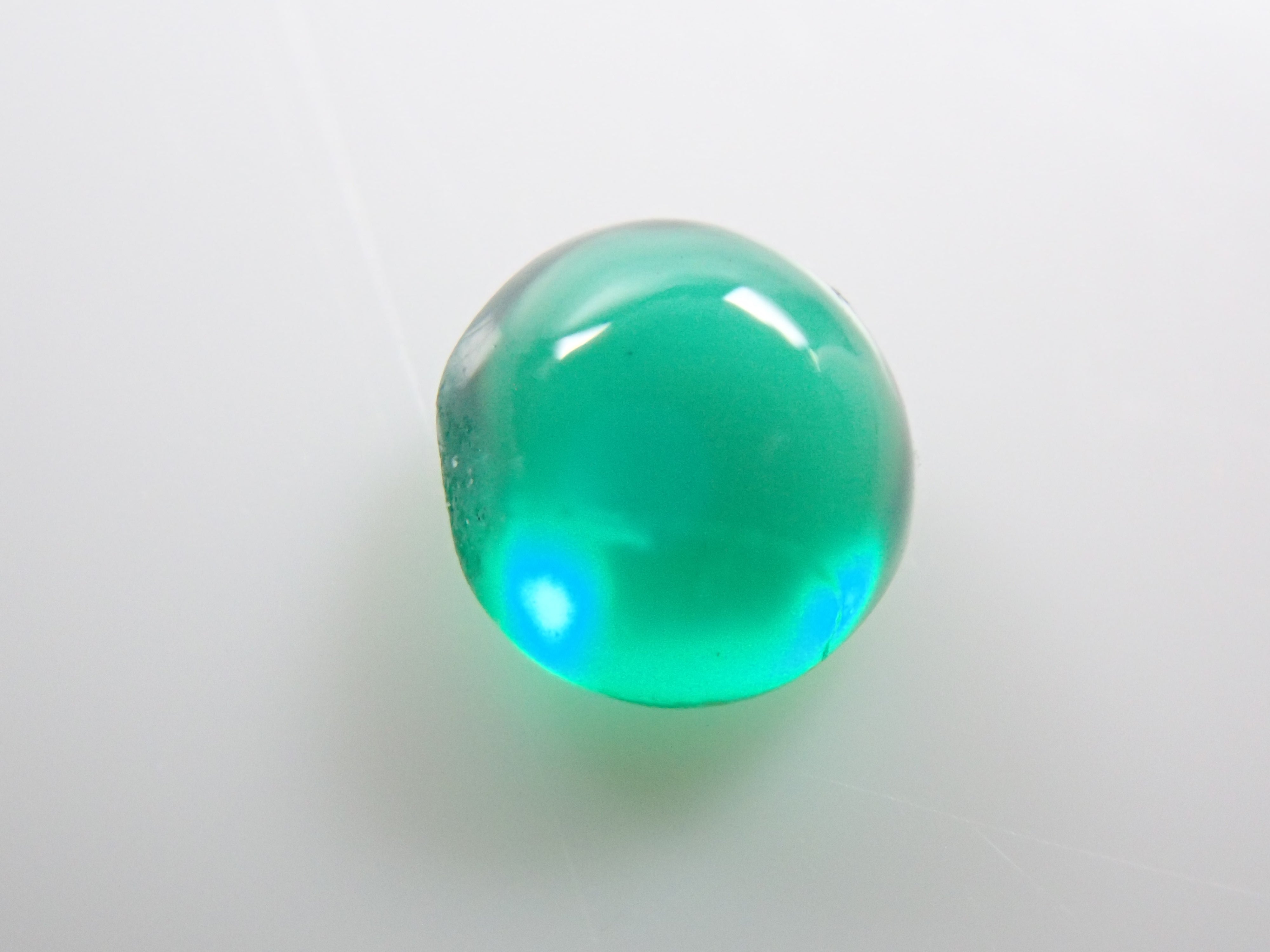 祖母綠是一種因受到埃及豔後克莉奧佩特拉的喜愛而聞名的寶石。它也是一塊有瑕疵的石頭,以至於有「完美無瑕的祖母綠比沒有瑕疵的人還少」的說法。因此,通常使用油處理來使刮痕不那麼明顯。當暴露在光線下時,您可以看到貓眼效應(貓眼)。溫柔與清新融為一體的表情非常吸引人。照片是使用筆燈拍攝的。石頭的背面基本上是未拋光的。