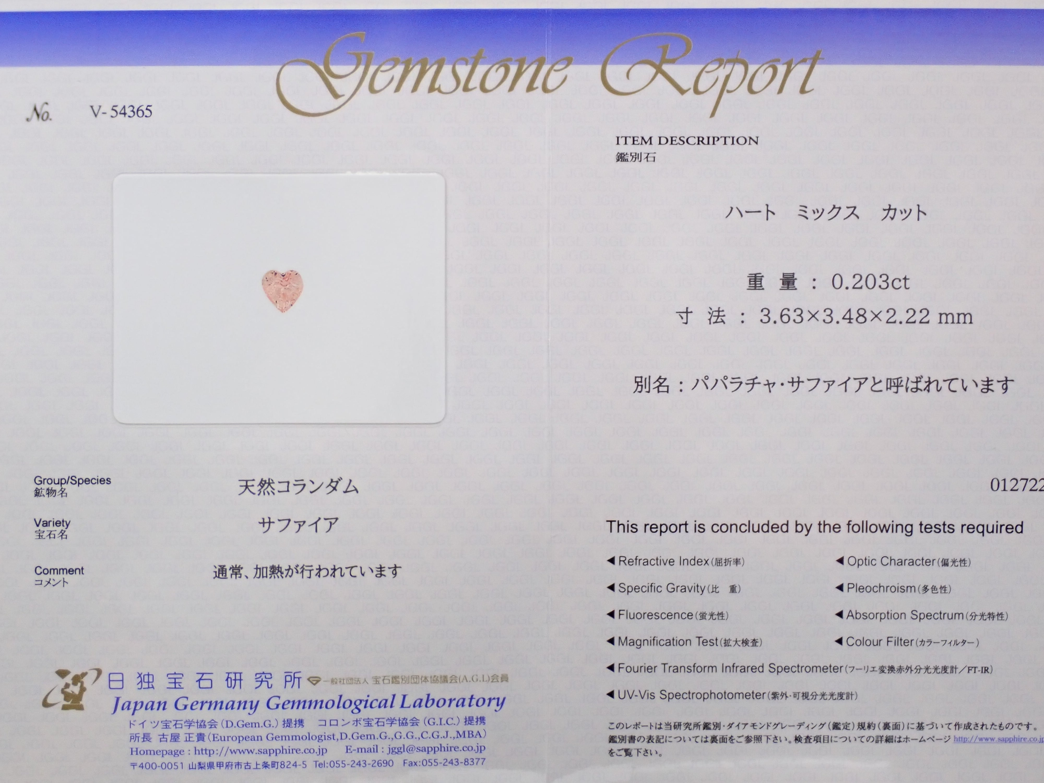 帕帕拉恰藍寶石 0.203 克拉裸石(心形切割)日德版