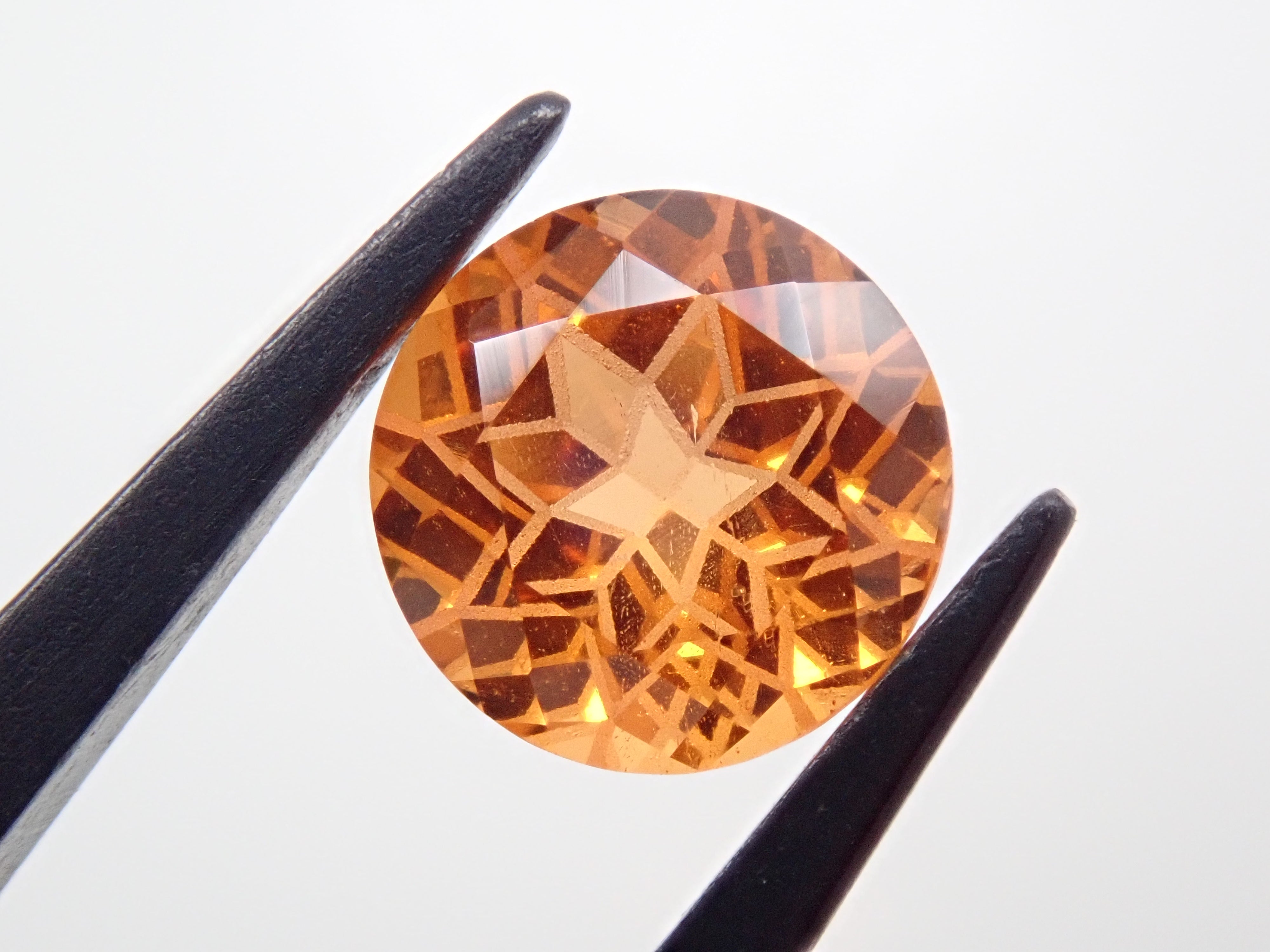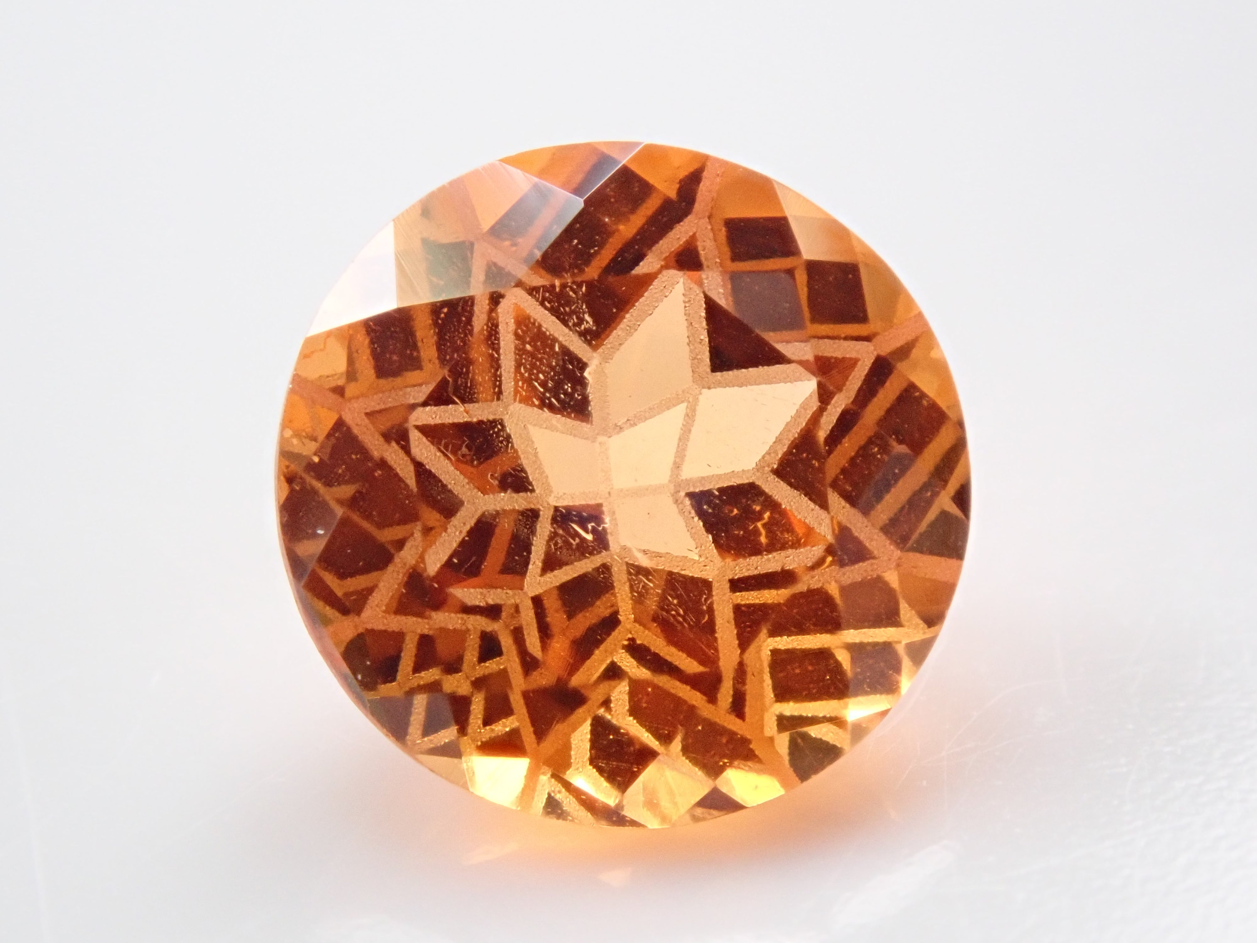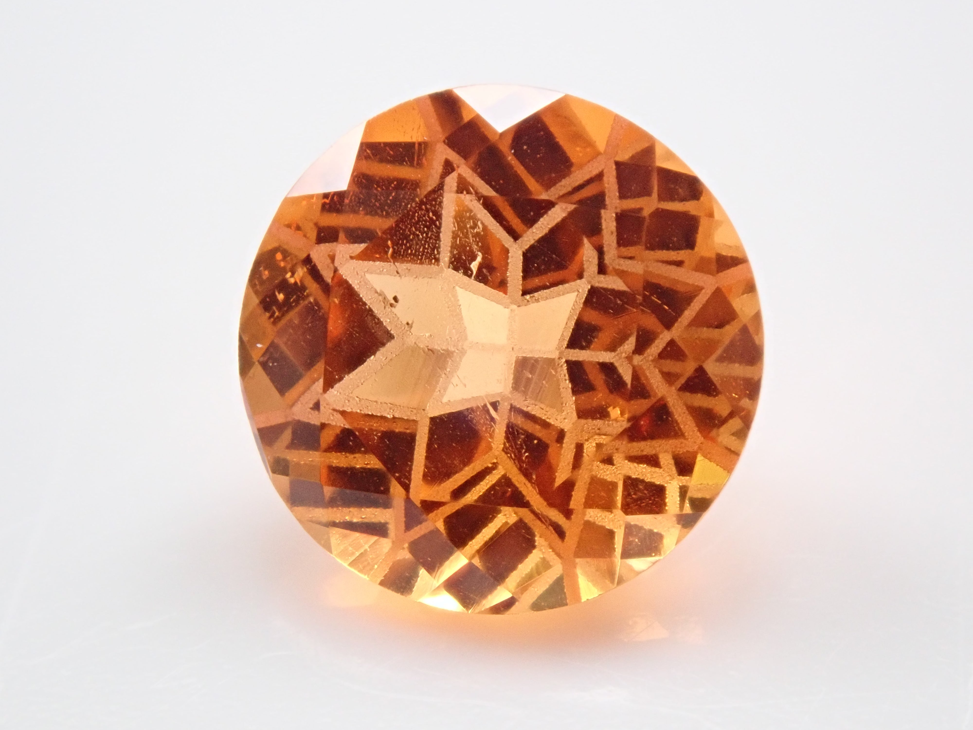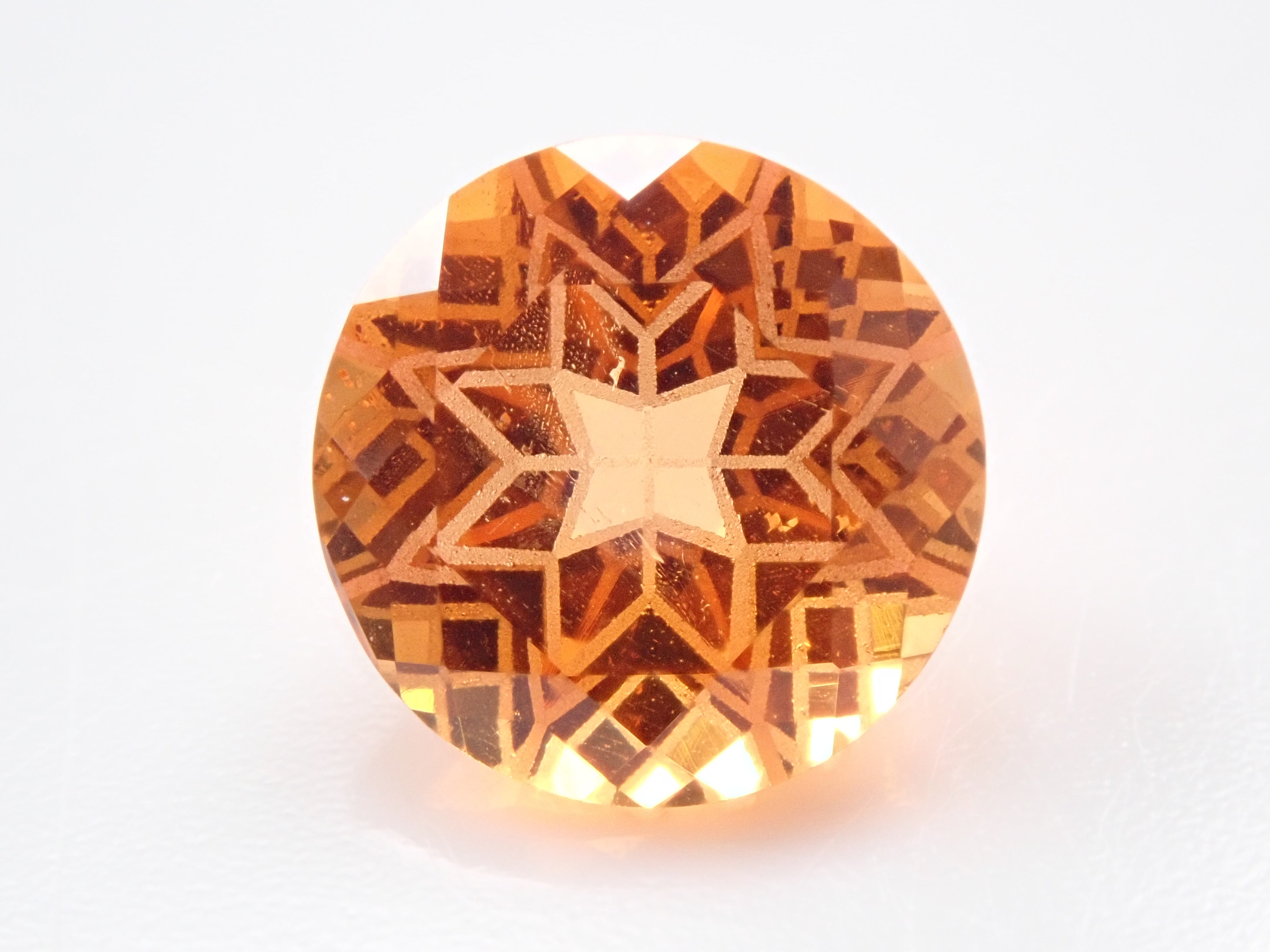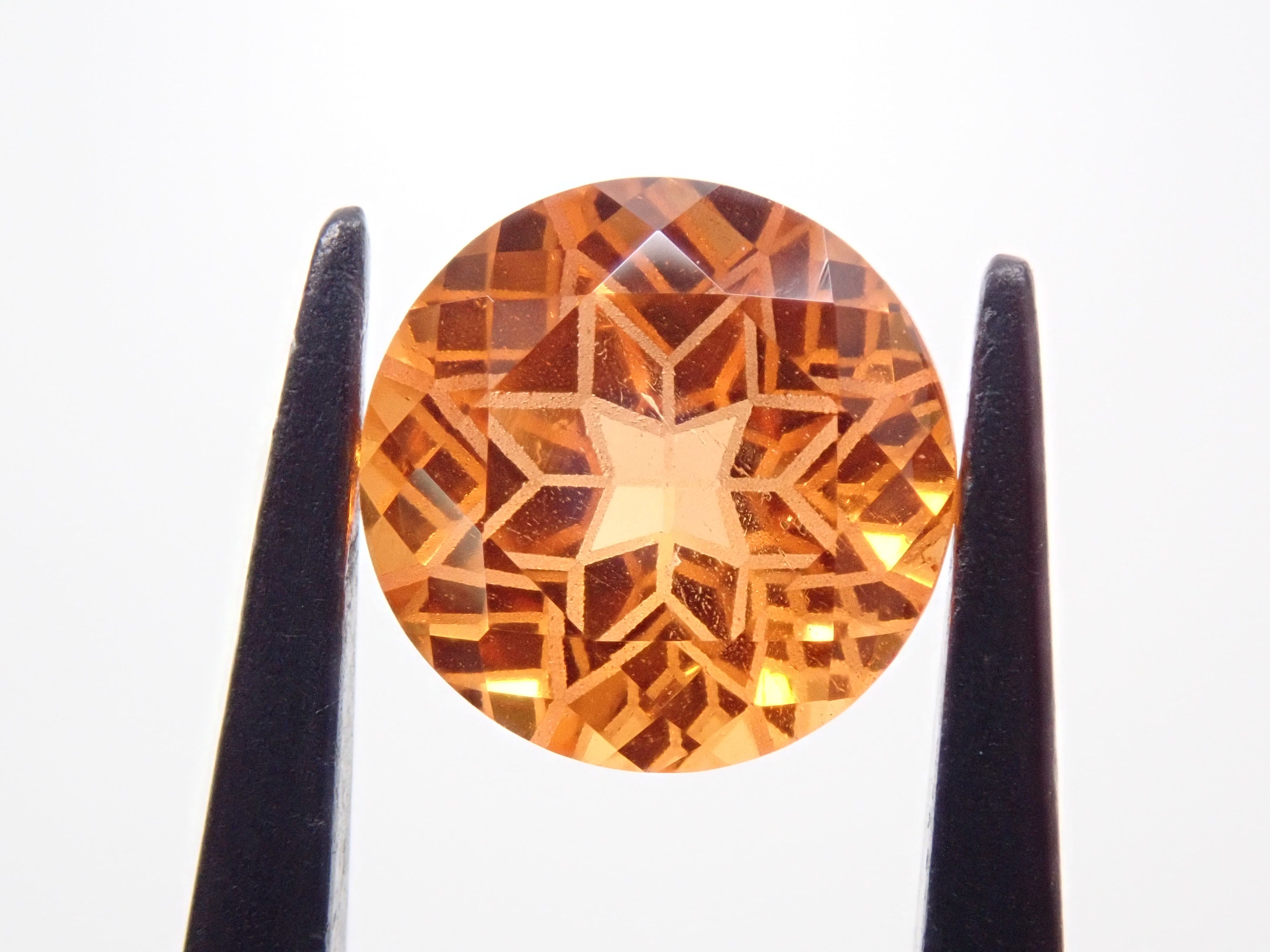 清水奇蹟的蒲公英切割柑橘石榴石 6.5 毫米散裝。這是一種溫柔而有力且有吸引力的剪裁,就像蒲公英一樣。蒲公英圖案以超細霧面刻面表現,令人印象深刻。