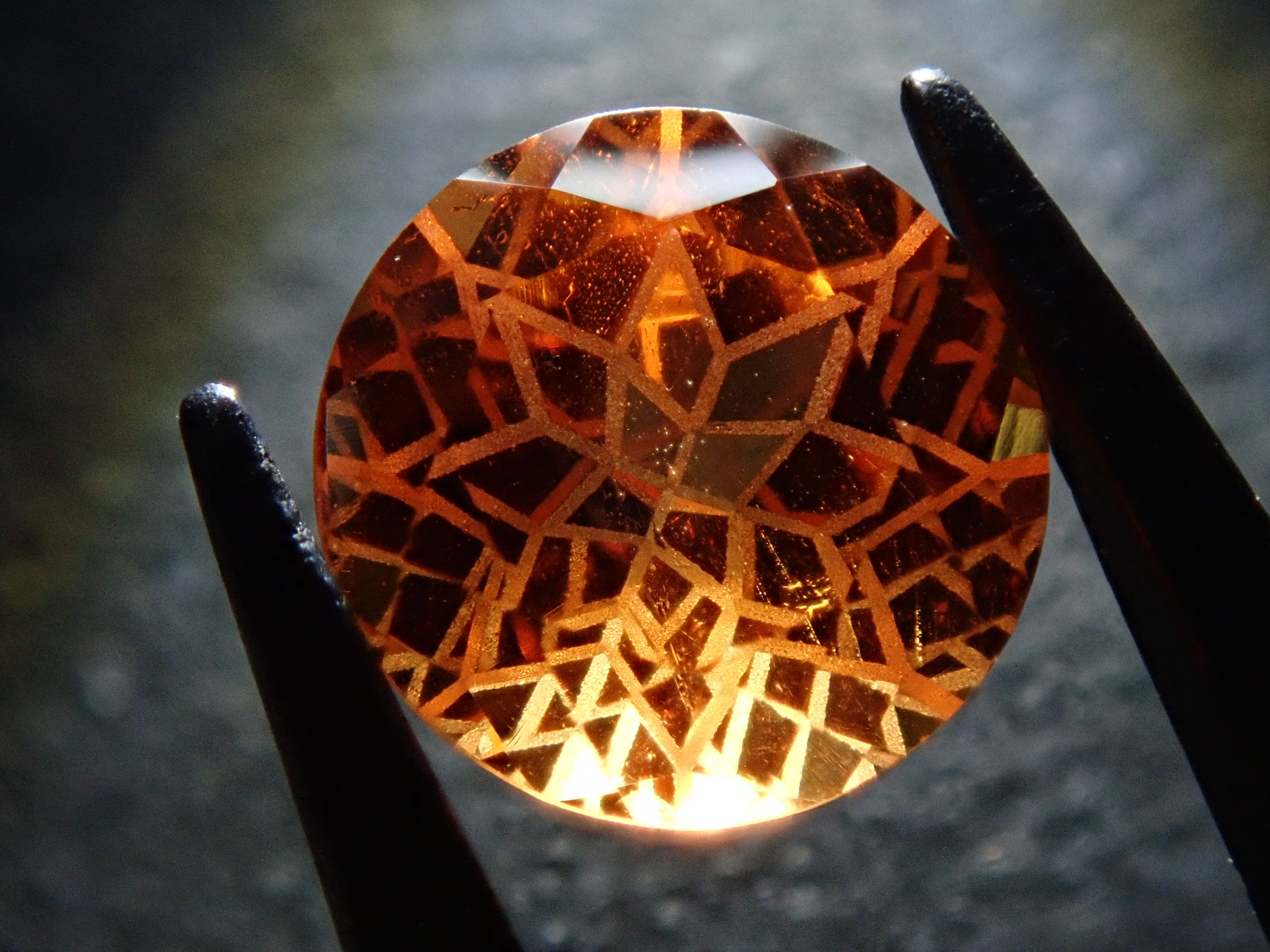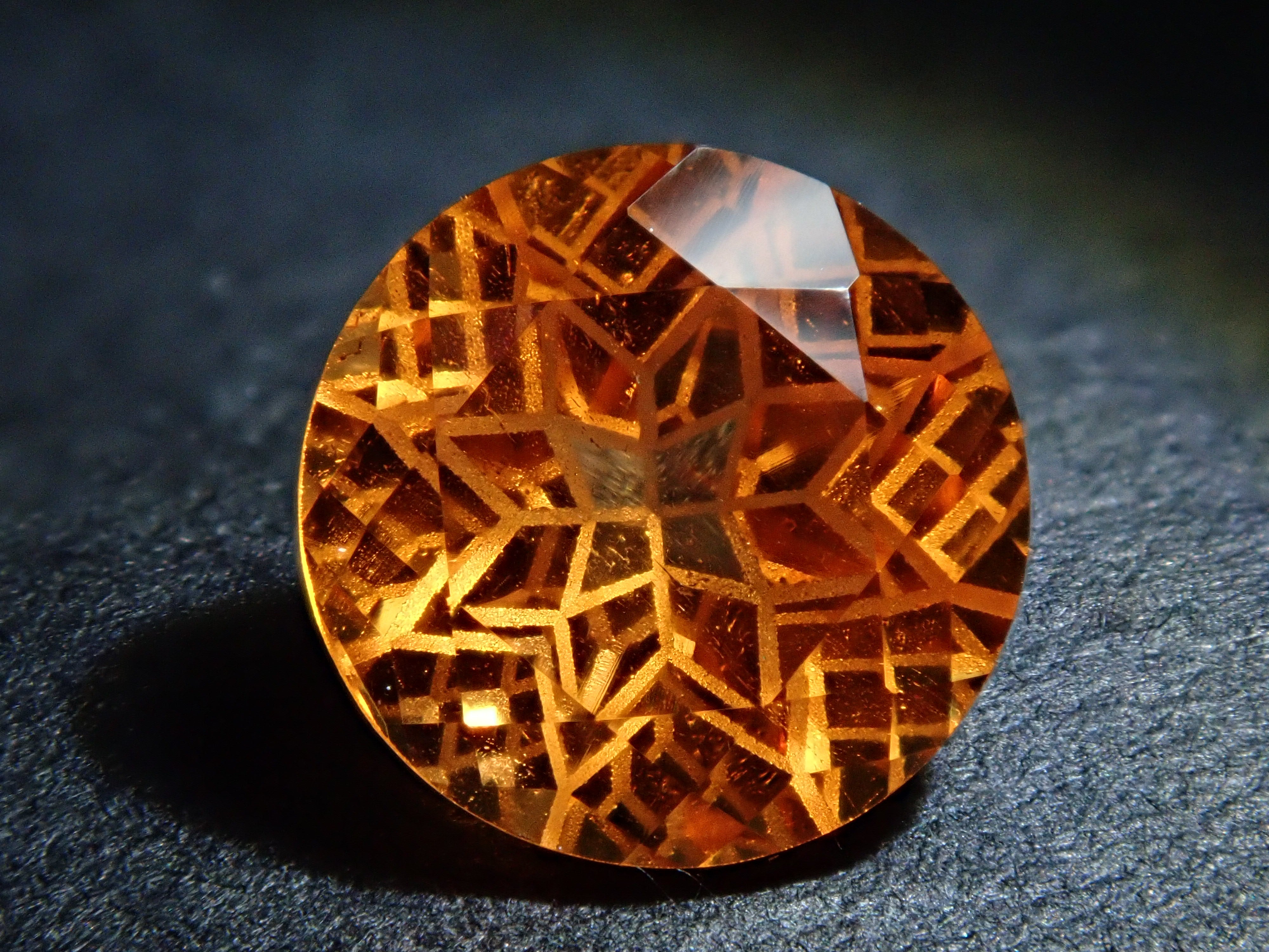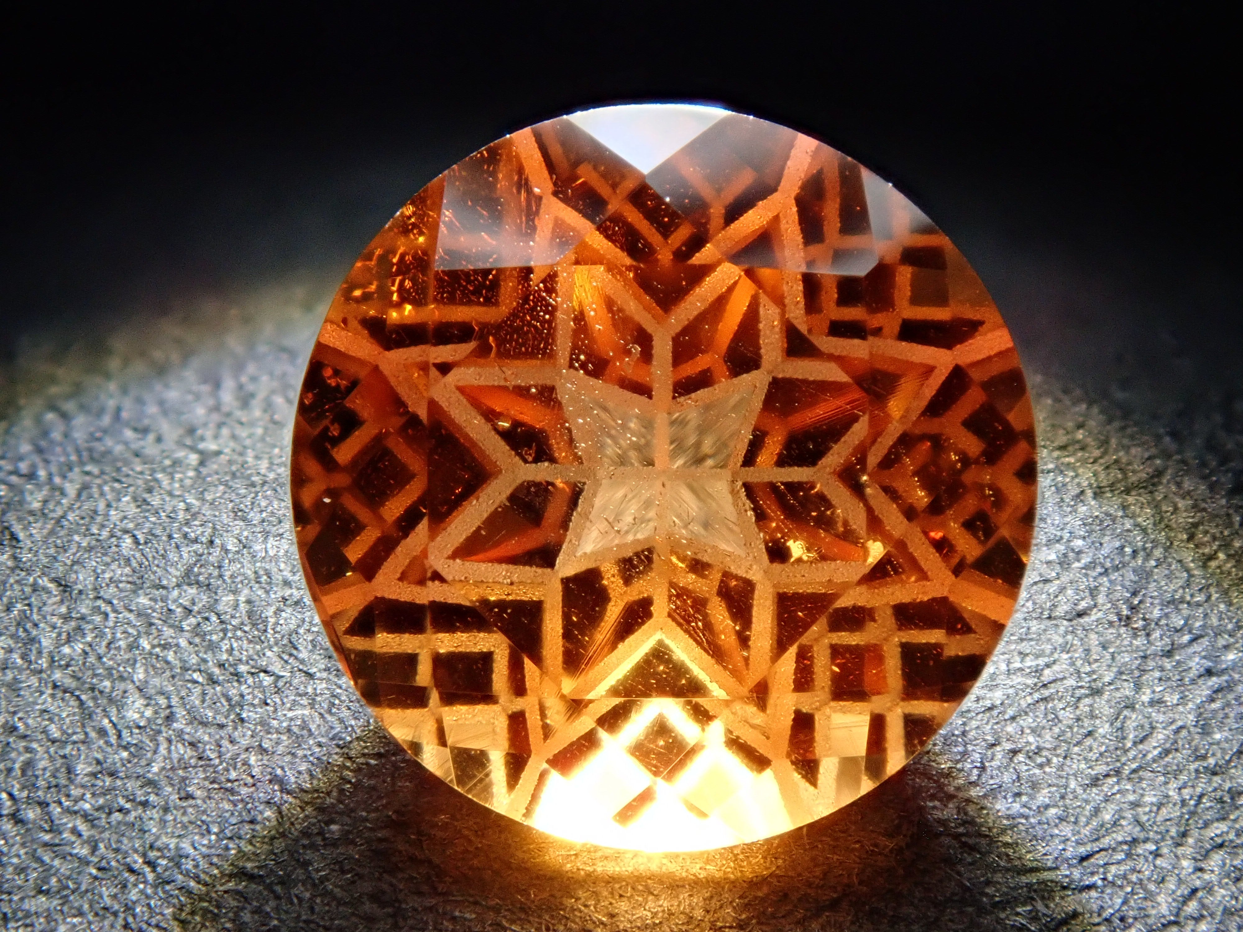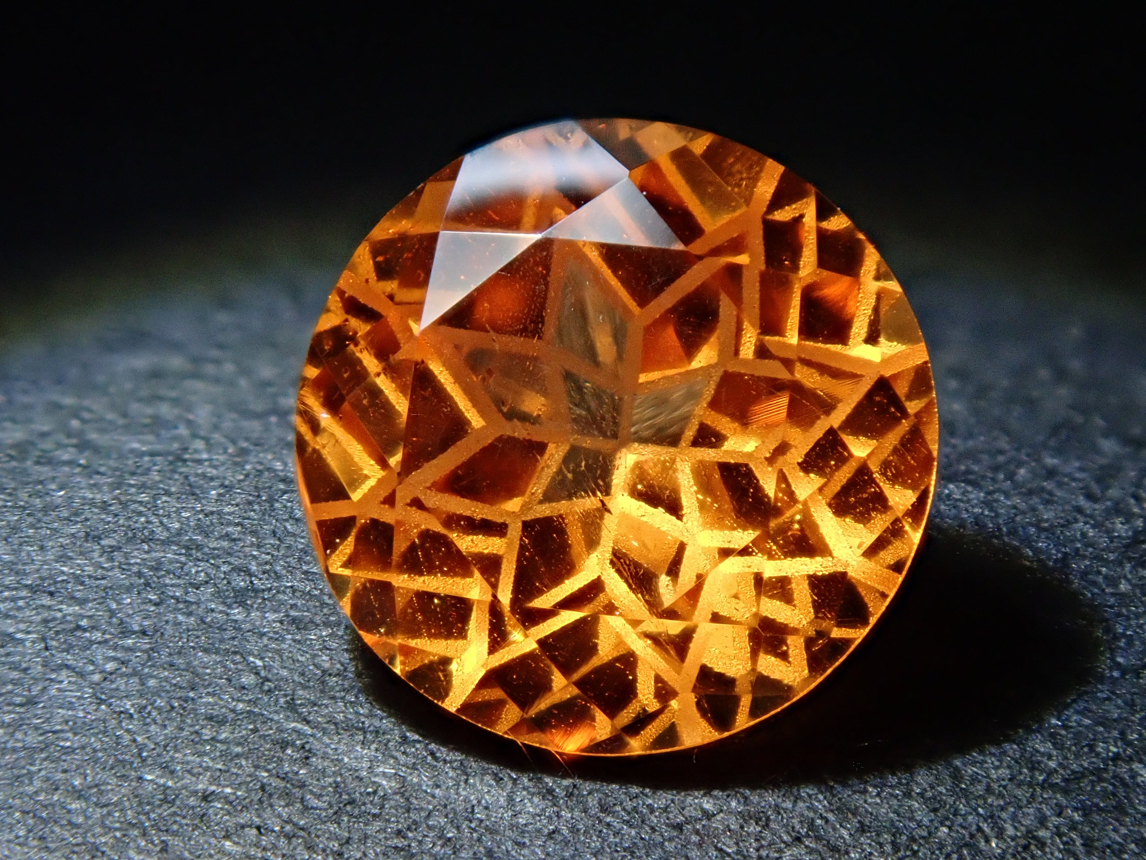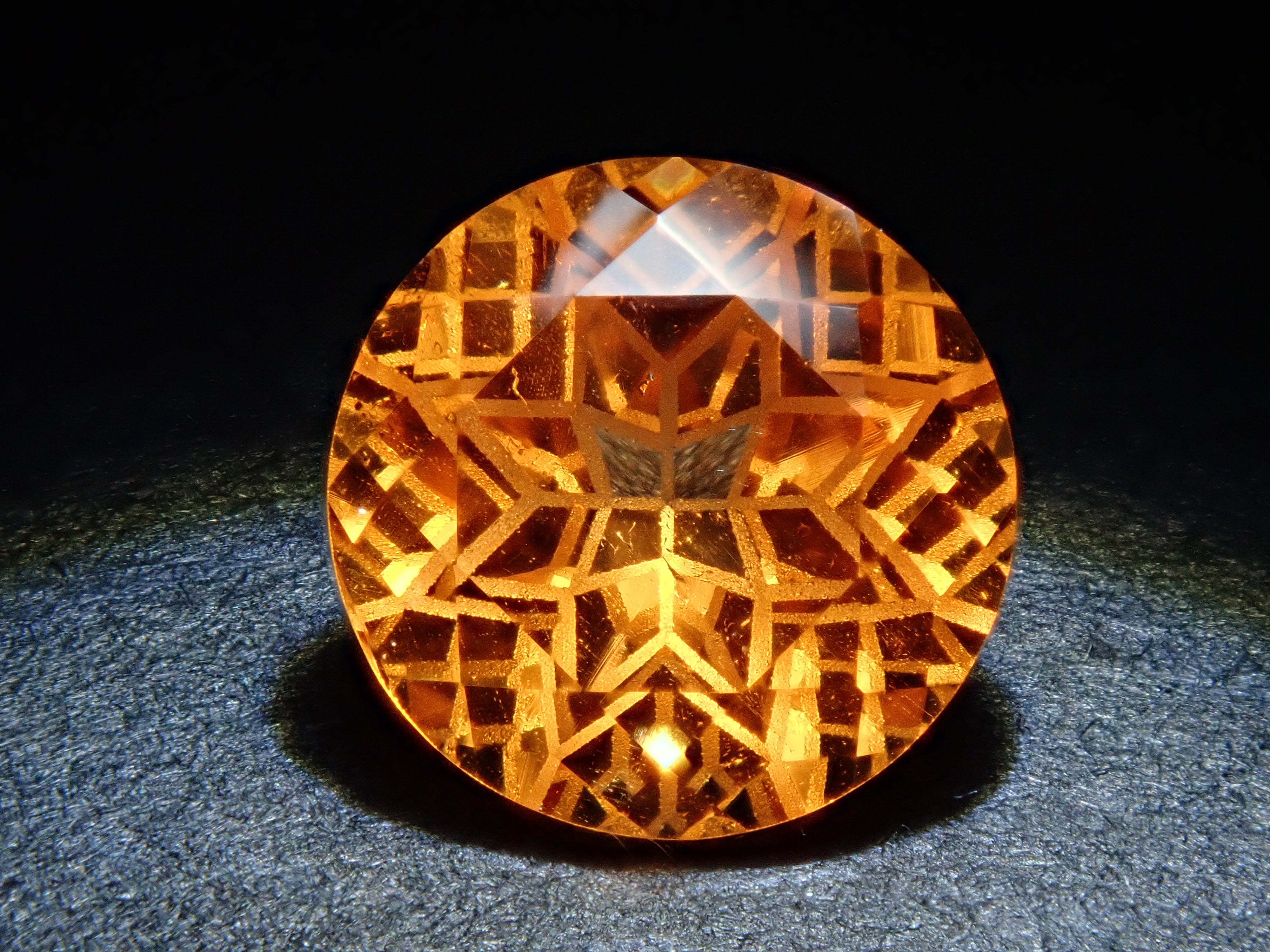 清水奇蹟的蒲公英切割柑橘石榴石 6.5 毫米散裝。這是一種溫柔而有力且有吸引力的剪裁,就像蒲公英一樣。蒲公英圖案以超細霧面刻面表現,令人印象深刻。