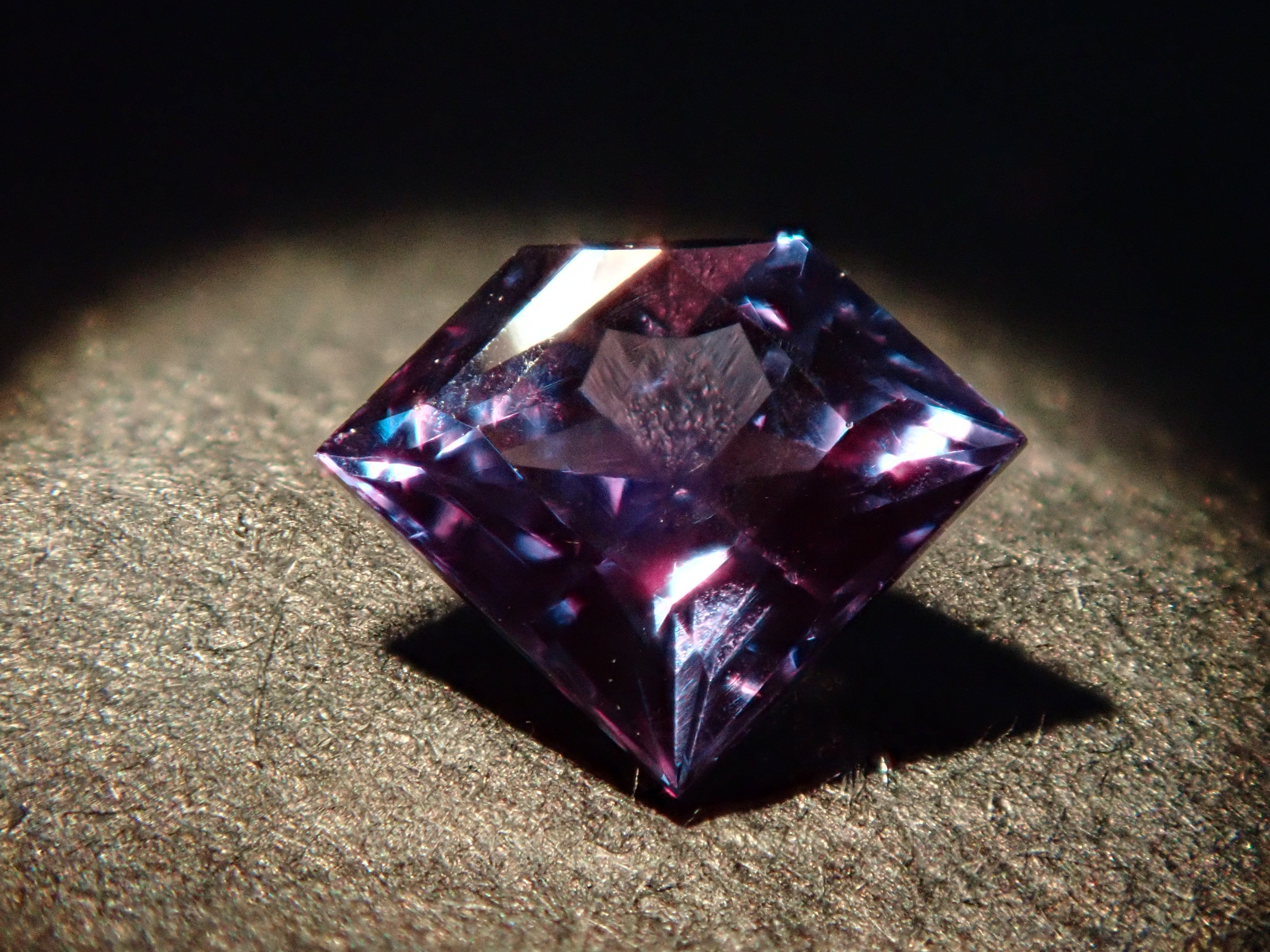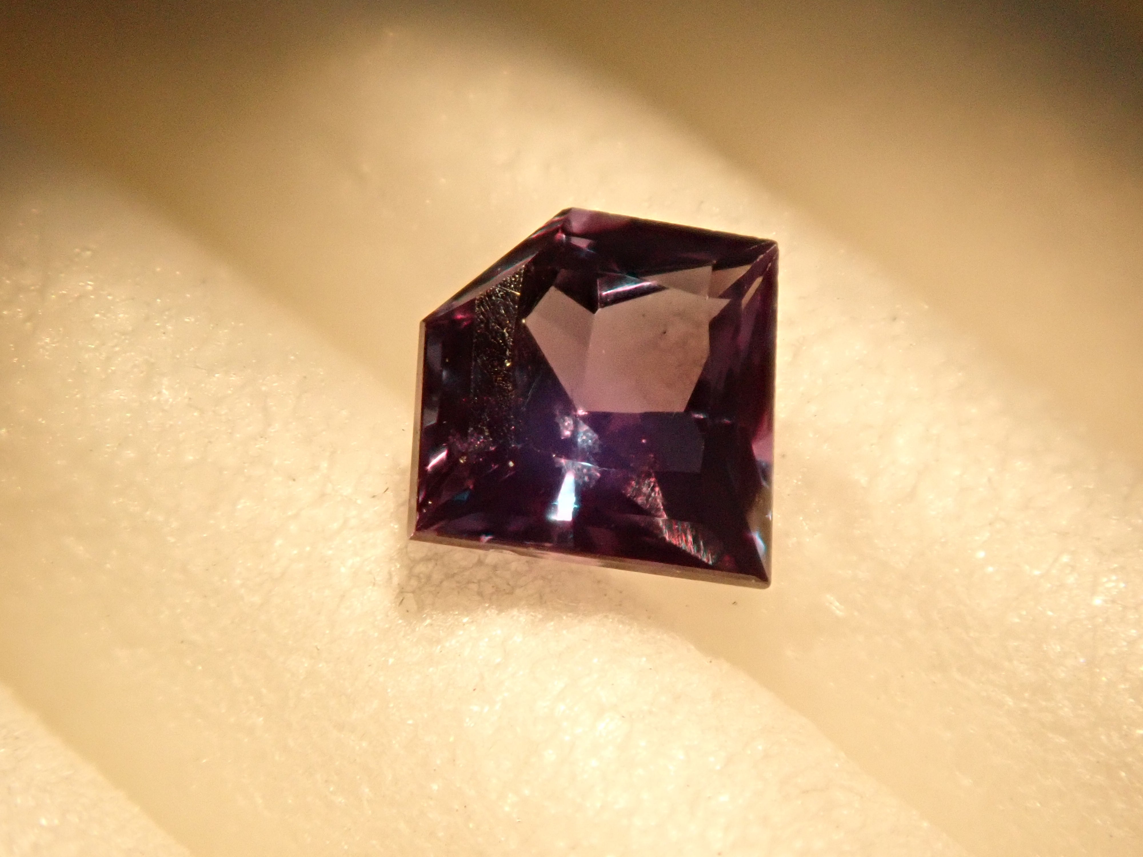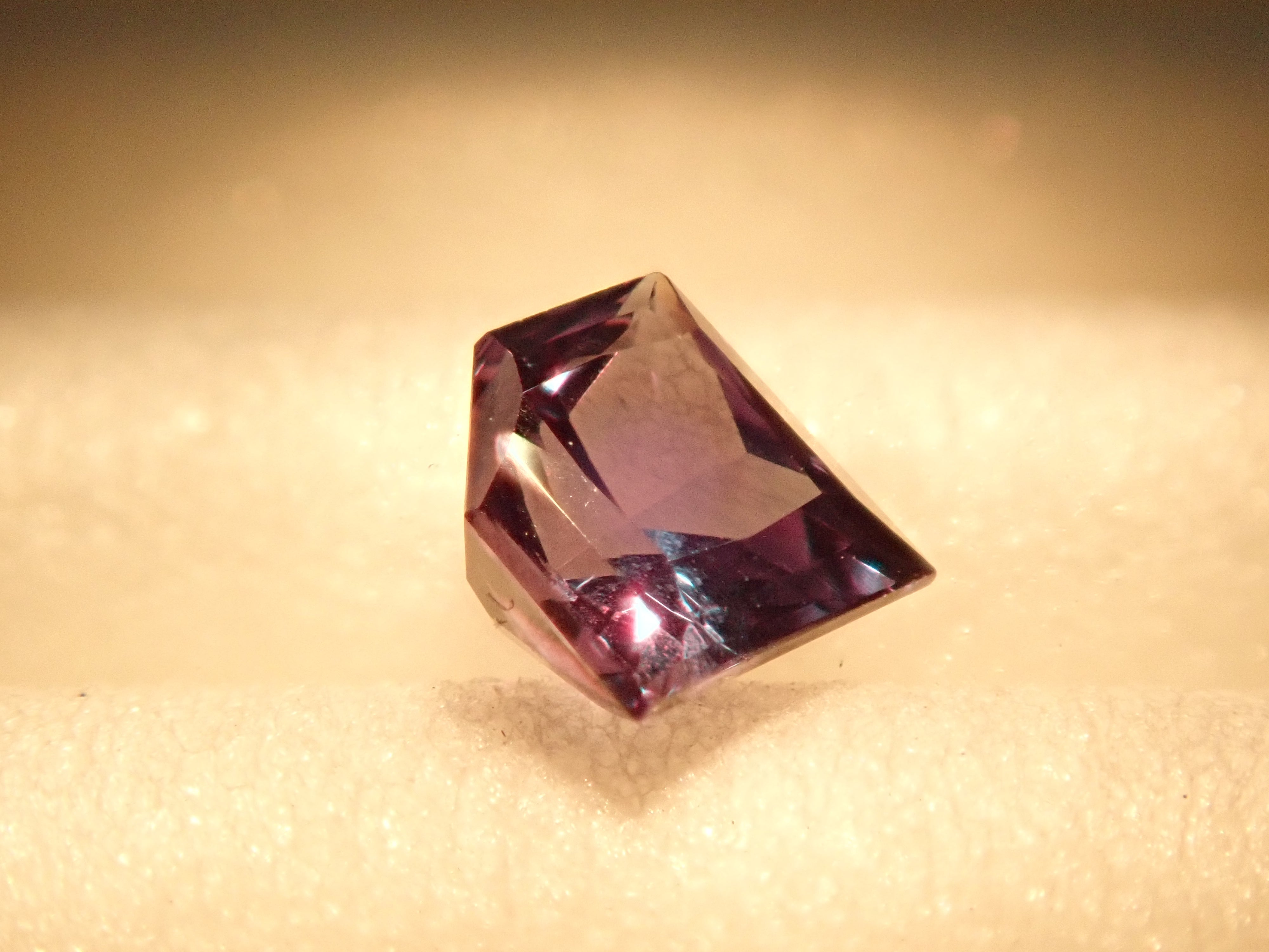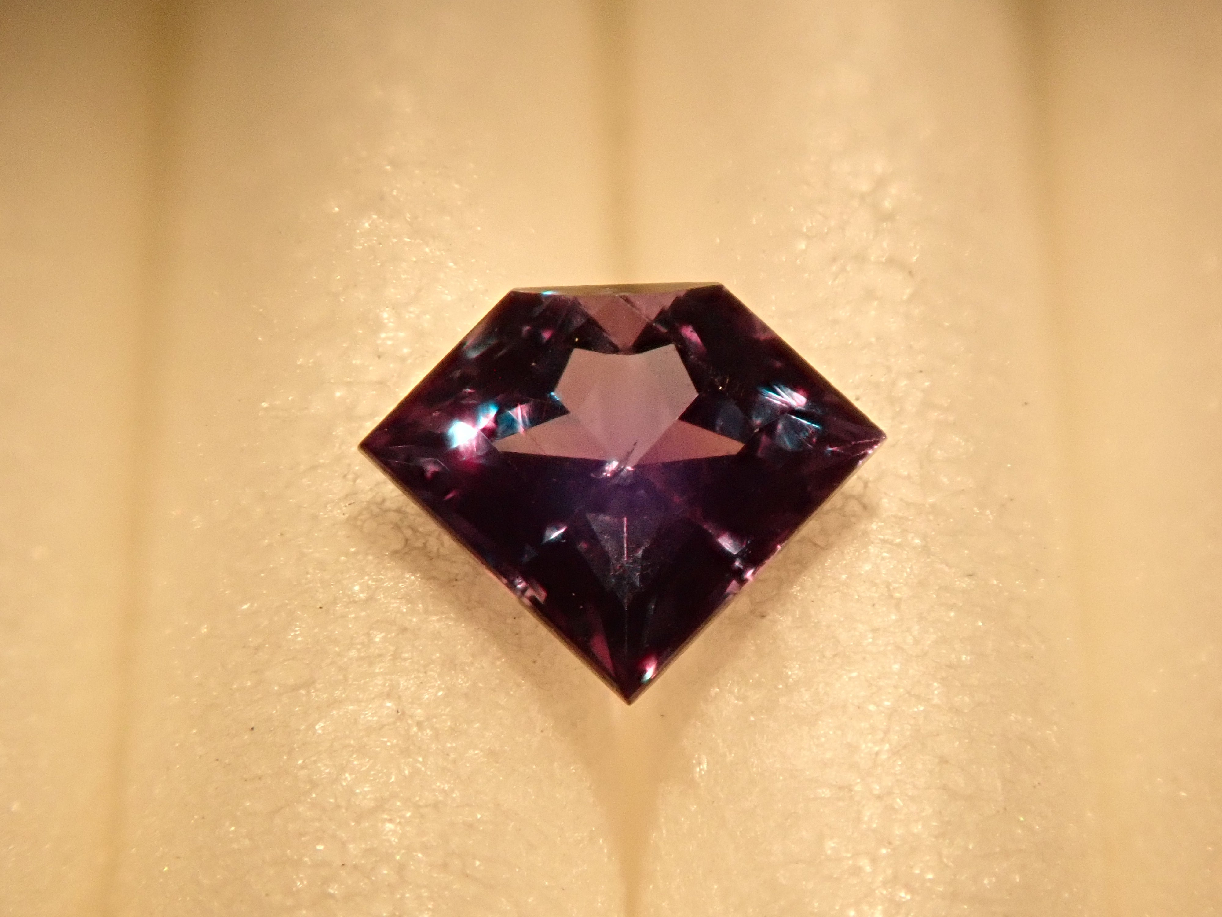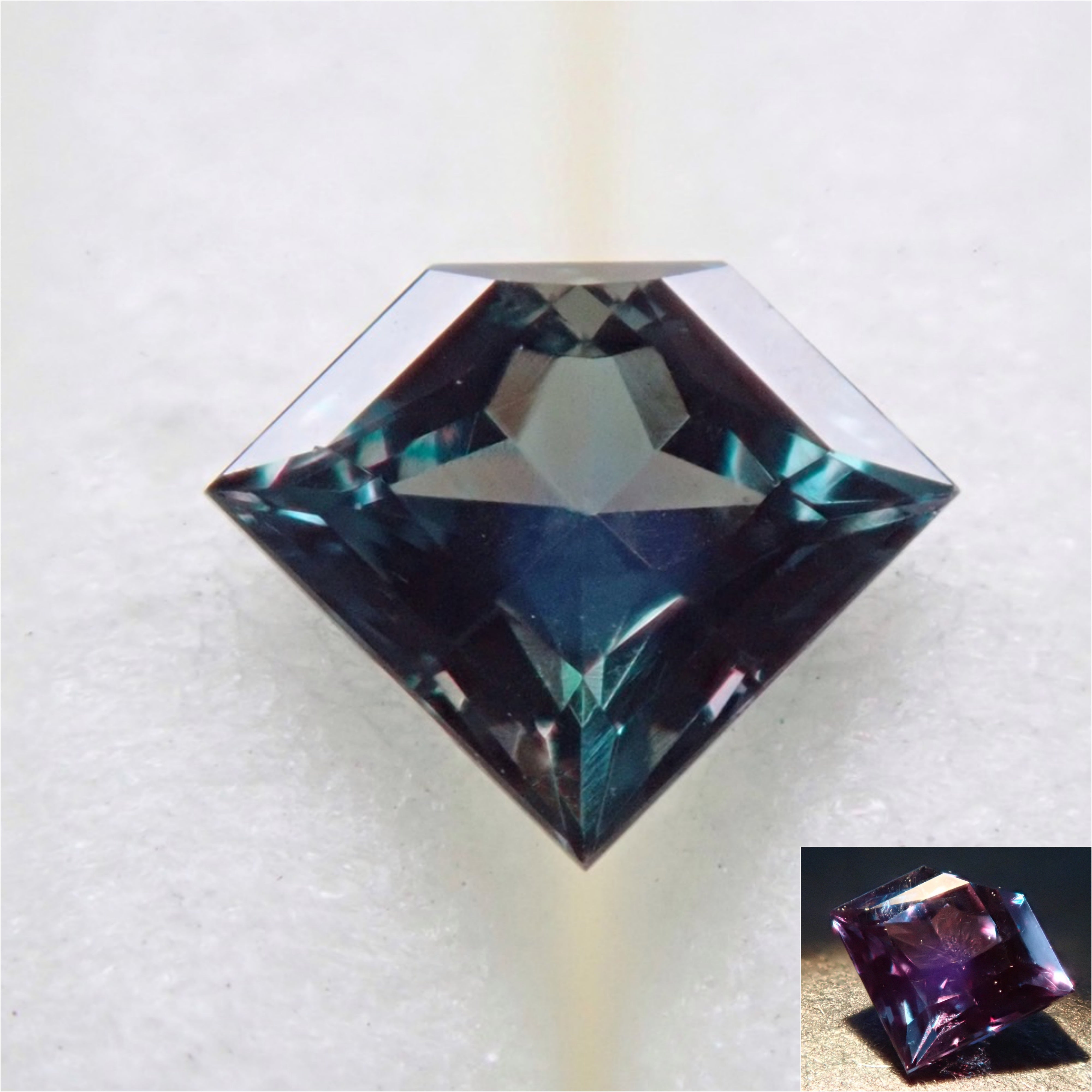 紫翠玉也被稱為「寶石之王」。它是一種顏色由綠色變為紅色的神秘寶石,也被稱為“白天的祖母綠和夜間的紅寶石”。這是來自巴西的亞歷山大變石。請使用紅色變色筆燈欣賞變色效果。這是一種高品質的裸石,在巴西亞歷山大變石中透明度特別高,可以欣賞到顏色的變化。這種鑽石形切工在亞歷山大變石中非常罕見。附有日德寶石研究所頒發的鑑定證書。