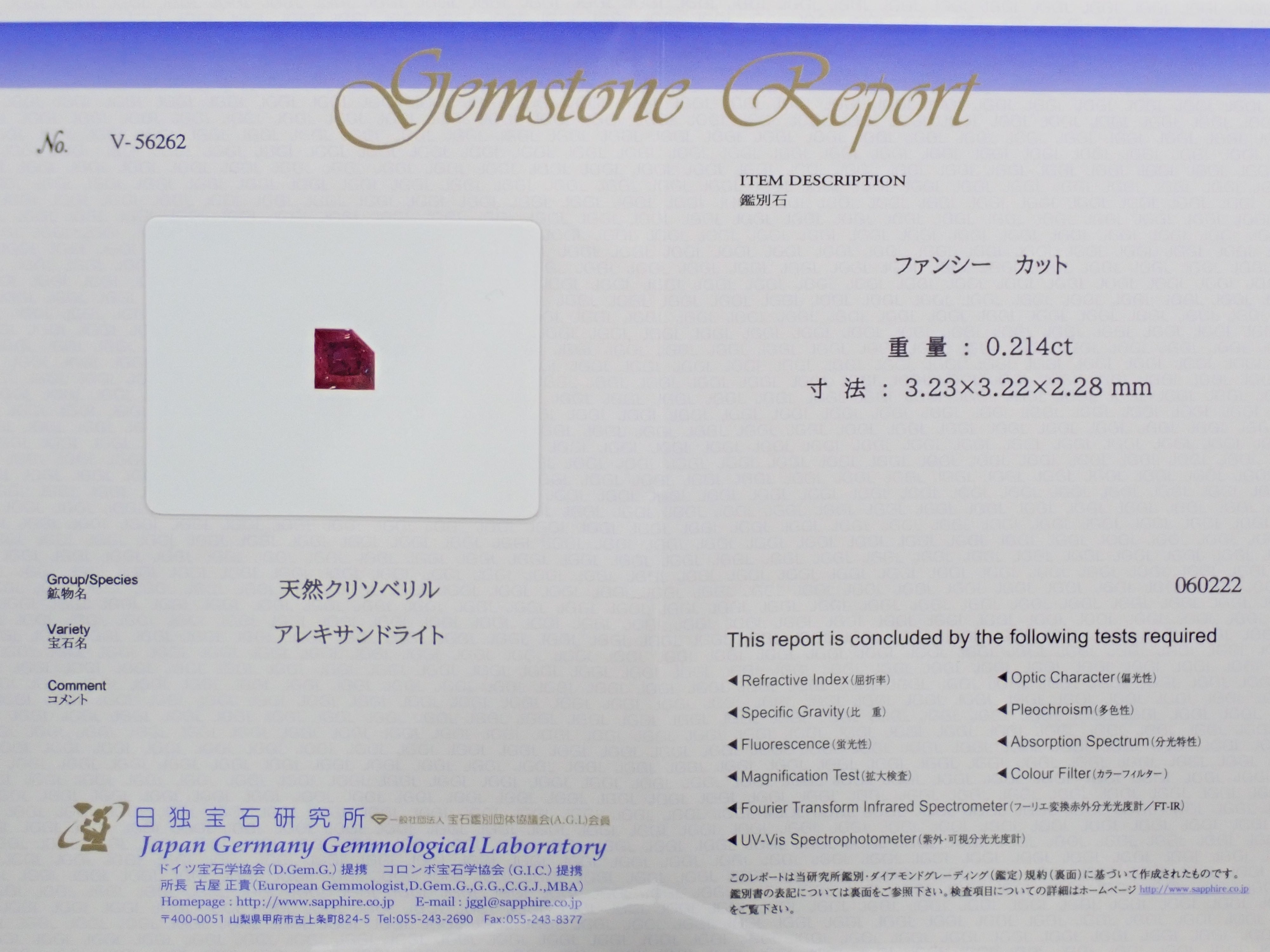 ・附件:鑑定書(日德寶石研究所)、盒子