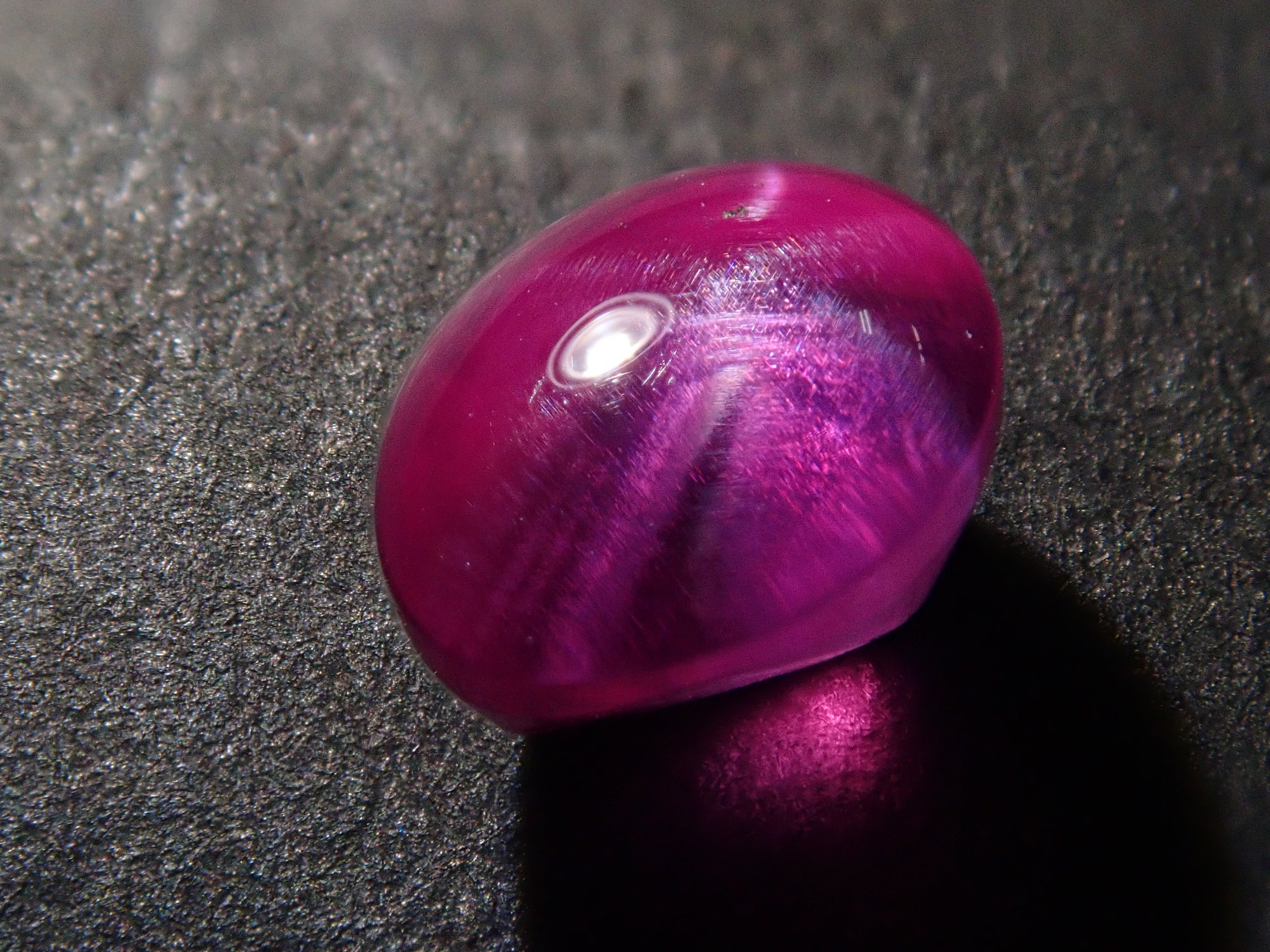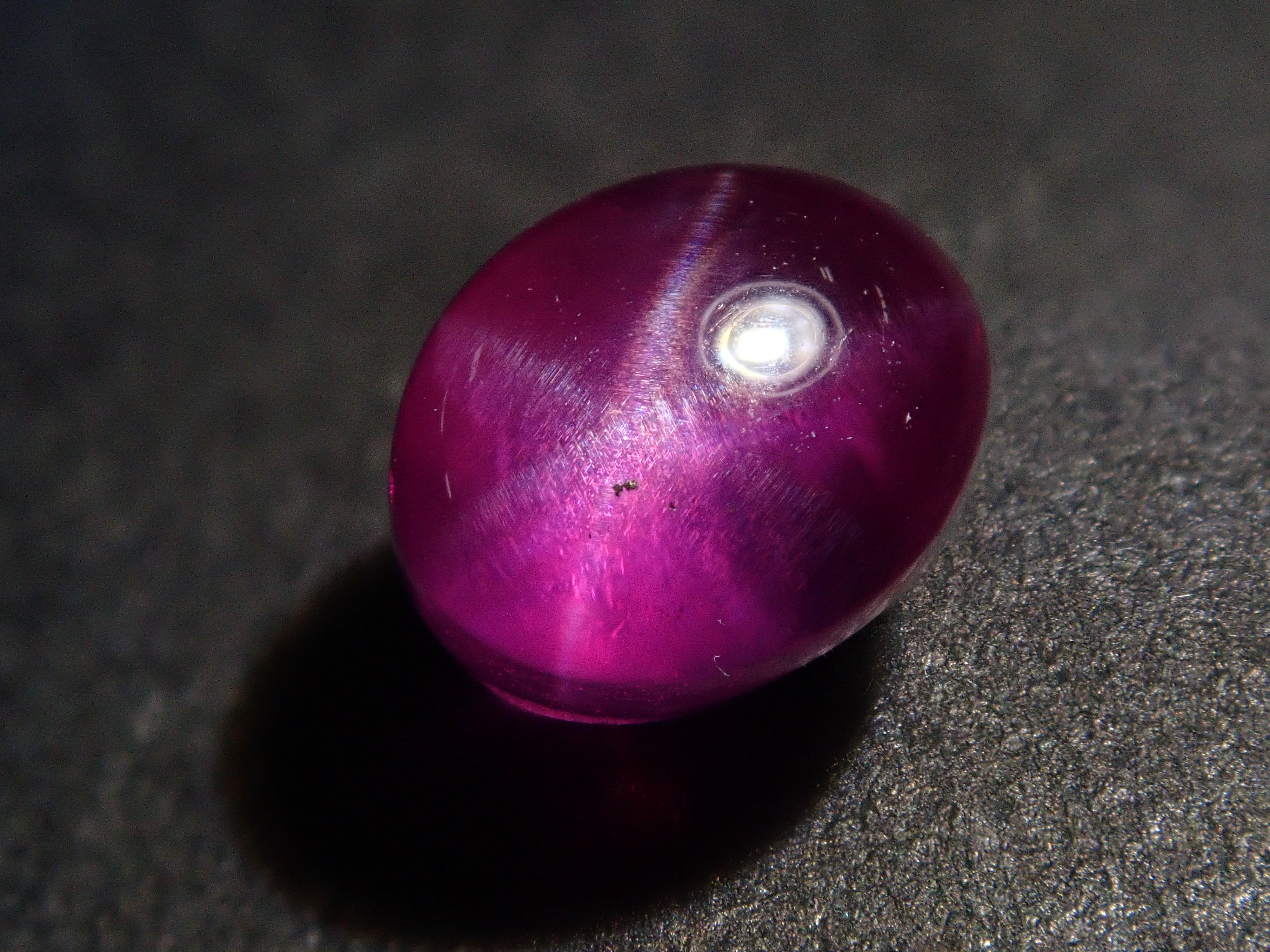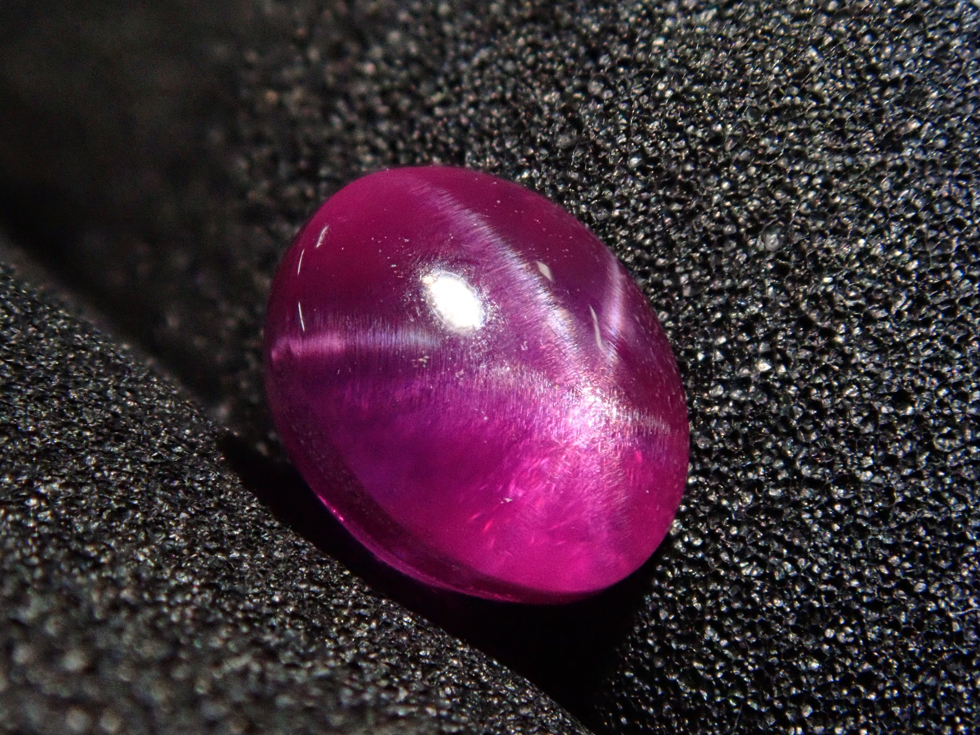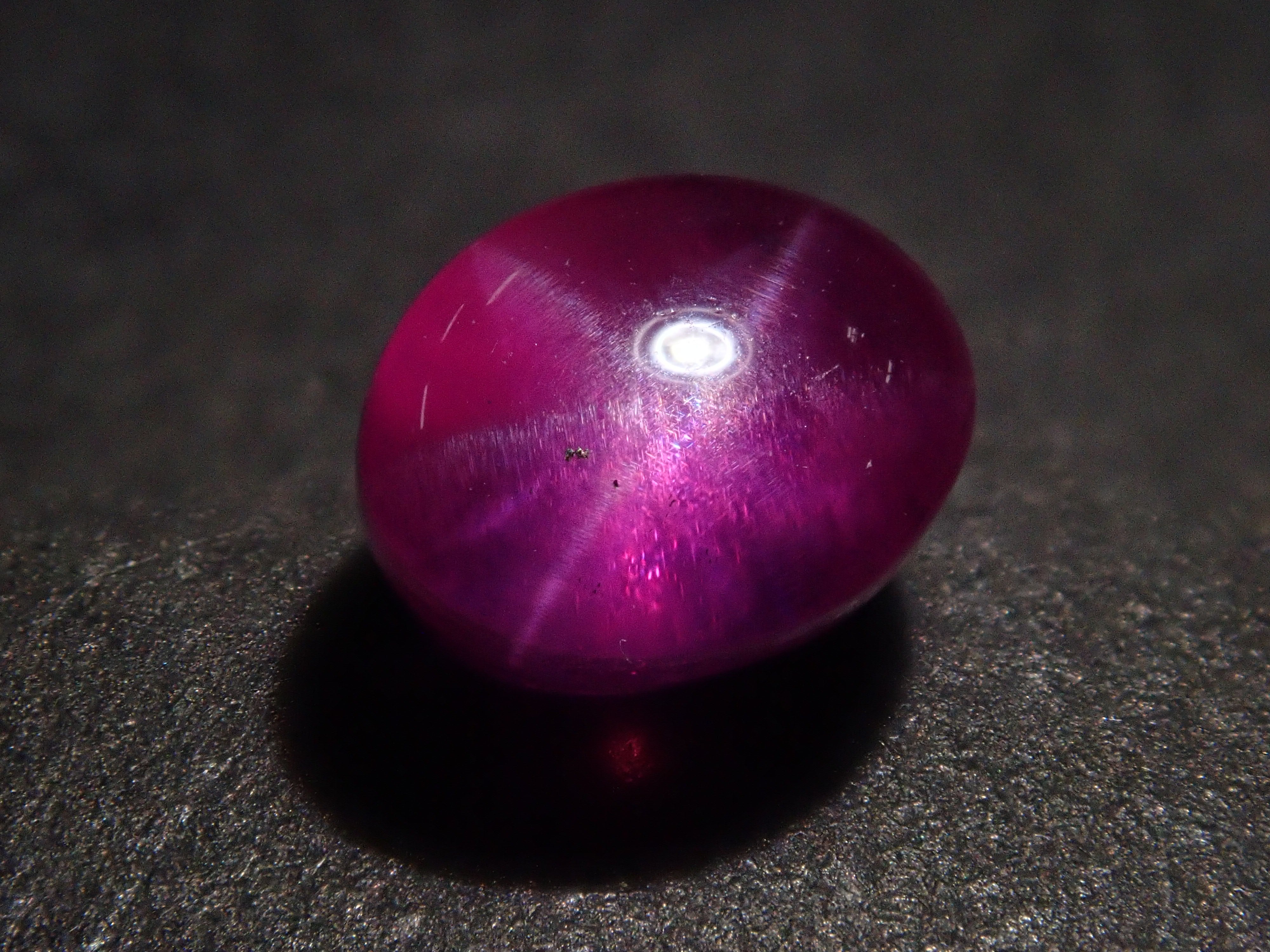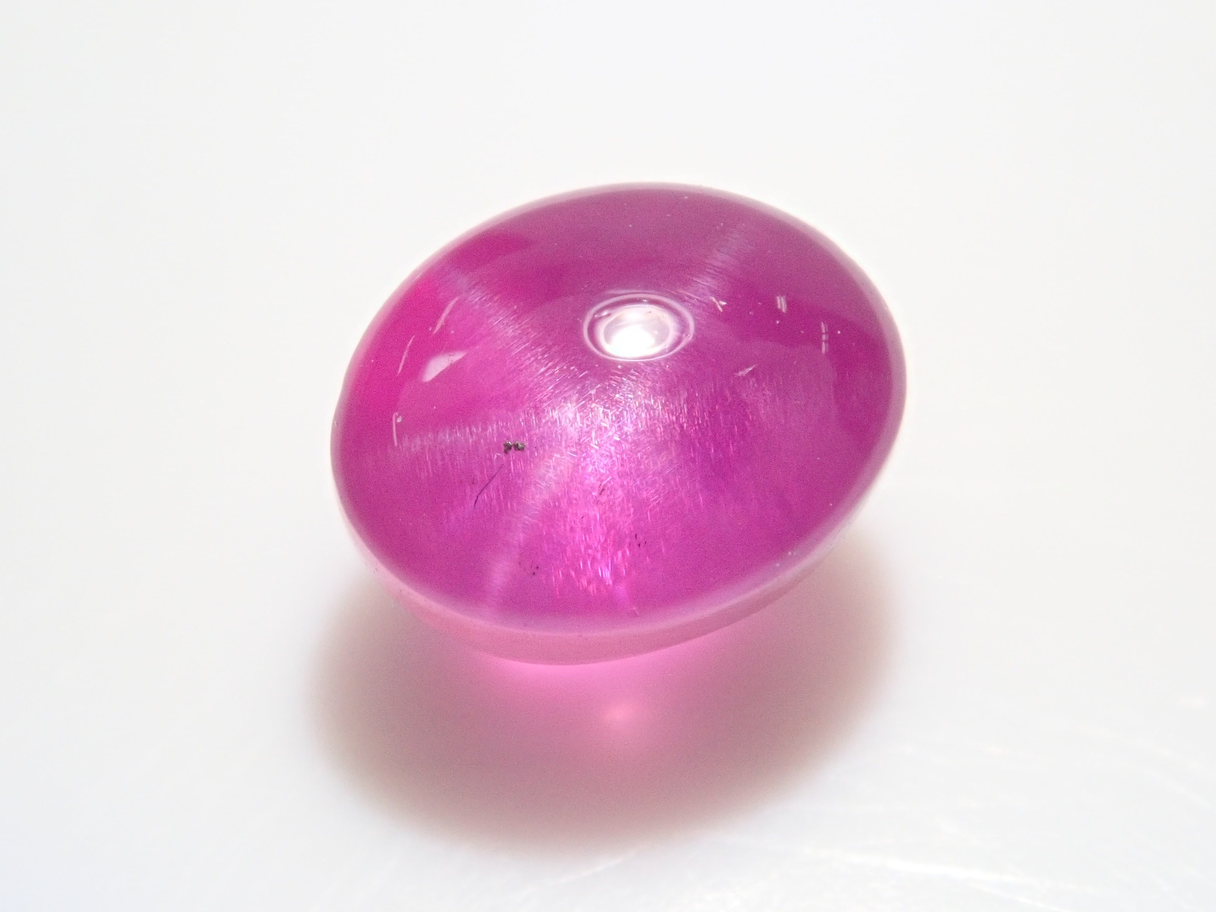 紅寶石自古以來就被視為寶石而受到推崇。指紅剛玉。紅寶石是僅次於鑽石的第二硬寶石,硬度為9,是一種堅韌、穩定且易於護理的寶石。這是一種帶有星光效果的紅寶石,用筆電筒拍攝。石頭的背面基本上是未拋光的。這是產自緬甸的罕見未加熱星光紅寶石。