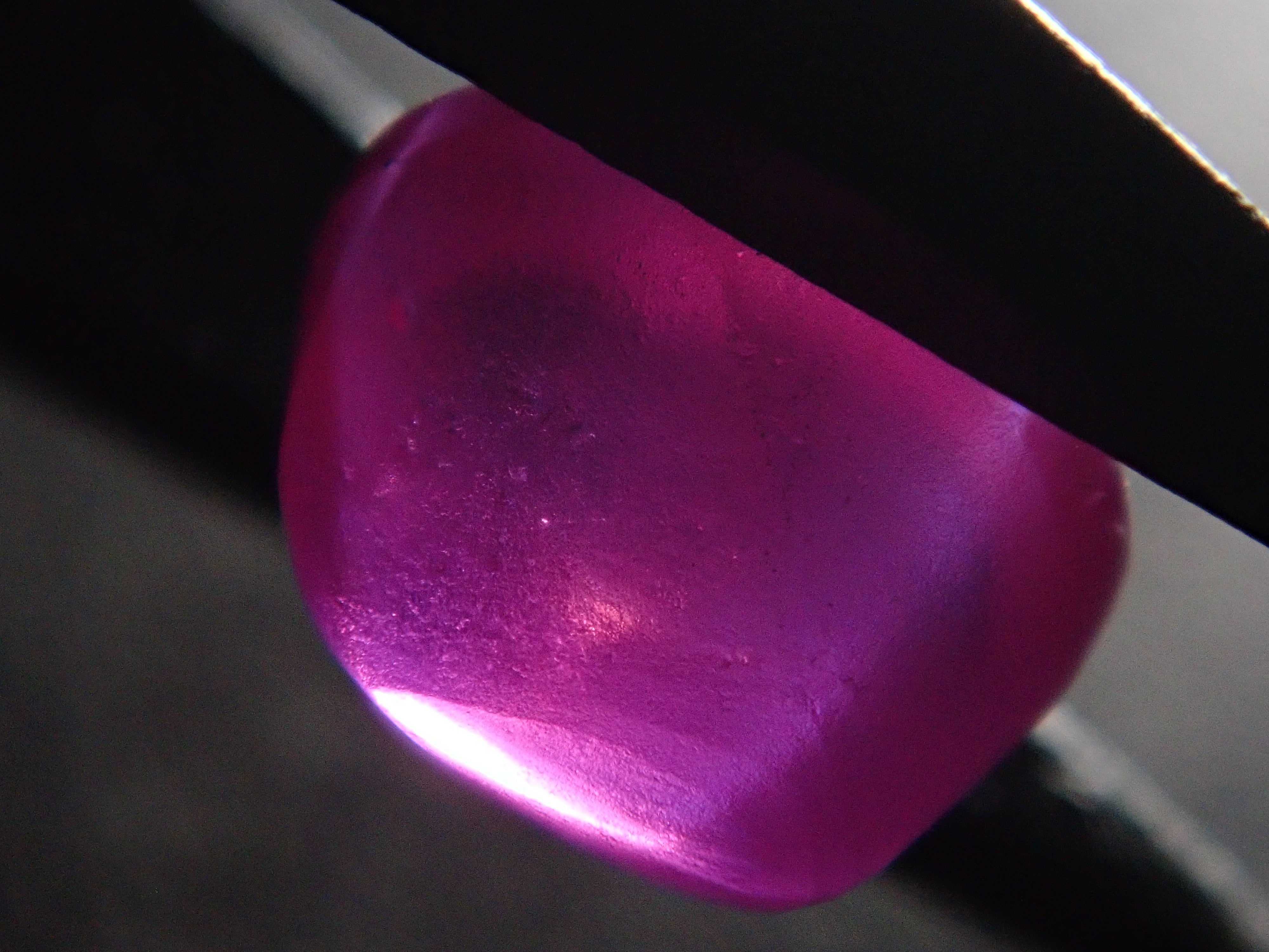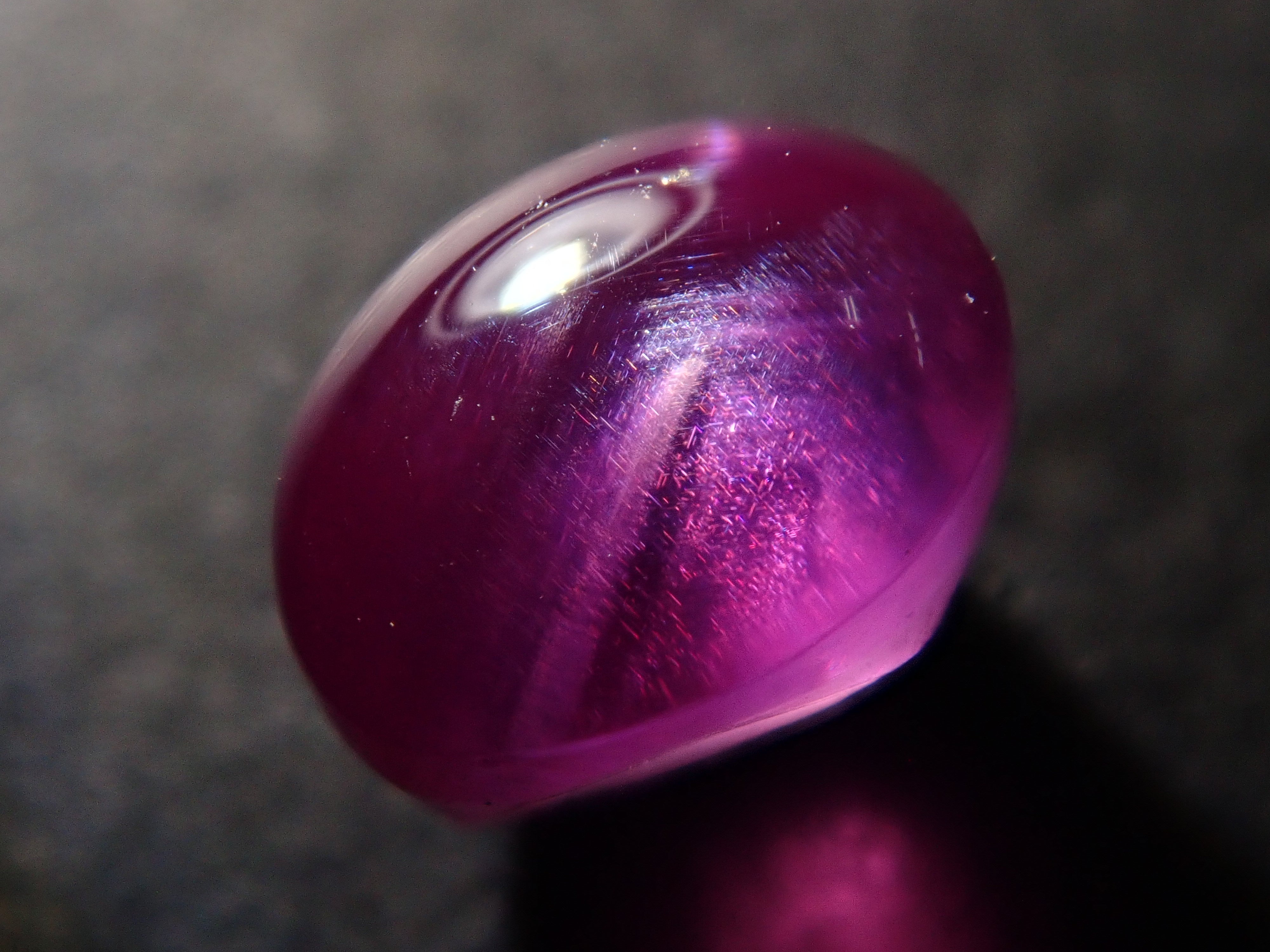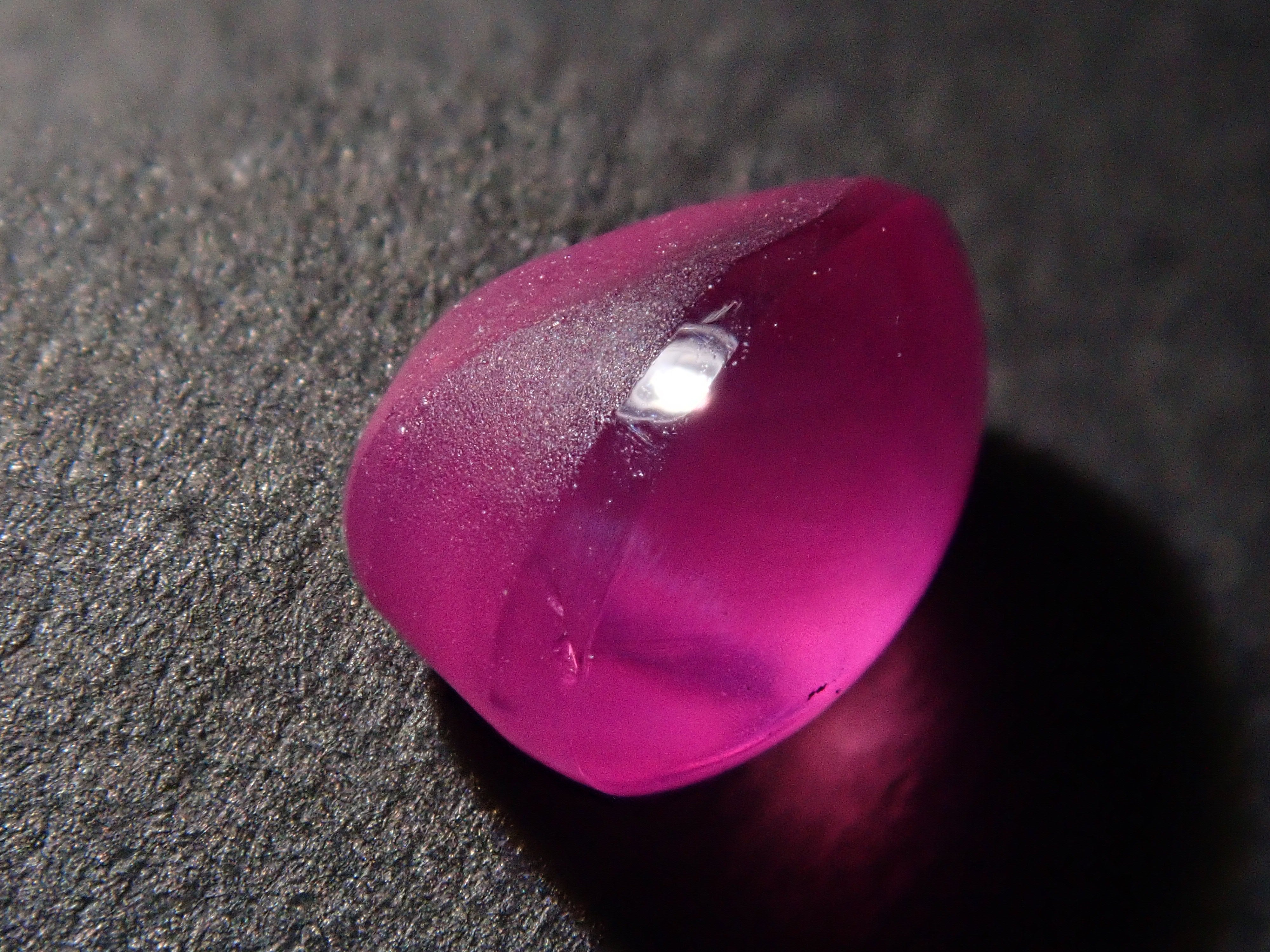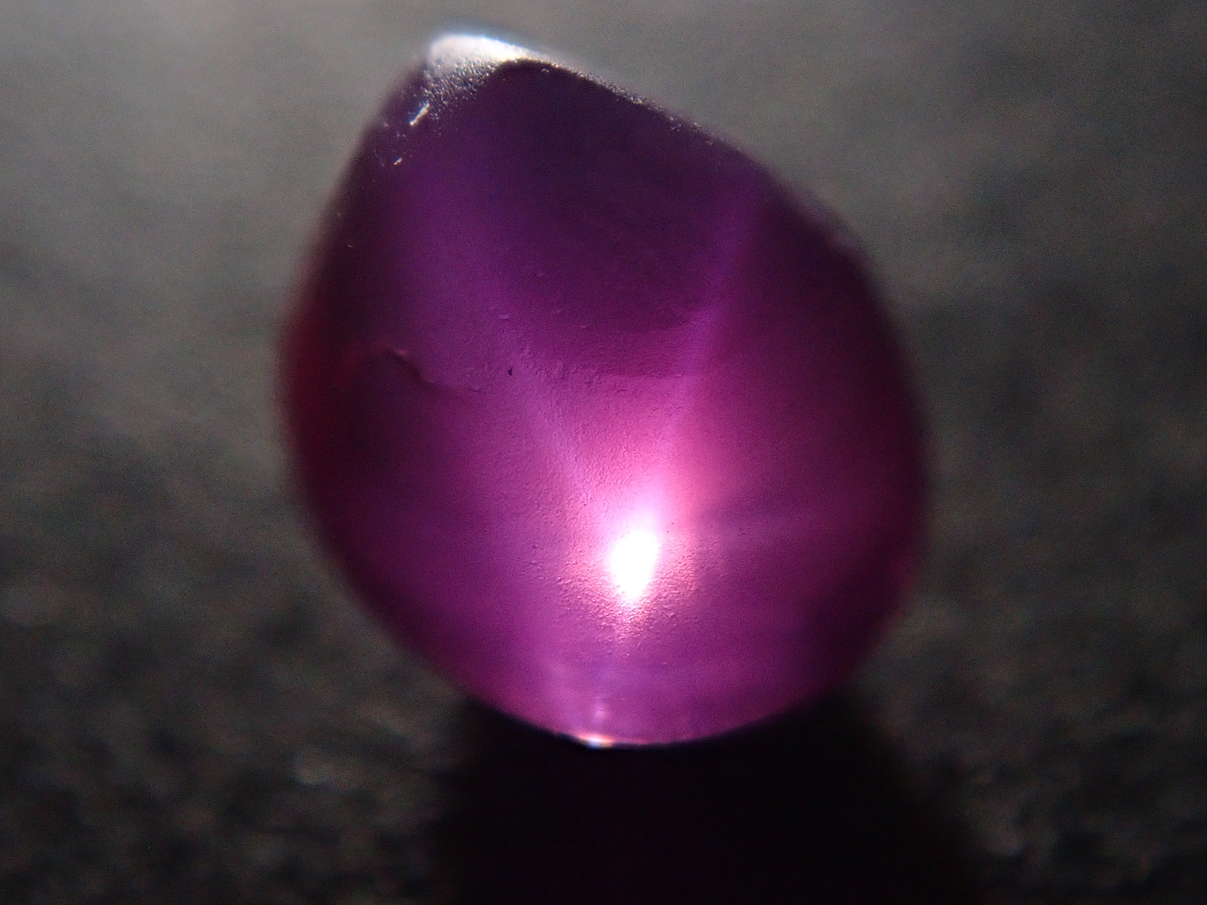 紅寶石自古以來就被視為寶石而受到推崇。指紅剛玉。紅寶石是僅次於鑽石的第二硬寶石,硬度為9,是一種堅韌、穩定且易於護理的寶石。這是一種帶有星光效果的紅寶石,用筆電筒拍攝。石頭的背面基本上是未拋光的。這是產自緬甸的罕見未加熱星光紅寶石。