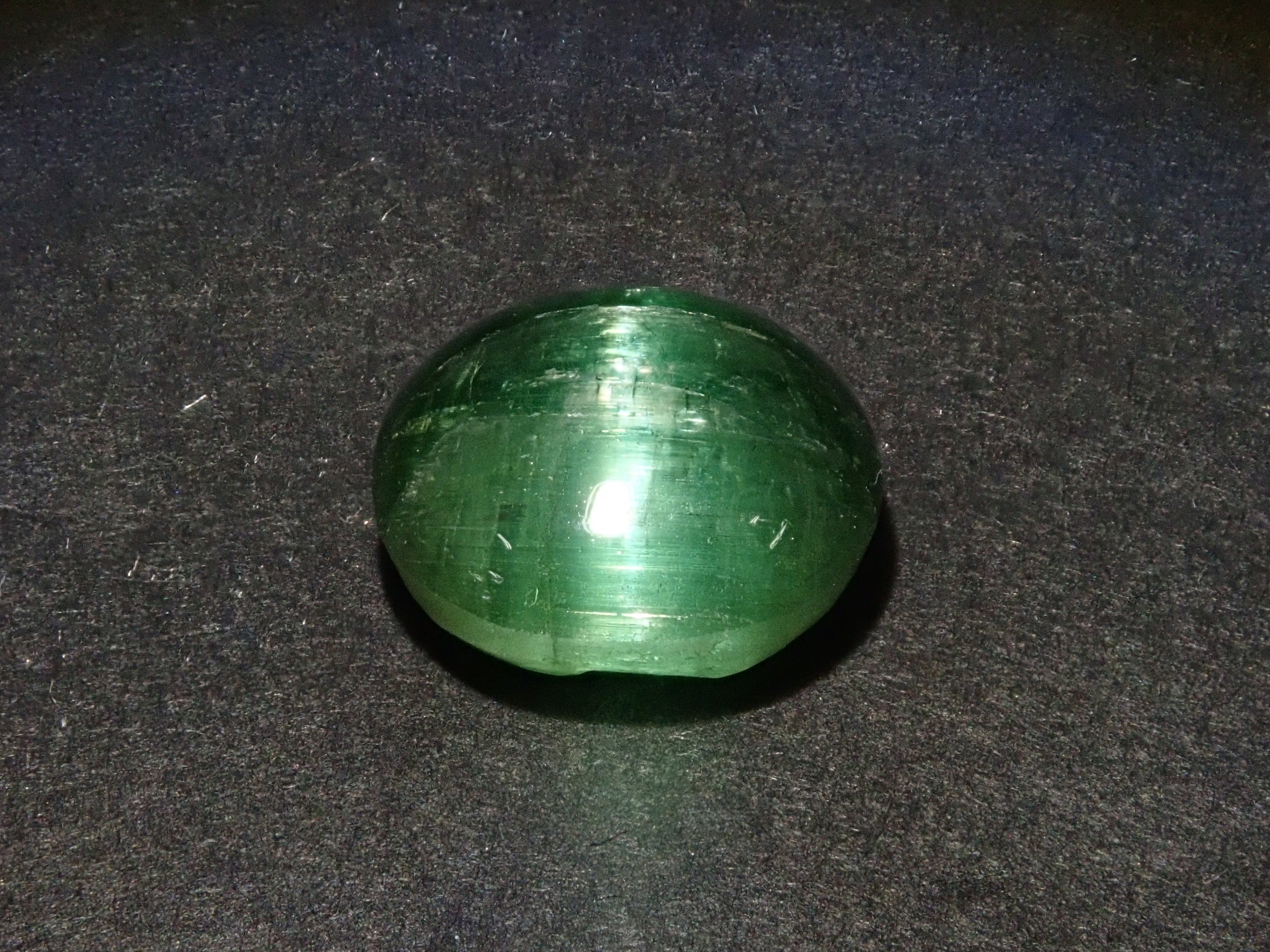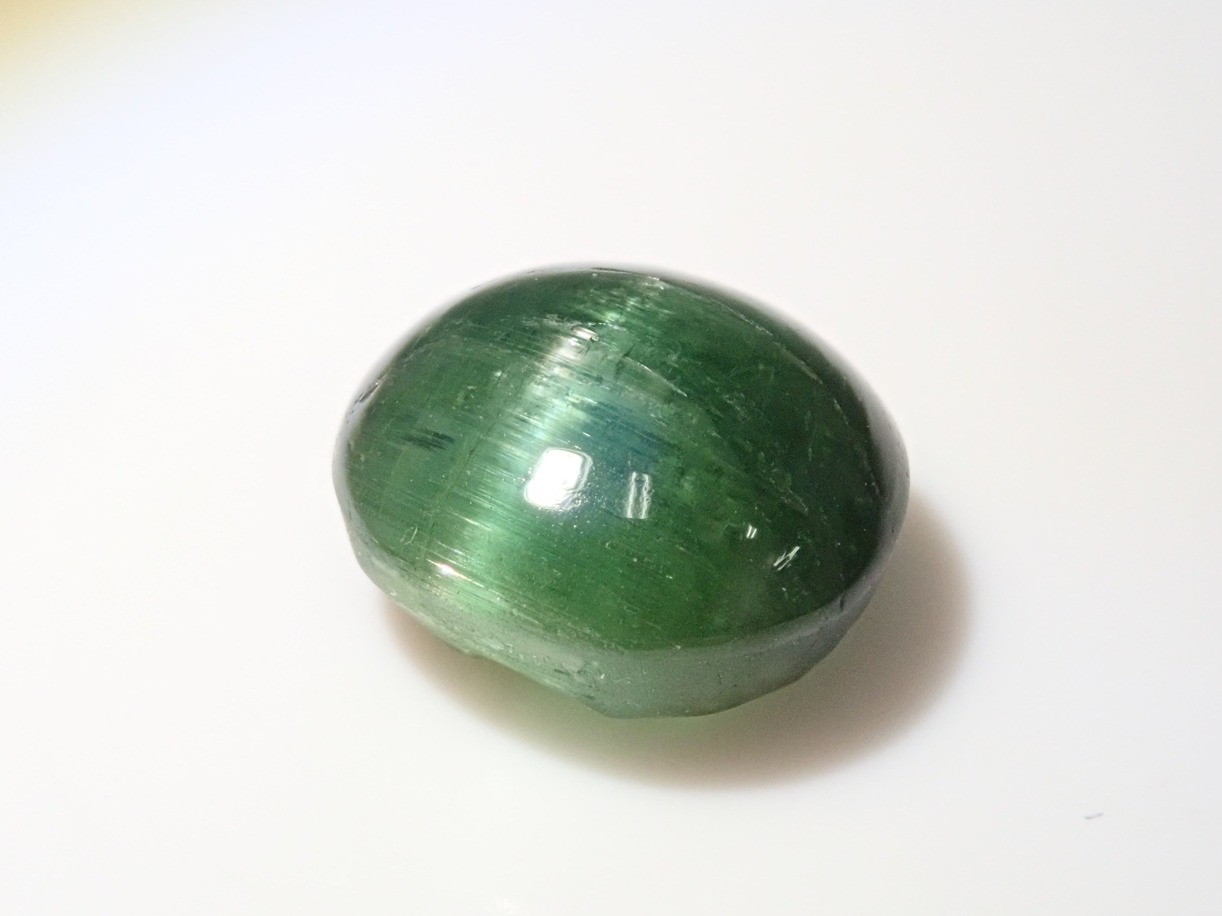 碧璽被稱為色彩寶庫。它擁有無數豐富的顏色,包括粉紅色、紅色、藍色、綠色、靛藍色、橙色、紫色、黑色和棕色。這是一種呈現出貓眼效果的碧璽。照片使用了筆型手電筒拍攝。寶石背面通常未經拋光。