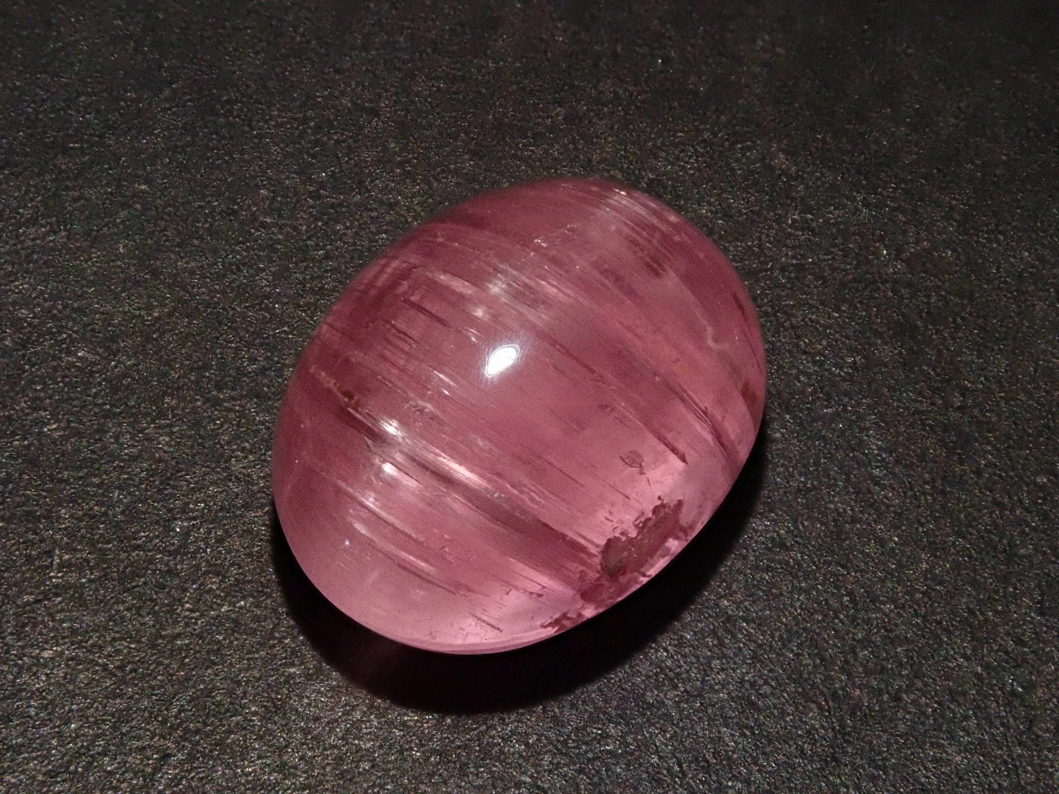 碧璽被稱為色彩寶庫。它有無數豐富的顏色,包括粉紅色、紅色、藍色、綠色、靛藍、橙色、紫色、黑色和棕色。這是可以看到貓眼效果的類型。筆燈用於攝影。石頭的背面基本上是未拋光的。