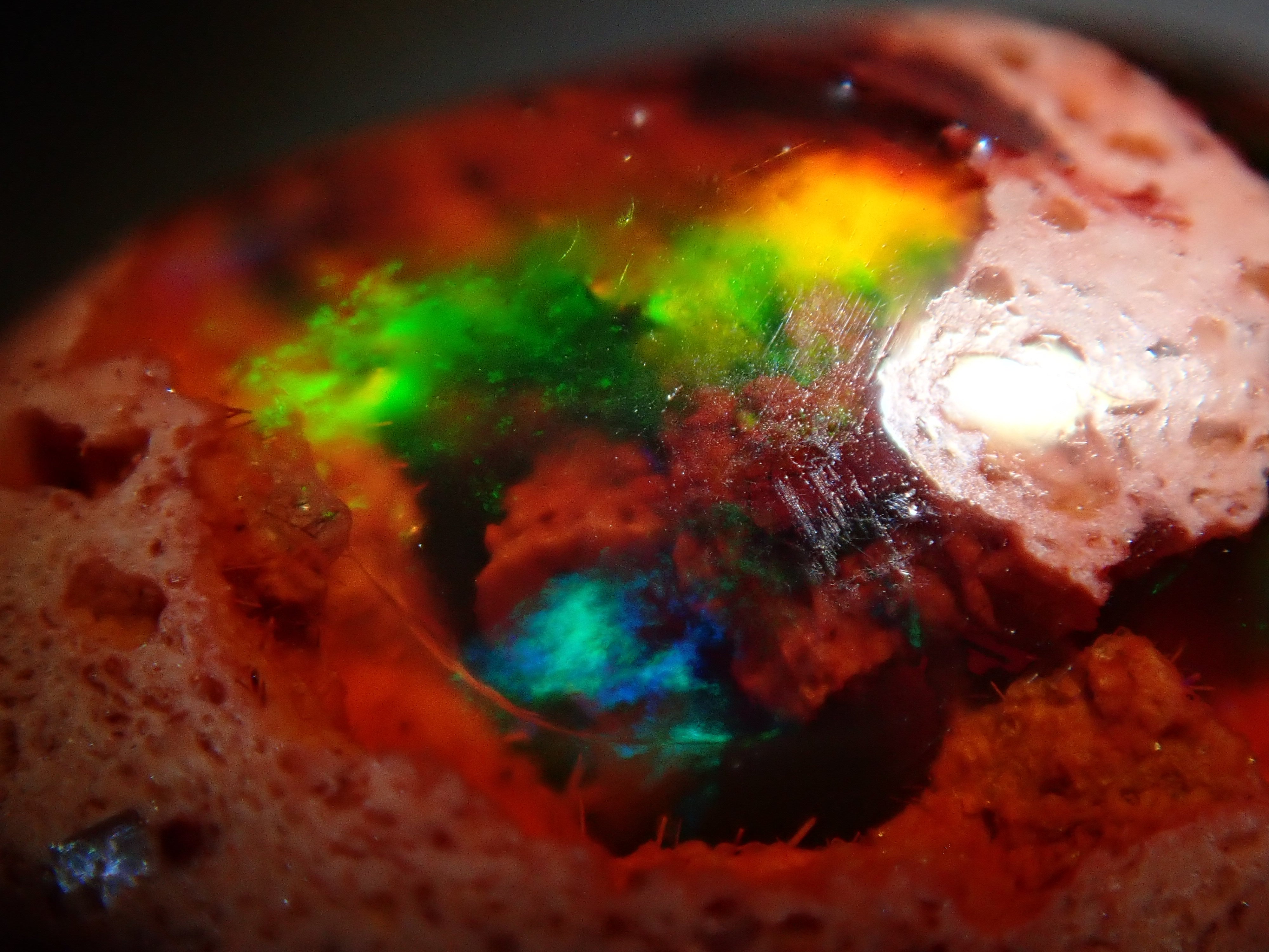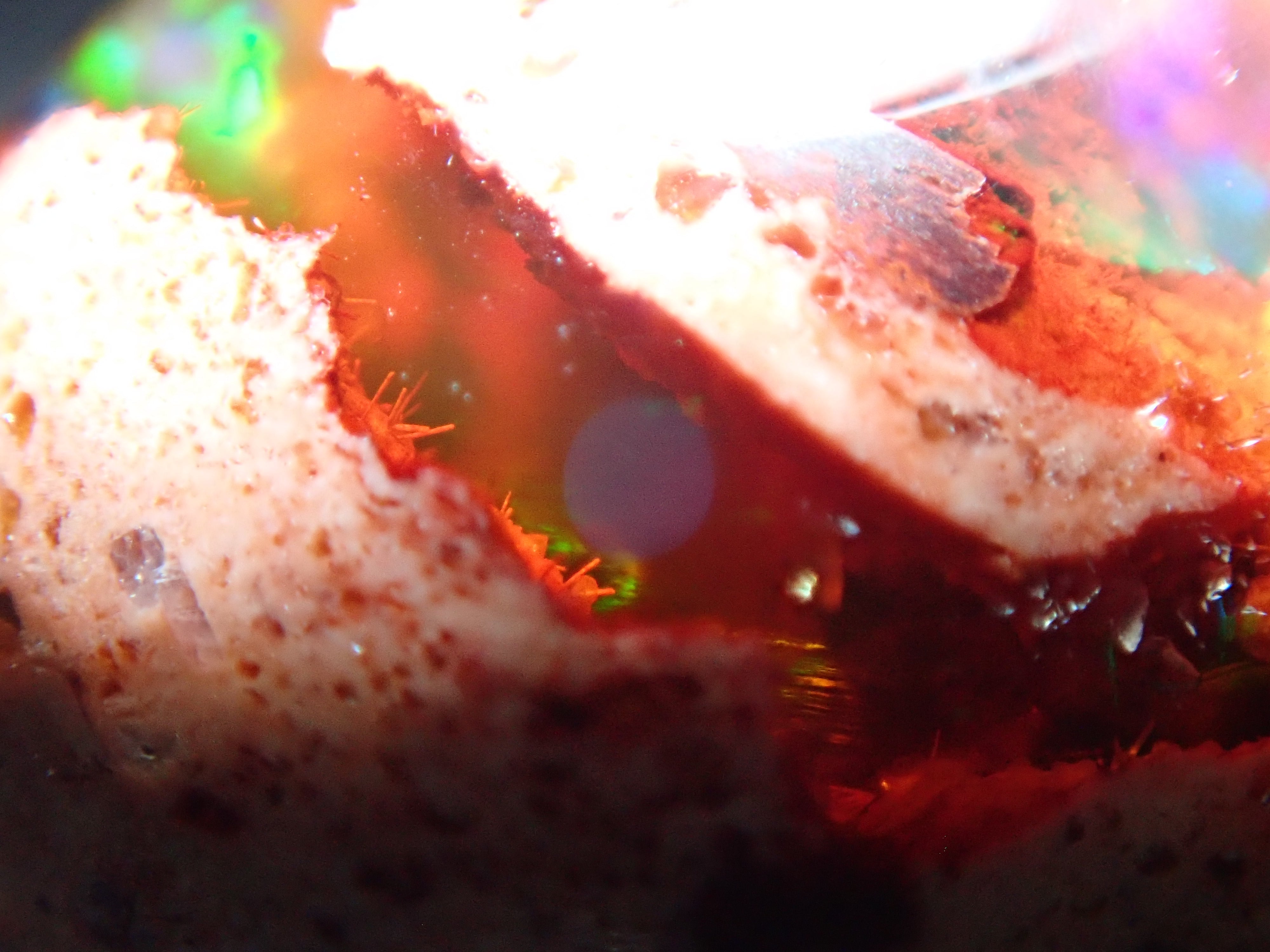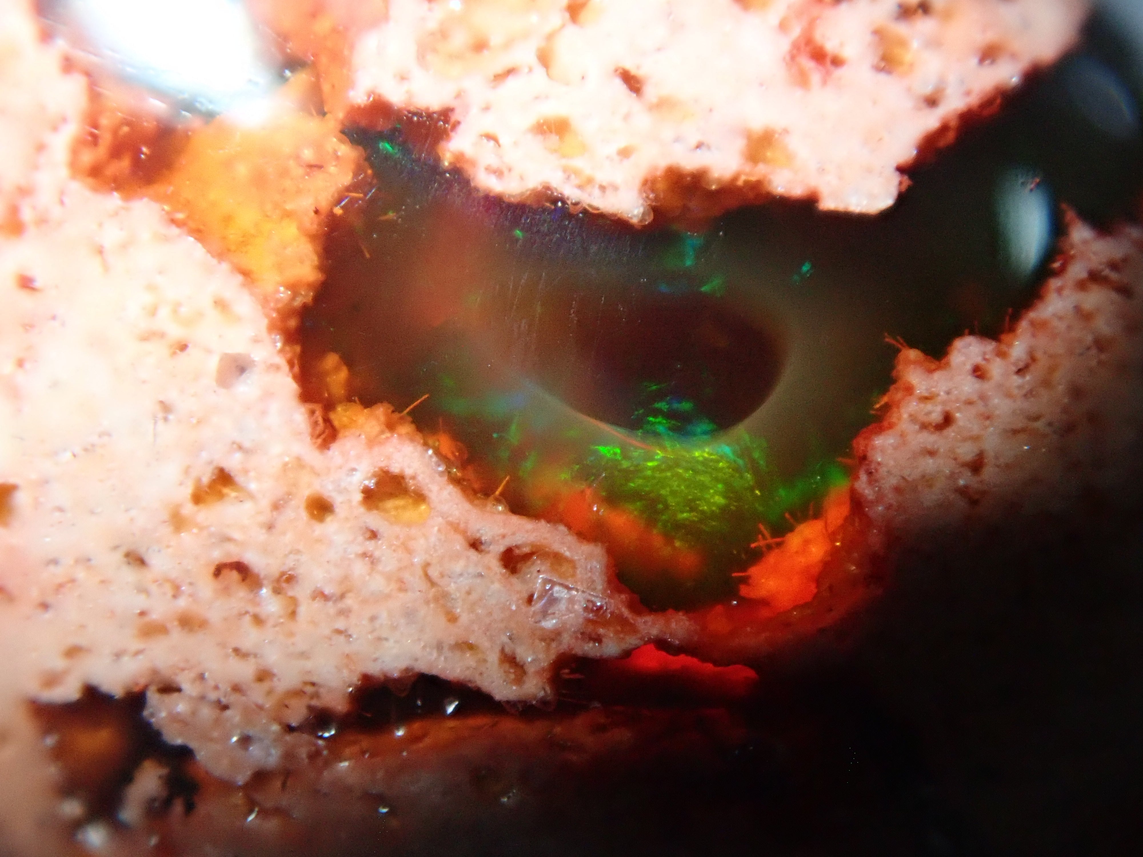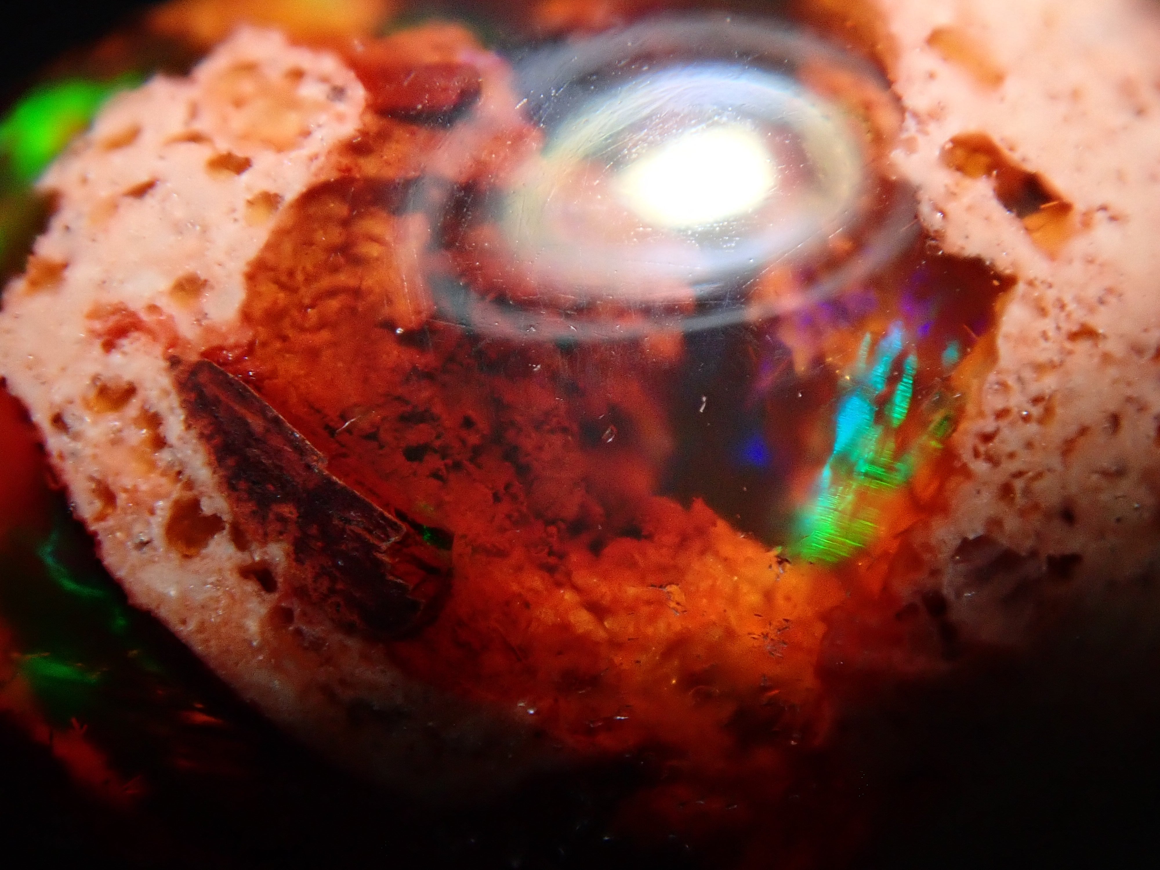 Cantera 蛋白石原本是一種有許多環的寶石。照片是使用筆燈拍攝的。