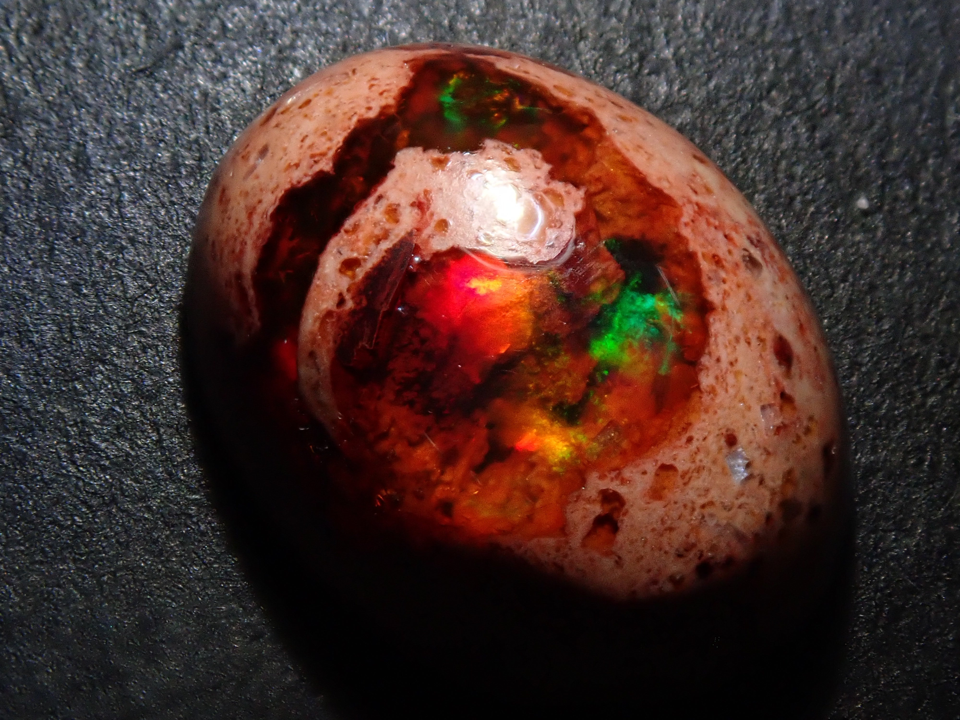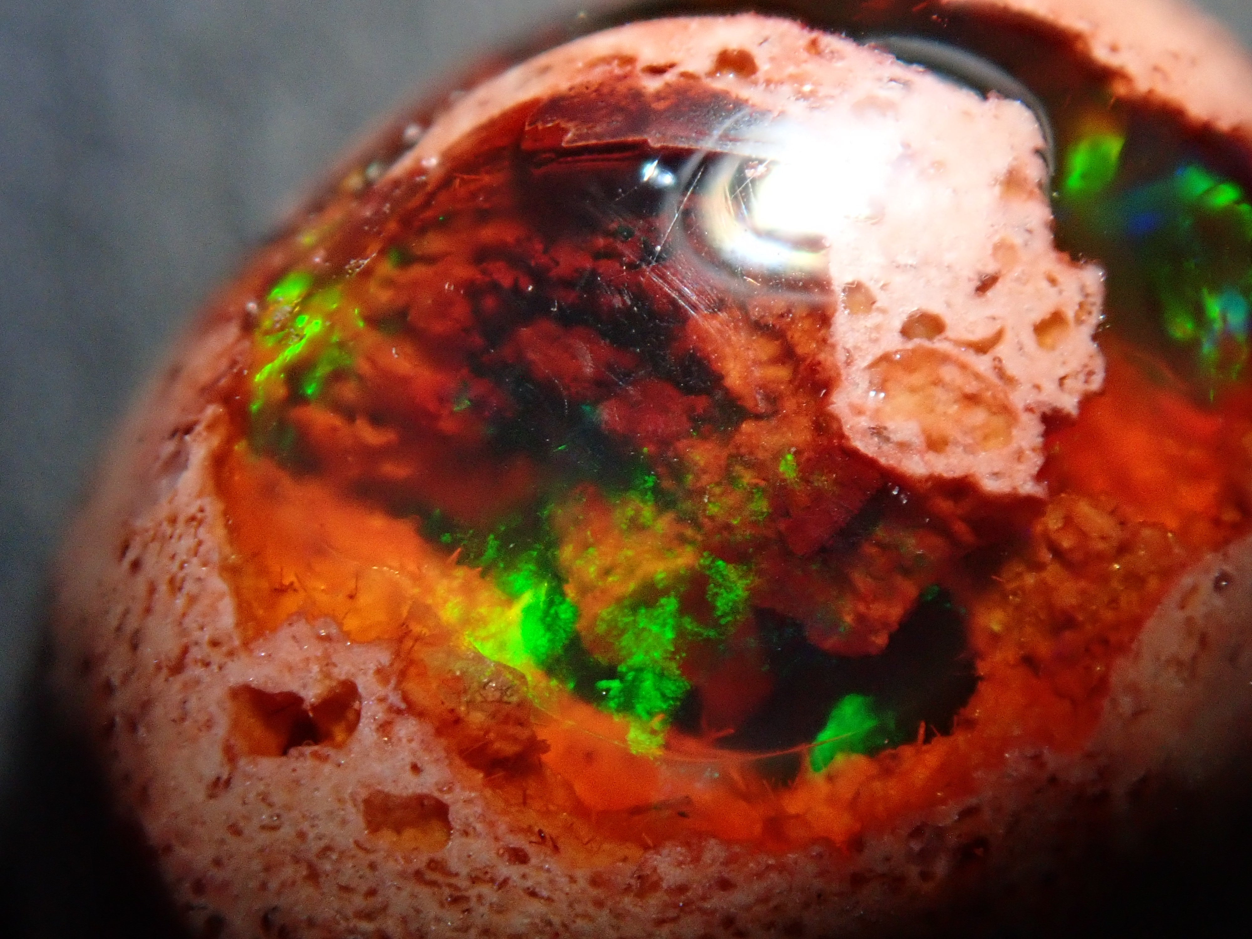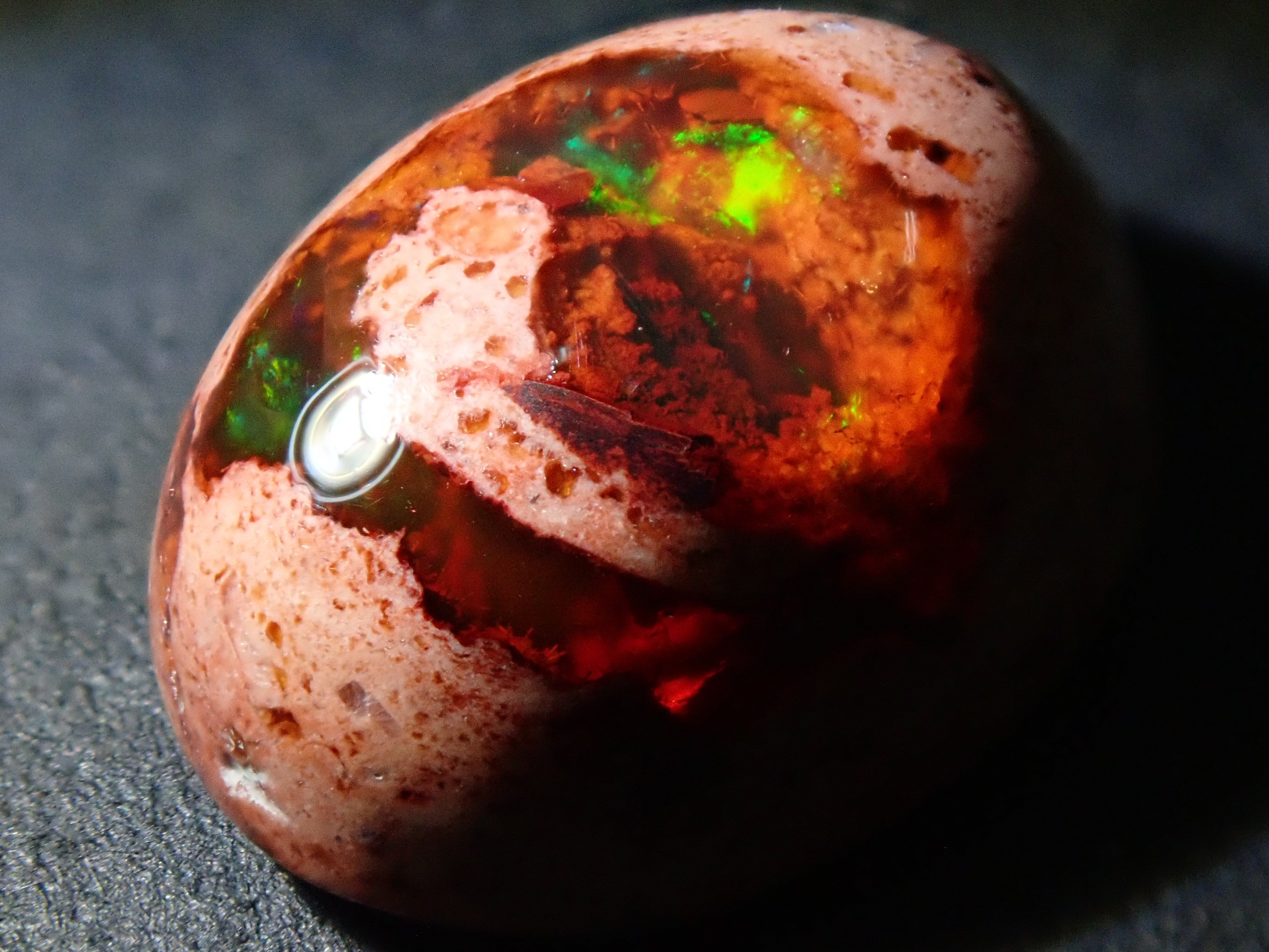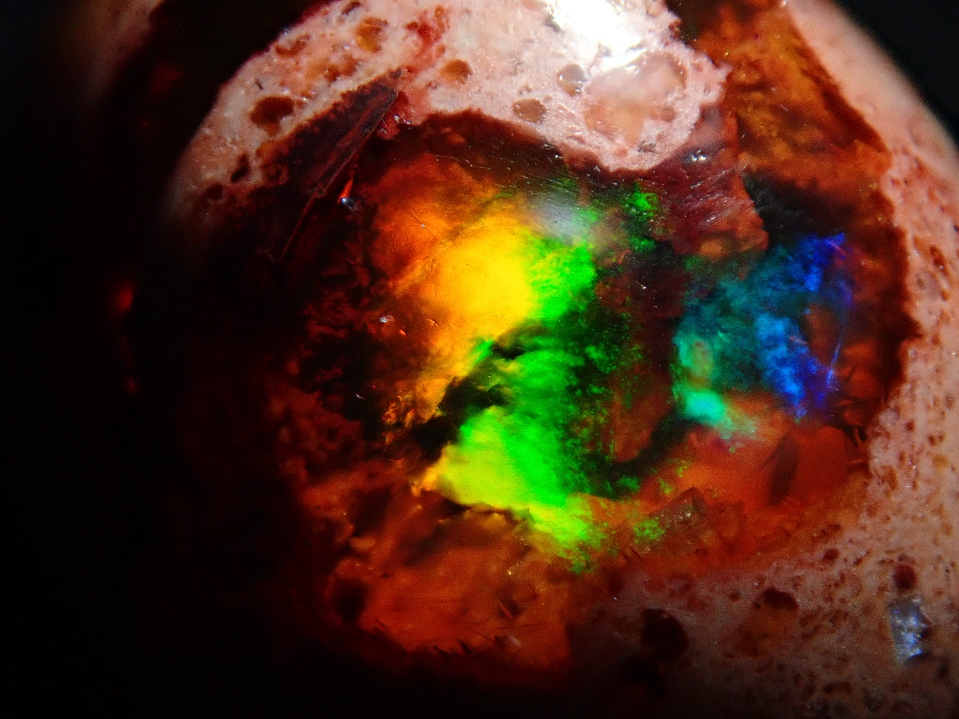 Cantera 蛋白石原本是一種有許多環的寶石。照片是使用筆燈拍攝的。