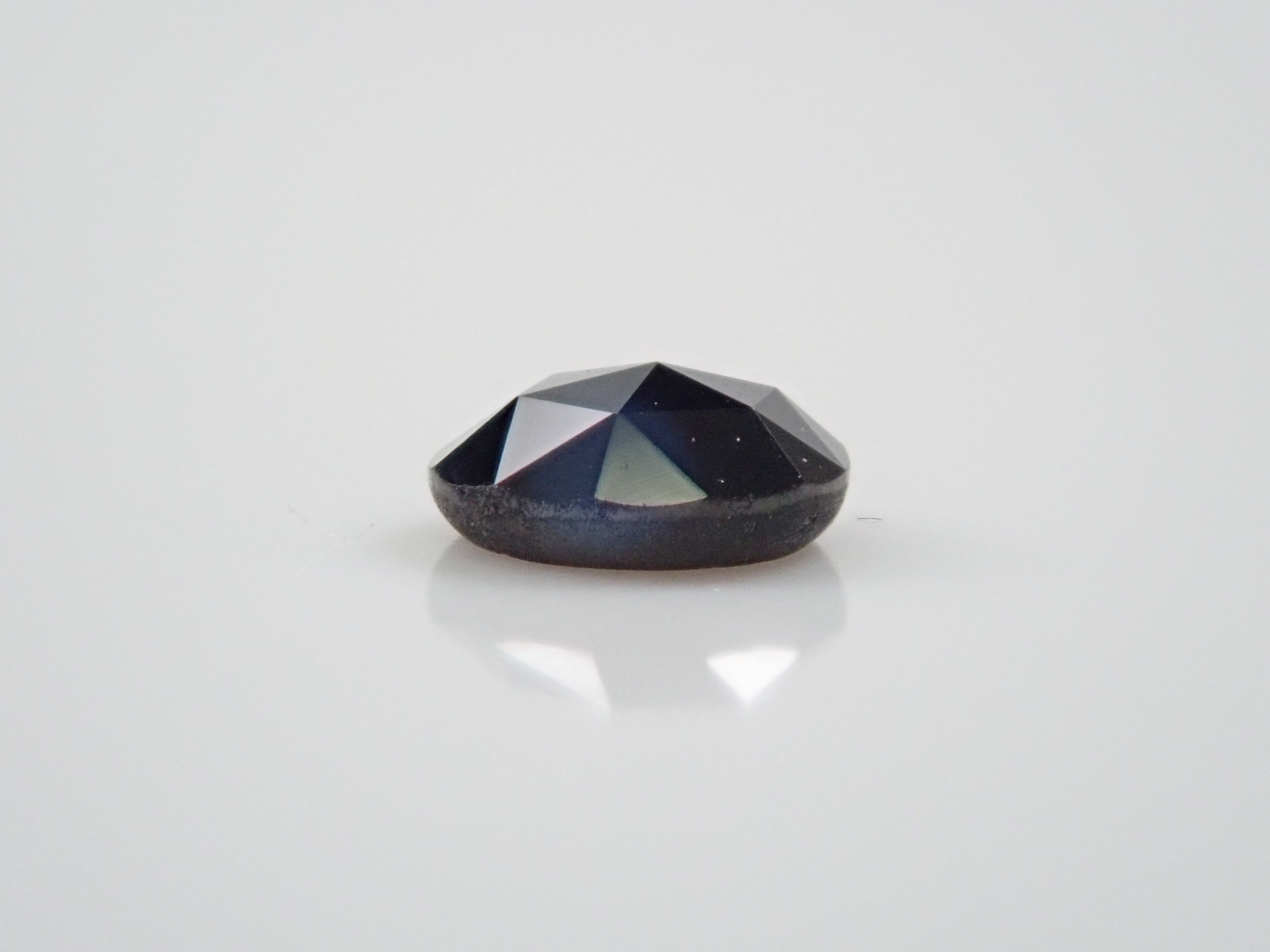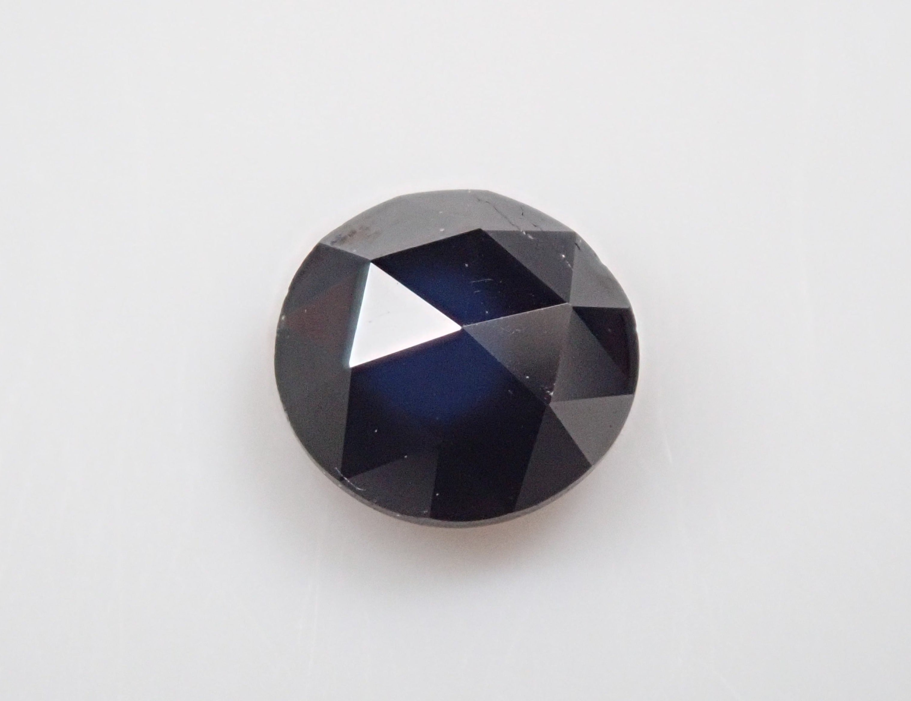 在眾多寶石中,鑽石是最特別的寶石之一。事實上,它是一種顏色變化多樣的石頭,不僅有無色透明,還有粉紅色、藍色、紅色、棕色、綠色、黃色等。這是一顆黑鑽石。玫瑰切割/3.7 毫米。您在黑鑽石表面看到的圓形白色物體是相機鏡頭的反射。其實並不是。