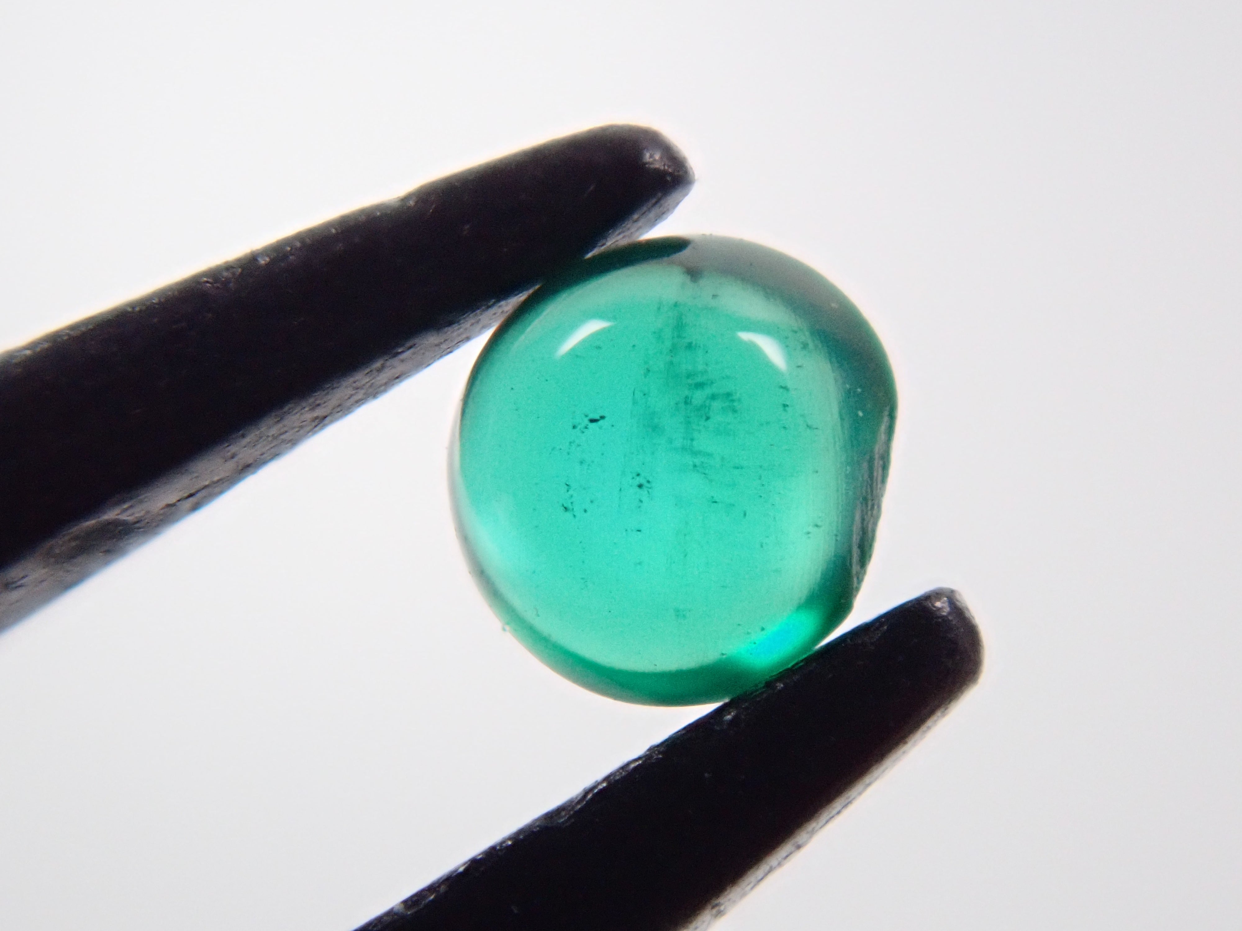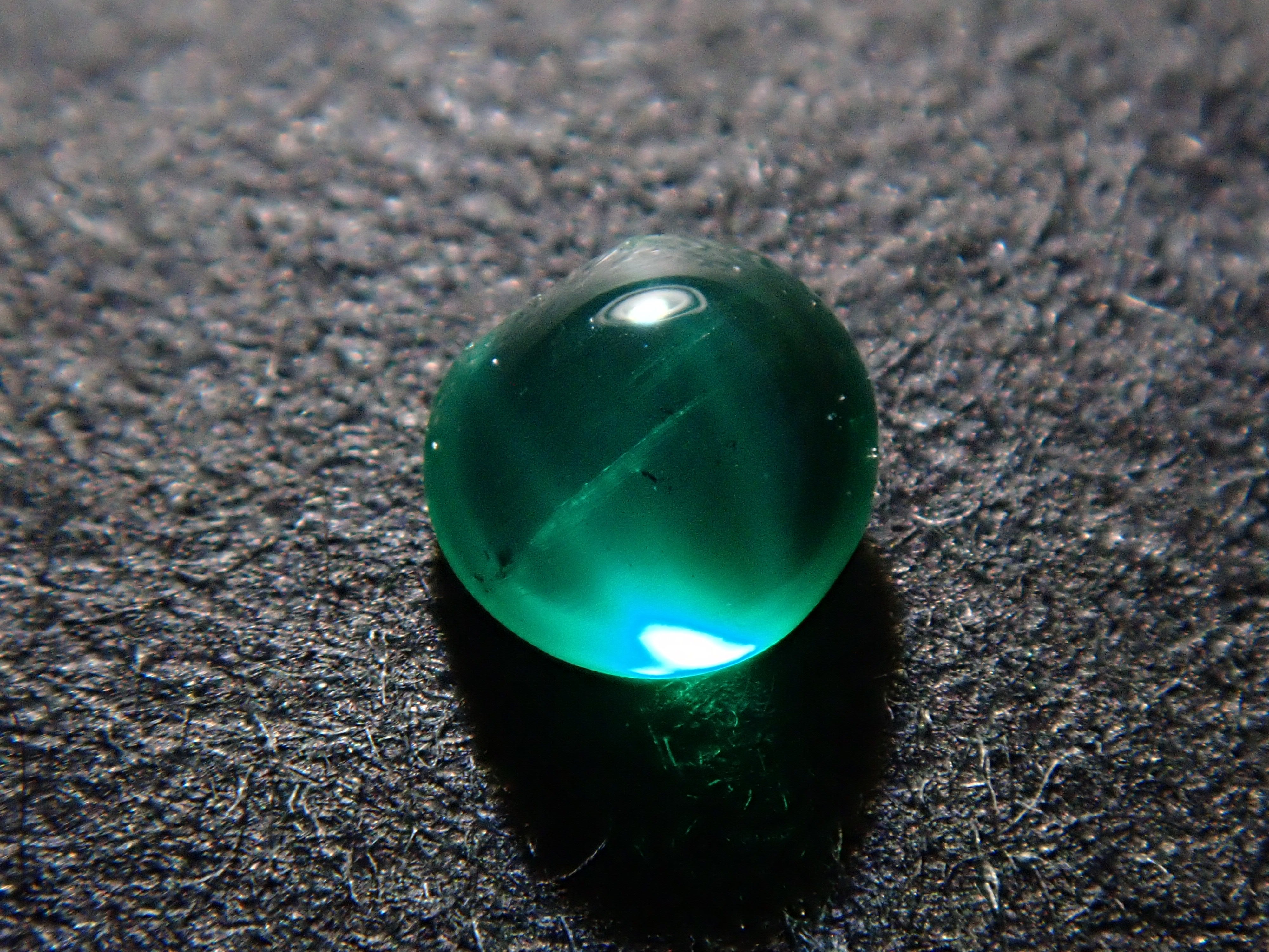 祖母綠是一種因受到埃及豔後克莉奧佩特拉的喜愛而聞名的寶石。它也是一塊有瑕疵的石頭,以至於有「完美無瑕的祖母綠比沒有瑕疵的人還少」的說法。因此,通常使用油處理來使刮痕不那麼明顯。當暴露在光線下時,您可以看到貓眼效應(貓眼)。溫柔與清新融為一體的表情非常吸引人。照片是使用筆燈拍攝的。石頭的背面基本上是未拋光的。