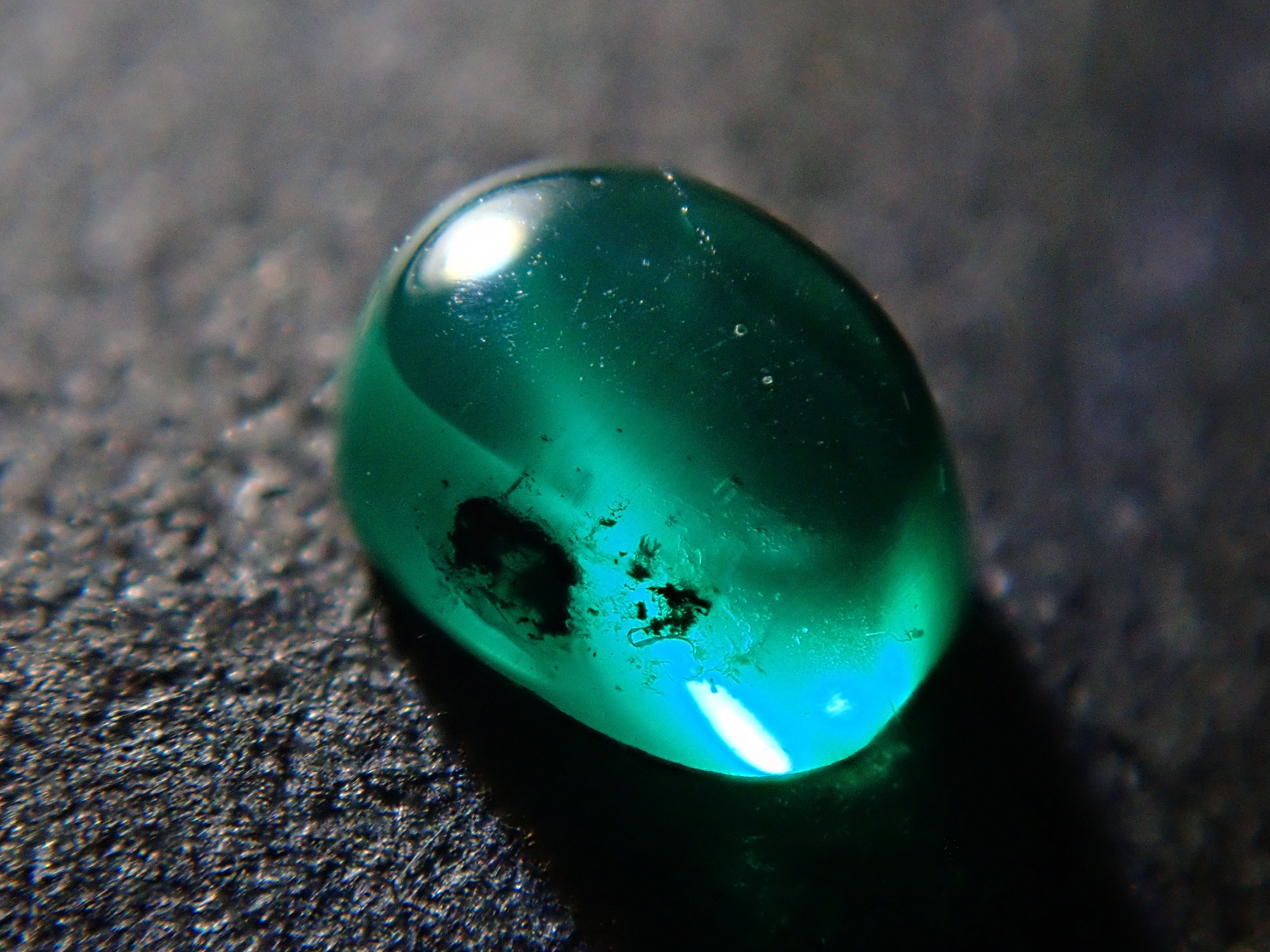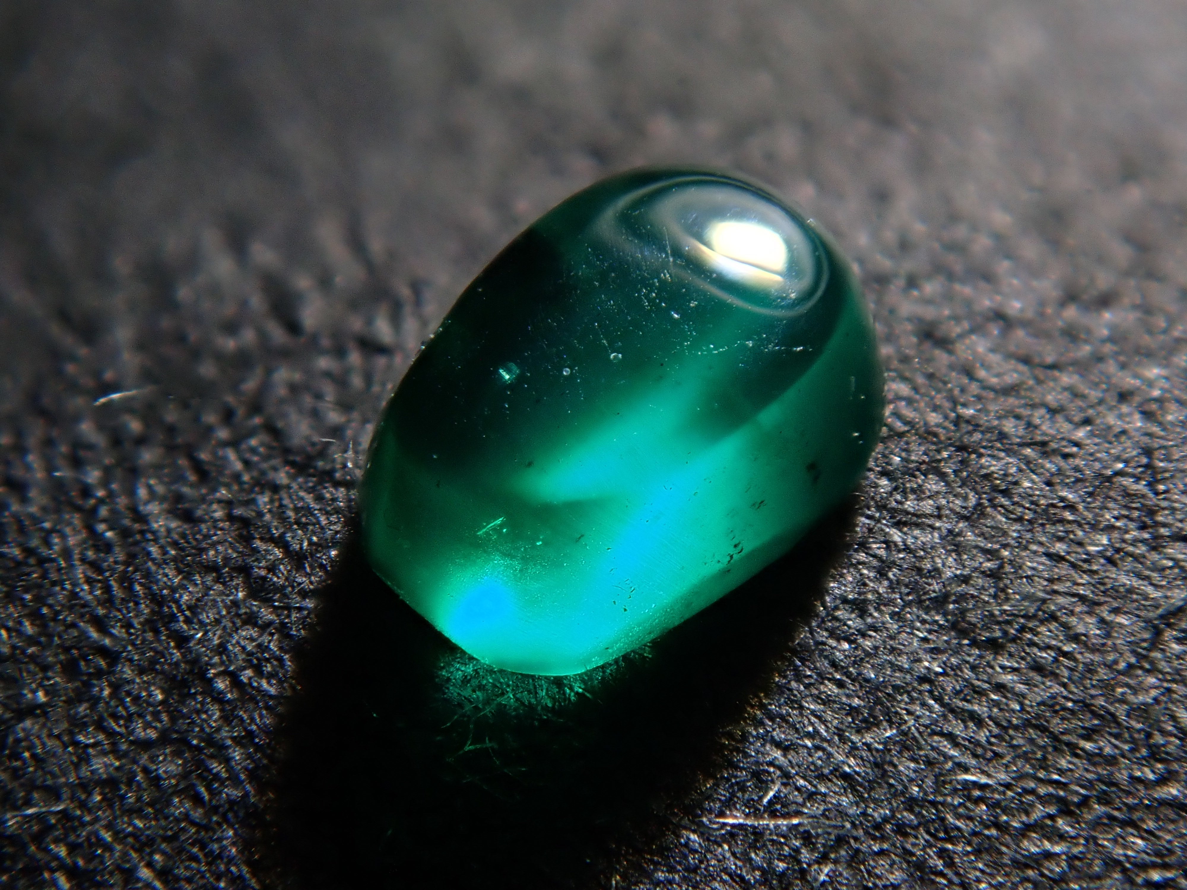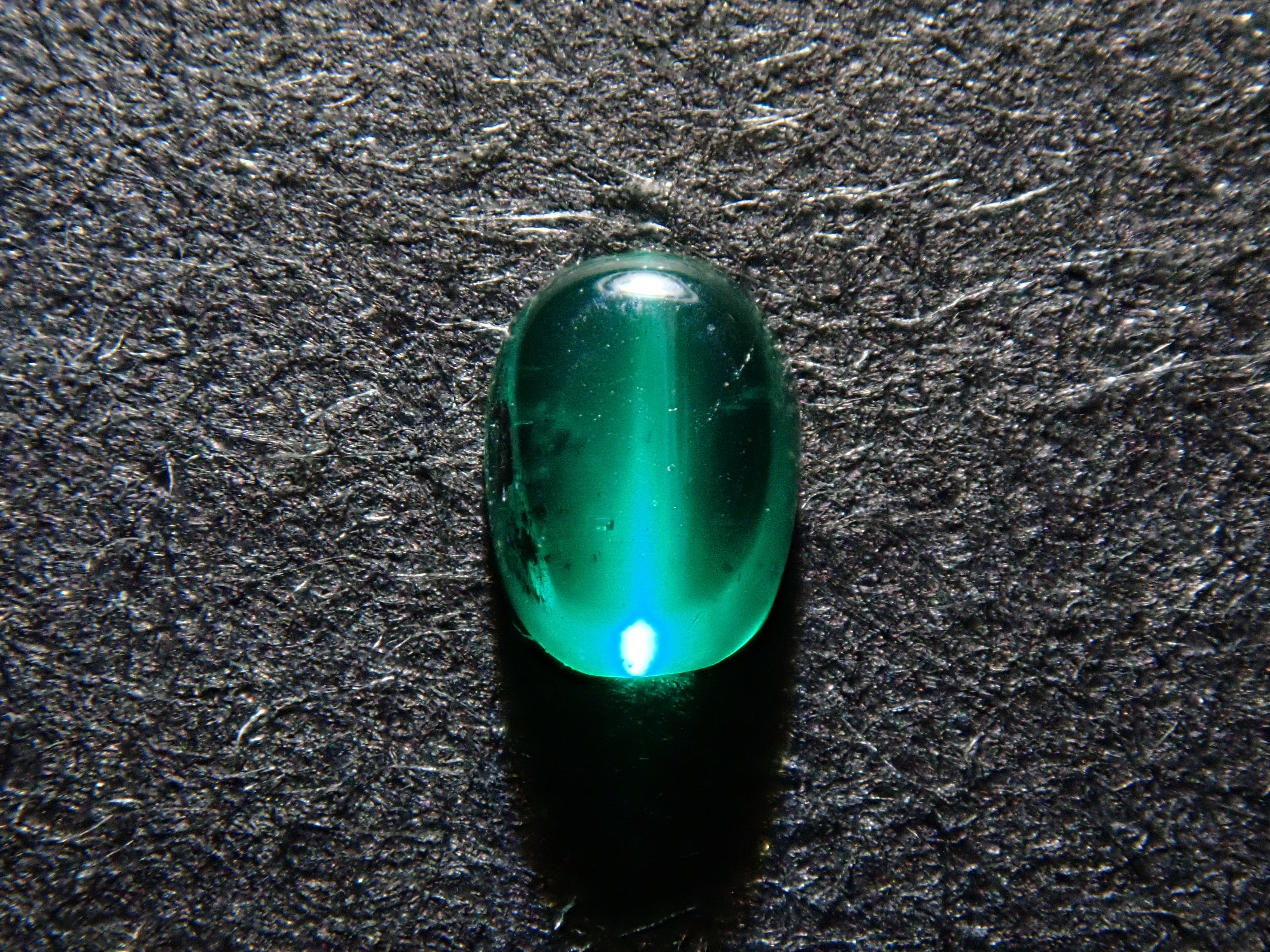 祖母綠是克莉奧佩特拉鍾愛的著名寶石。俗話說,「完美無瑕的祖母綠和完美無瑕的人一樣少」。因此,人們通常會用油處理祖母綠,使刮痕不那麼明顯。在光線照射下,可以看到貓眼效應。這種兼具溫柔與清新的氣質,充滿魅力。照片是用筆形電筒拍攝的。寶石背面通常未經拋光。