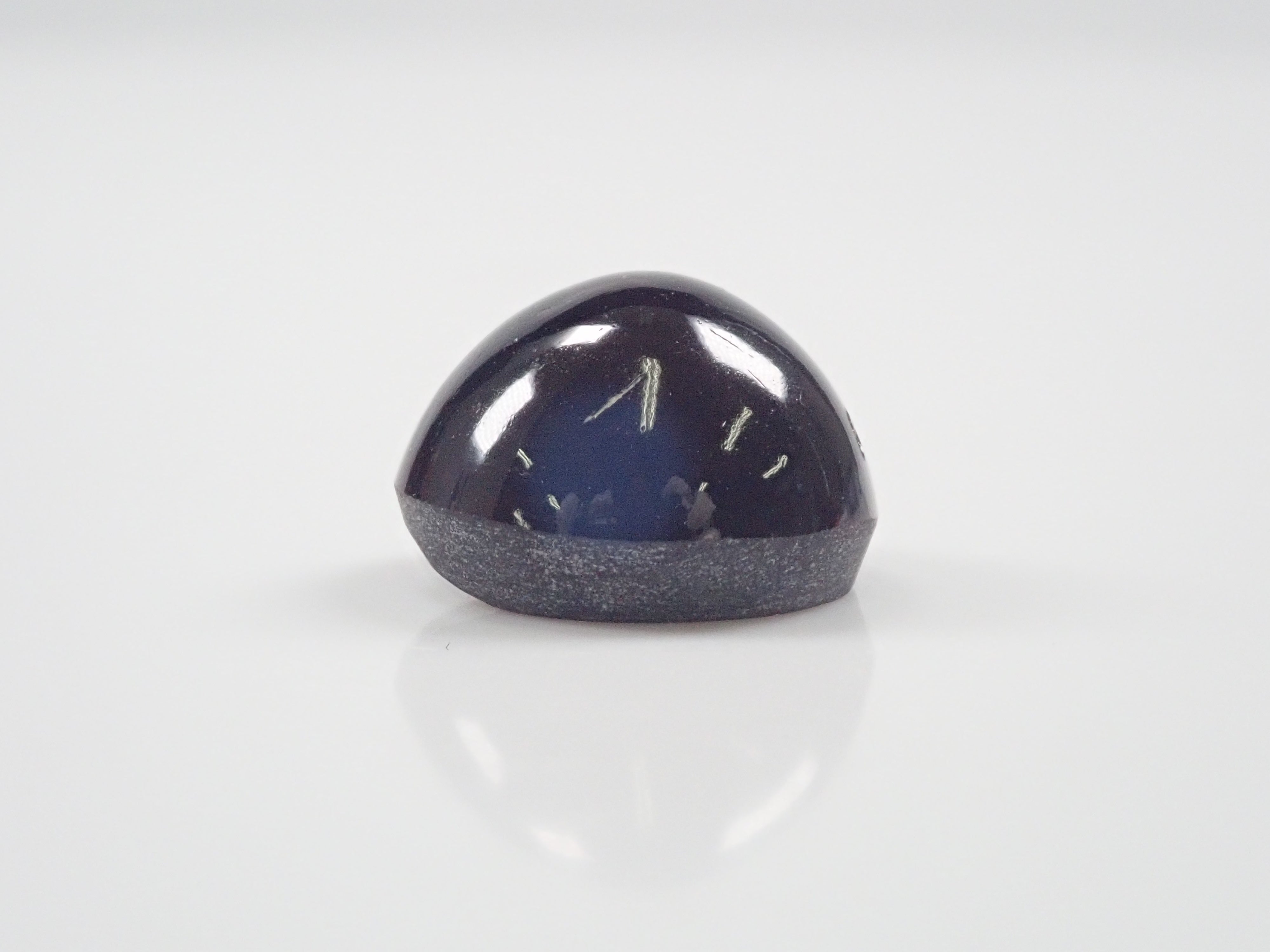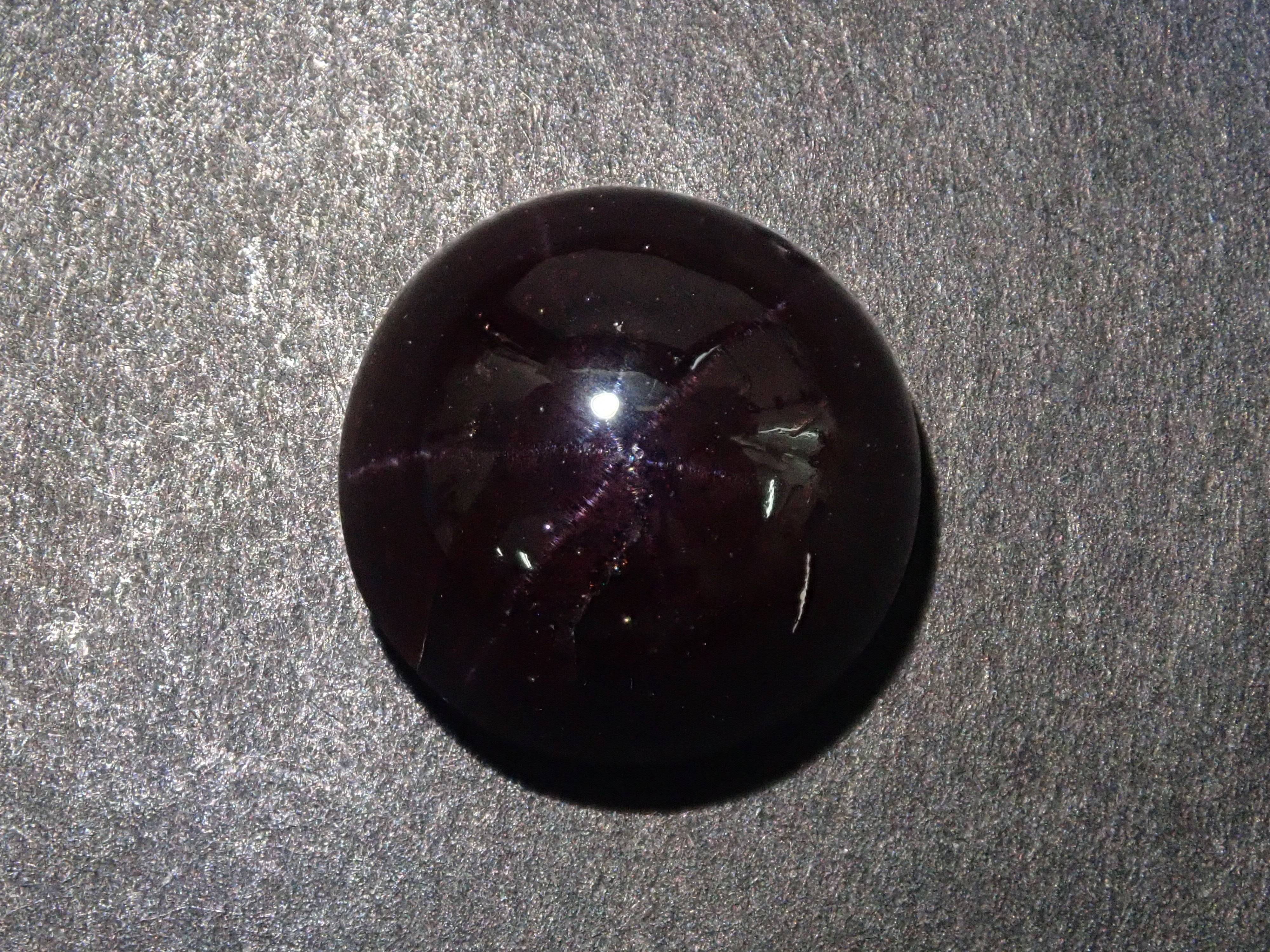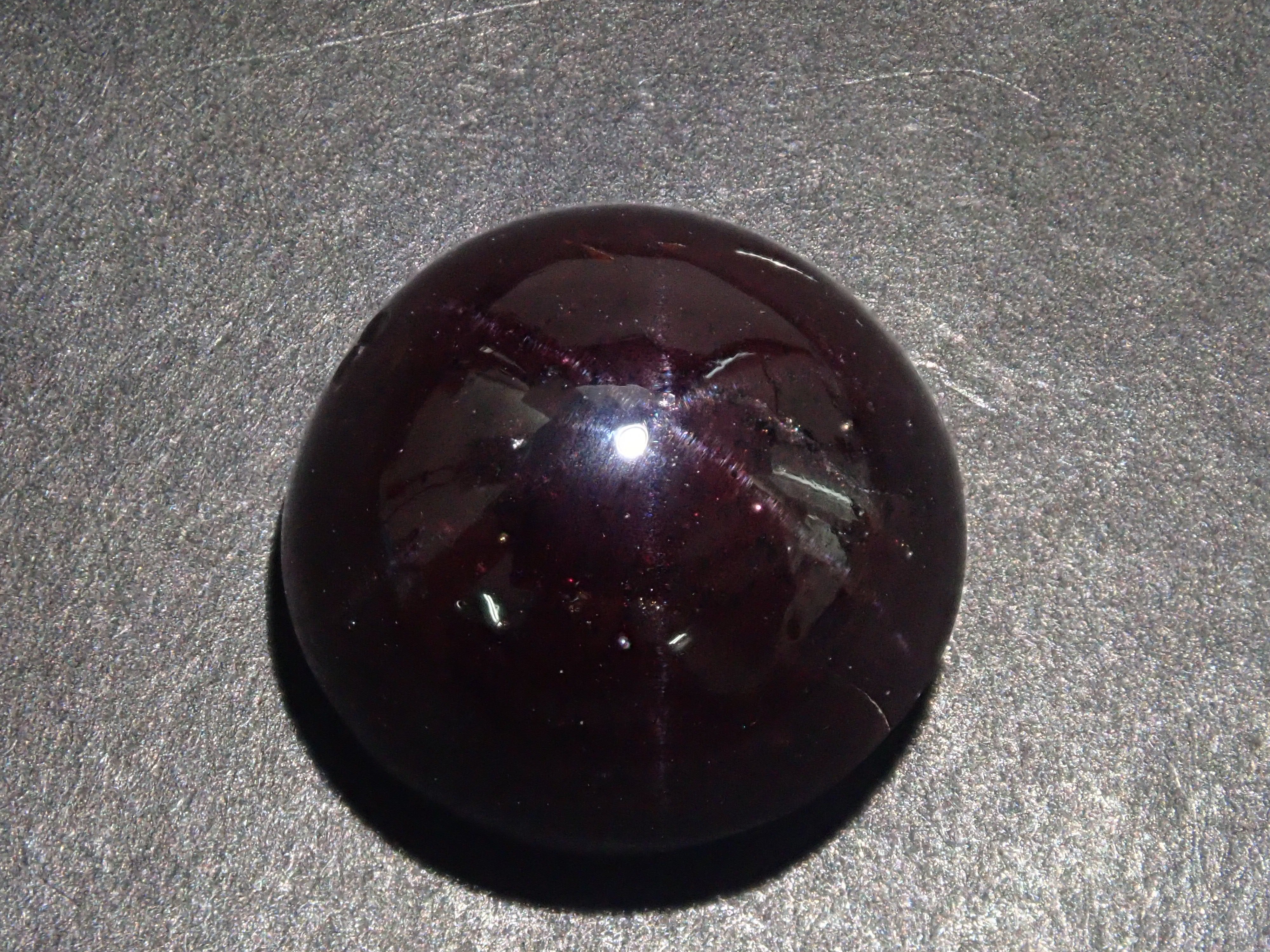 星光石榴石中可以看到星光,例如星光石英、星光藍寶石和星光紅寶石,但這顆是星光石榴石。中間出現了四道星光。照片是用筆形電筒拍攝的。寶石背面基本未拋光。刮痕/缺口的評估不包括背面。星光石榴石通常有四道星光,但這種類型的星光石榴石根據角度的不同,看起來像有六道星光。