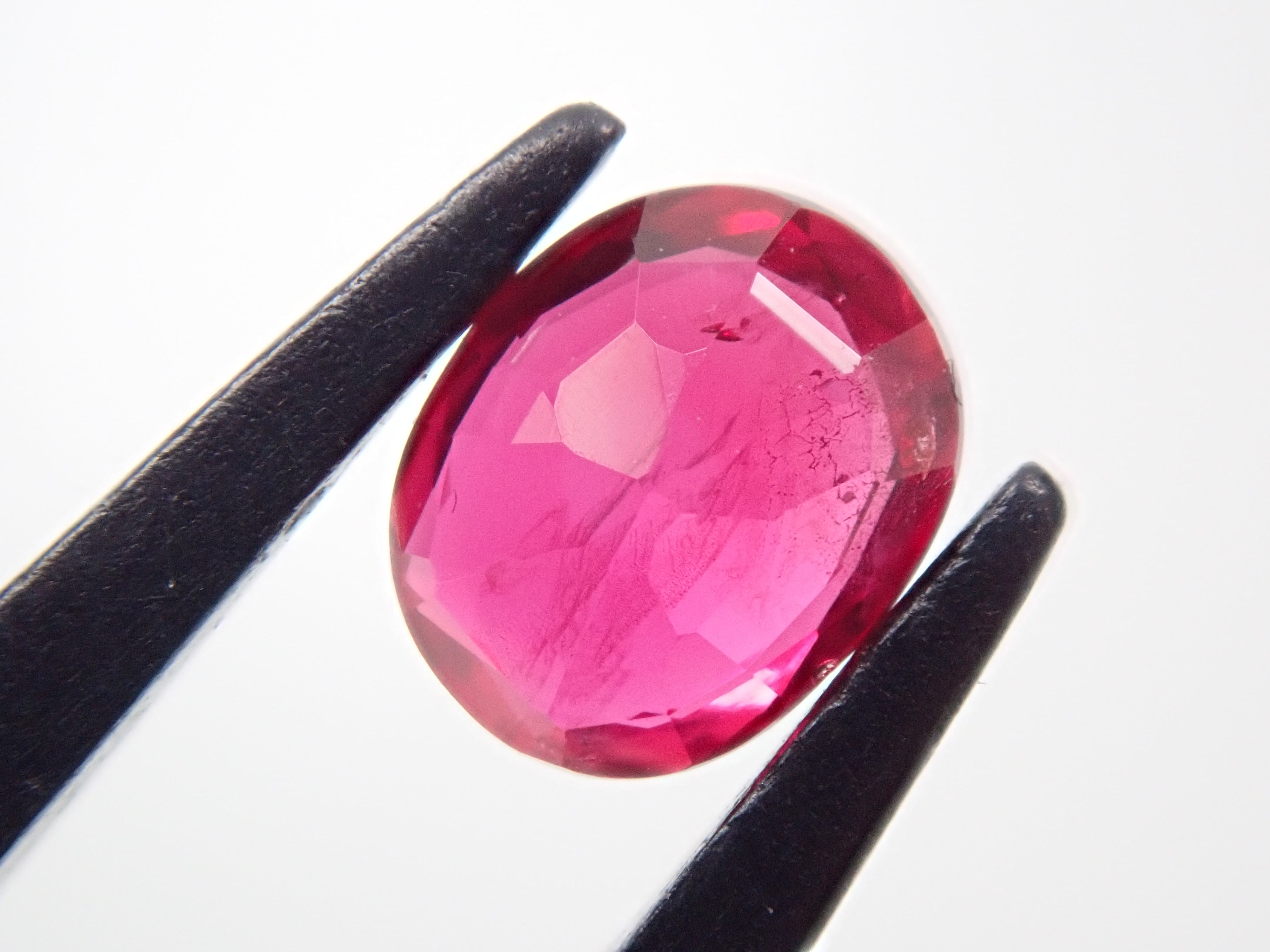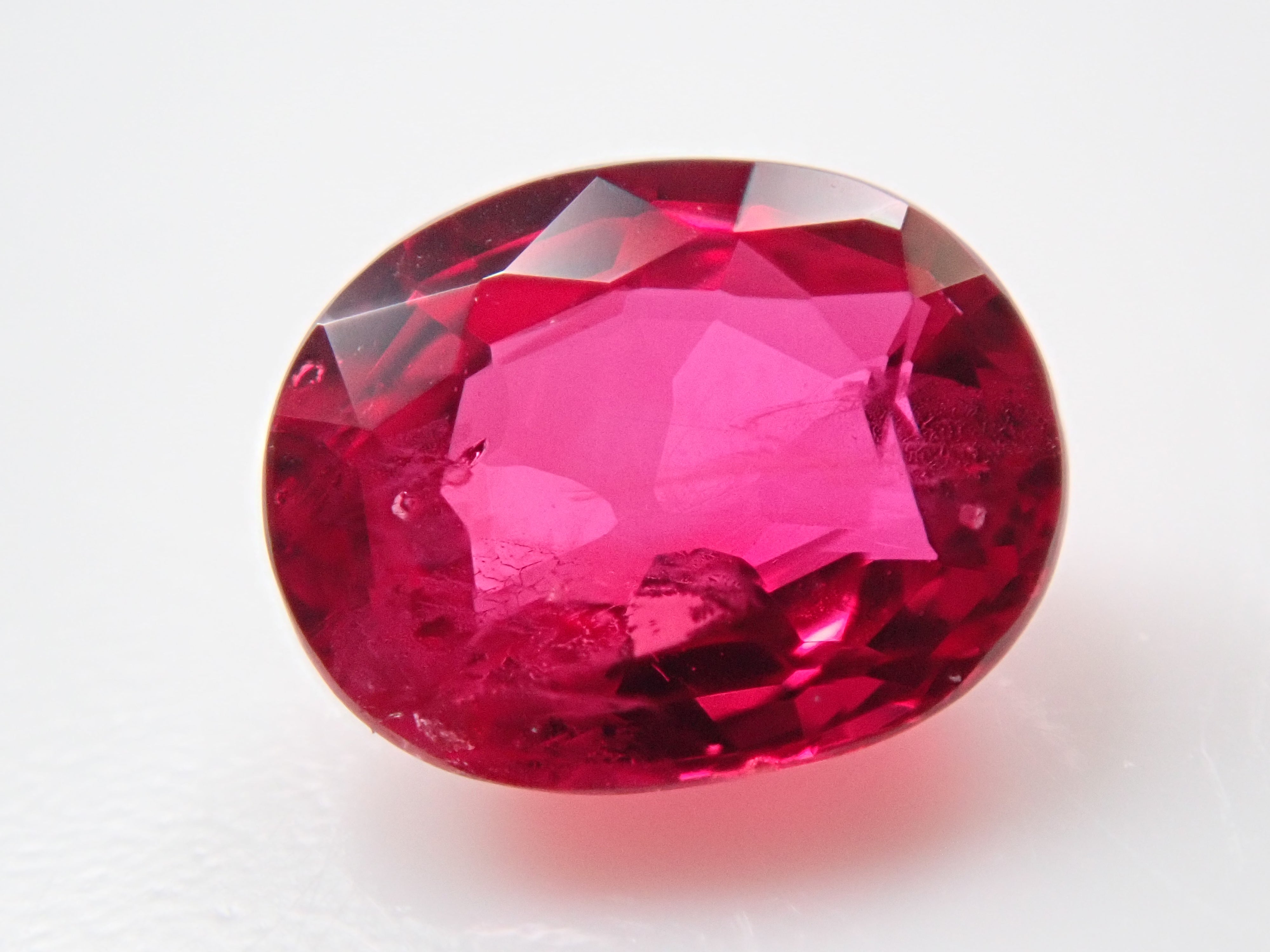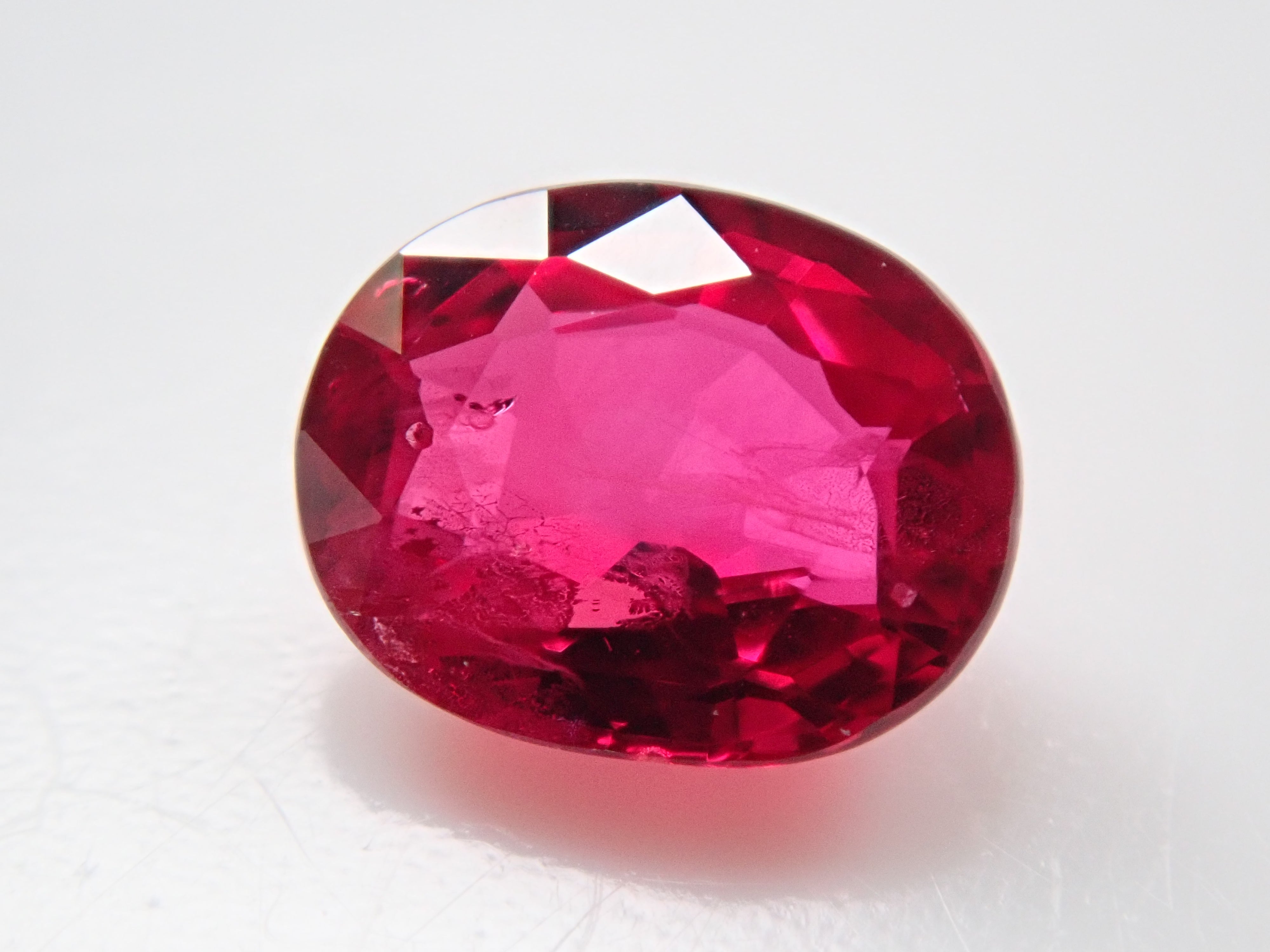 這是一顆產自泰國的橢圓形切割鴿血紅寶石。它透明度極高,色澤鮮豔。附有AIGS鑑定證書。