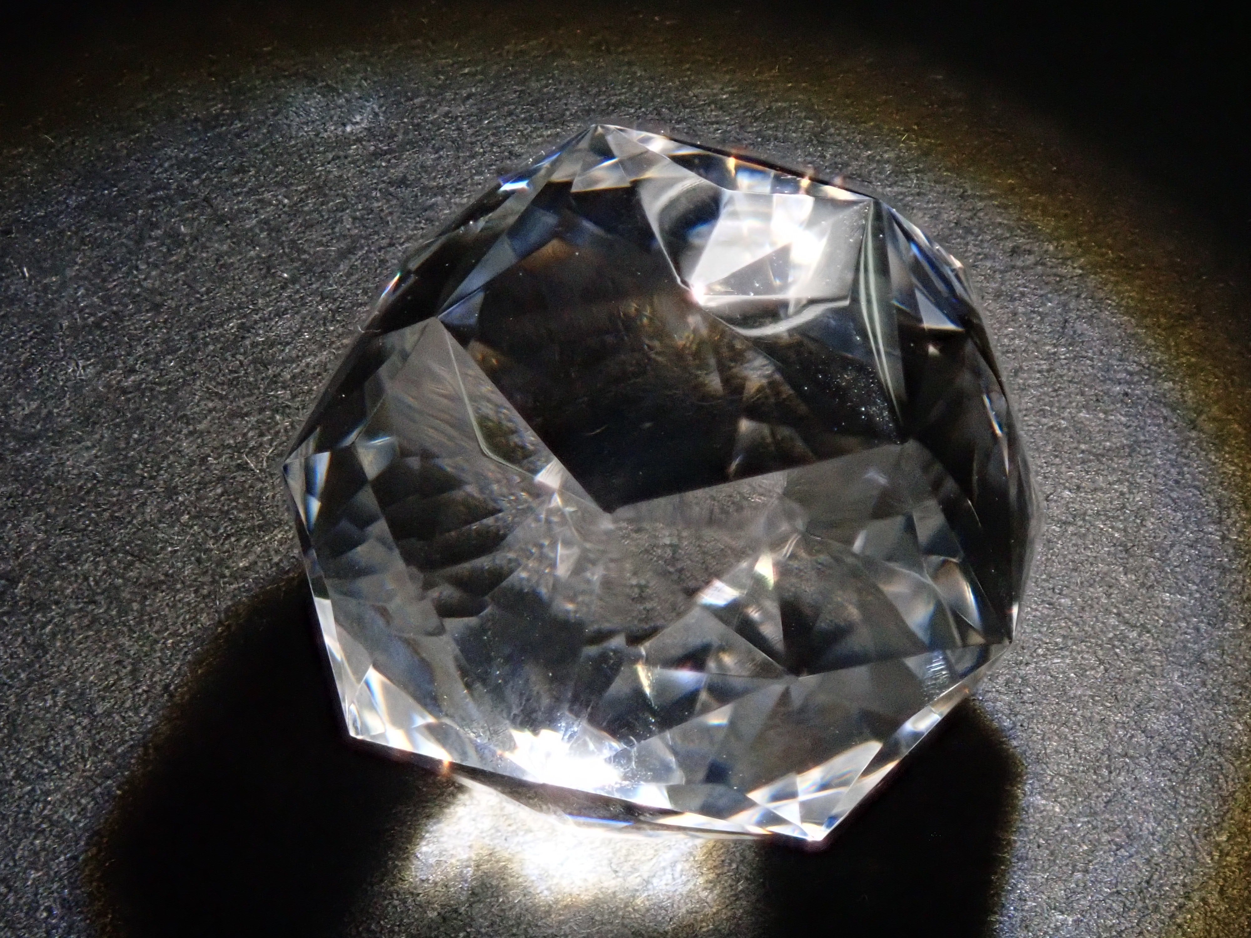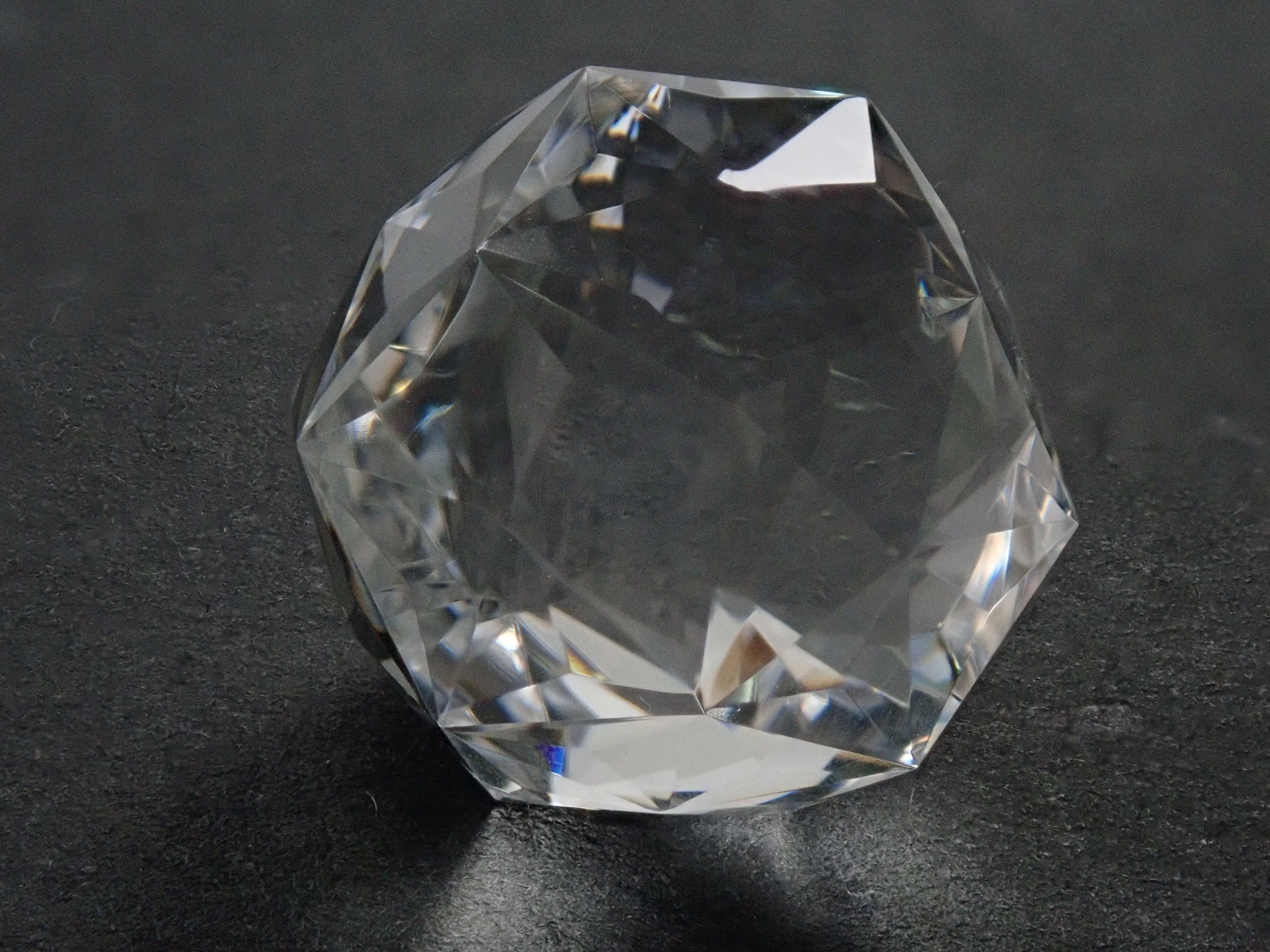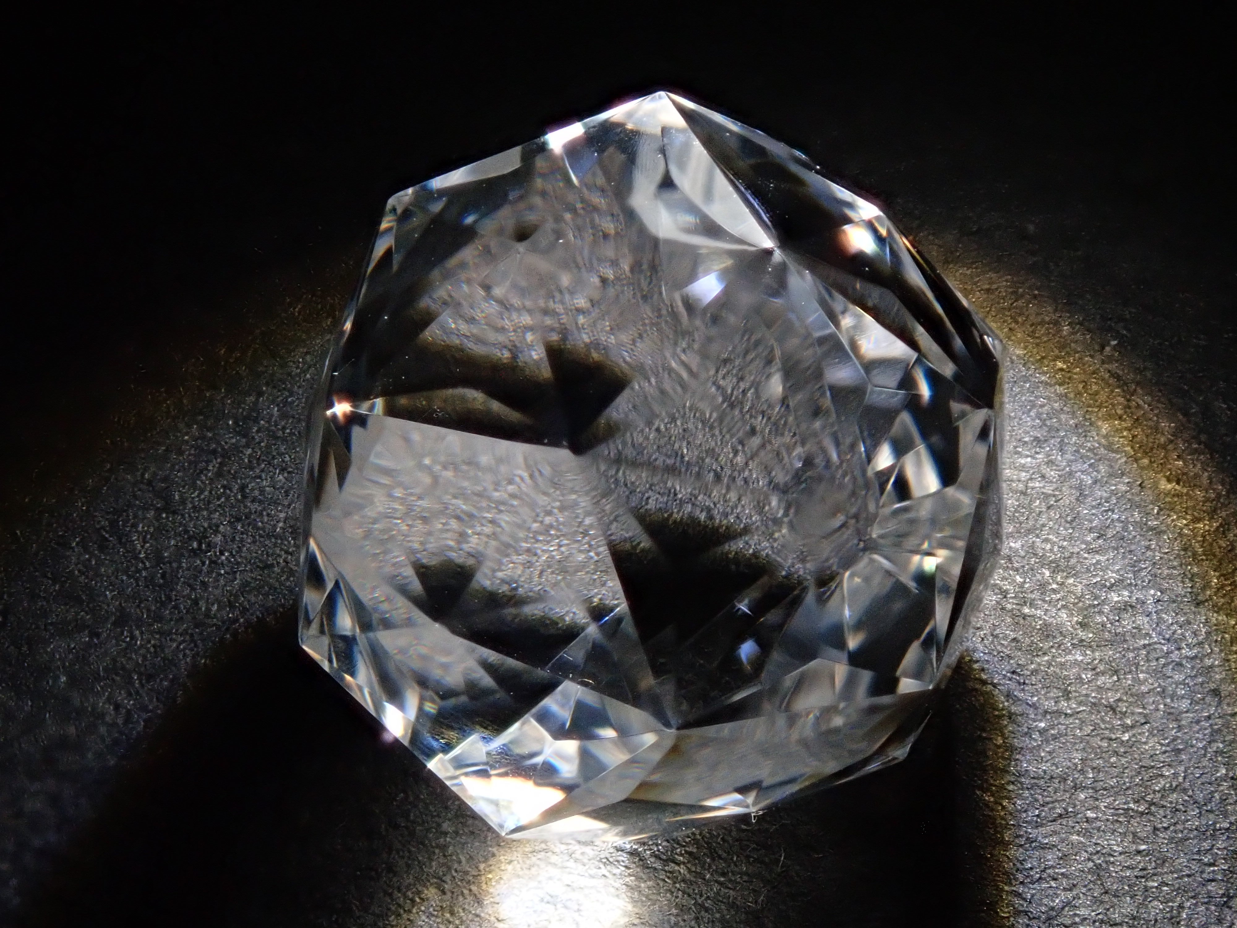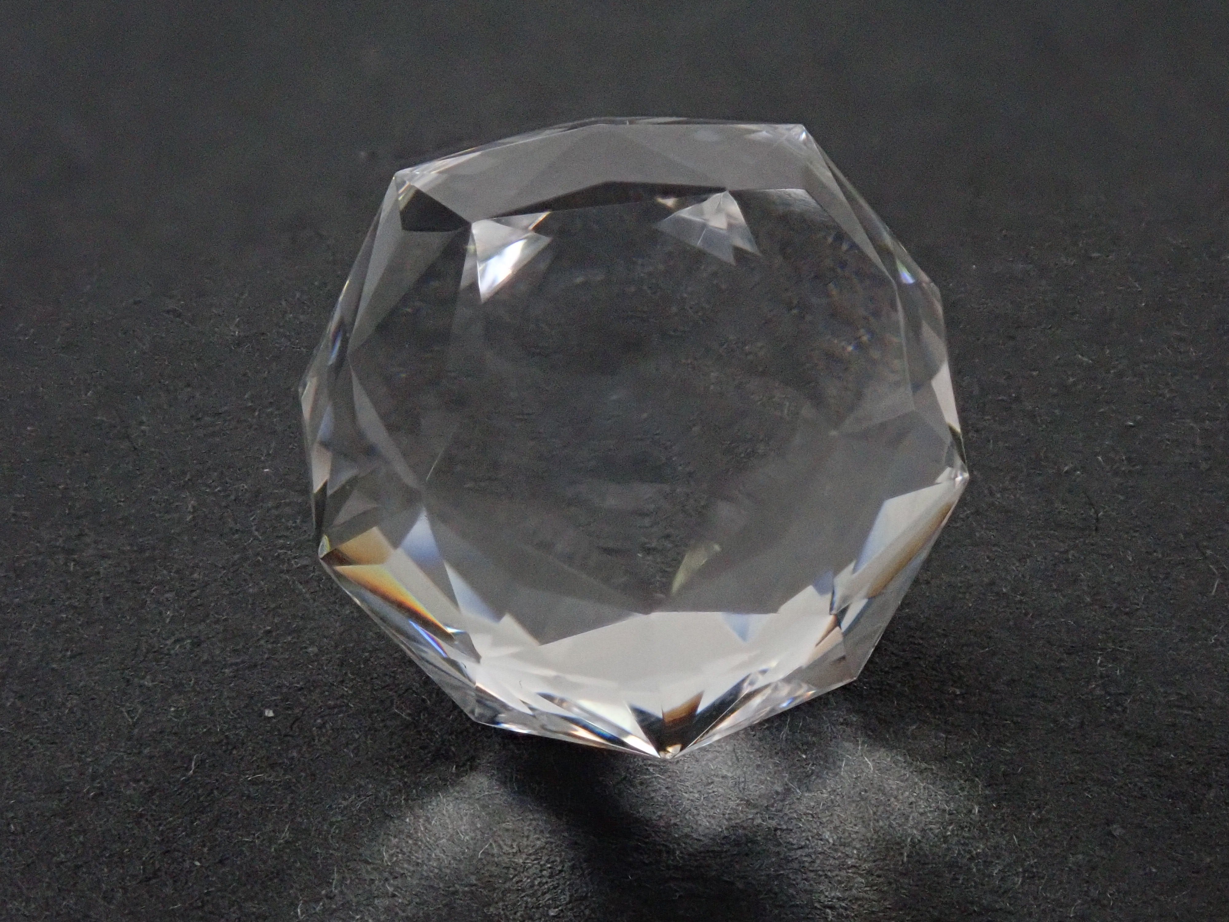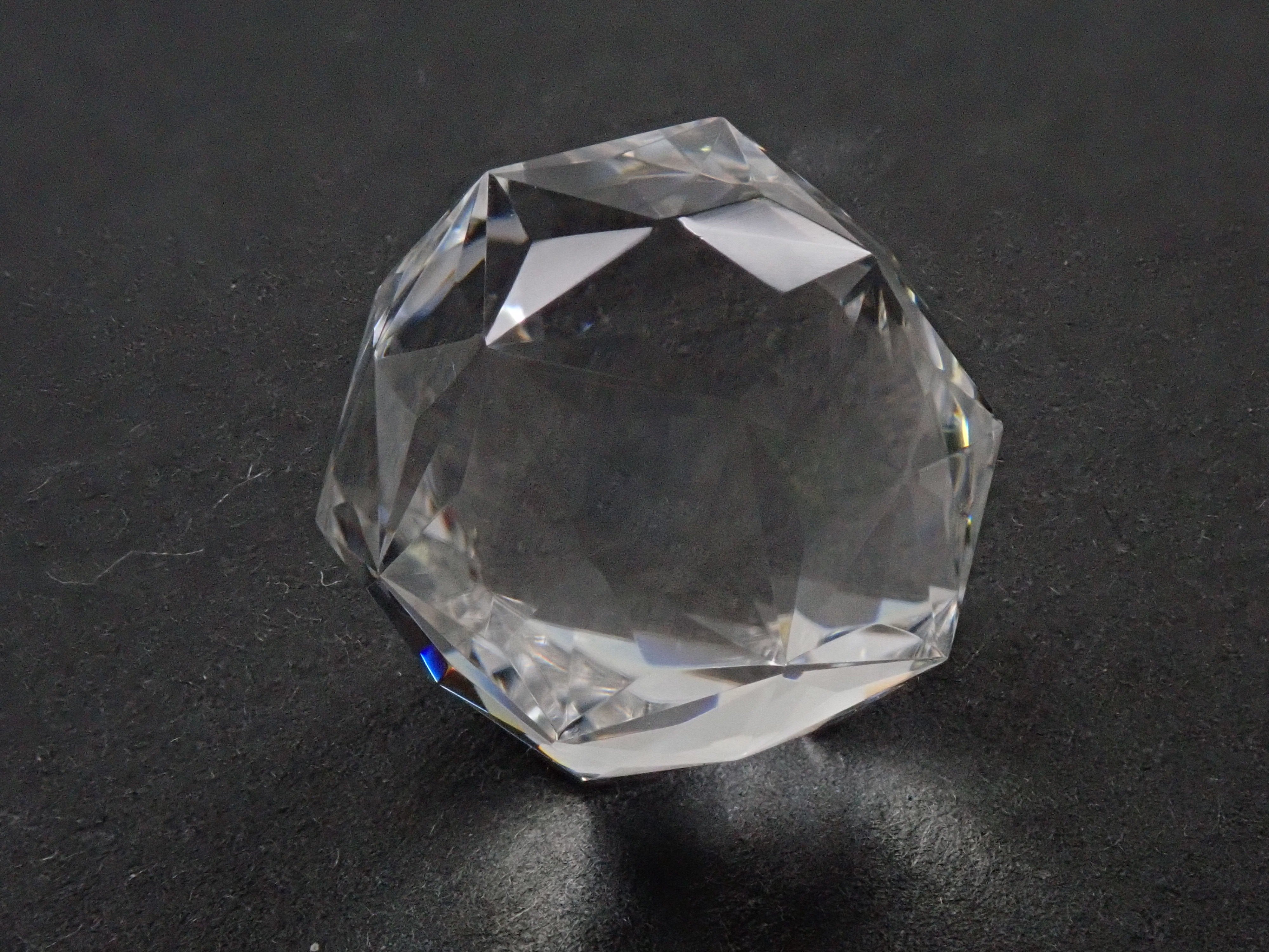 這就是KIKYO CUT,只有清水奇蹟的代表人物清水幸雄先生才能創造,他是世界上唯一能做到這一點的人。對於桔梗切割,首先,使用由 12 個正五邊形包圍的正十二面體作為基底,並向每個正五邊形的中心製作帶有脊線的五邊形切割。在此基礎上,進行進一步切割以建立總共 180 個面的多面體。這種切割需要經過許多令人畏懼的步驟和精細的工作才能完成,因其形狀而被稱為“風鈴草切割”。包括一個特殊的補丁。