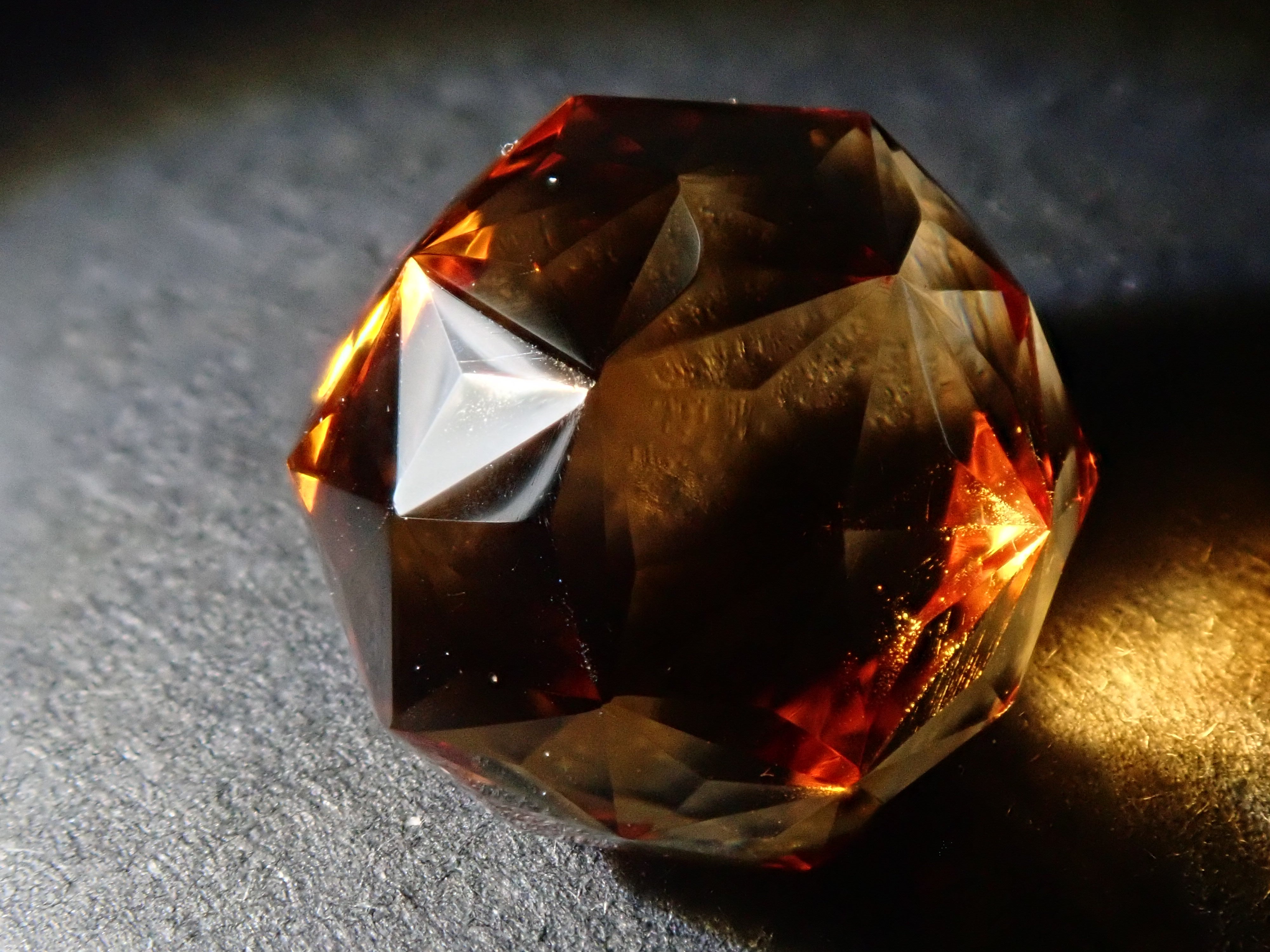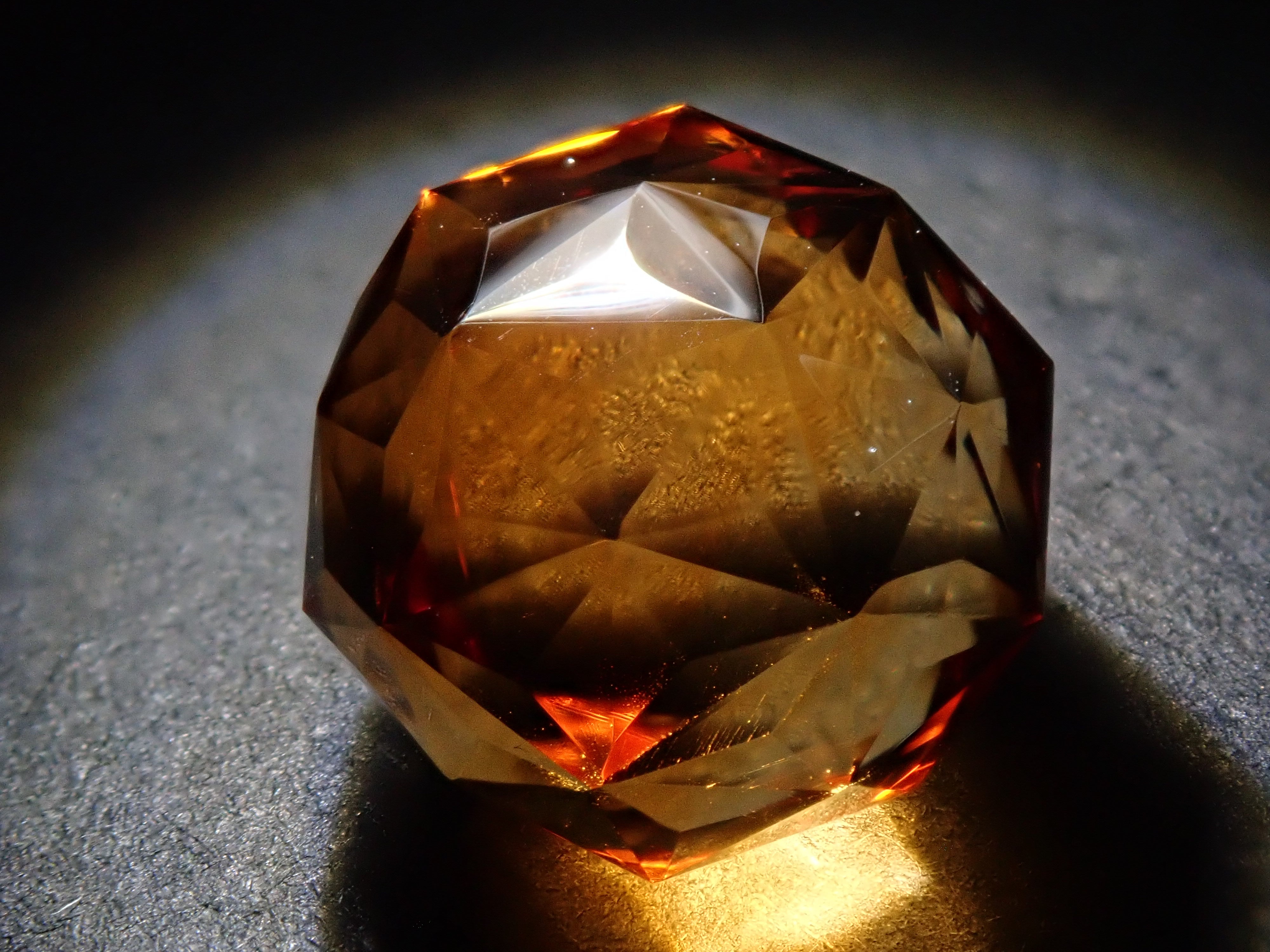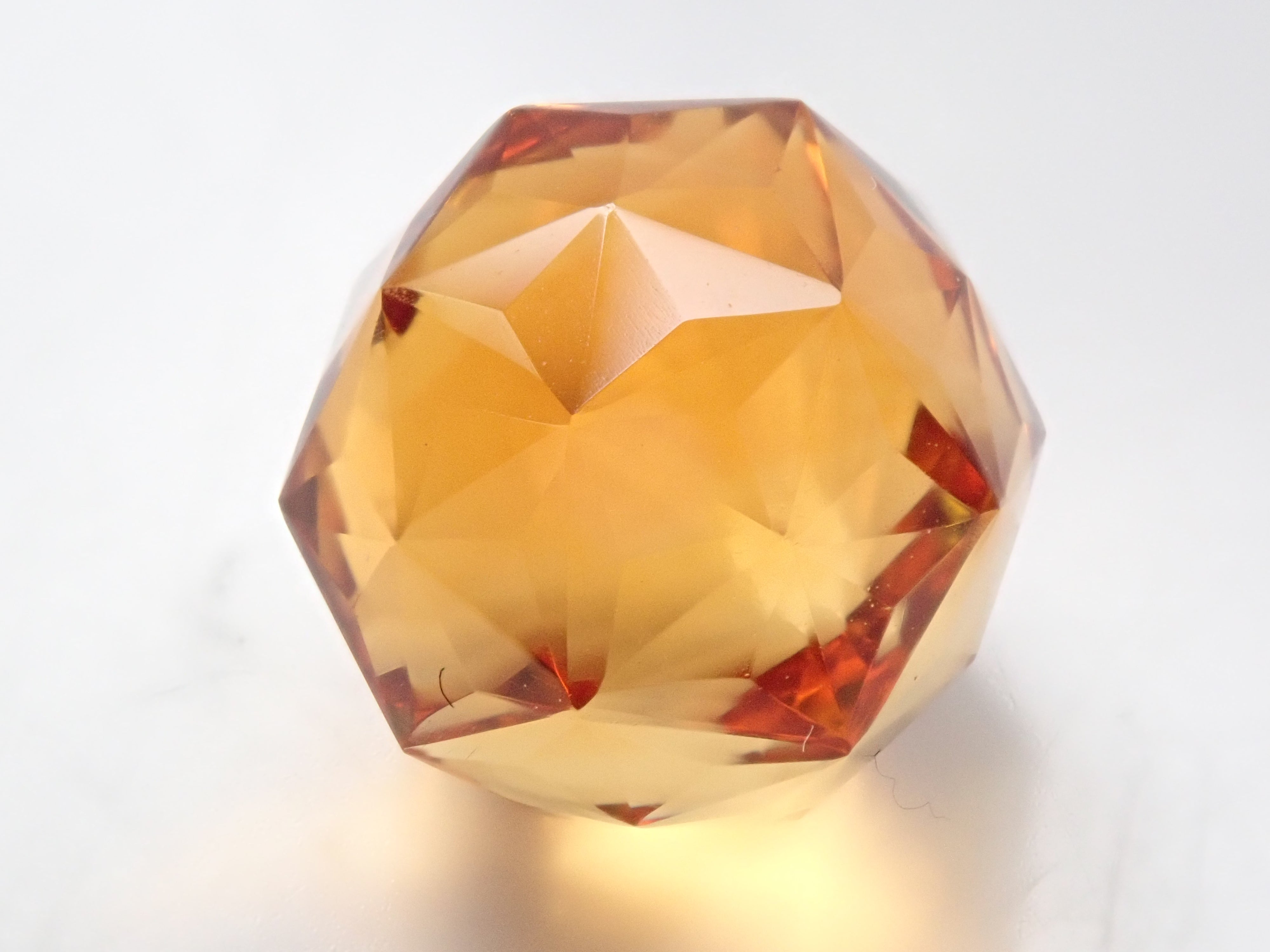 這就是KIKYO CUT,只有清水奇蹟的代表人物清水幸雄先生才能創造,他是世界上唯一能做到這一點的人。對於桔梗切割,首先,使用由 12 個正五邊形包圍的正十二面體作為基底,並向每個正五邊形的中心製作帶有脊線的五邊形切割。在此基礎上,進行進一步切割以建立總共 180 個面的多面體。這種切割需要經過許多令人畏懼的步驟和精細的工作才能完成,因其形狀而被稱為“風鈴草切割”。包括一個特殊的補丁。