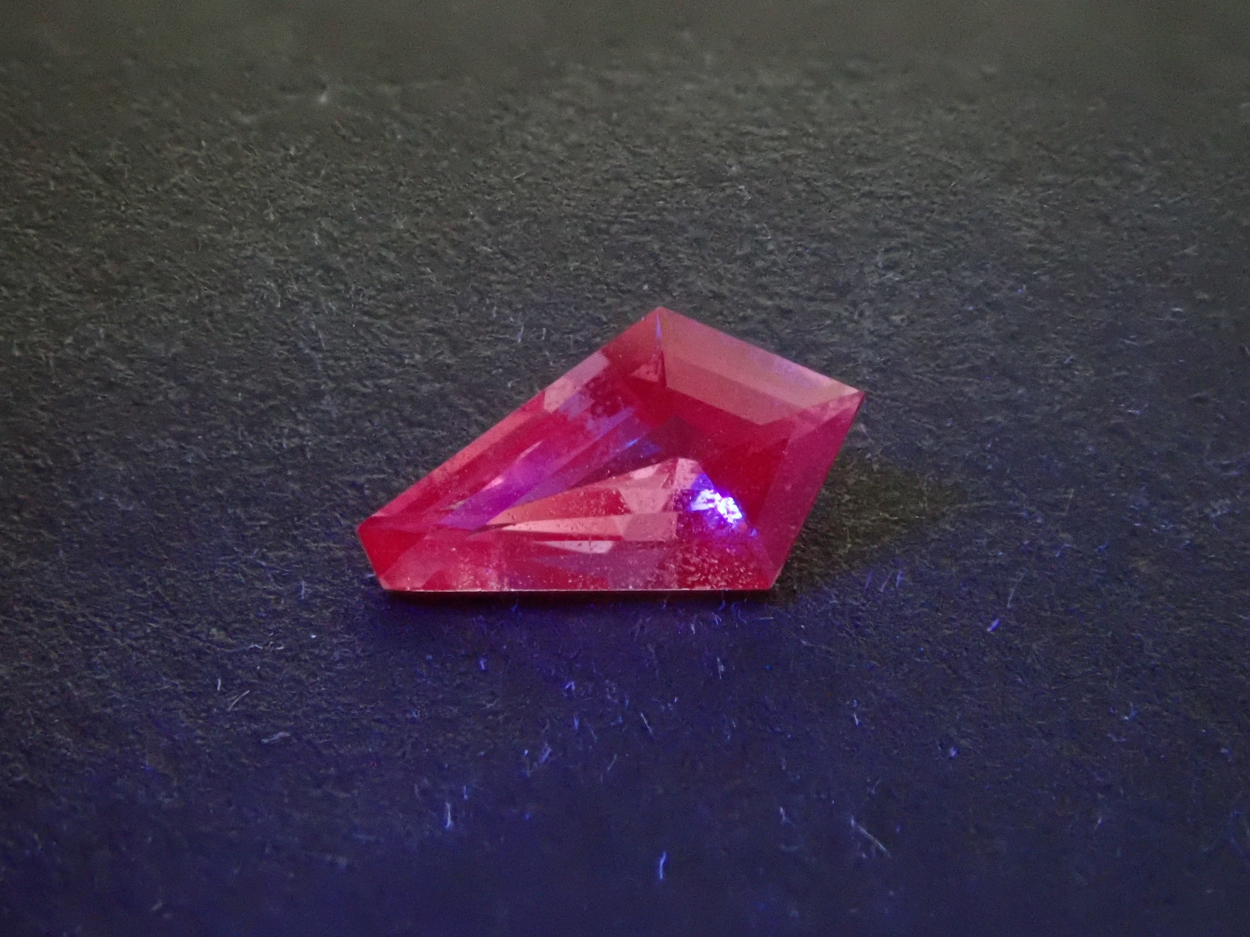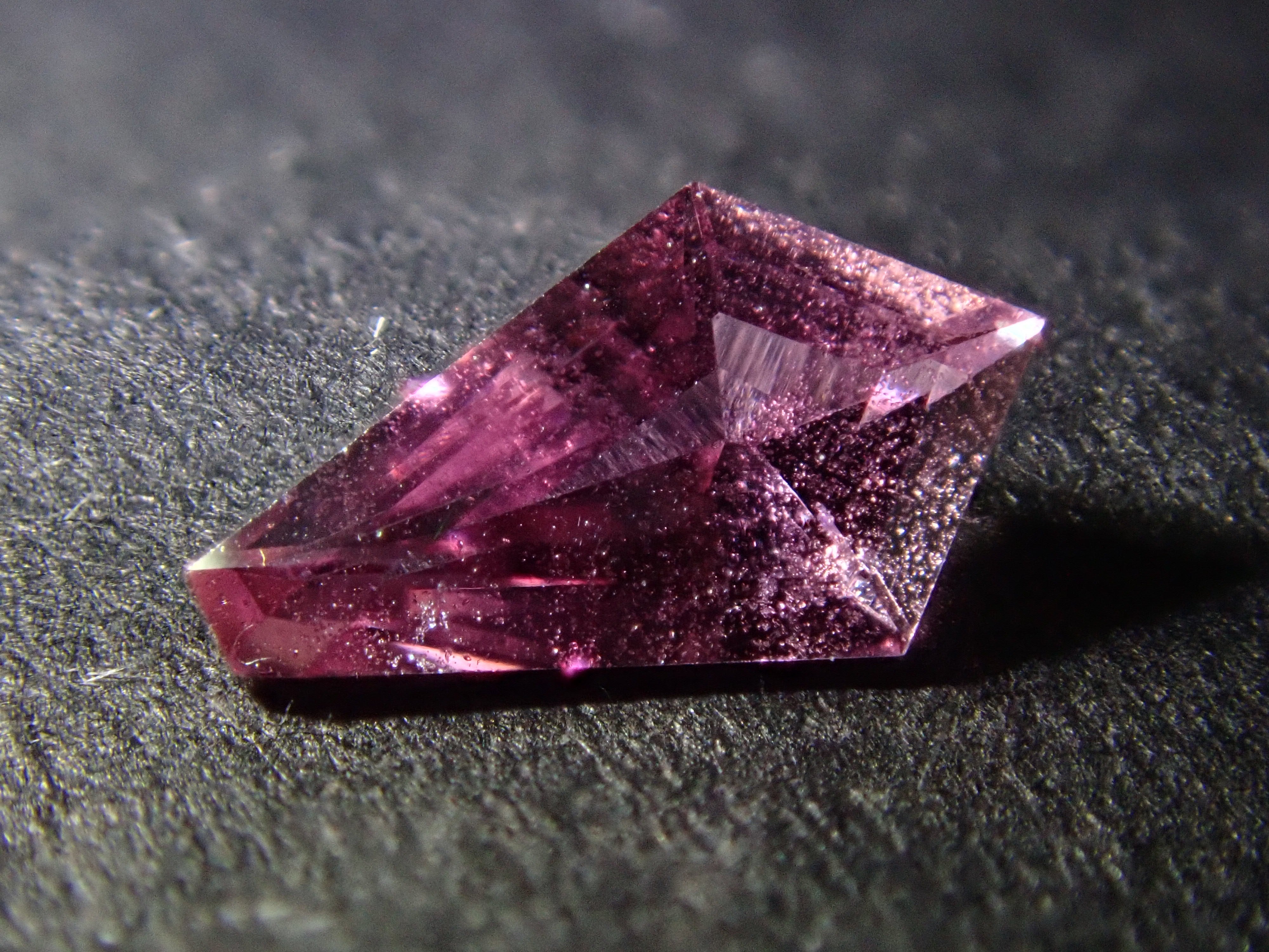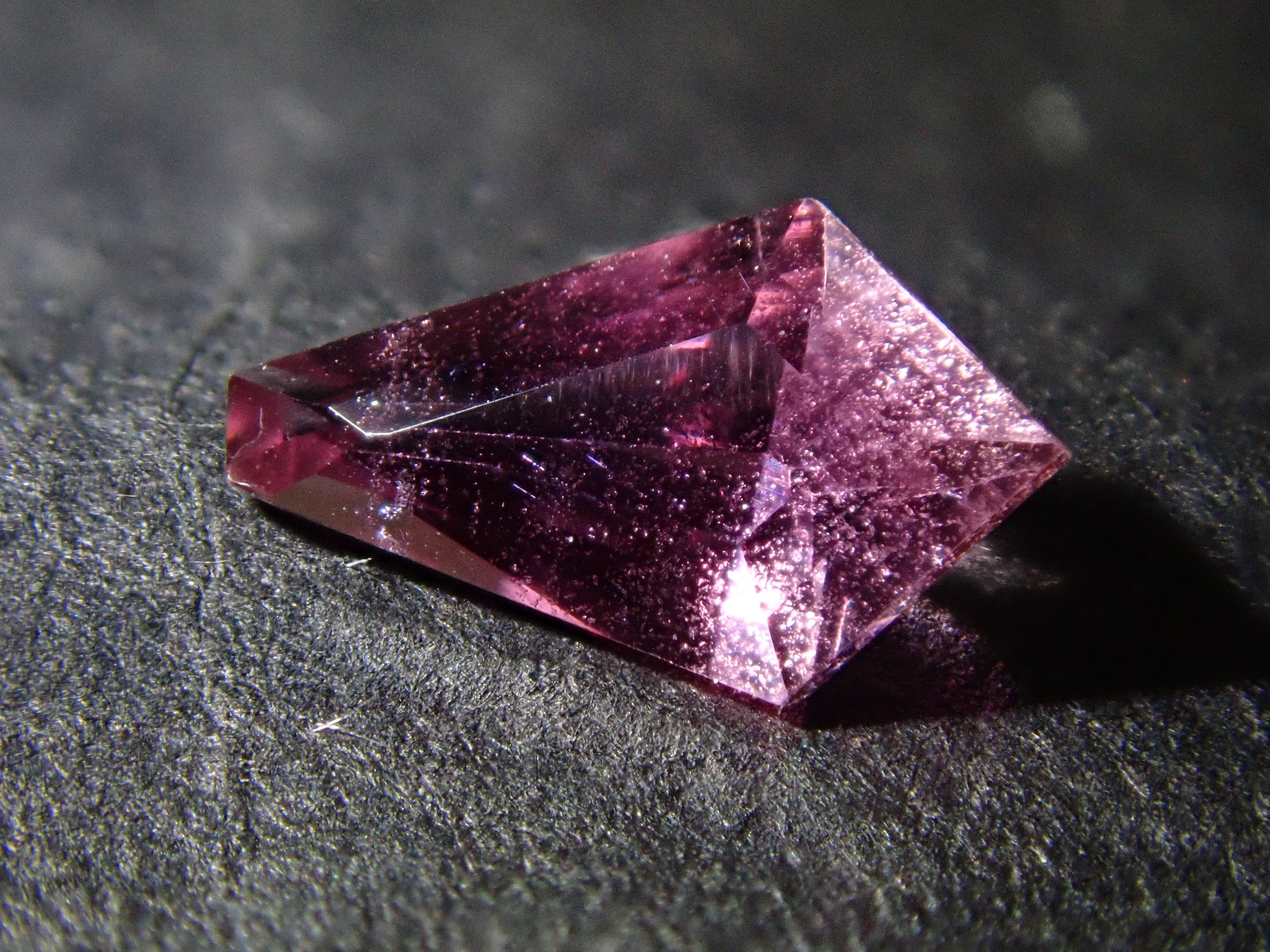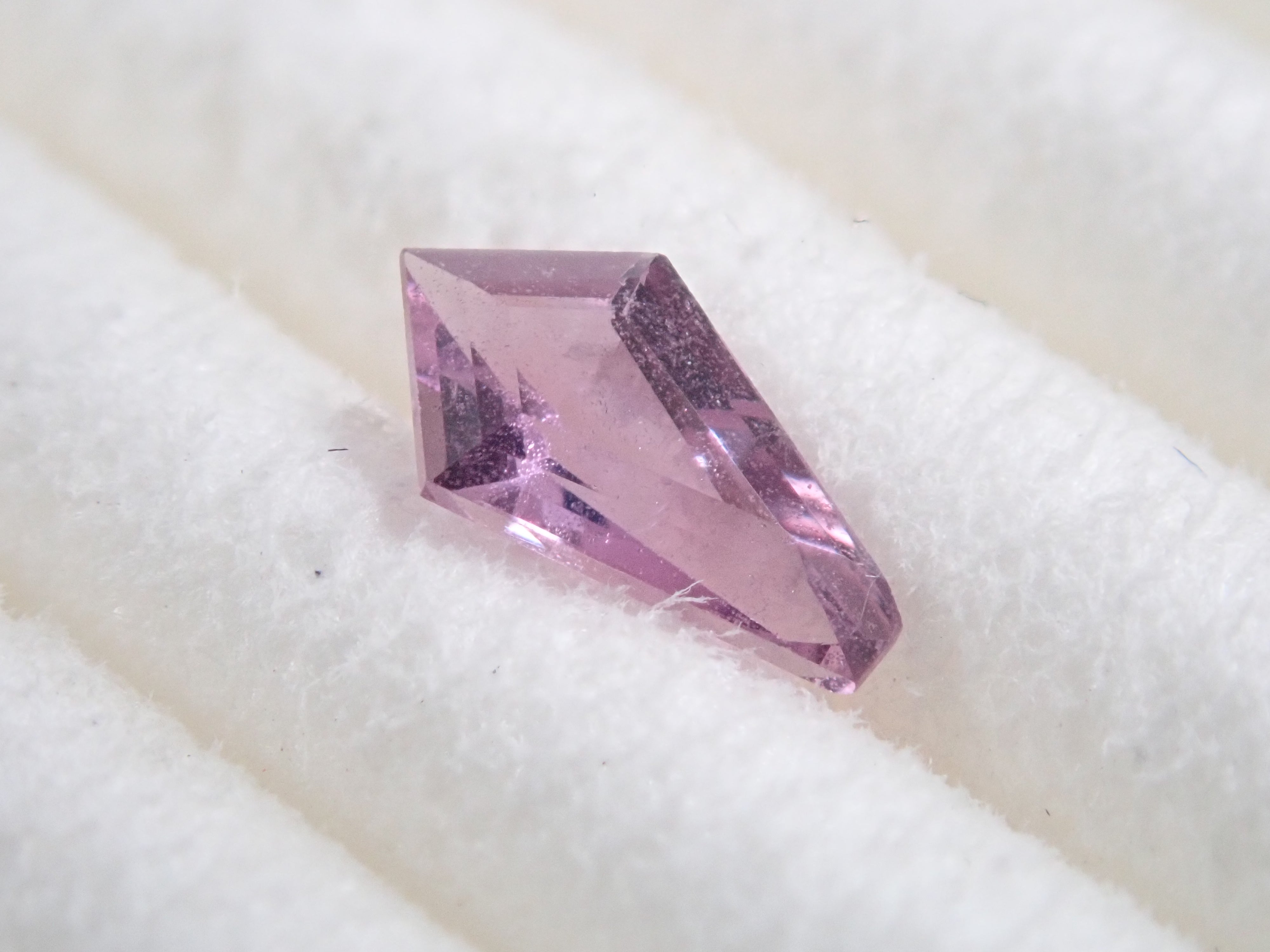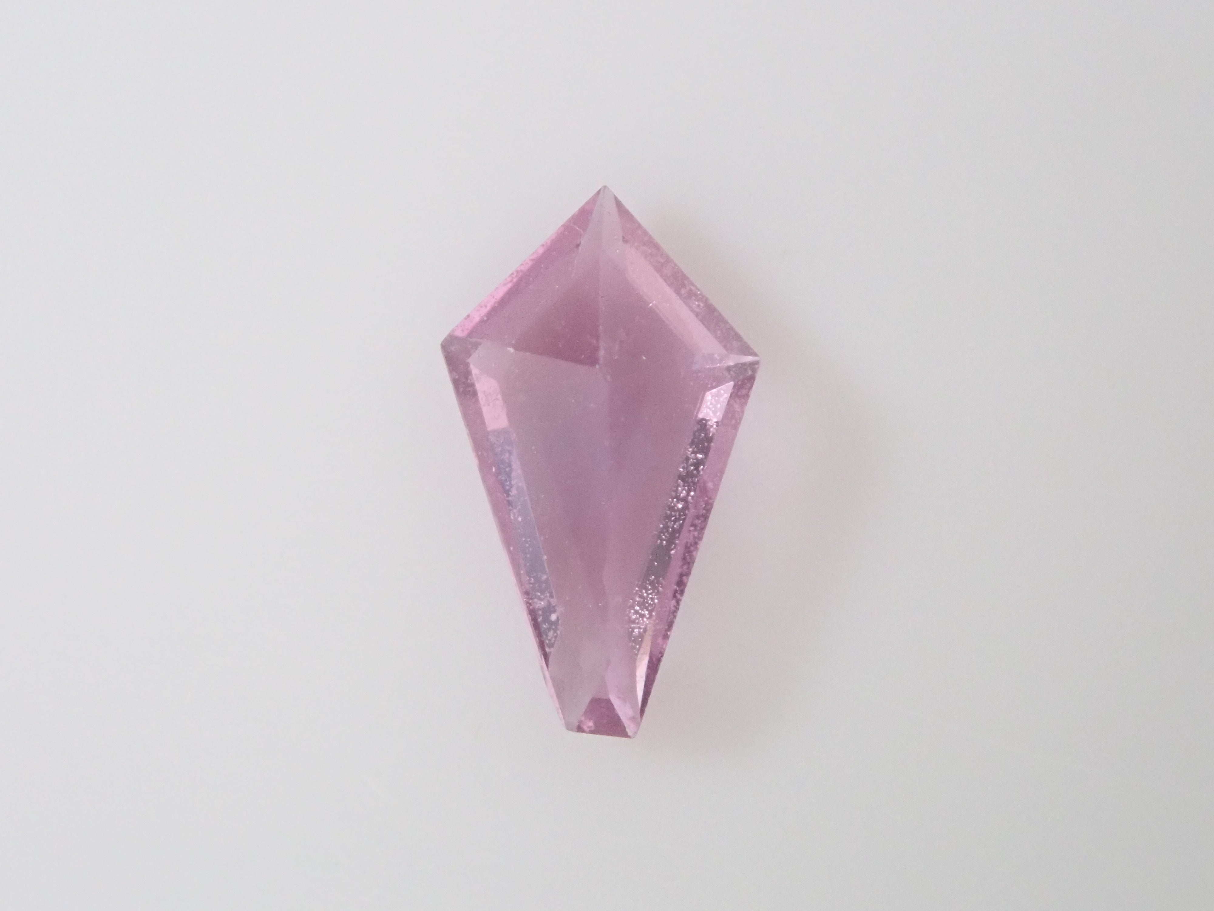 藍寶石是一種著名的寶石。礦物為剛玉,與紅寶石相同,但除紅色以外的所有剛玉稱為藍寶石。這是一顆紫色藍寶石。藍寶石的硬度為 9,是僅次於鑽石的第二硬寶石,是一種高度堅韌、穩定且易於護理的寶石。棺木式切割紫色藍寶石。