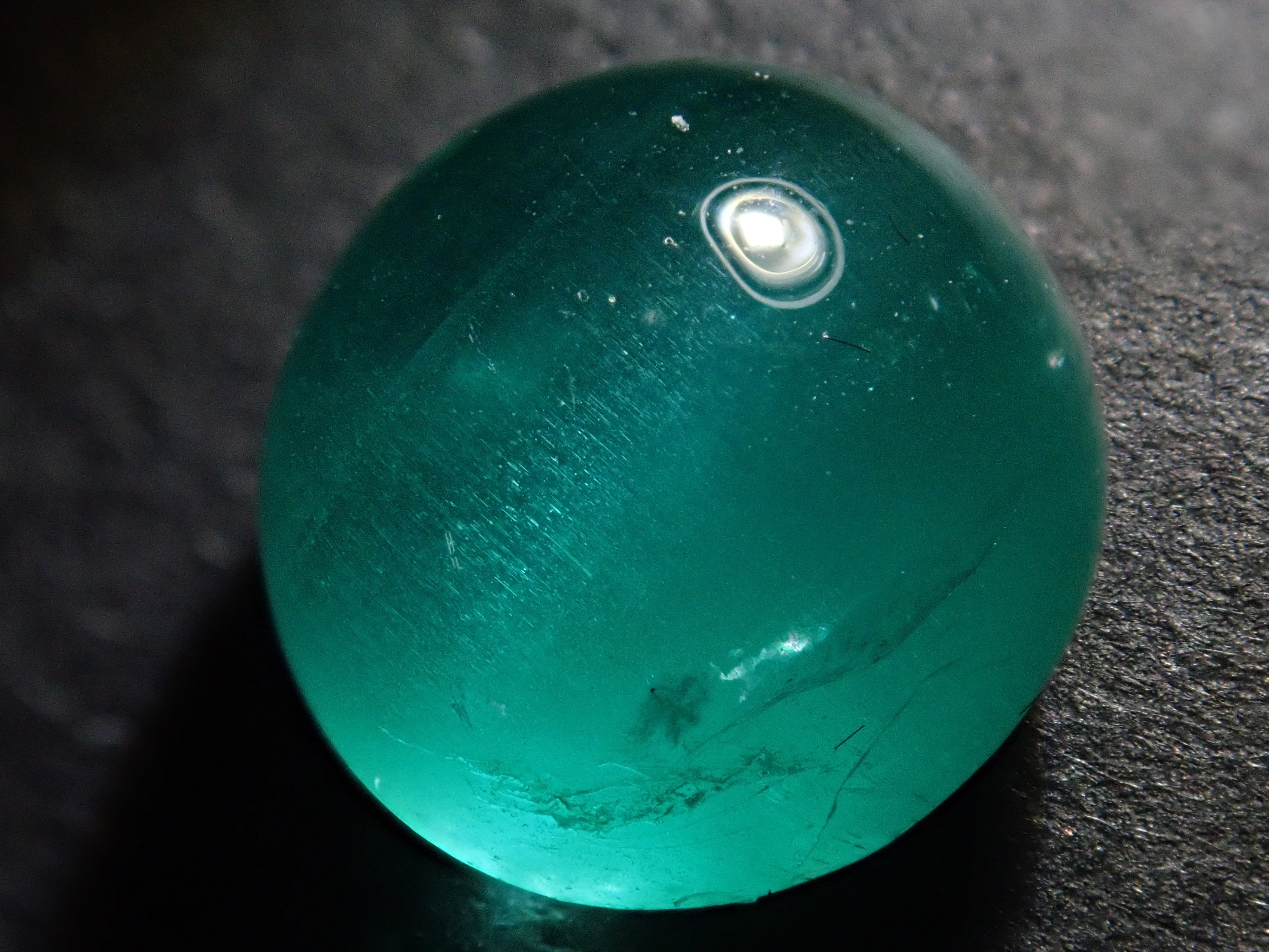 祖母綠是克莉奧佩特拉鍾愛的著名寶石。據說,完美無瑕的祖母綠數量與完美無瑕的人一樣少。因此,人們通常會用油處理祖母綠,使刮痕不那麼明顯。在光線照射下,可以看到貓眼效應。這種兼具溫柔與清新的氣質,充滿魅力。照片是用筆形電筒拍攝的。寶石背面基本未經打磨。 4克拉的重量,對於一顆寶石級的祖母綠貓眼來說,已經算是相當大的尺寸了。