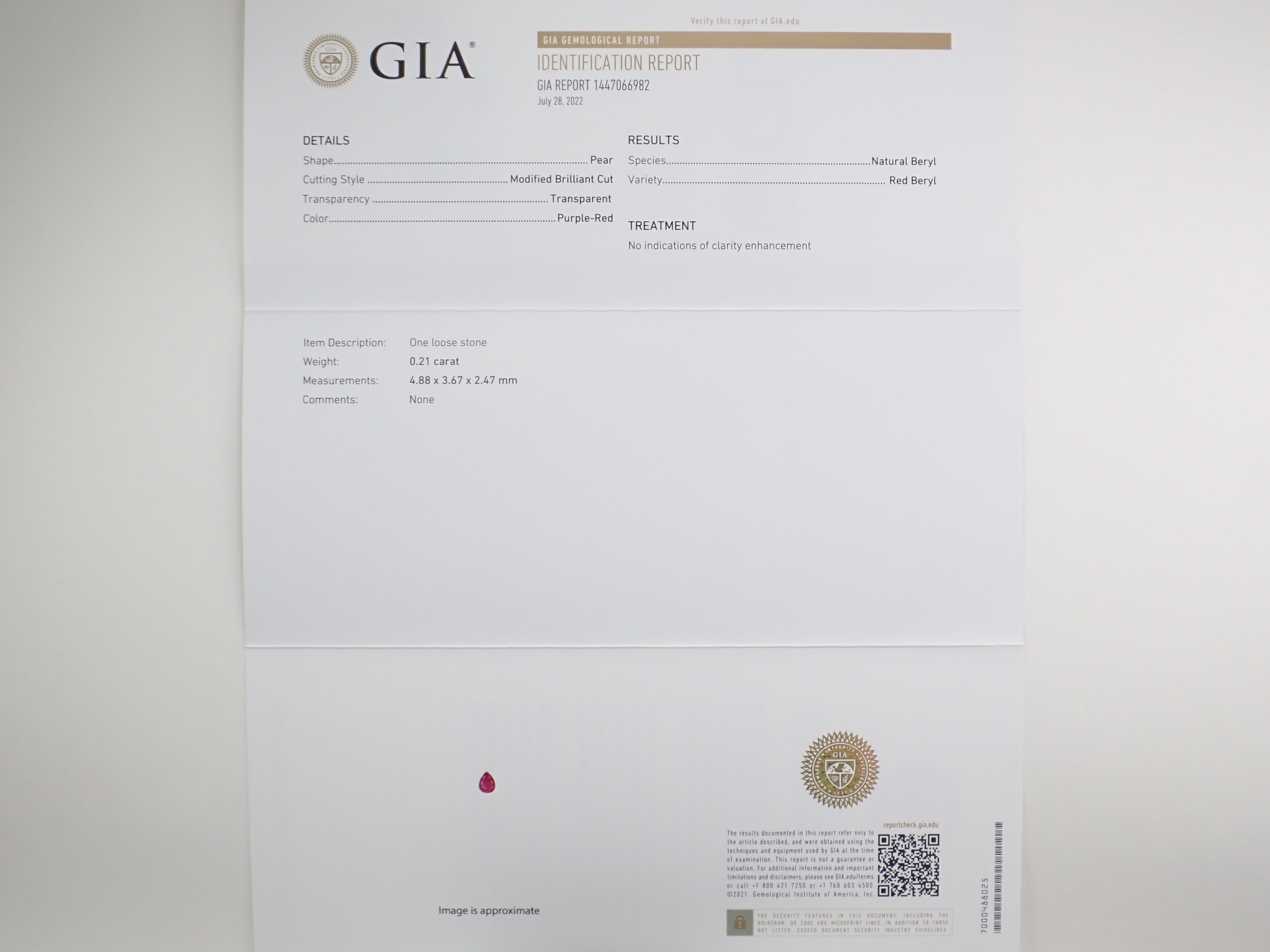 紅色綠柱石是一種著名的稀有寶石。它也因其發現者——礦物學家梅納德·比克斯比而被稱為“紅綠柱石”。從礦物學角度來看,它與祖母綠和海藍寶石同屬綠柱石族。這顆罕見的未經處理、無油的紅色綠柱石重0.2克拉,對於紅色綠柱石來說,尺寸較大。您可以充分欣賞紅色綠柱石特有的紅色。附有GIA鑑定證明。