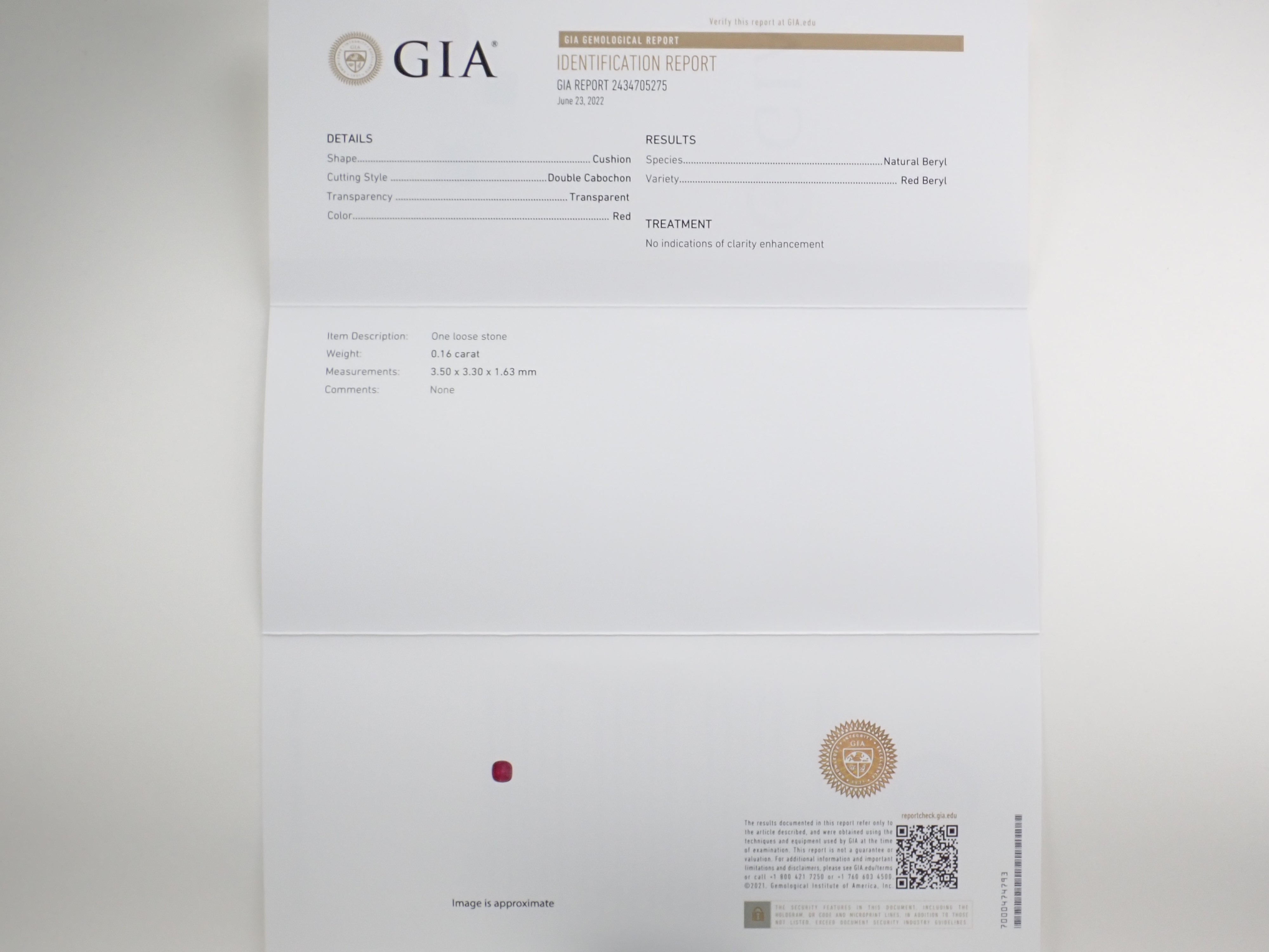 無油紅色綠柱石 0.160 克拉裸石 GIA