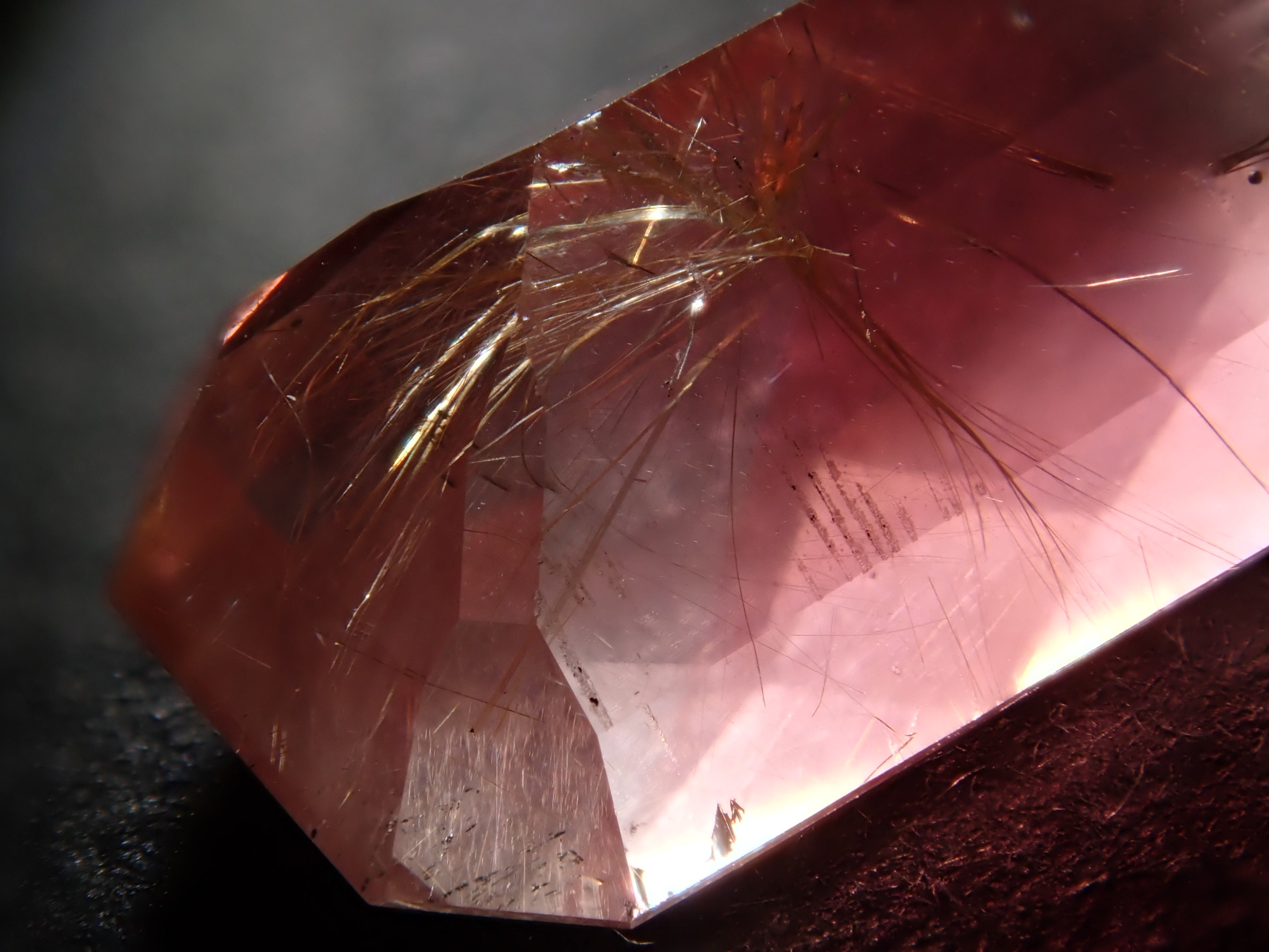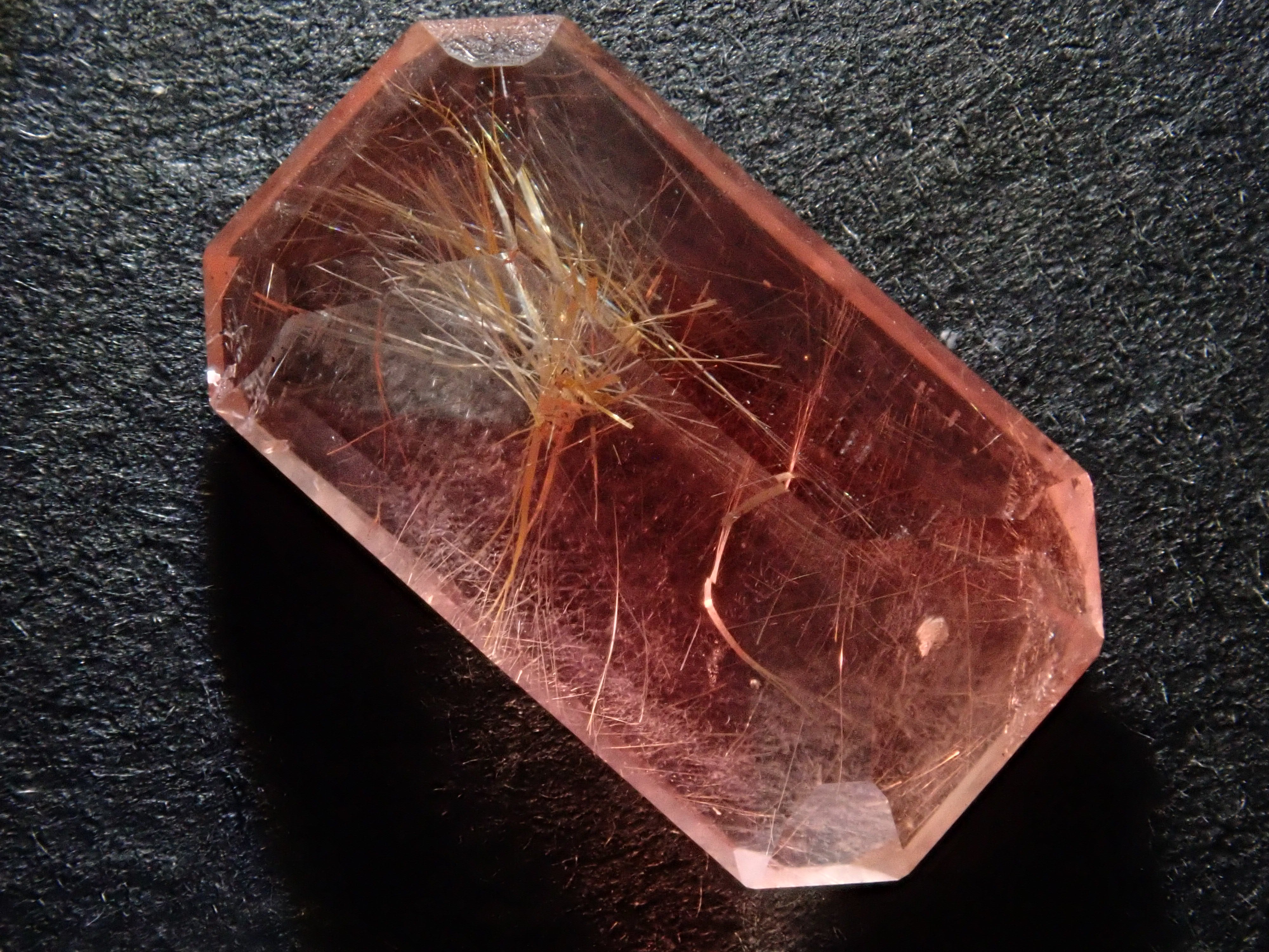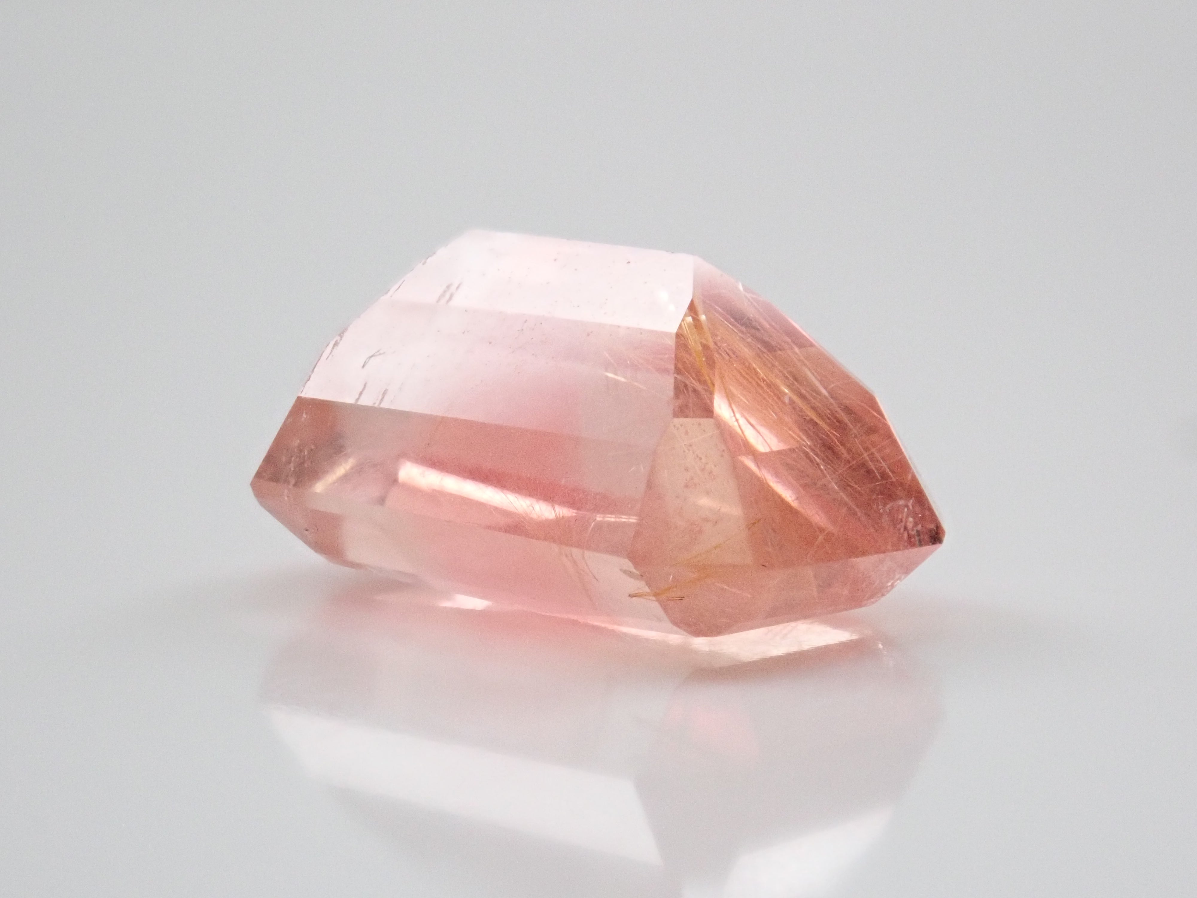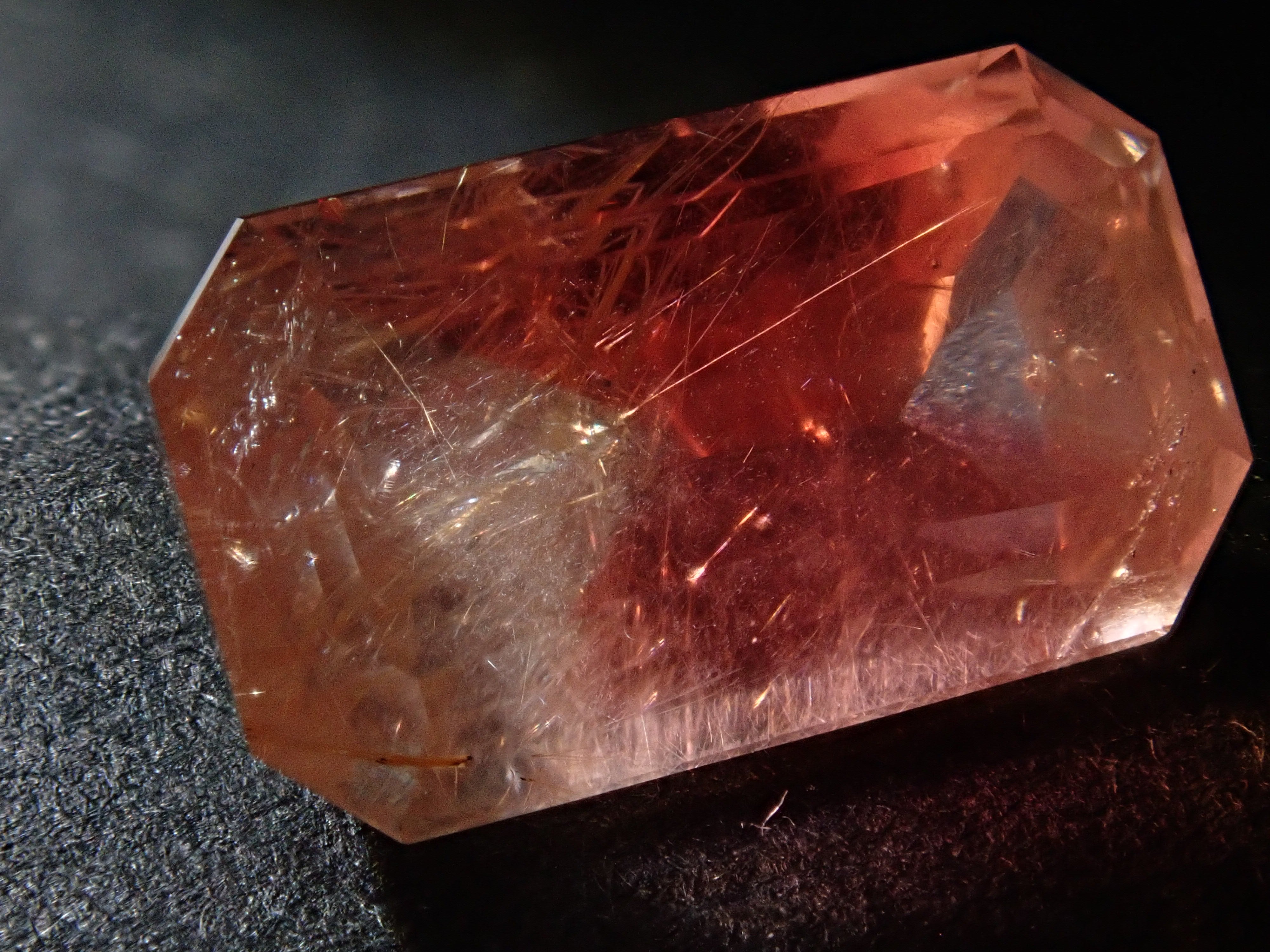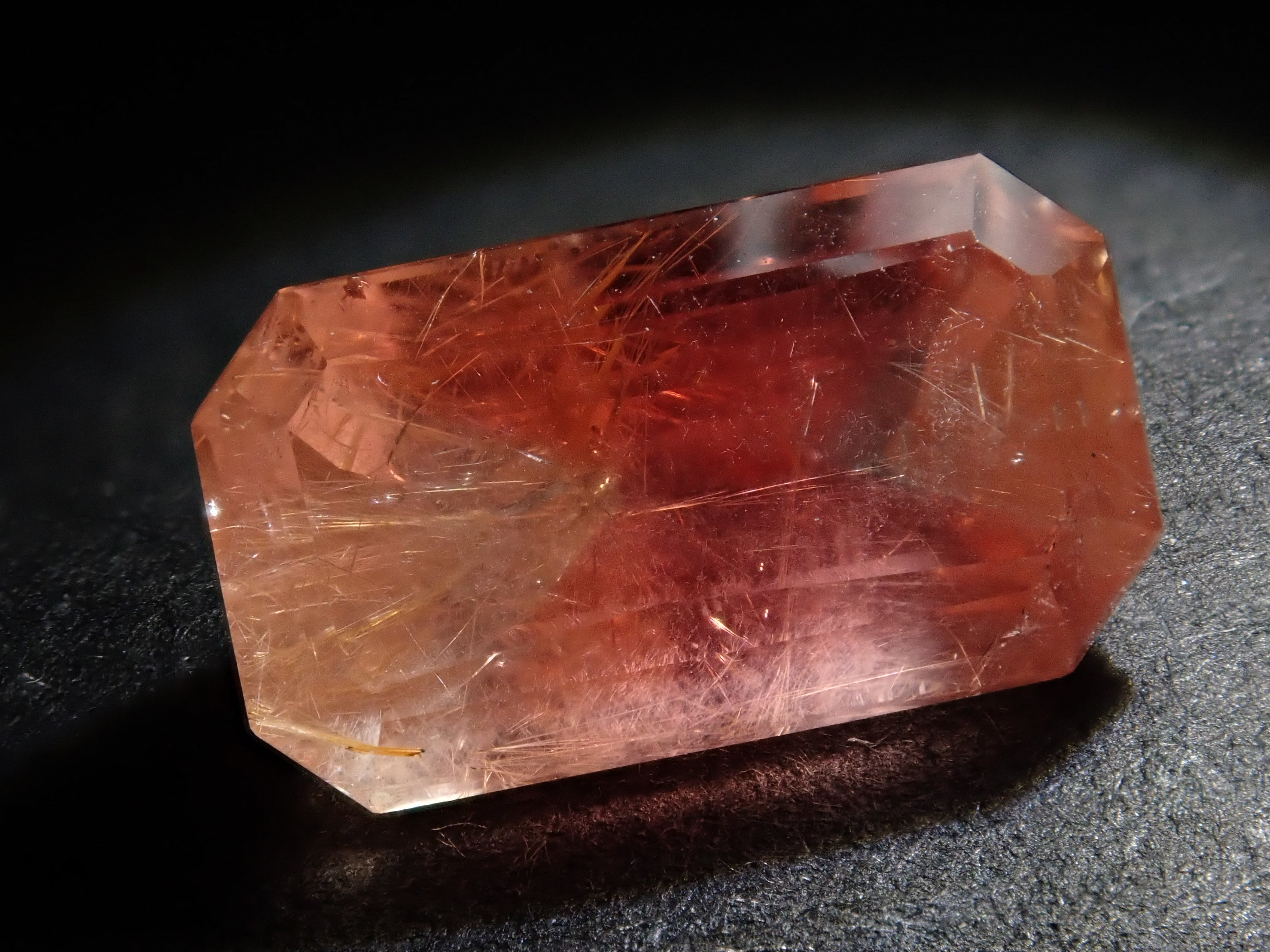 尤長石,顏色與帕帕拉恰藍寶石相似。 Pink Euclase 於 2015 年在巴西巴伊亞首次發現,並於 2019 年左右在全球上市。它比藍色更稀有,對於收藏家來說是一種罕見的寶石,最近在日本上市,儘管數量很少。藍色尤長石是由鐵和鈦著色的,粉紅色是由微量元素錳著色的。這是粉紅色和橙色的雙色尤克勞斯。它是一種超過 3 克拉的大型雙色顆粒,分佈體積特別小。據說裡面還含有另一種礦物,這種礦物可能就是褐鐵礦。有趣的是,粉紅色的長石中還含有另一種礦物質。附有日德寶石研究所頒發的鑑定證書。