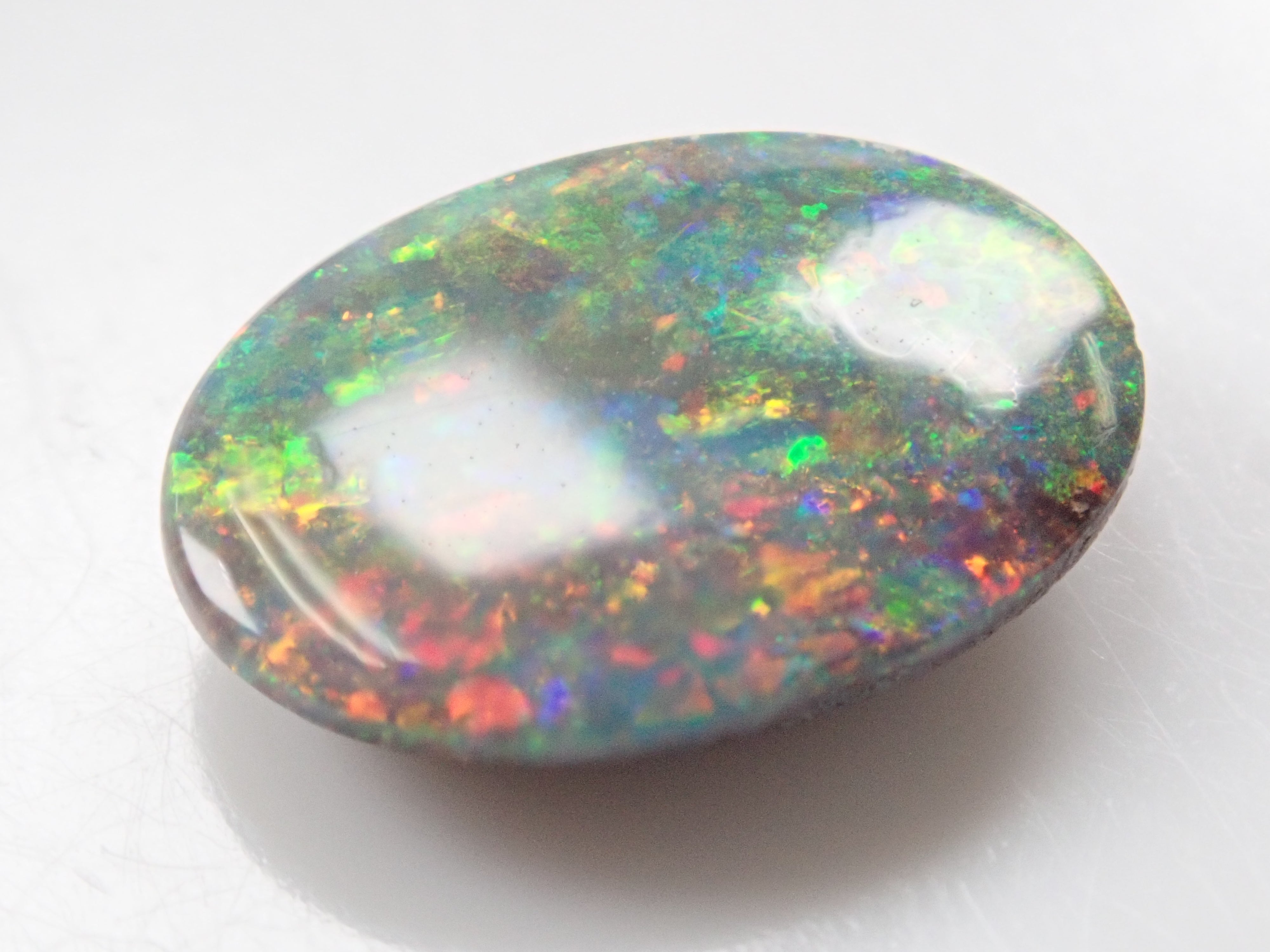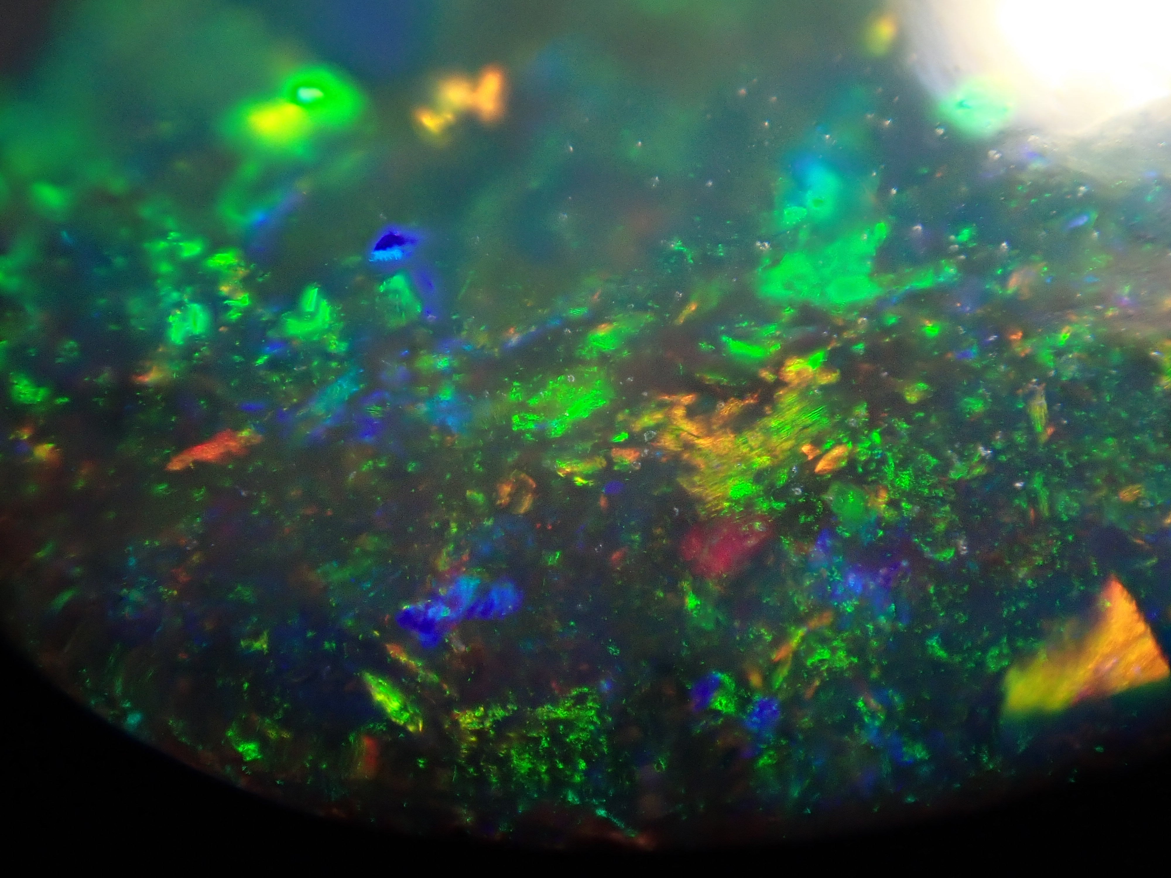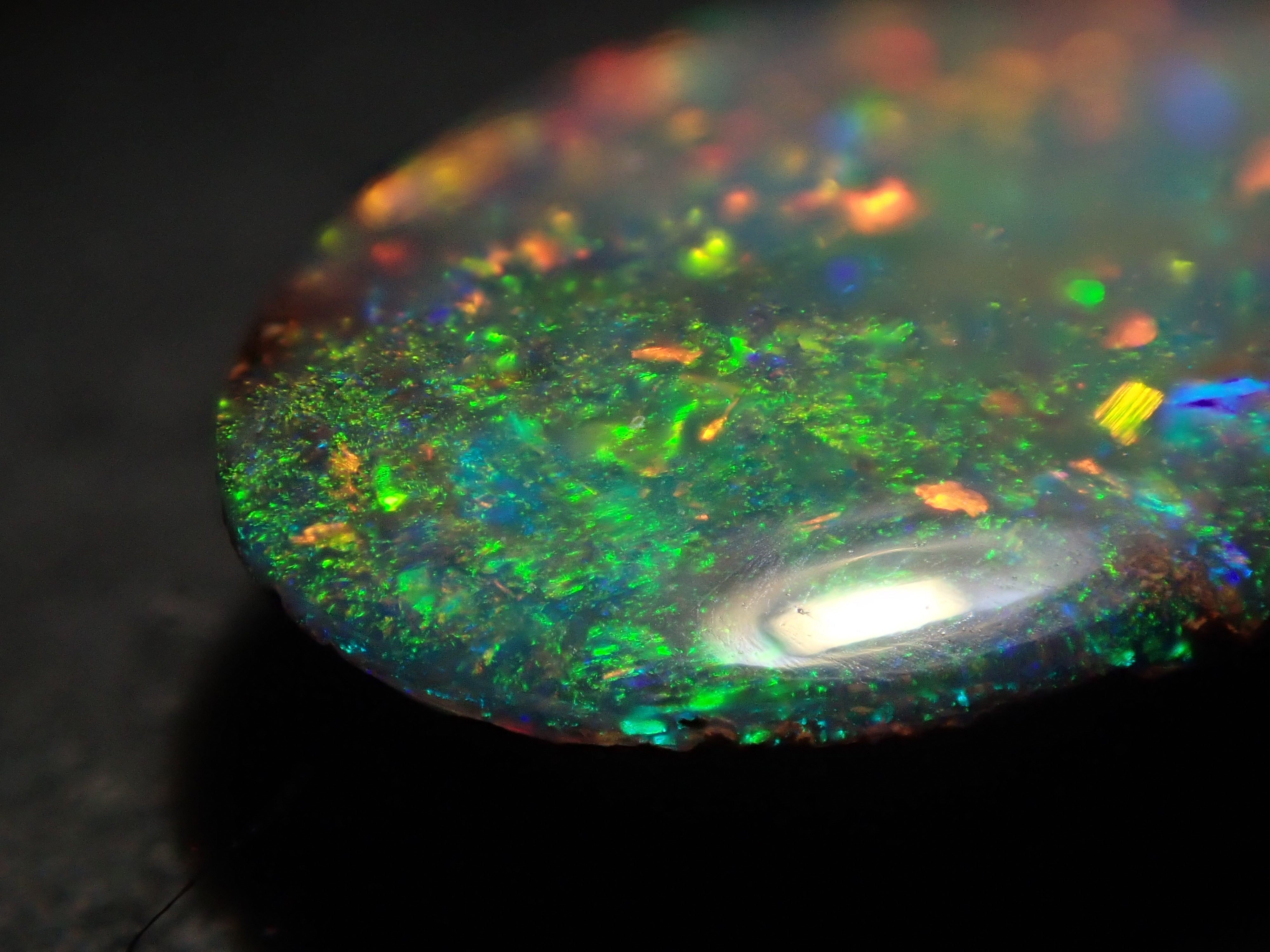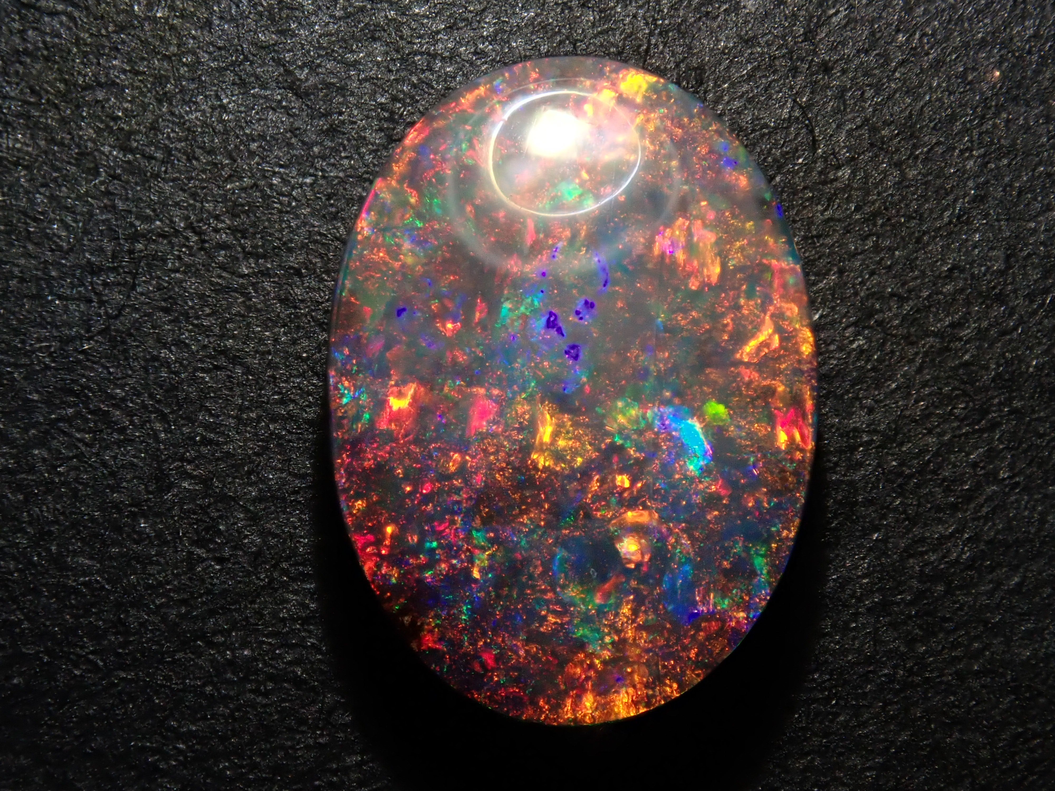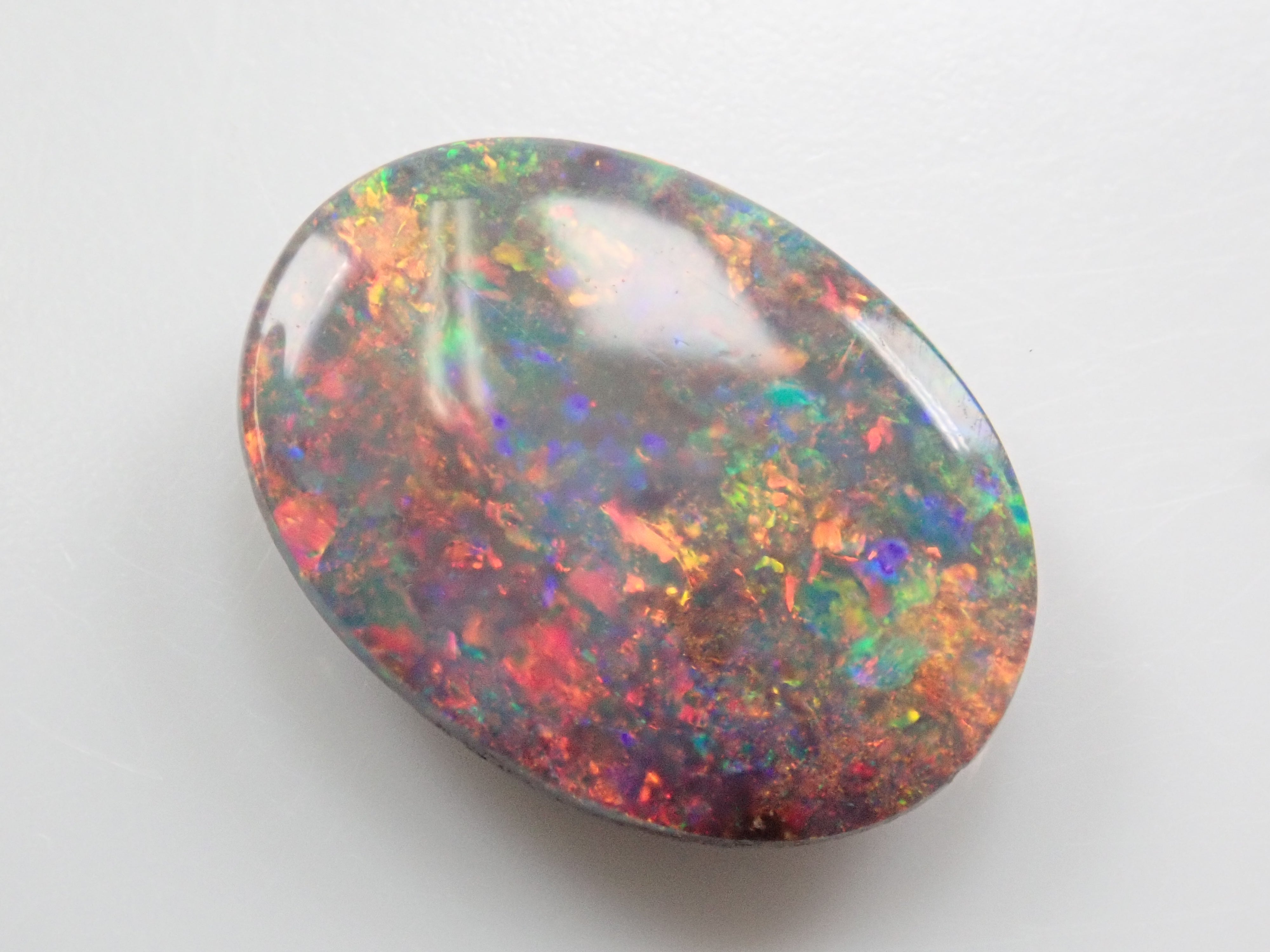 蛋白石是一種閃爍著彩虹色光芒的寶石。蛋白石有多種類型,其中,礫石蛋白石是指仍附著主岩的蛋白石。有些照片是用筆燈拍攝的。這是一塊礫石蛋白石,您可以充分享受紅色的色彩。這是一種品質非常高的礫石蛋白石。