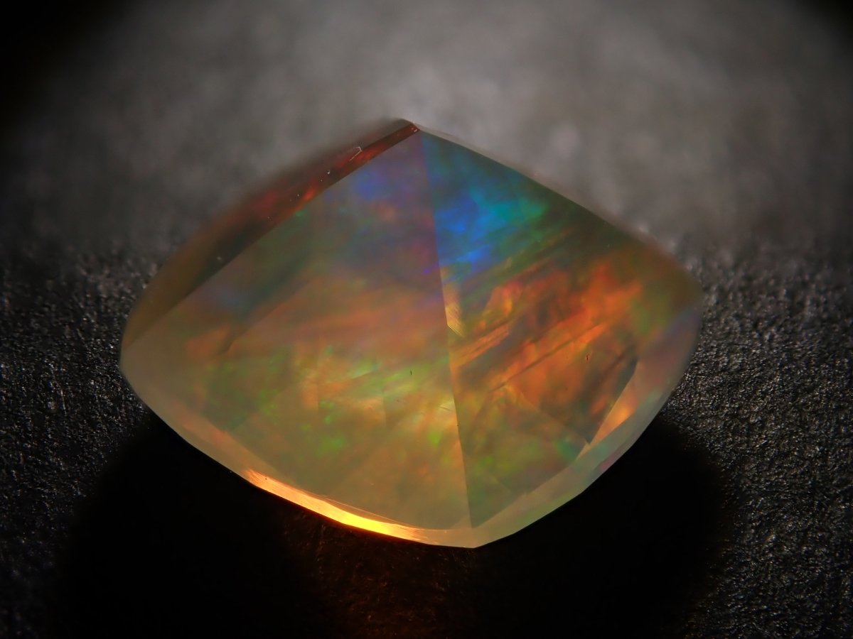 自古羅馬時代以來,蛋白石就廣受歡迎。火蛋白石是一種以紅色到橘色為底色的蛋白石,形狀像「火」。這張照片是用筆型電筒拍攝的。