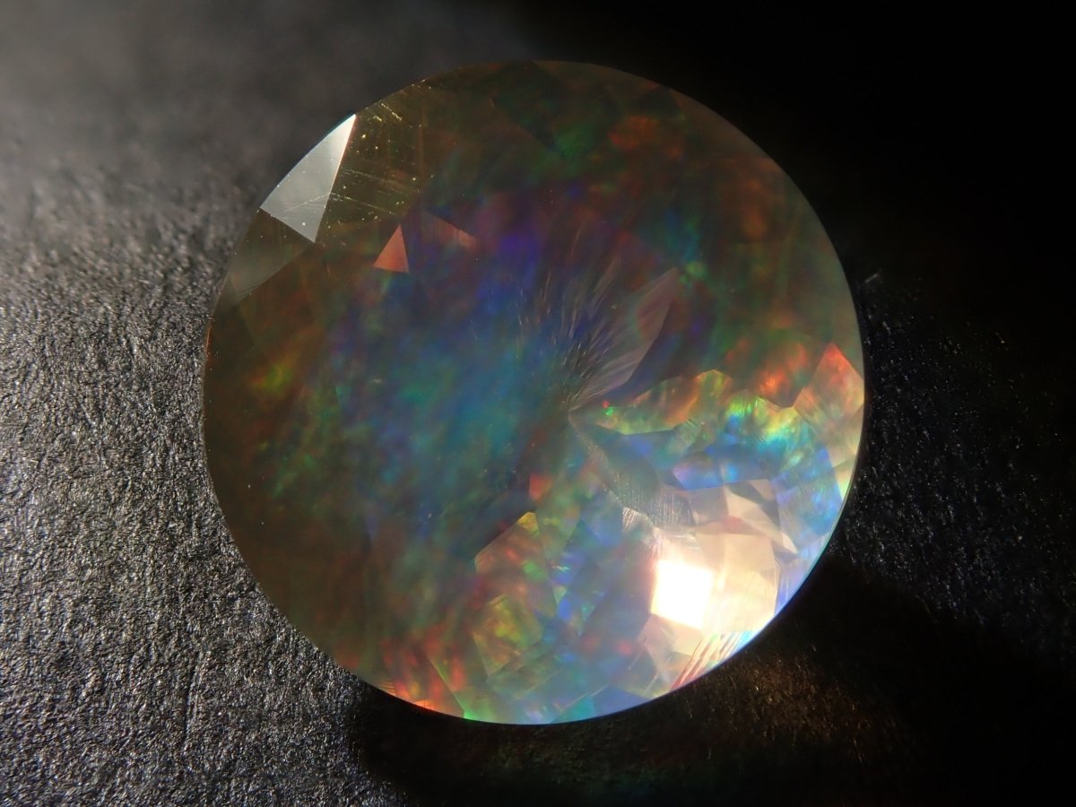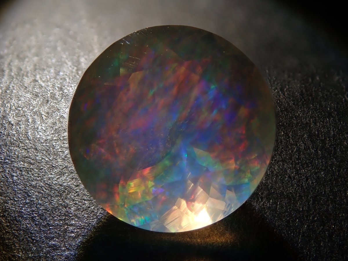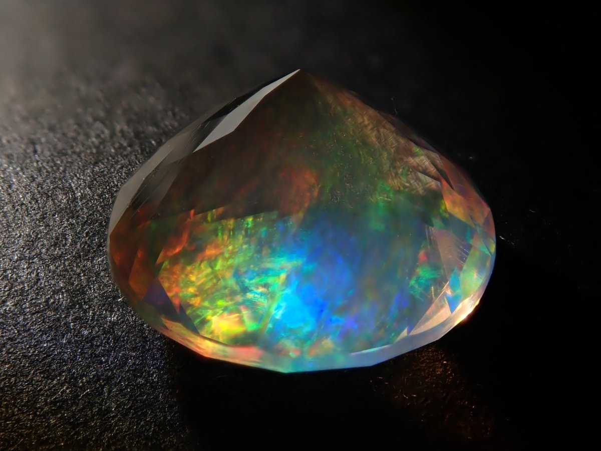 由美國熟練工匠KEN松剪。一種火蛋白石,當從後面在黑色背景下照亮時,可以享受到奇妙的色彩變化。