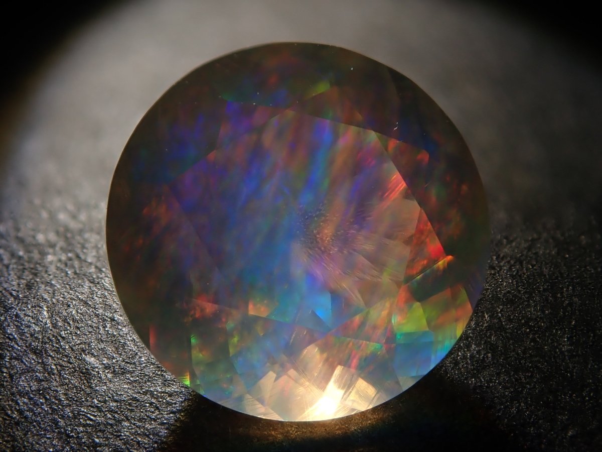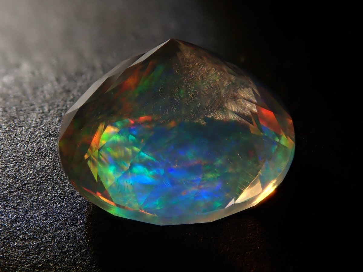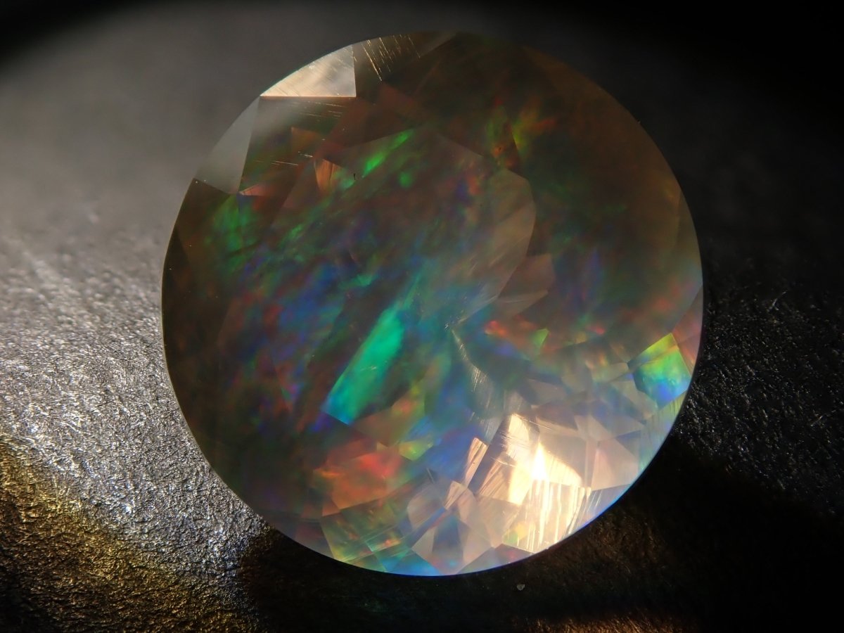 由美國熟練工匠KEN松剪。一種火蛋白石,當從後面在黑色背景下照亮時,可以享受到奇妙的色彩變化。
