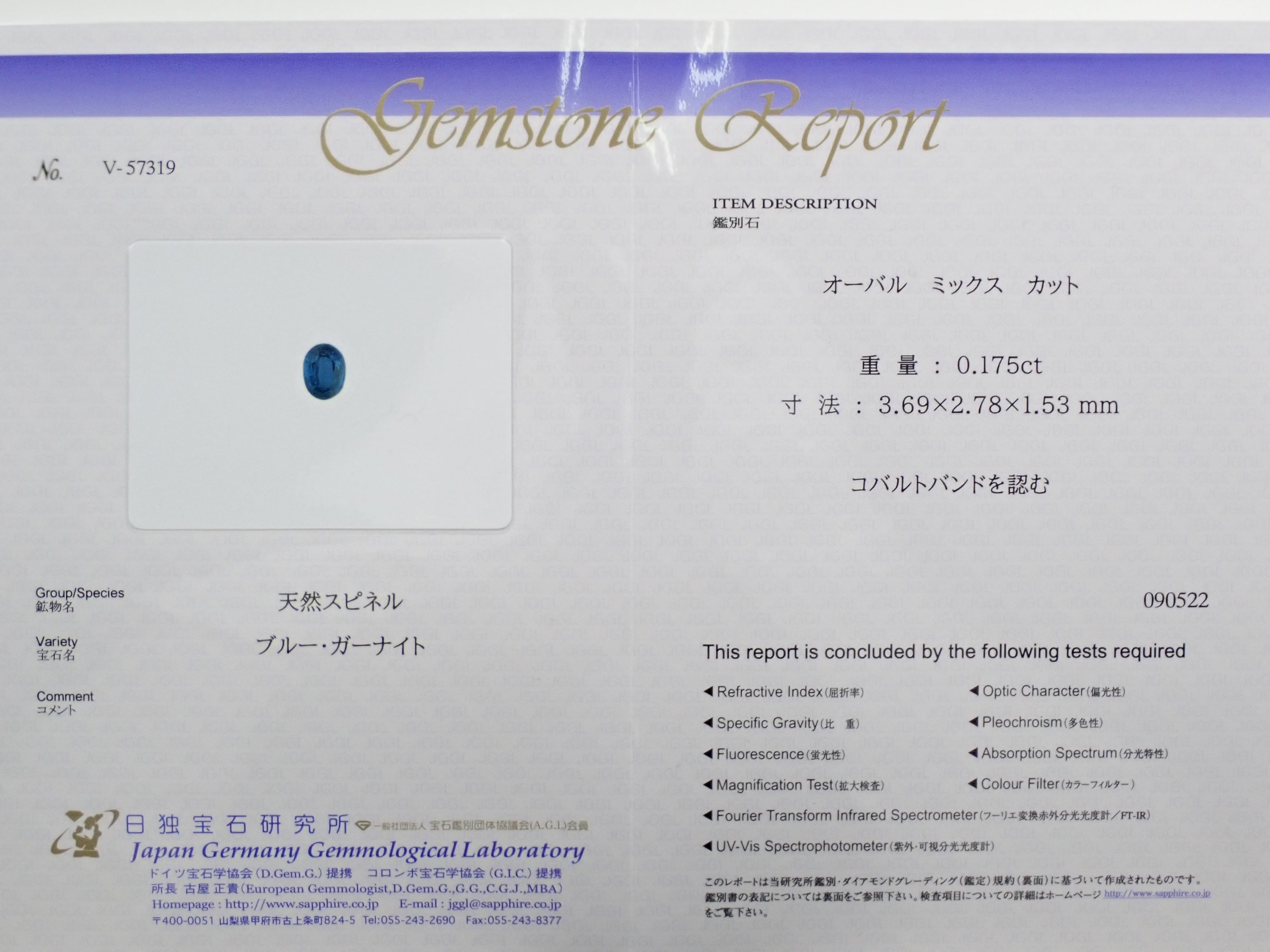 ・附件:鑑定書(日德寶石研究所)、盒子