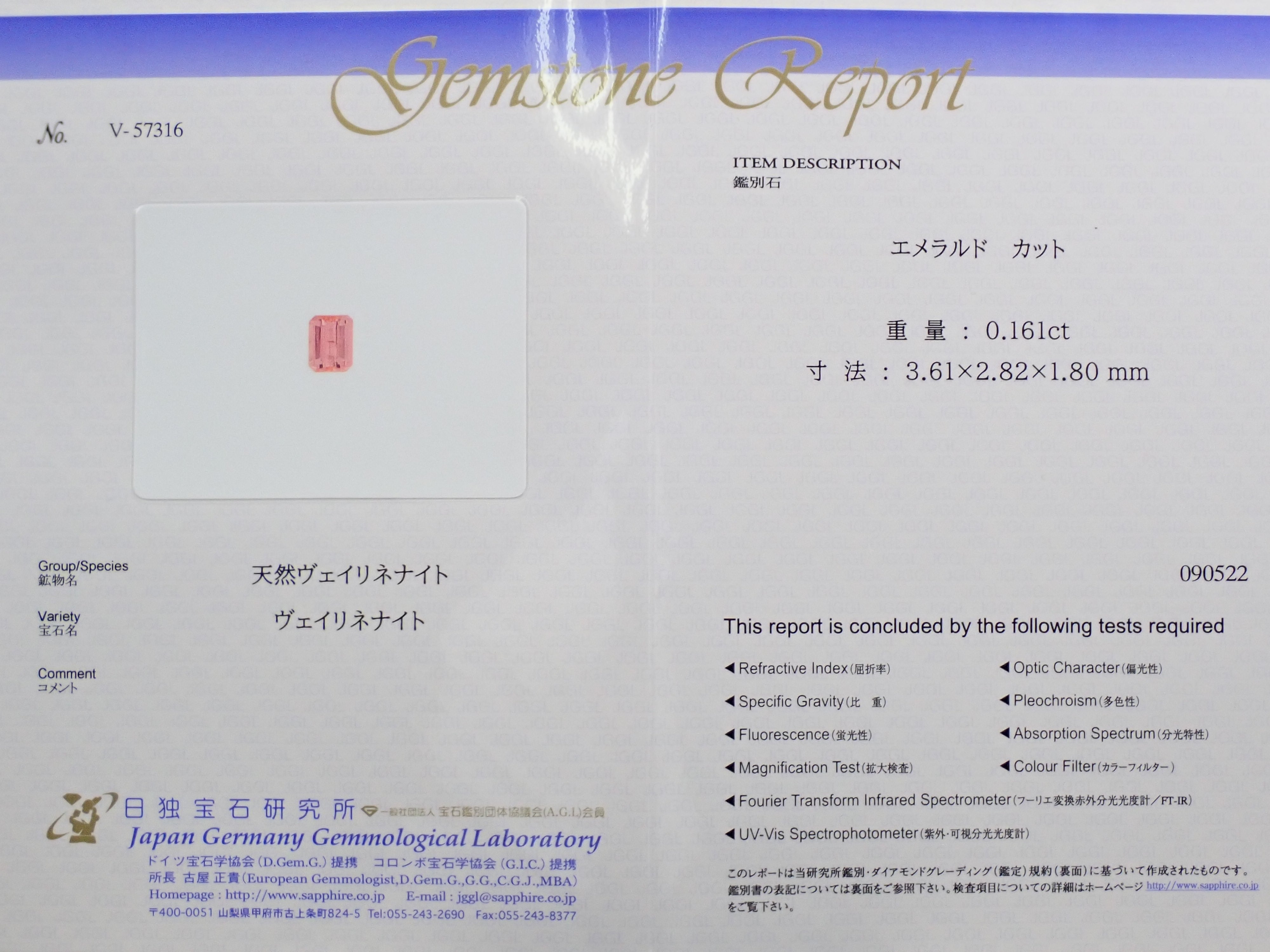 綠柱石是一種相對較新的礦物,發現於20世紀初。它也被稱為“Beirinnite”。由於產量低,這種寶石非常稀有。據說它的顏色有粉紅色、橙色、灰色、棕色和紅色等多種變化。綠柱石通常是一種內含物較多的寶石,但這顆綠柱石卻是一種高度透明的裸石,內含物很少。它附有日德寶石學院的鑑定證書。