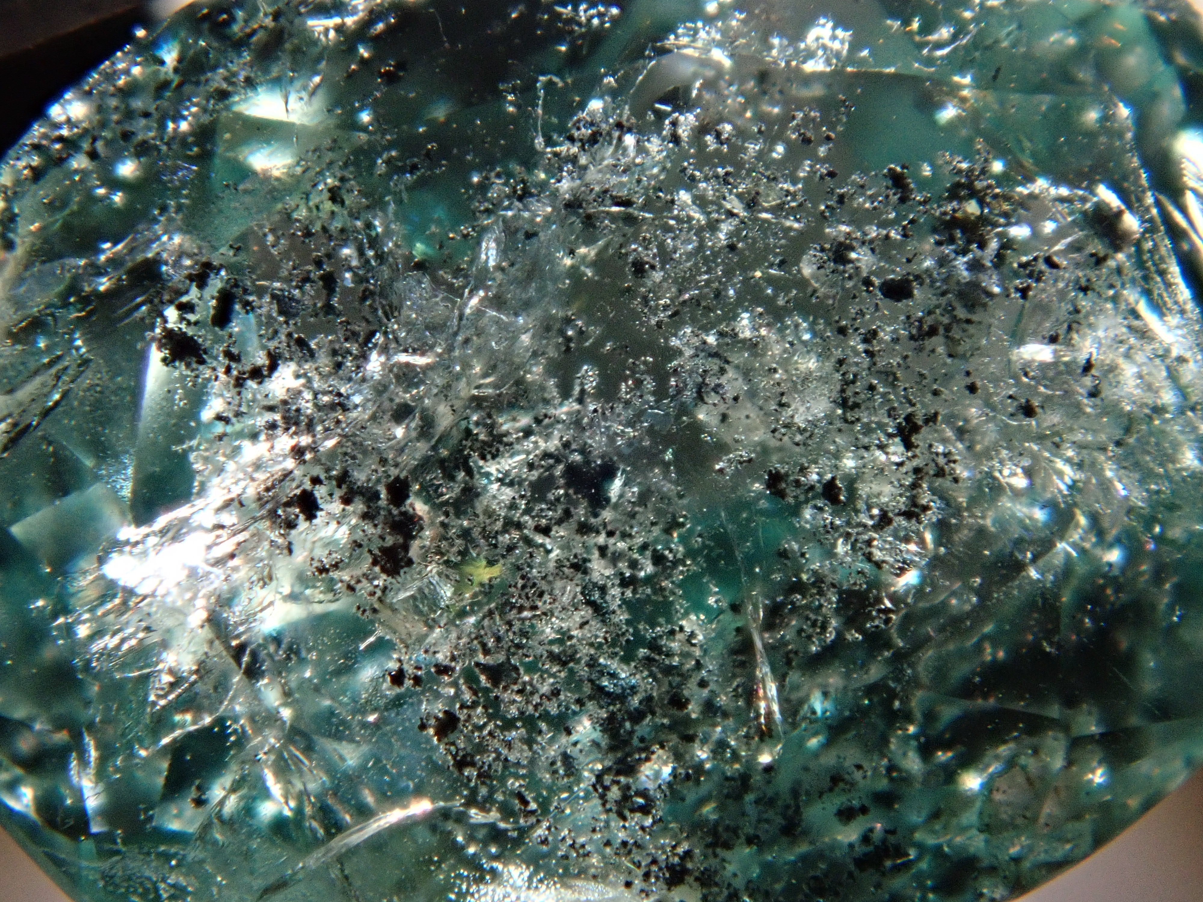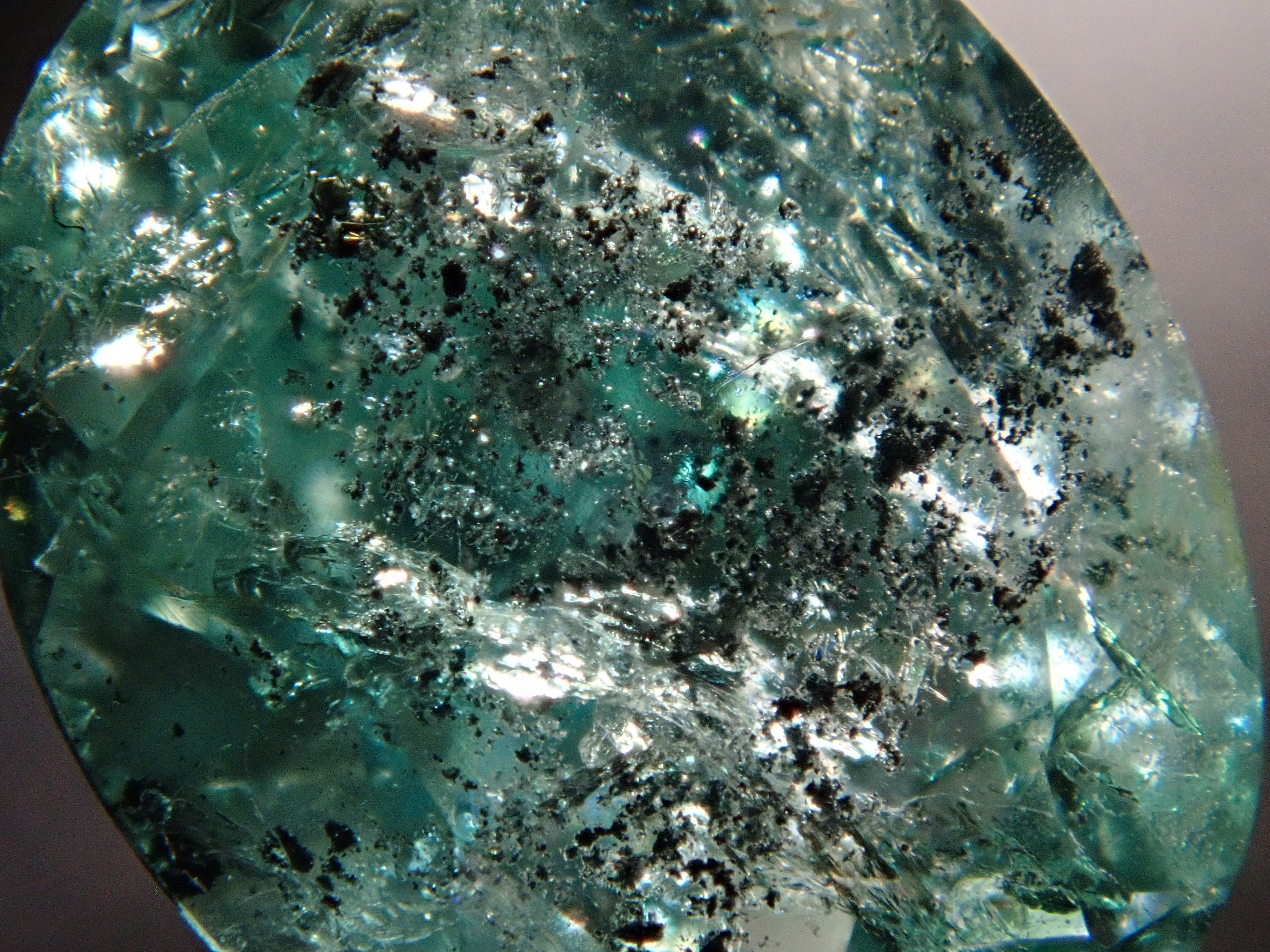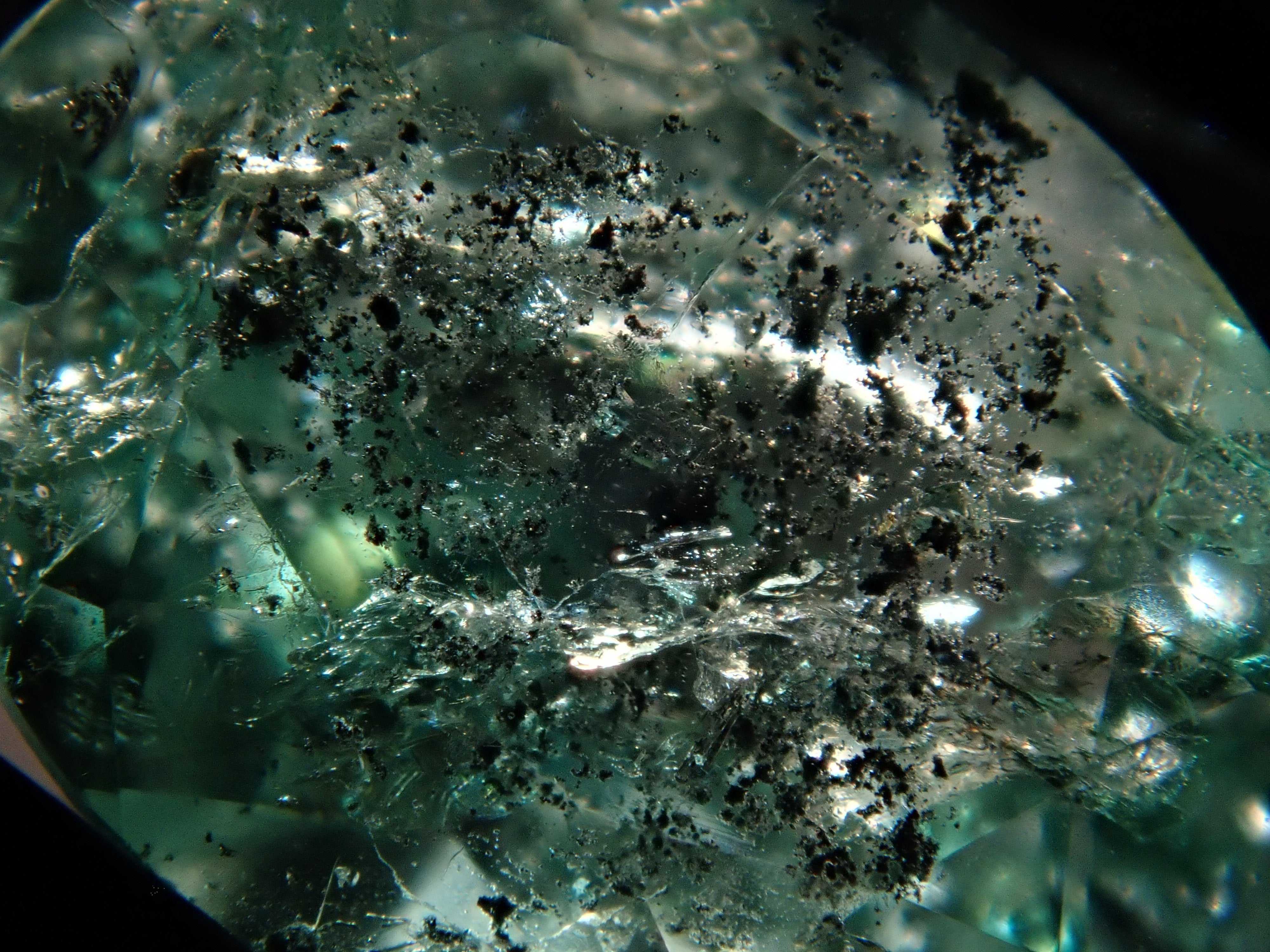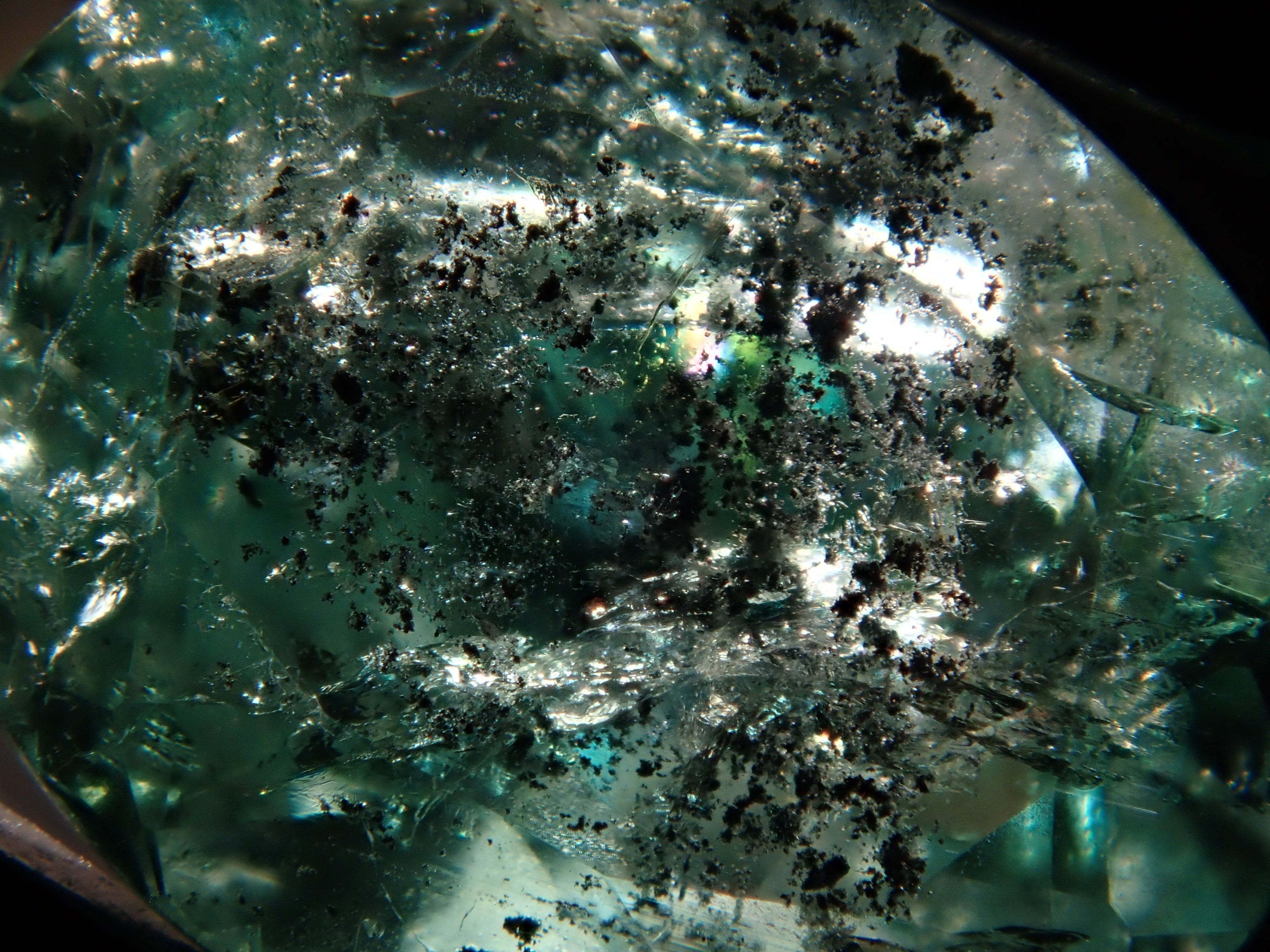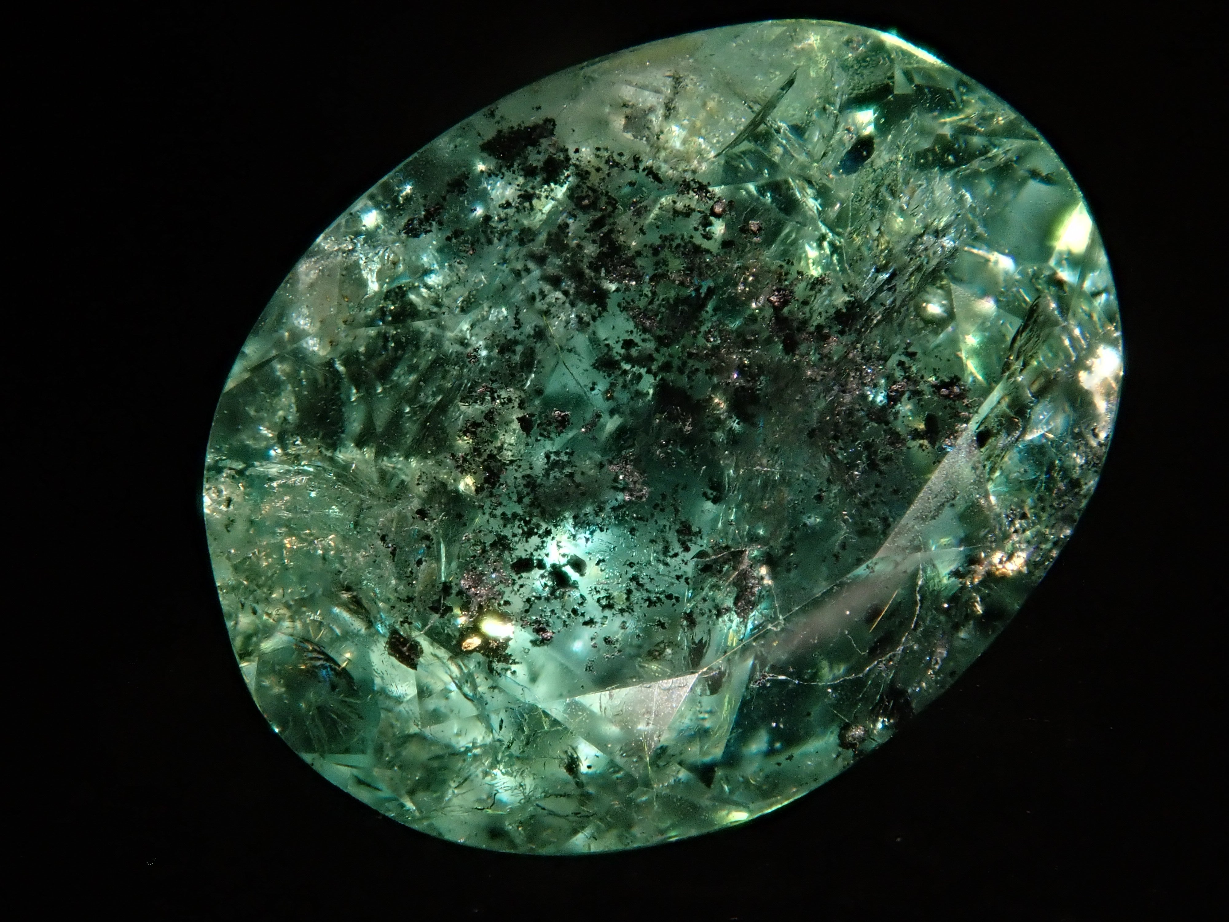 據說祖母綠的美麗綠色因產地而異。這顆產自哥倫比亞的祖母綠,據說擁有特別深邃的綠色。祖母綠通常容易出現刮痕,因此通常會用油進行處理,使刮痕不那麼明顯。請欣賞它優雅的綠色。這顆產自哥倫比亞的雲母祖母綠。