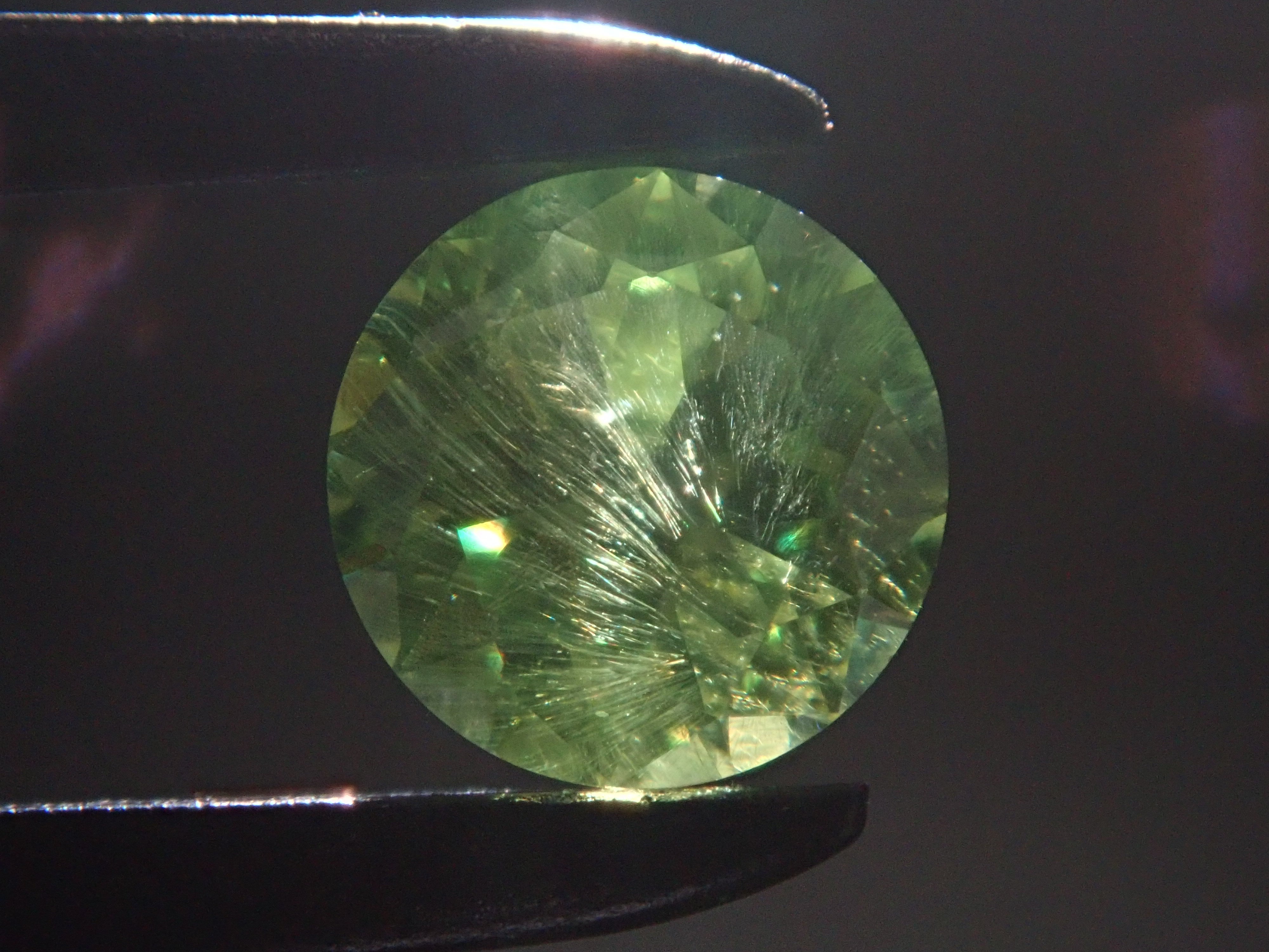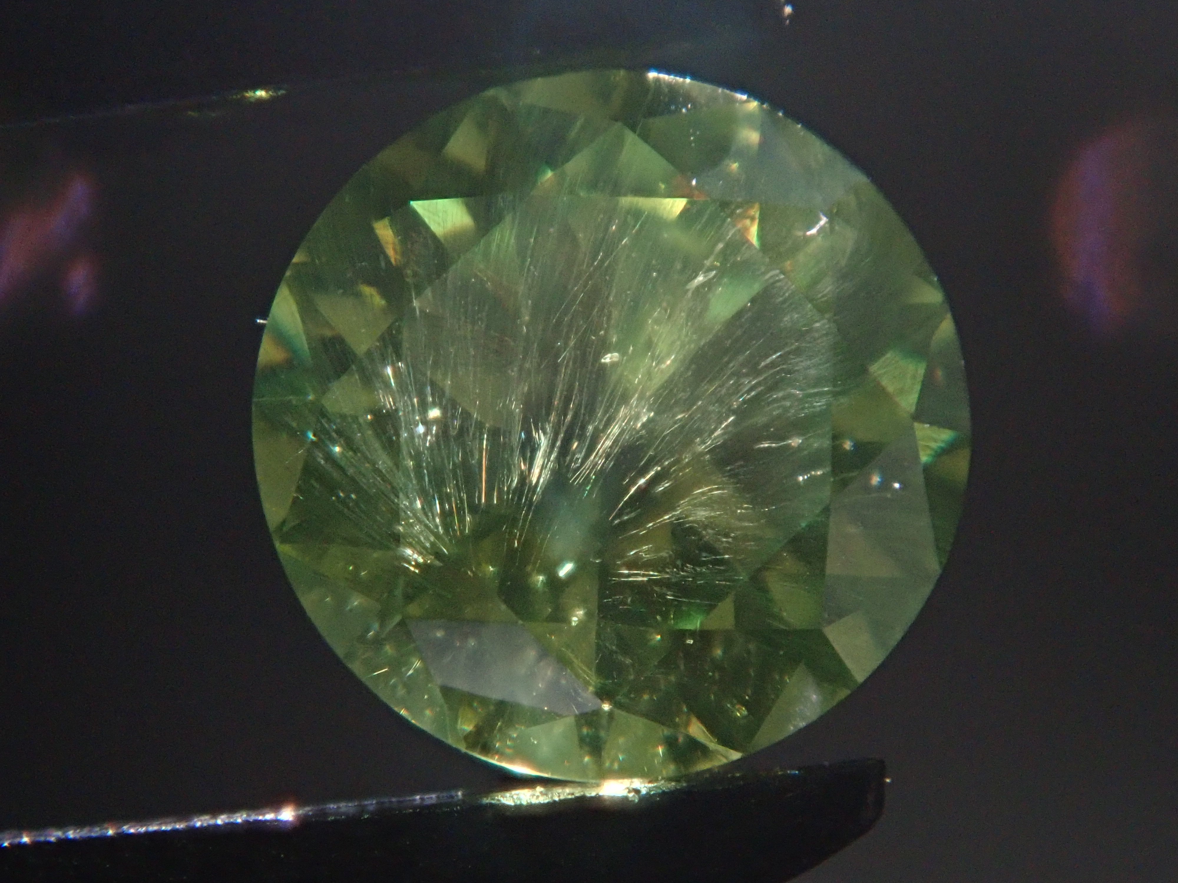 石榴石具有強烈的光色散和強烈的閃光。其中,這顆綠色的「濃綠榴石」是一種特別美麗且稀有的石榴石。這種類型稱為“馬尾”,內含物看起來像馬尾巴。馬尾的存在或不存在已透過顯微鏡檢查來確認。這是來自俄羅斯的稀有產品。美麗的高品質,圓形切割 4.6 毫米馬尾