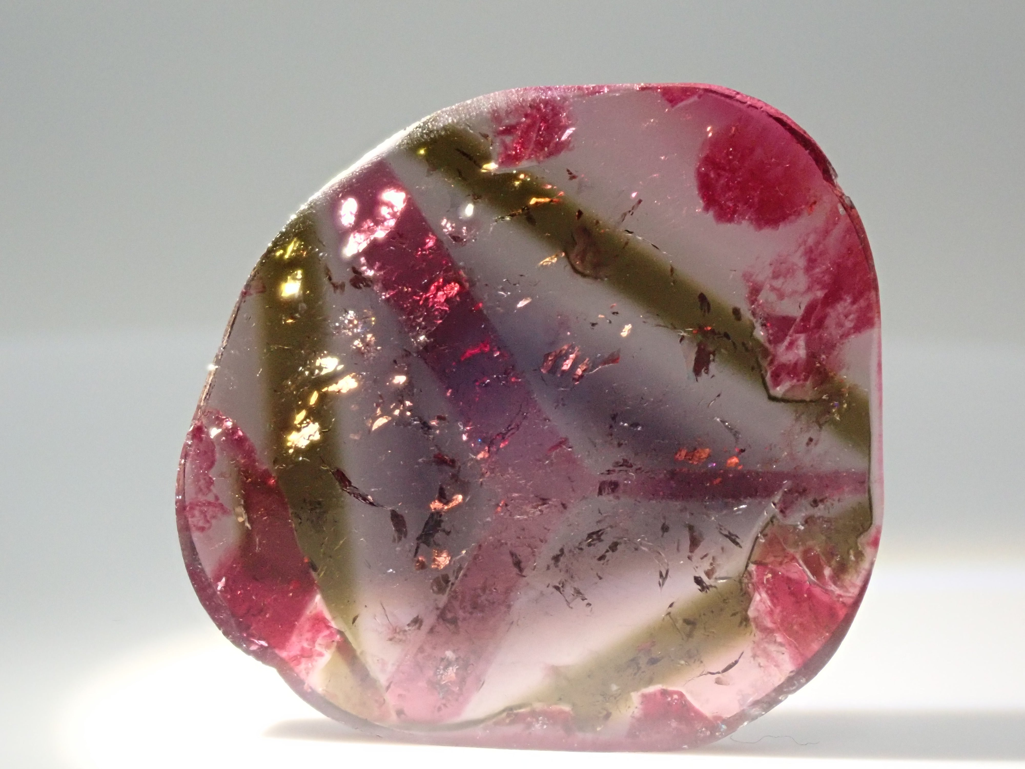 碧璽被稱為色彩寶庫。它的起源是僧伽羅語“Torumari”,意思是“各種顏色”。其中,像西瓜一樣紅綠混在一起的碧璽被稱為「西瓜碧璽」。電氣石讓您想要擁有多種顏色。附有日德寶石研究所頒發的鑑定證書。來自緬甸的雜色碧璽(西瓜碧璽)。西瓜碧璽的內部花紋非常漂亮,而且是鬆散型,目前很少分佈。這是即使在海外也很難見到的稀有西瓜碧璽。