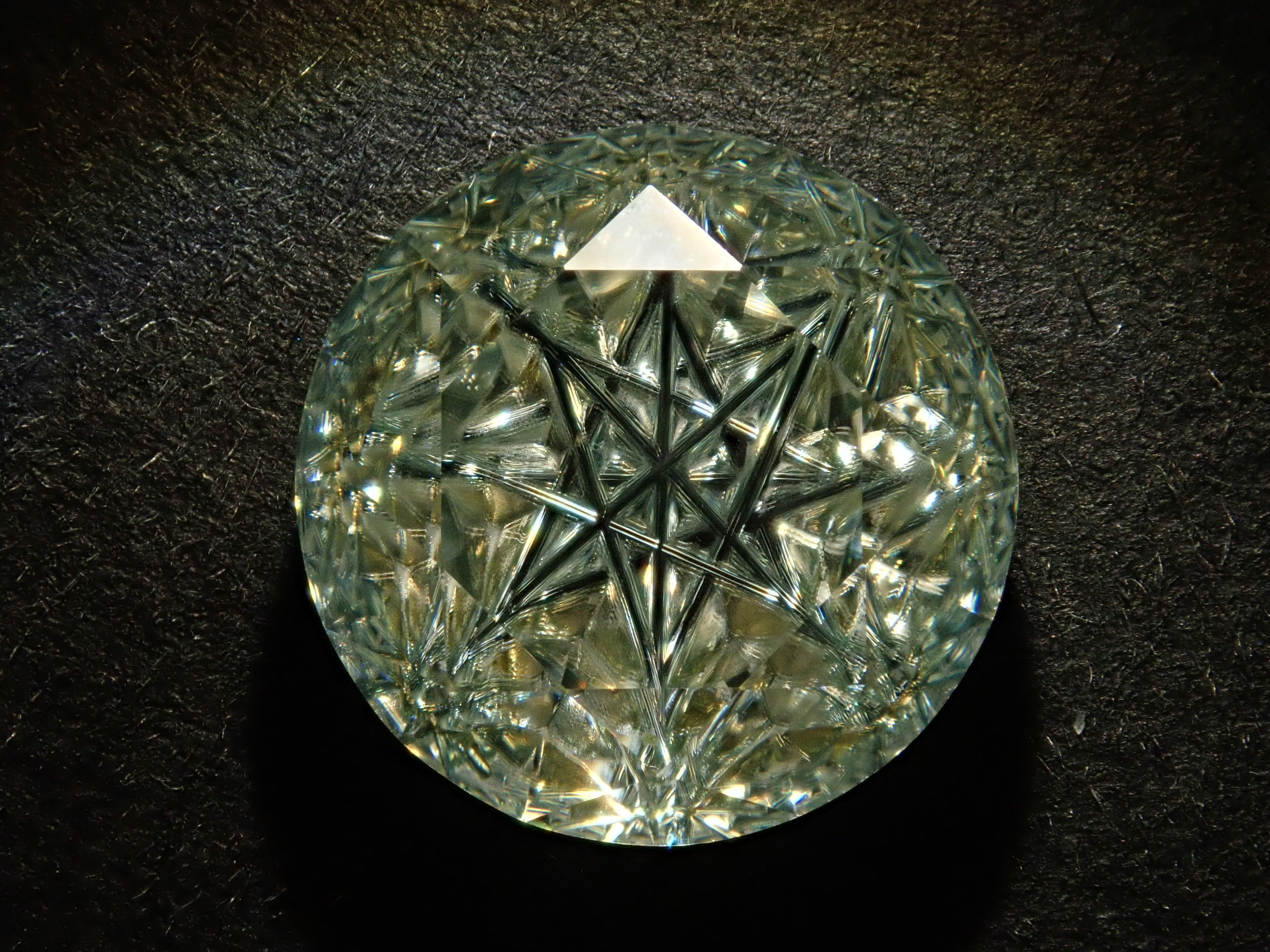 莫桑石的硬度高達 9.5,是甲州寶石切割中極難拋光的寶石,兩件作品的最終拋光(增添光澤的過程)需要一整天的時間。