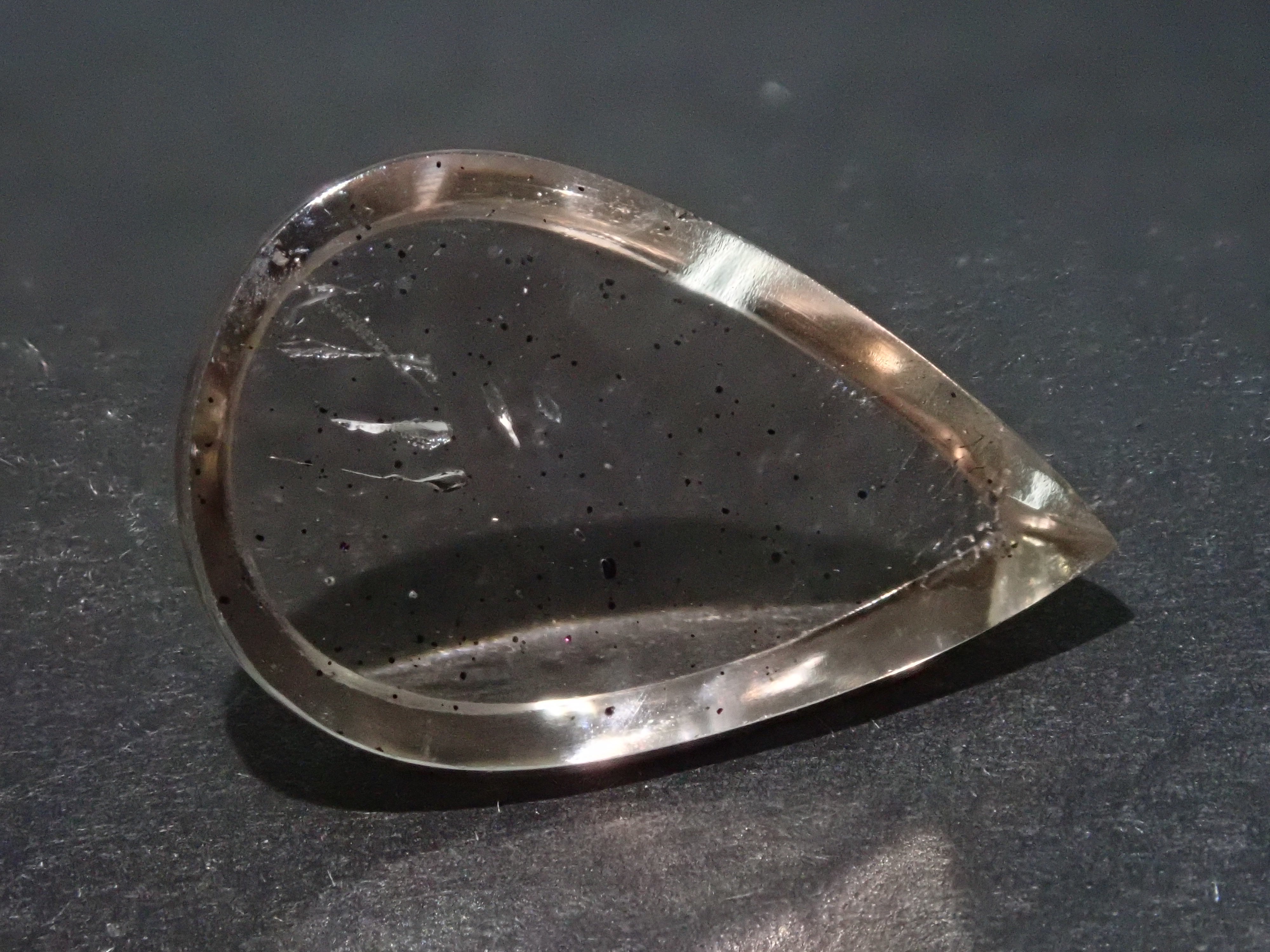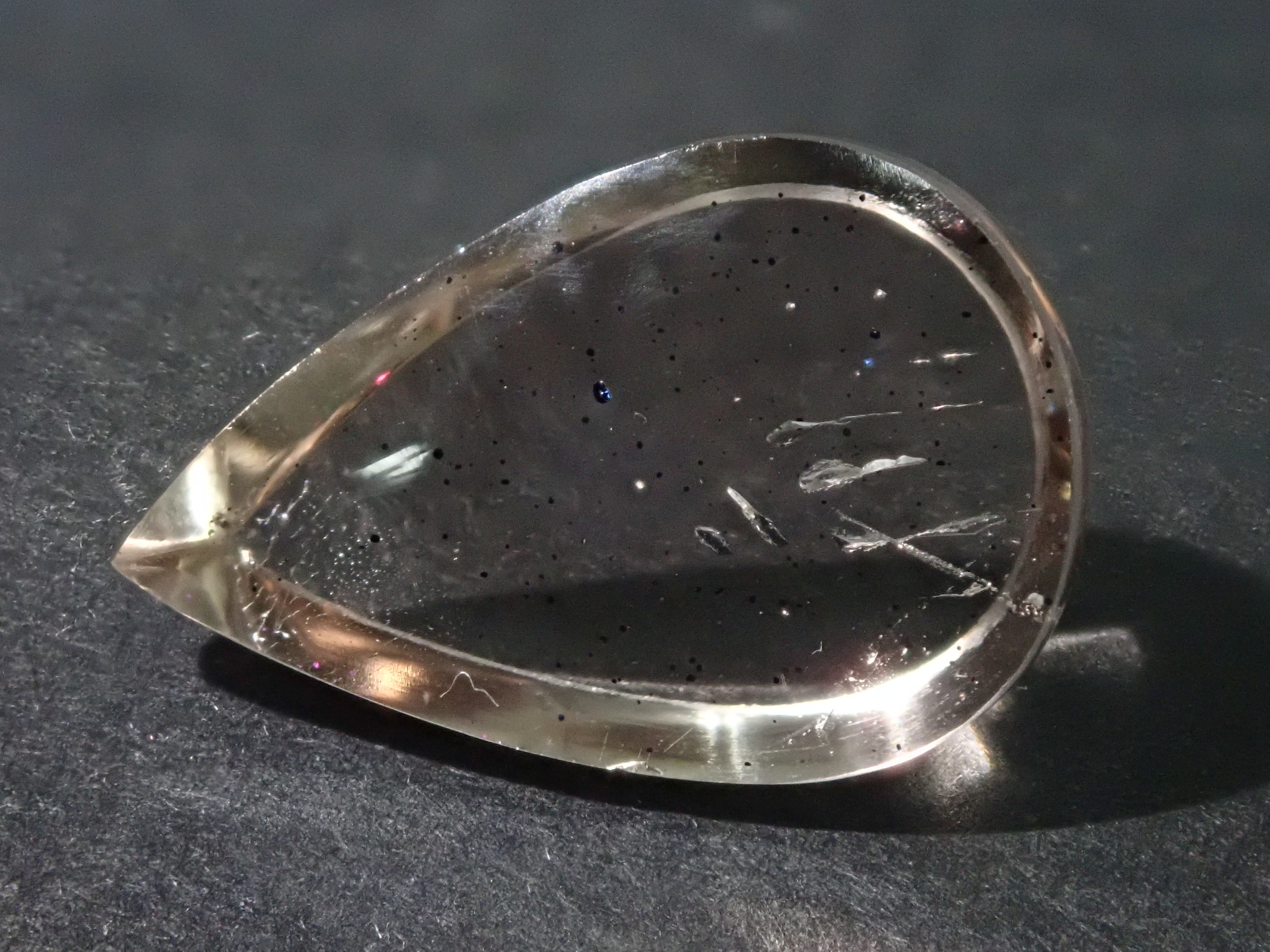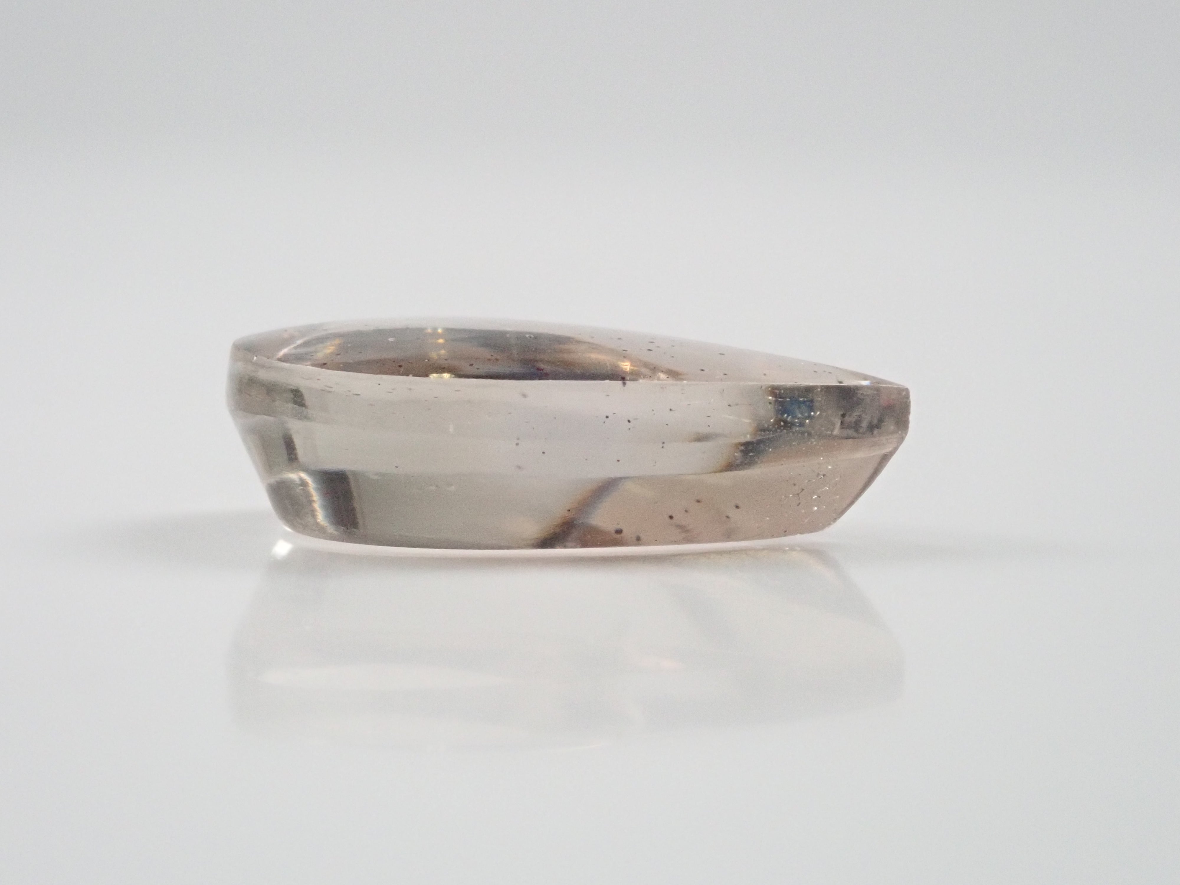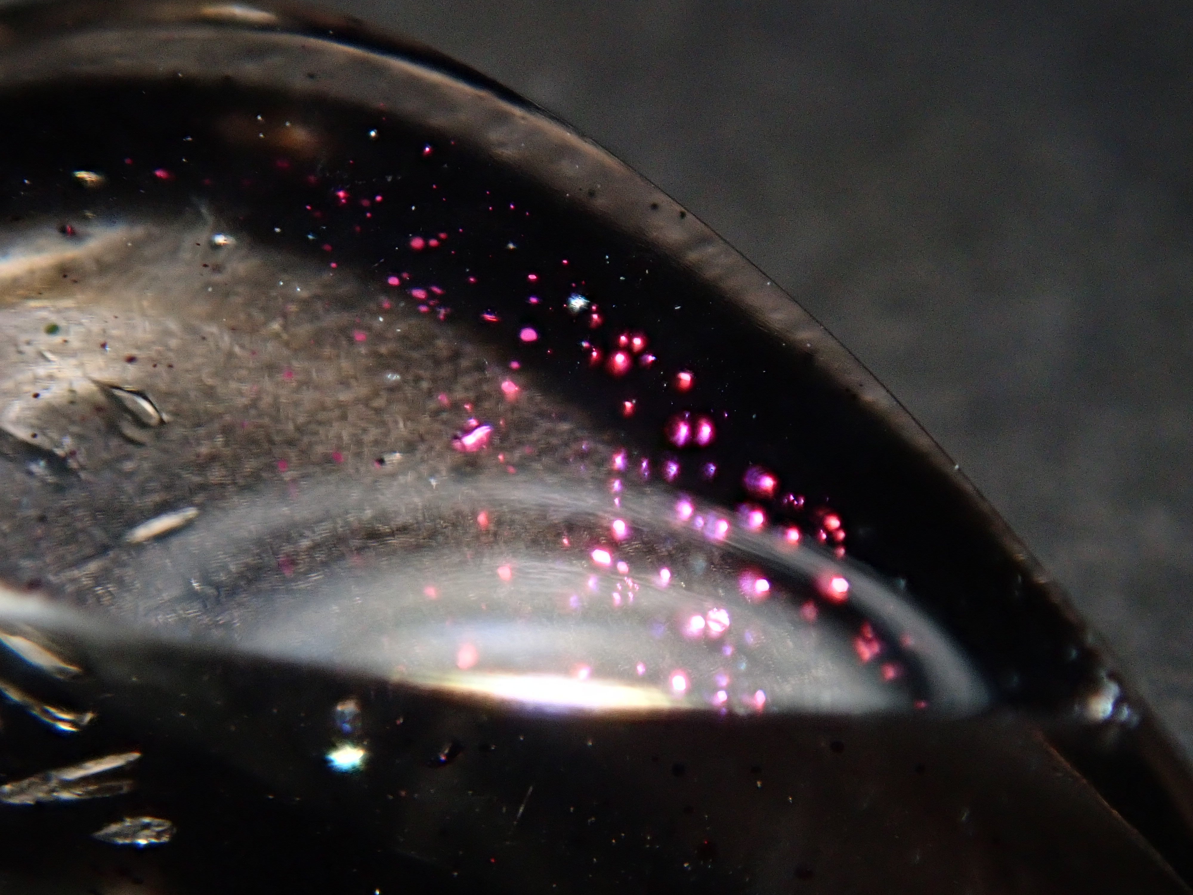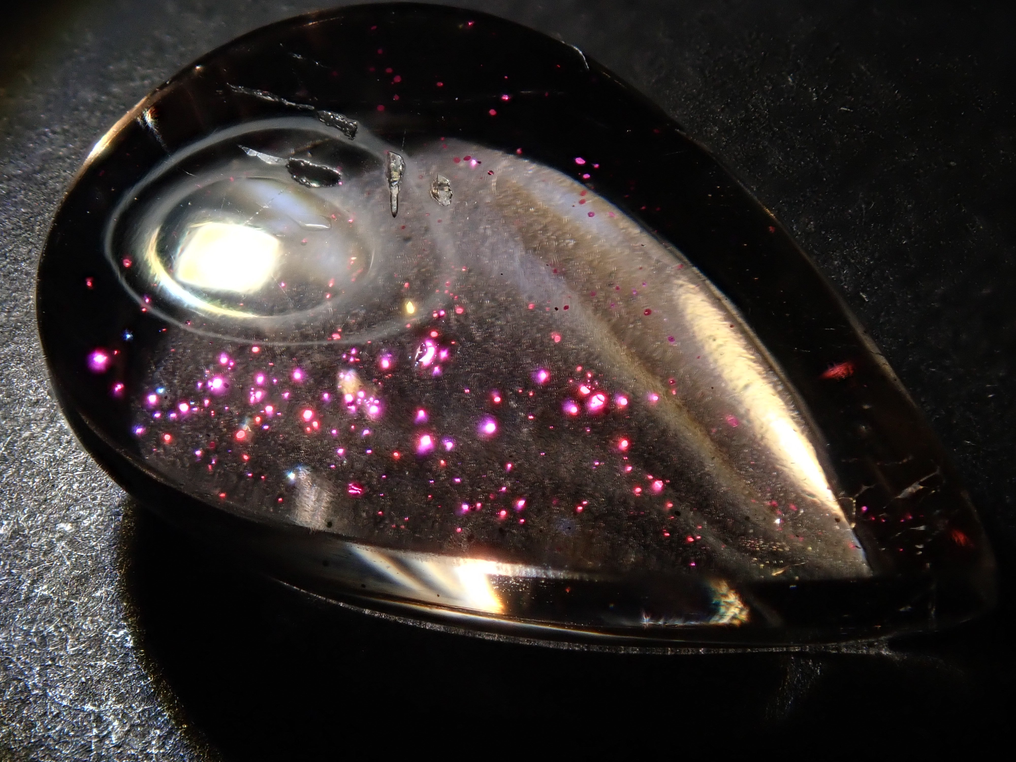 石英,日文稱為“水晶”,在日本是一種常見的寶石,但它也是一種深奧的寶石,擁有眾多種類,包括紫水晶和黃水晶。這種形狀像紅色花瓣的水晶被稱為「小叮噹石英」或「粉紅火石英」。照片是用筆形電筒拍攝的,以便清晰地顯示內部內含物的狀態。