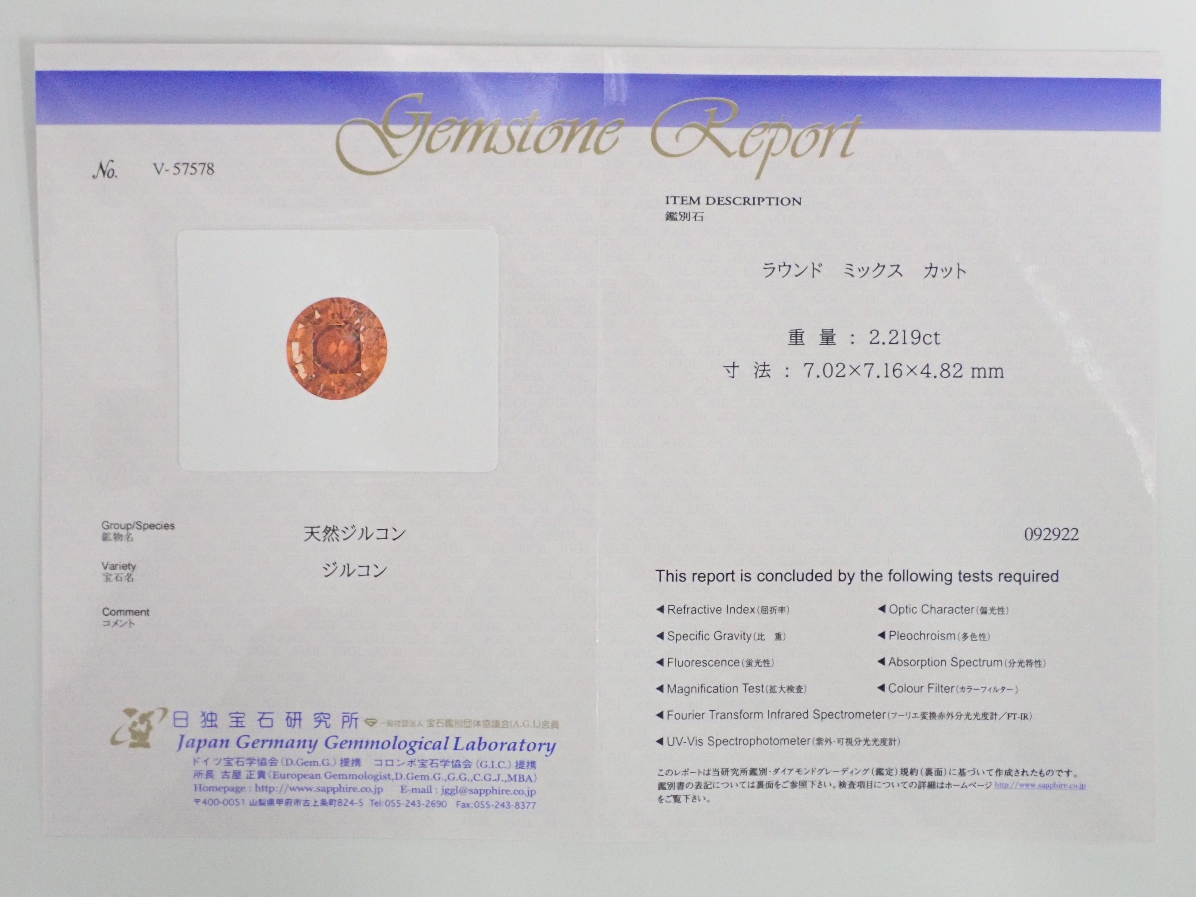 鋯石是世界上最古老的礦物。它是一種顏色多種多樣的石頭,具有高雙折射和一種稱為“雙重”的特性,使其閃閃發光。這是黃棕色類型。含有特徵晶體包裹體的鋯石。我們委託第三方鑑定機構對晶體包裹體的類型進行了調查,但其真實性質尚不清楚。