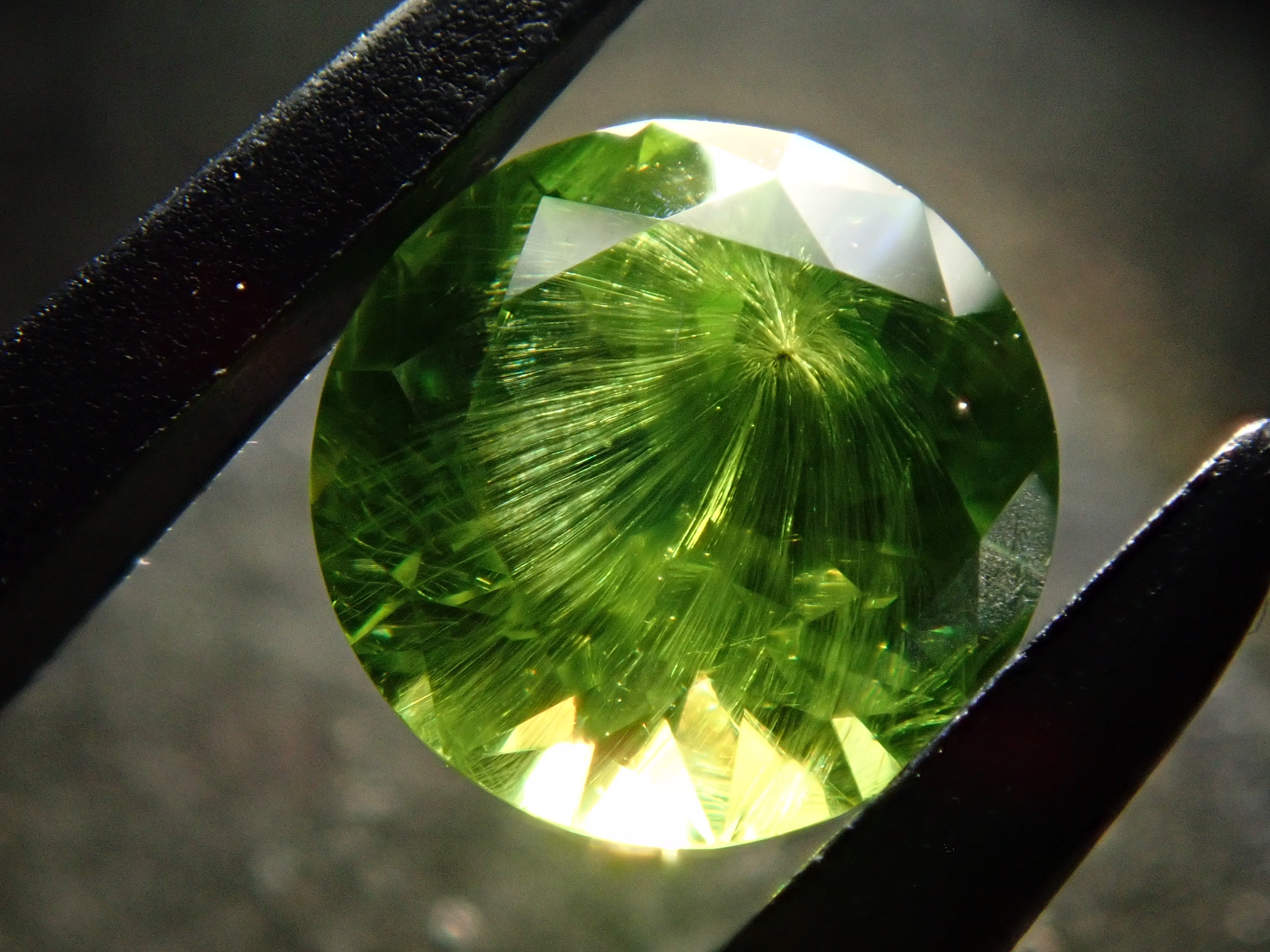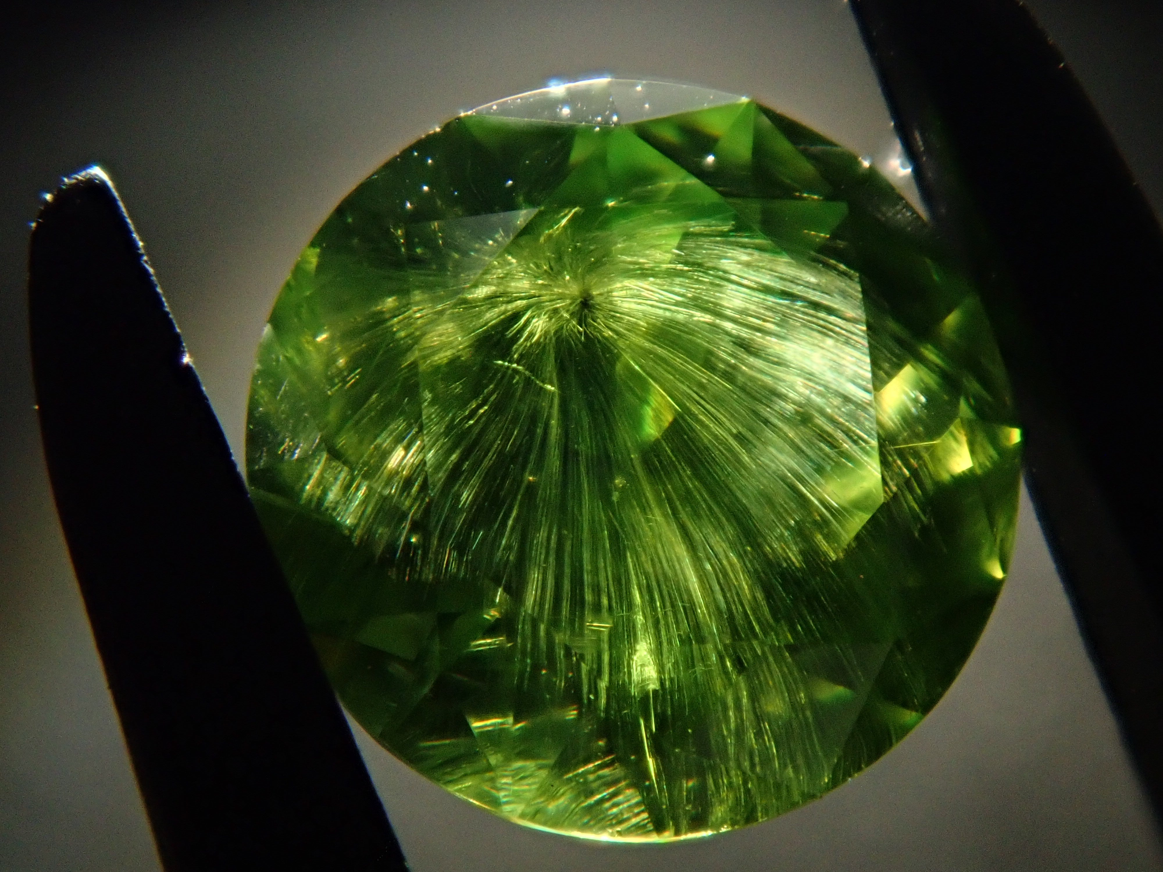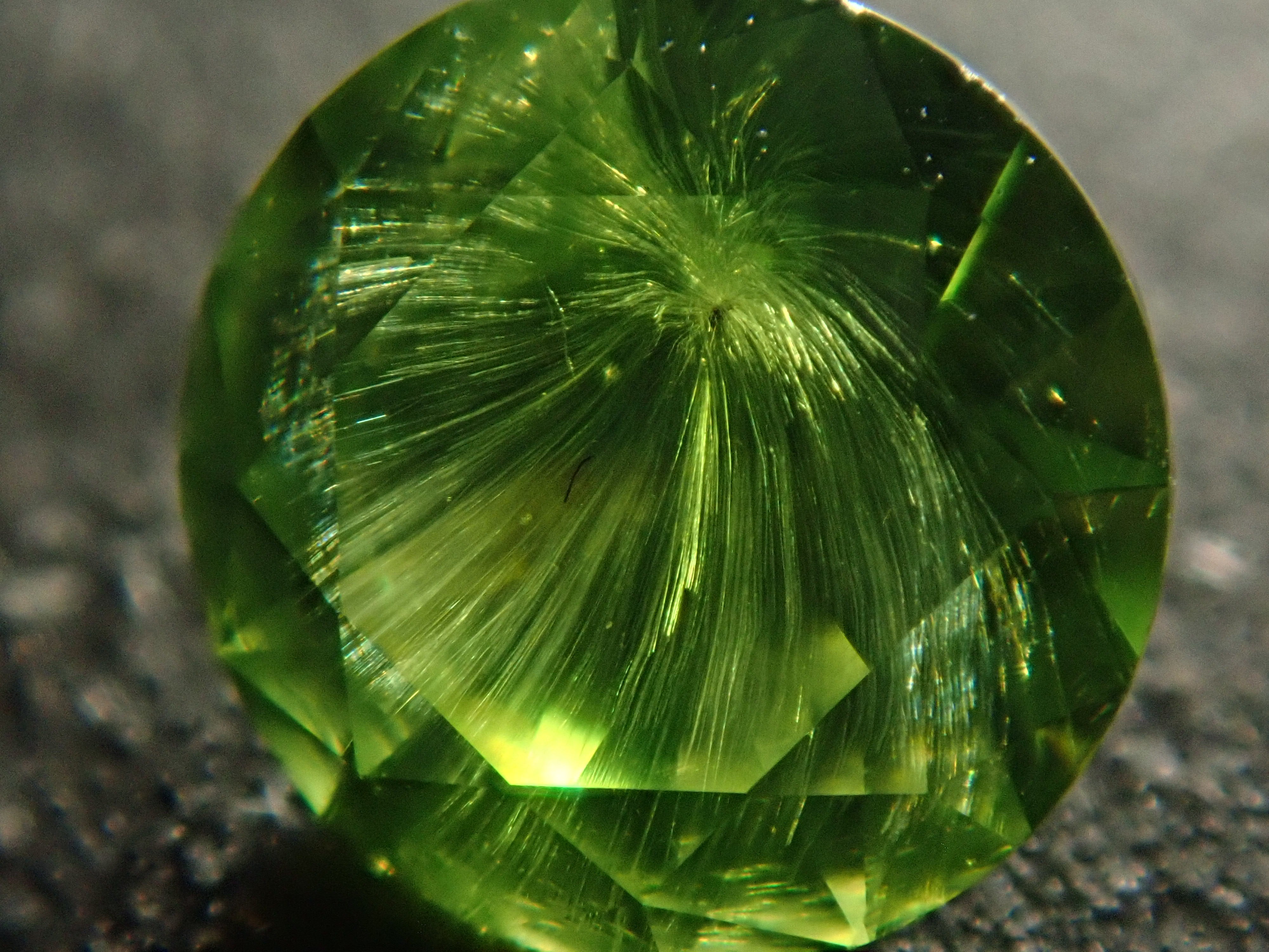石榴石具有強烈的光色散和強烈的閃光。其中,這顆綠色的「濃綠榴石」是一種特別美麗且稀有的石榴石。這種類型稱為“馬尾”,內含物看起來像馬尾巴。馬尾的存在或不存在已透過顯微鏡檢查來確認。這是來自俄羅斯的稀有產品。這是產自俄羅斯的濃綠榴石,在這裡您可以充分享受木賊的魅力。圓形切割 5.2 毫米。
