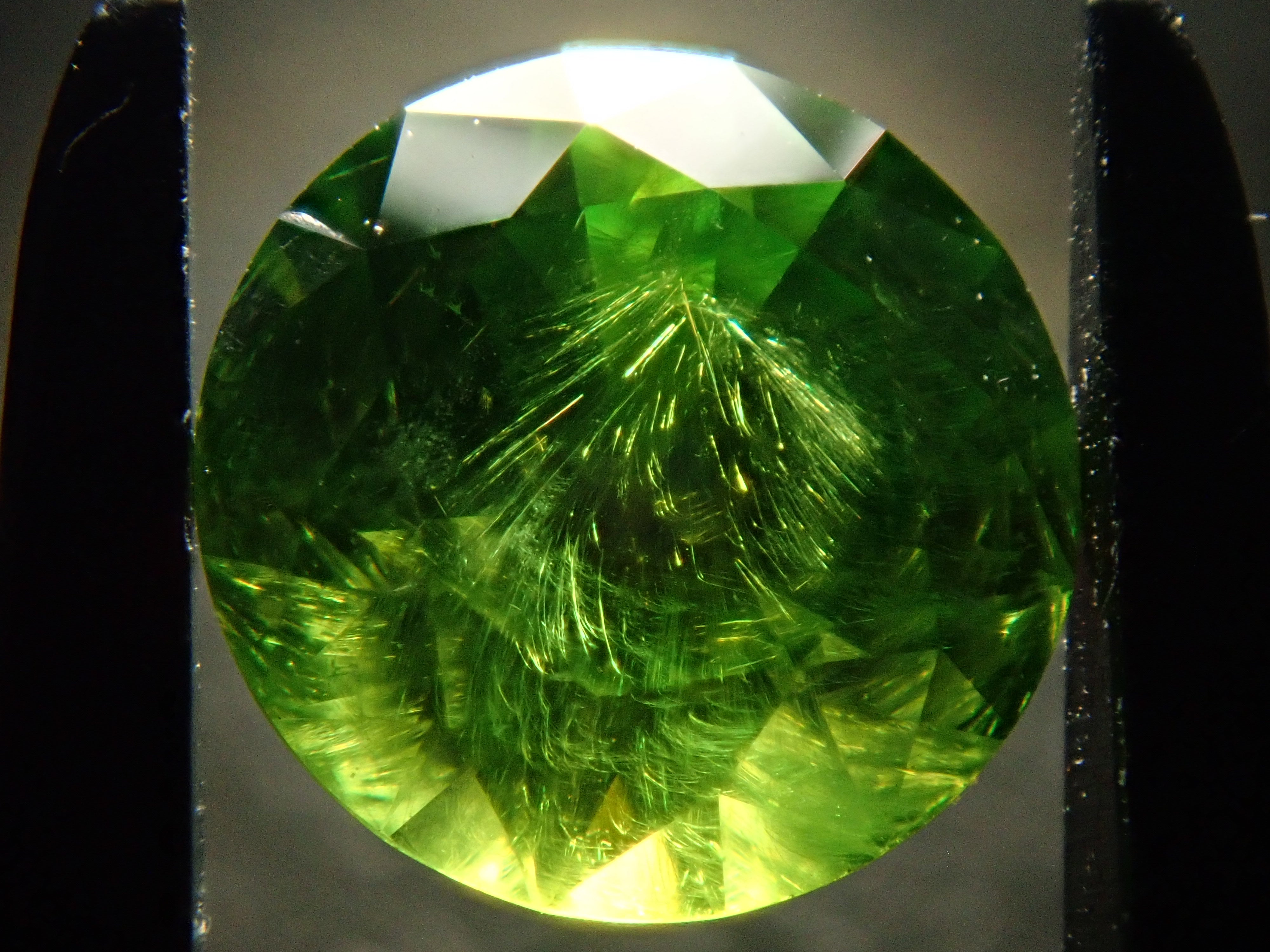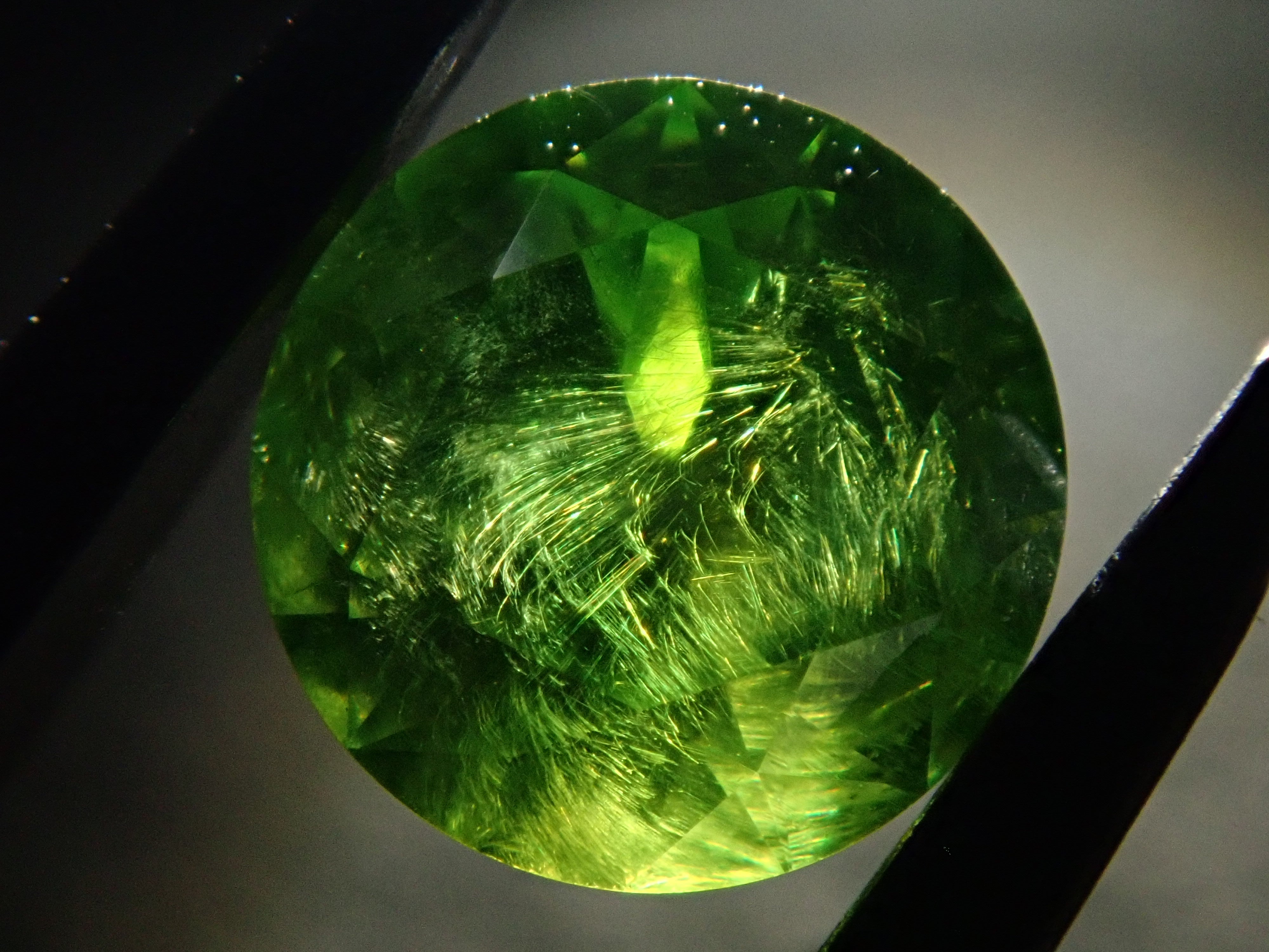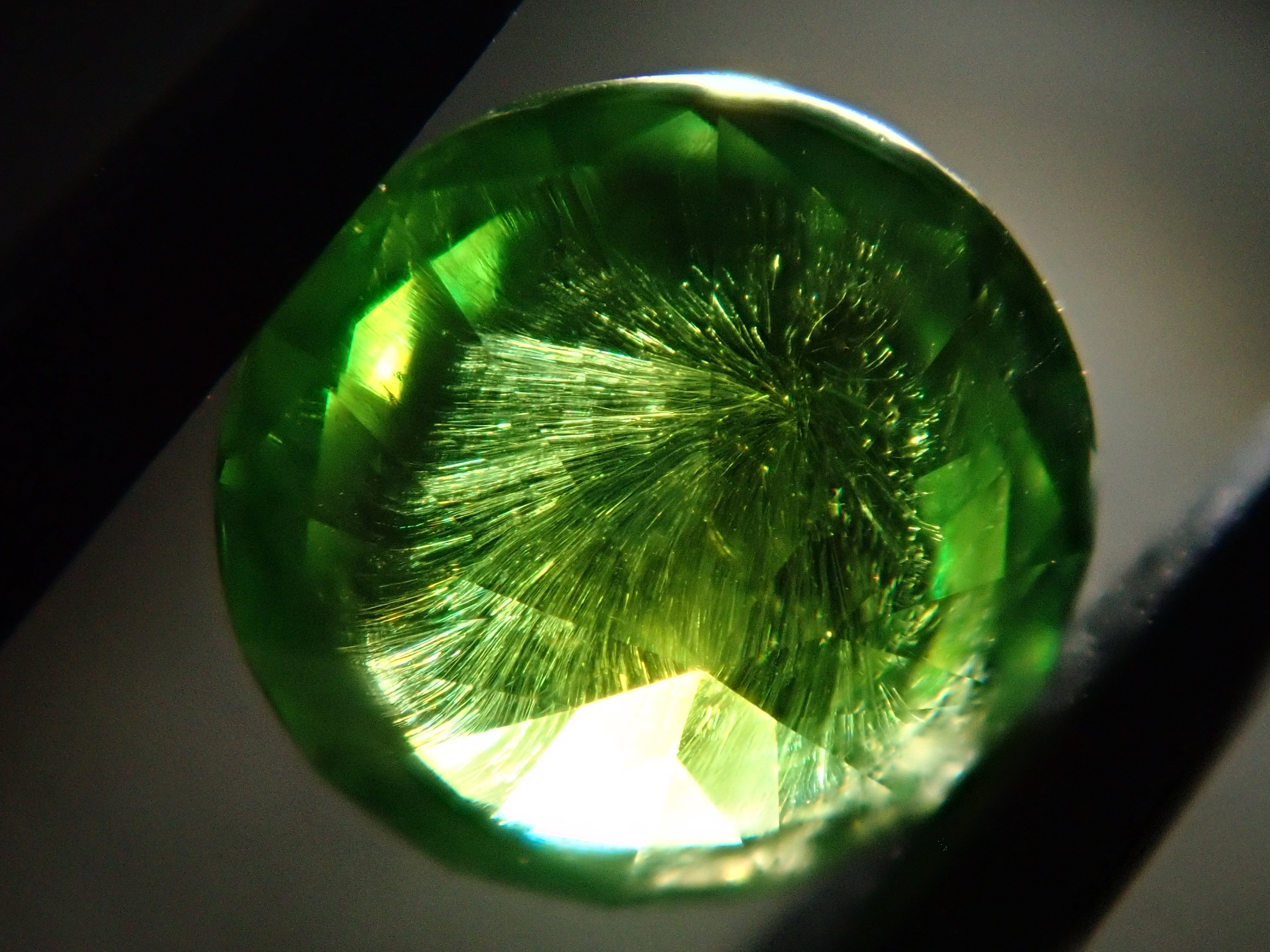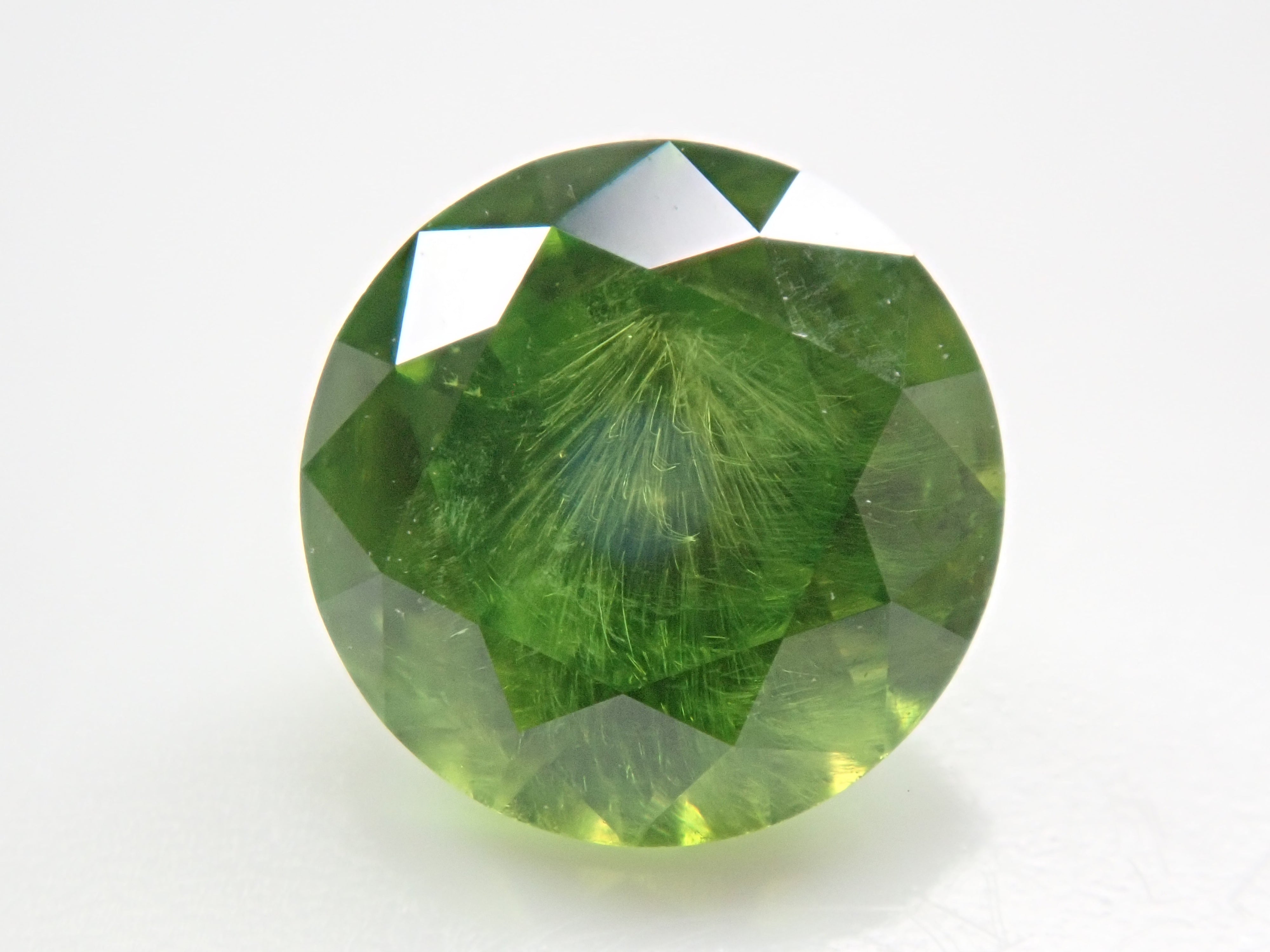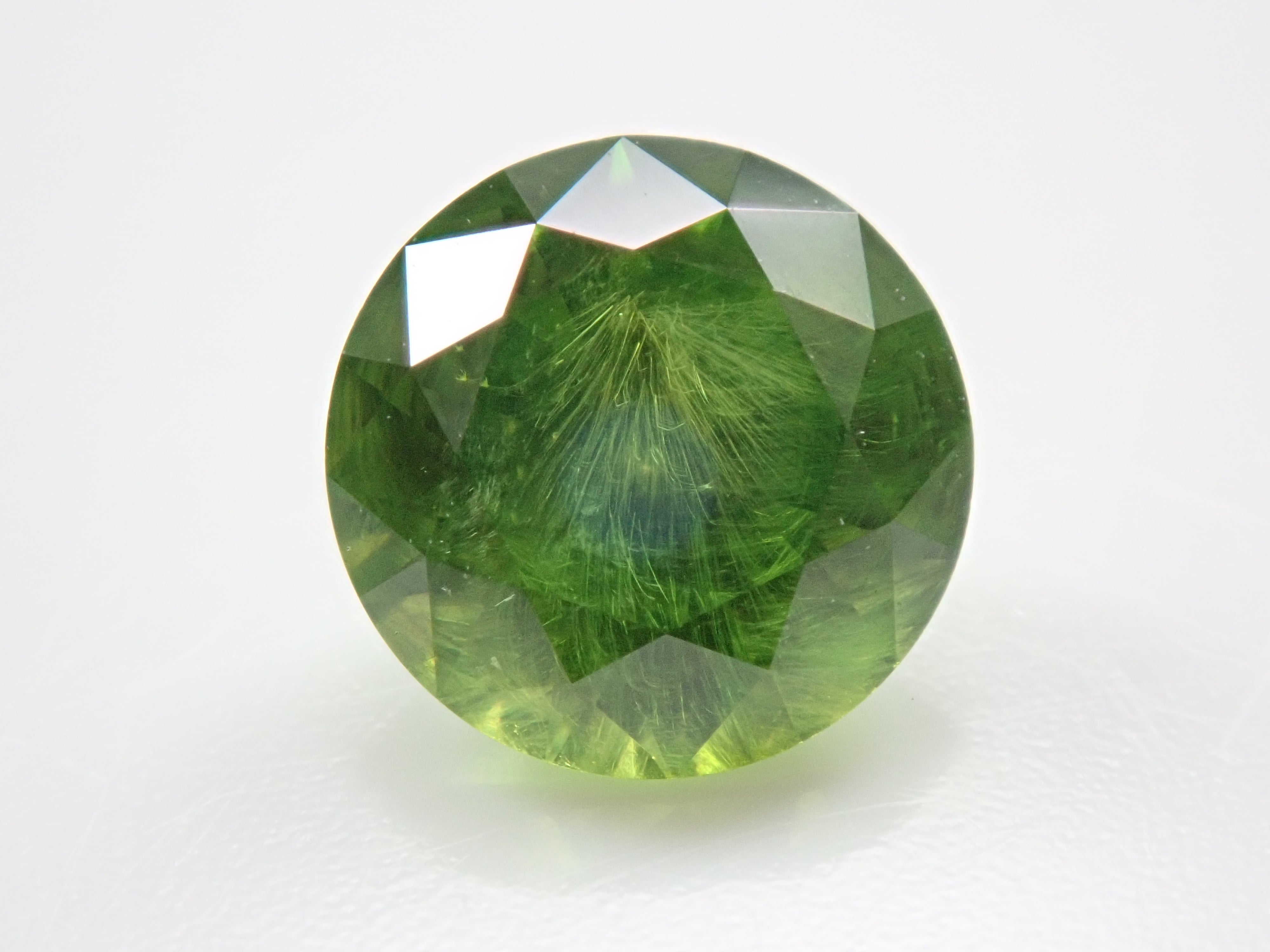 石榴石具有強烈的光色散和強烈的閃光。其中,這顆綠色的「濃綠榴石」是一種特別美麗且稀有的石榴石。這種類型稱為“馬尾”,內含物看起來像馬尾。馬尾的存在或不存在已透過顯微鏡檢查來確認。這是來自俄羅斯的稀有產品。這是產自俄羅斯的濃綠榴石,在這裡您可以充分享受木賊的魅力。圓形切割 5.8 毫米。