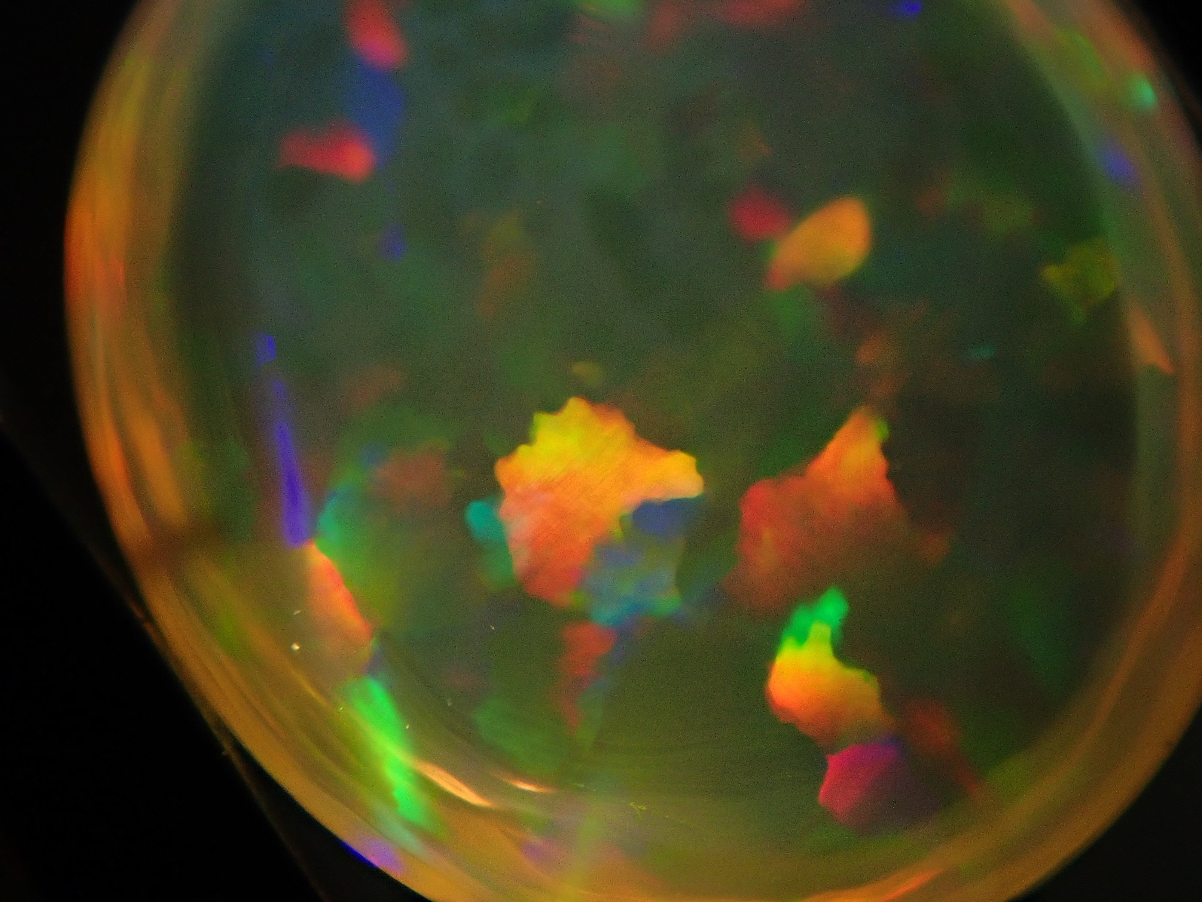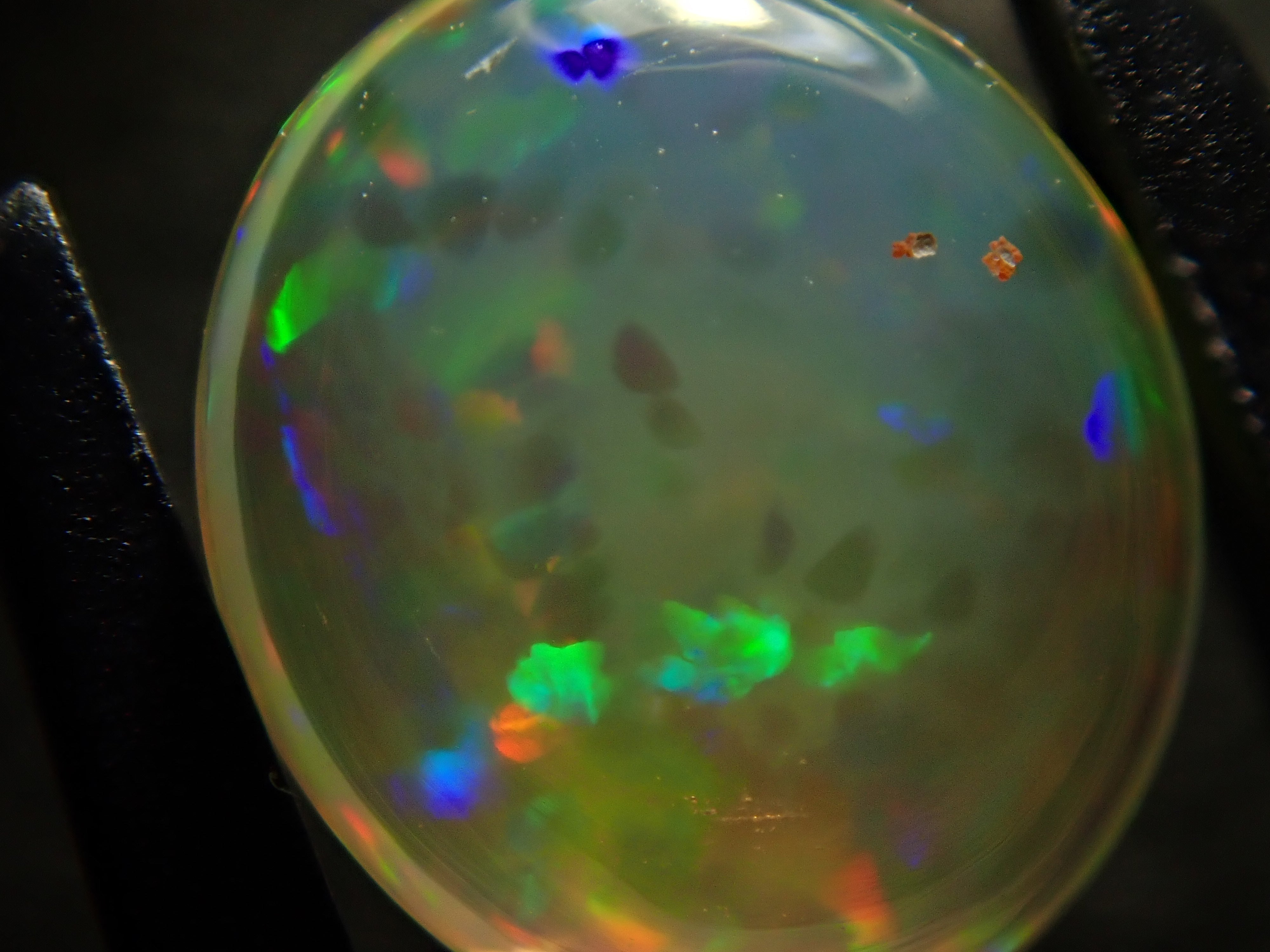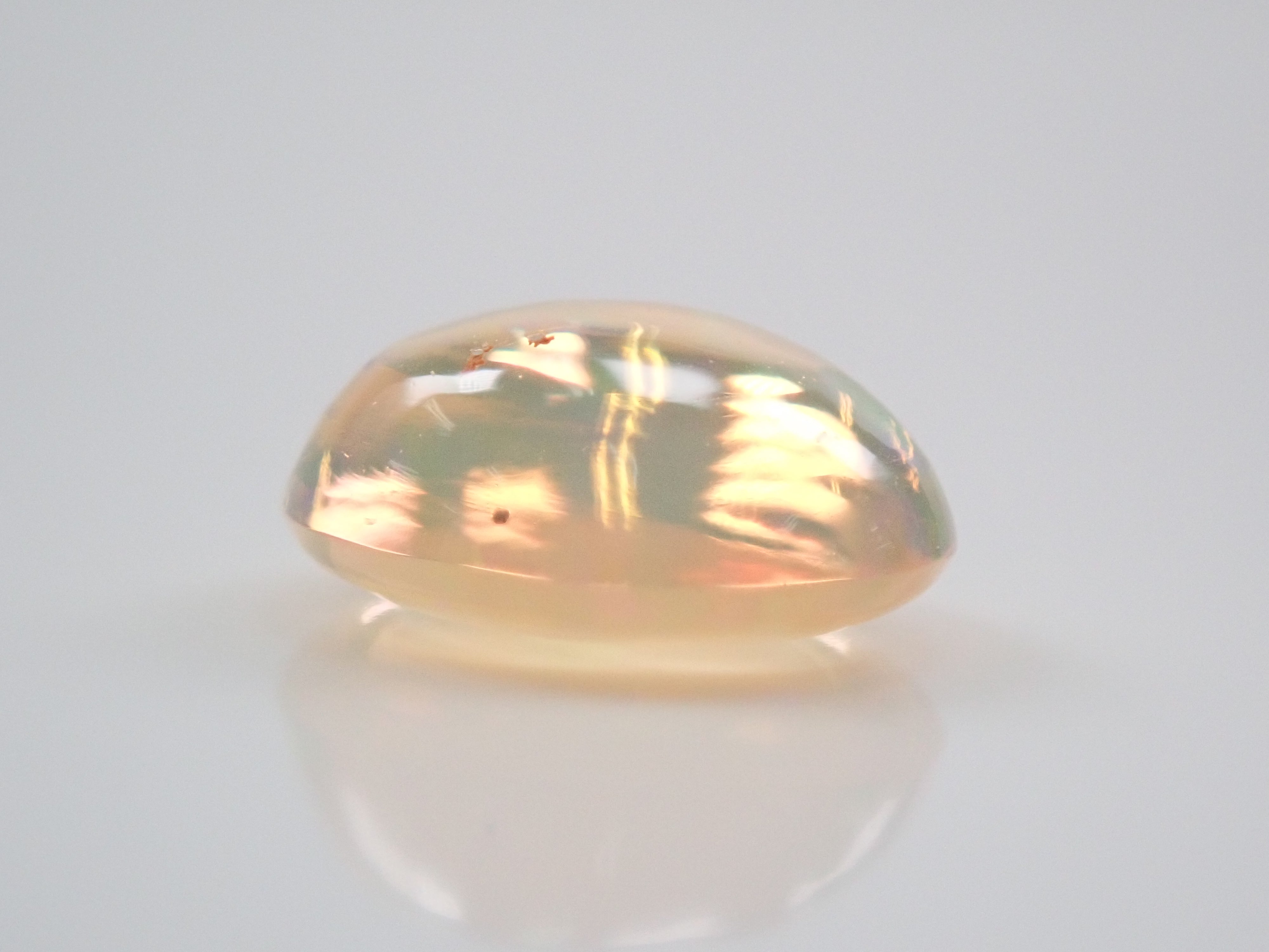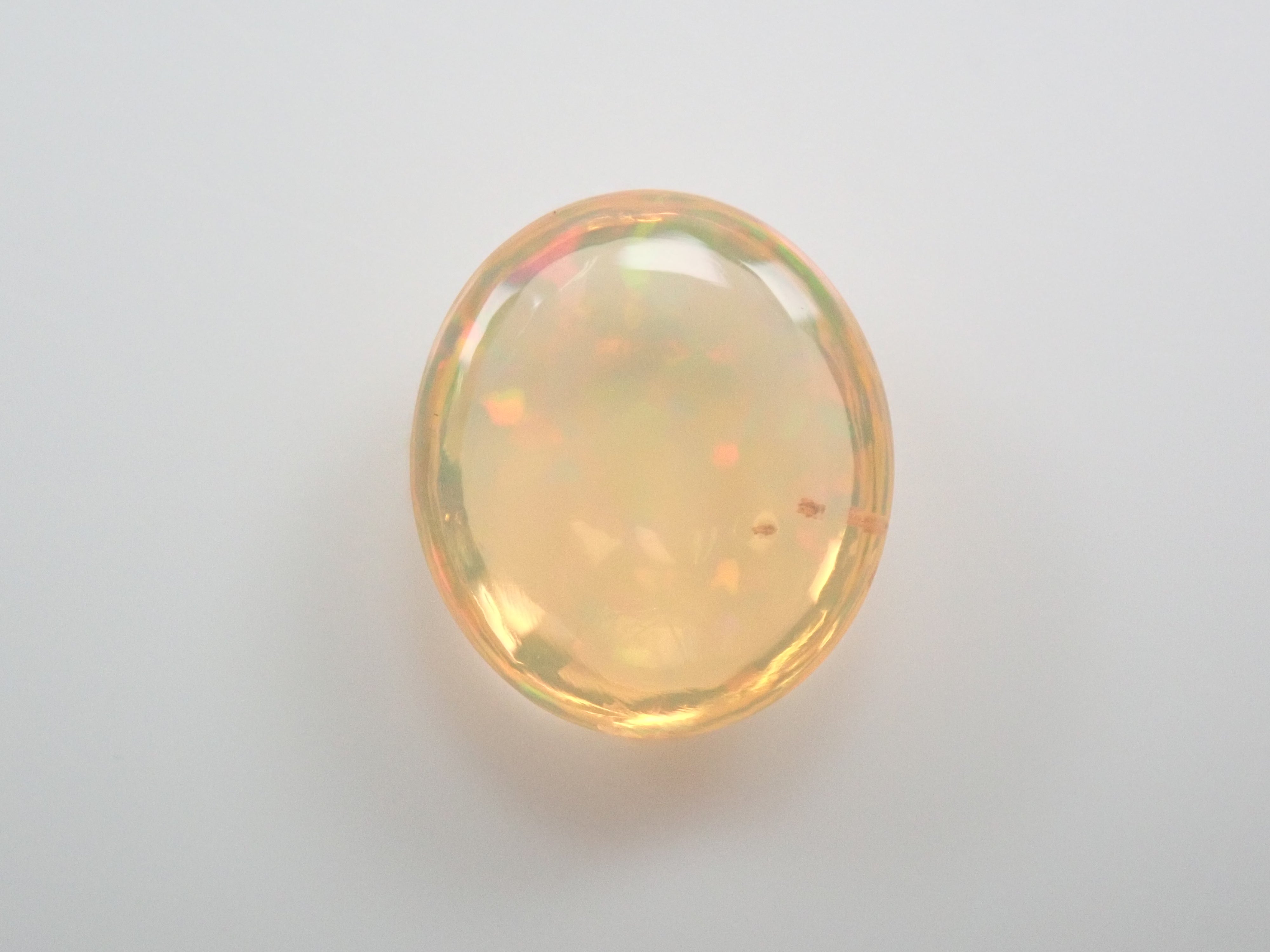 蛋白石自古羅馬時代以來就很受歡迎。火蛋白石是指底色從紅色到橘色的蛋白石,給人火的形象。照片是使用筆燈拍攝的。墨西哥火蛋白石 0.780 克拉裸石,附遊彩。