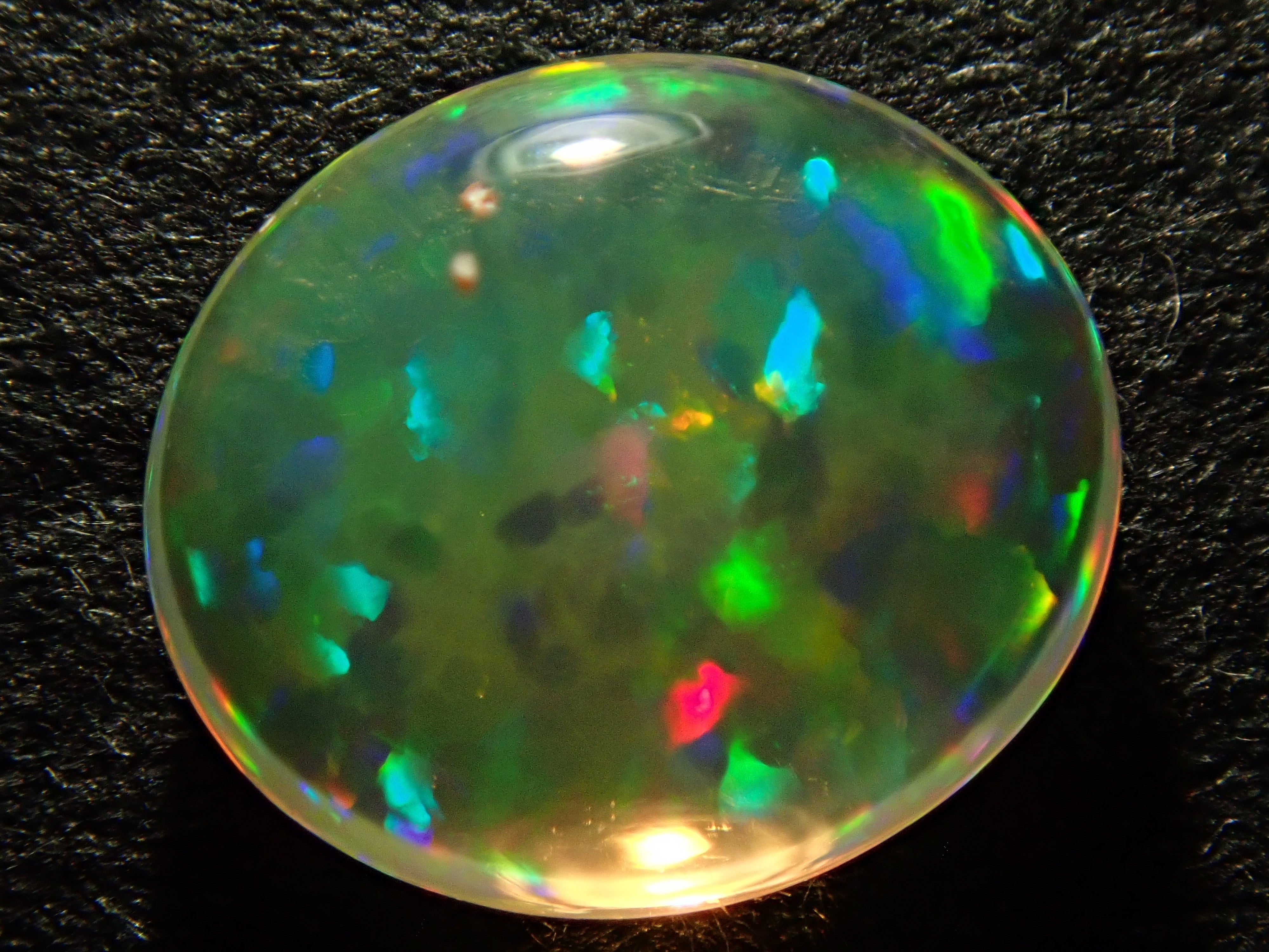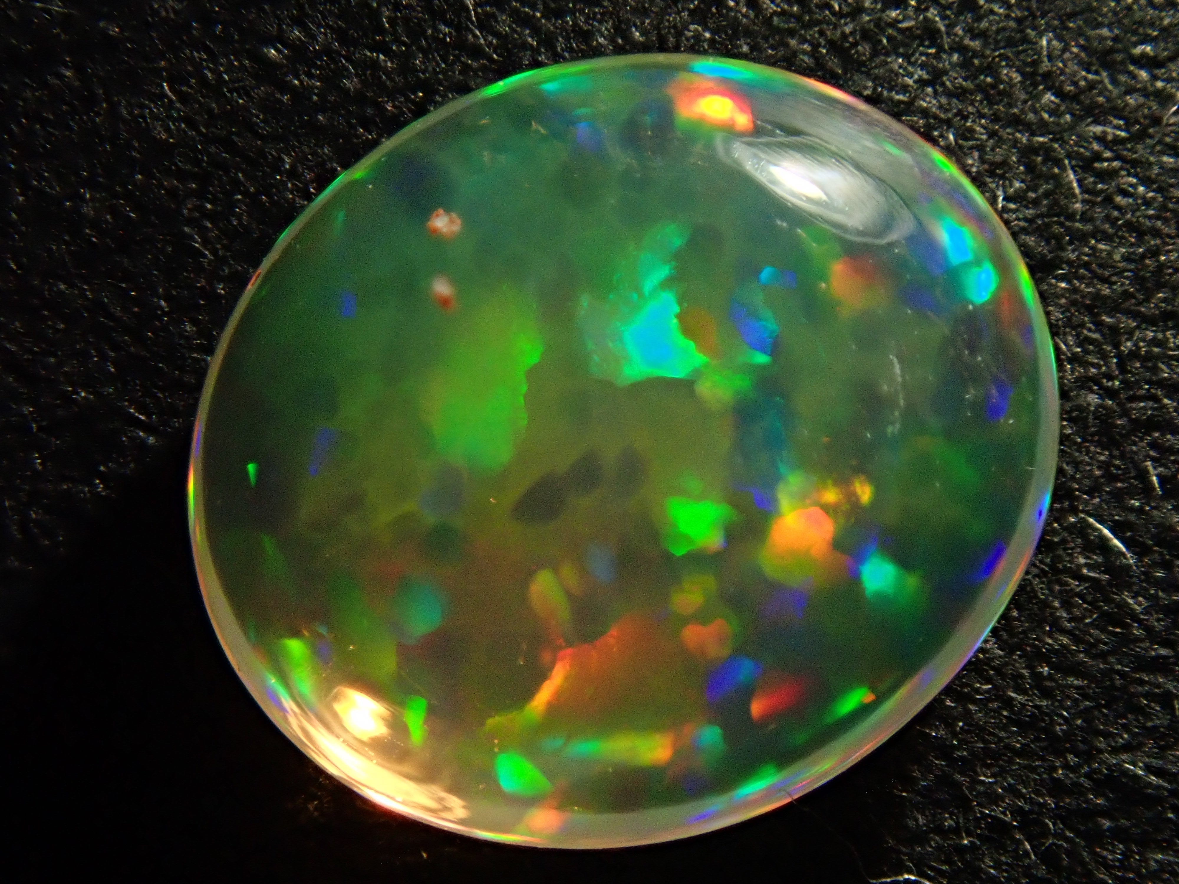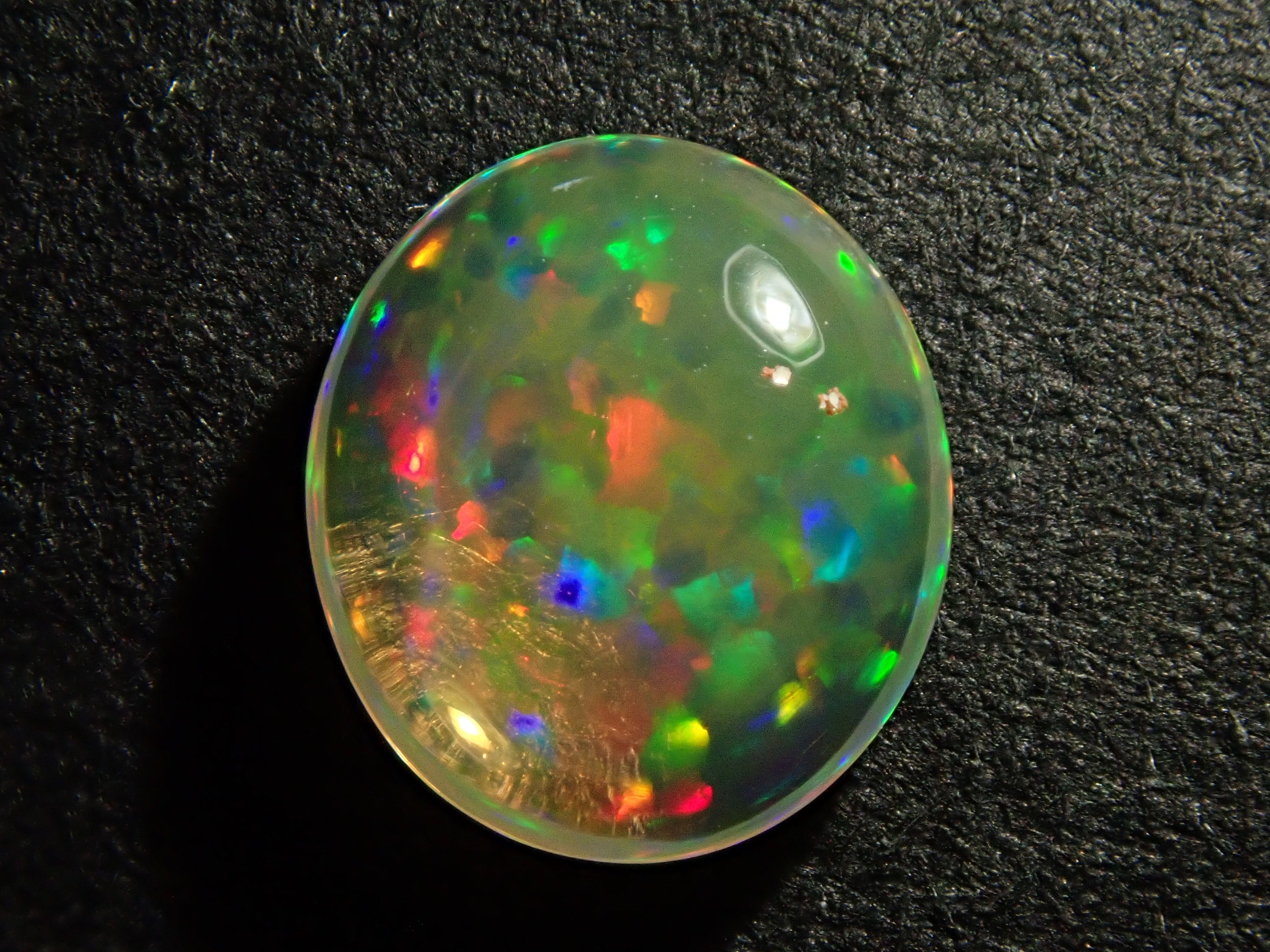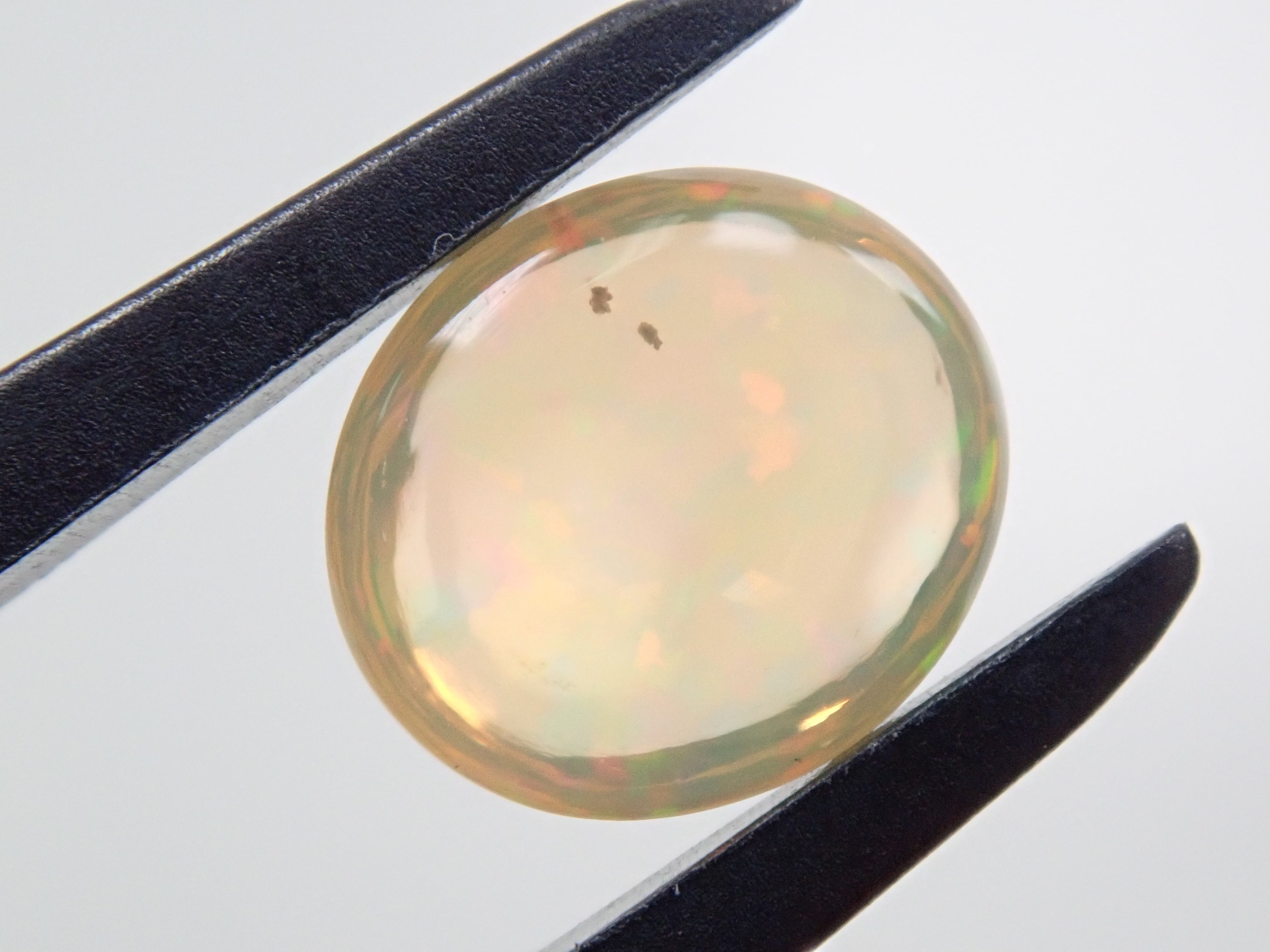 蛋白石自古羅馬時代以來就很受歡迎。火蛋白石是指底色從紅色到橘色的蛋白石,給人火的形象。照片是使用筆燈拍攝的。墨西哥火蛋白石 0.780 克拉裸石,附遊彩。