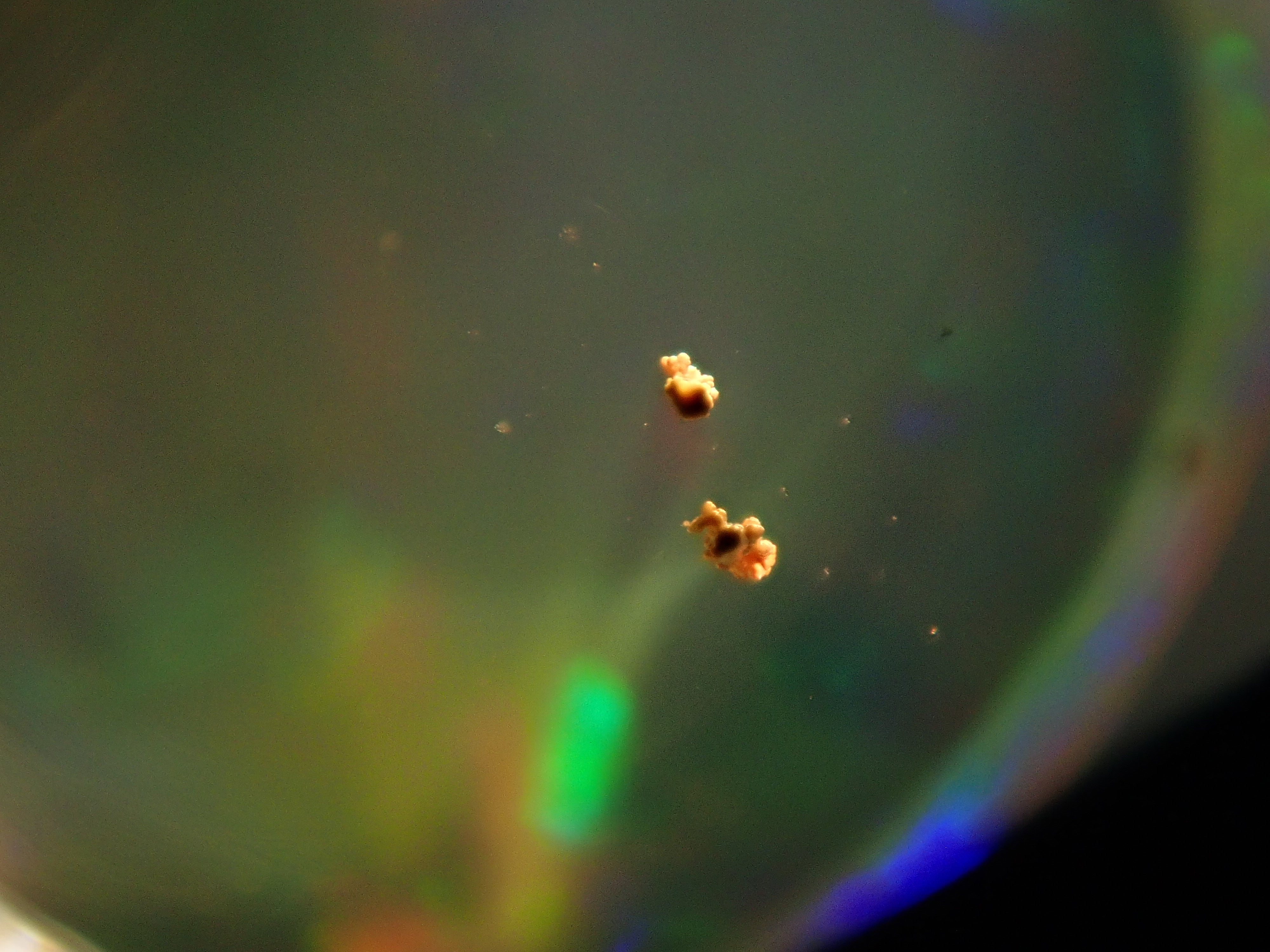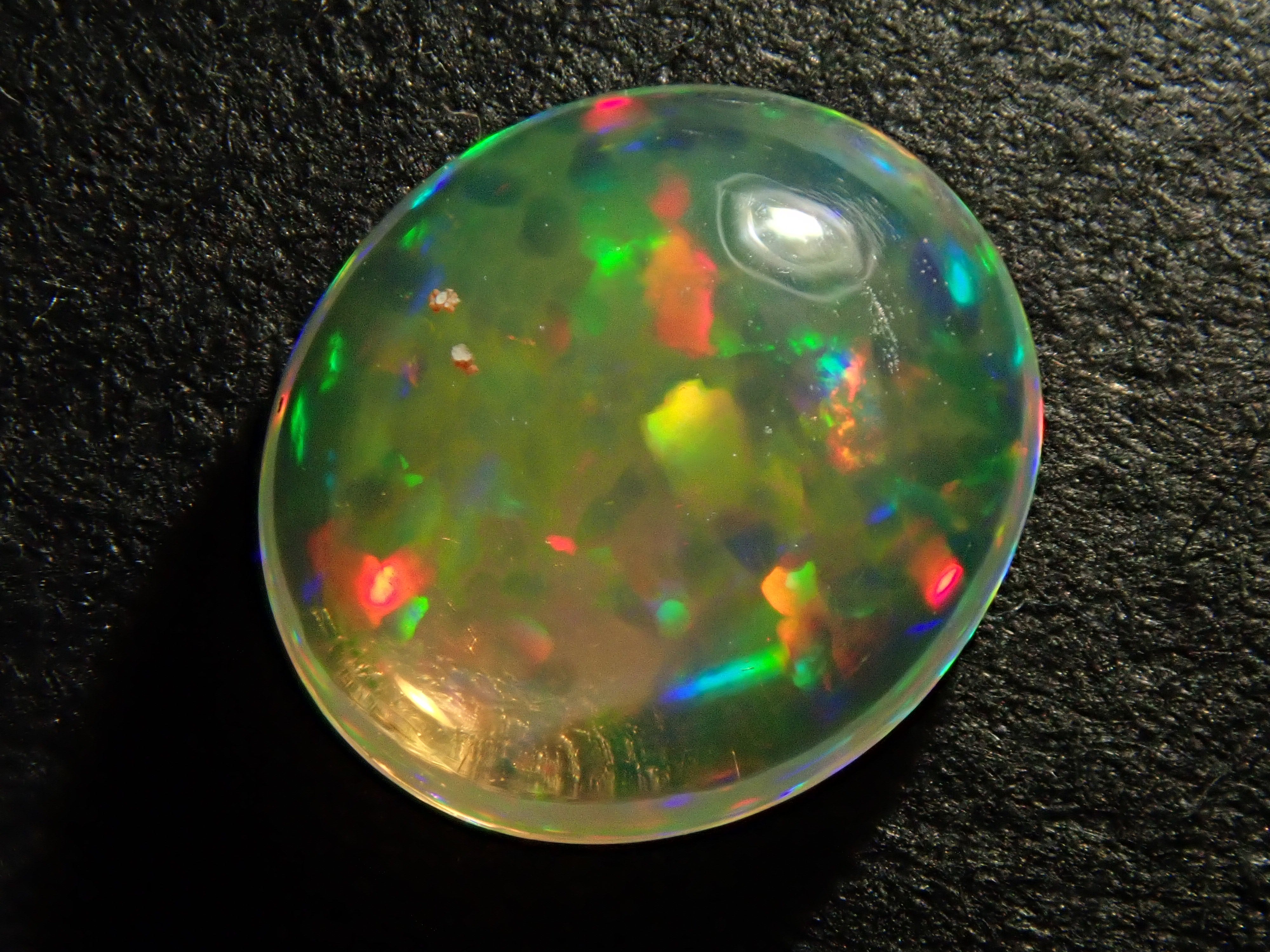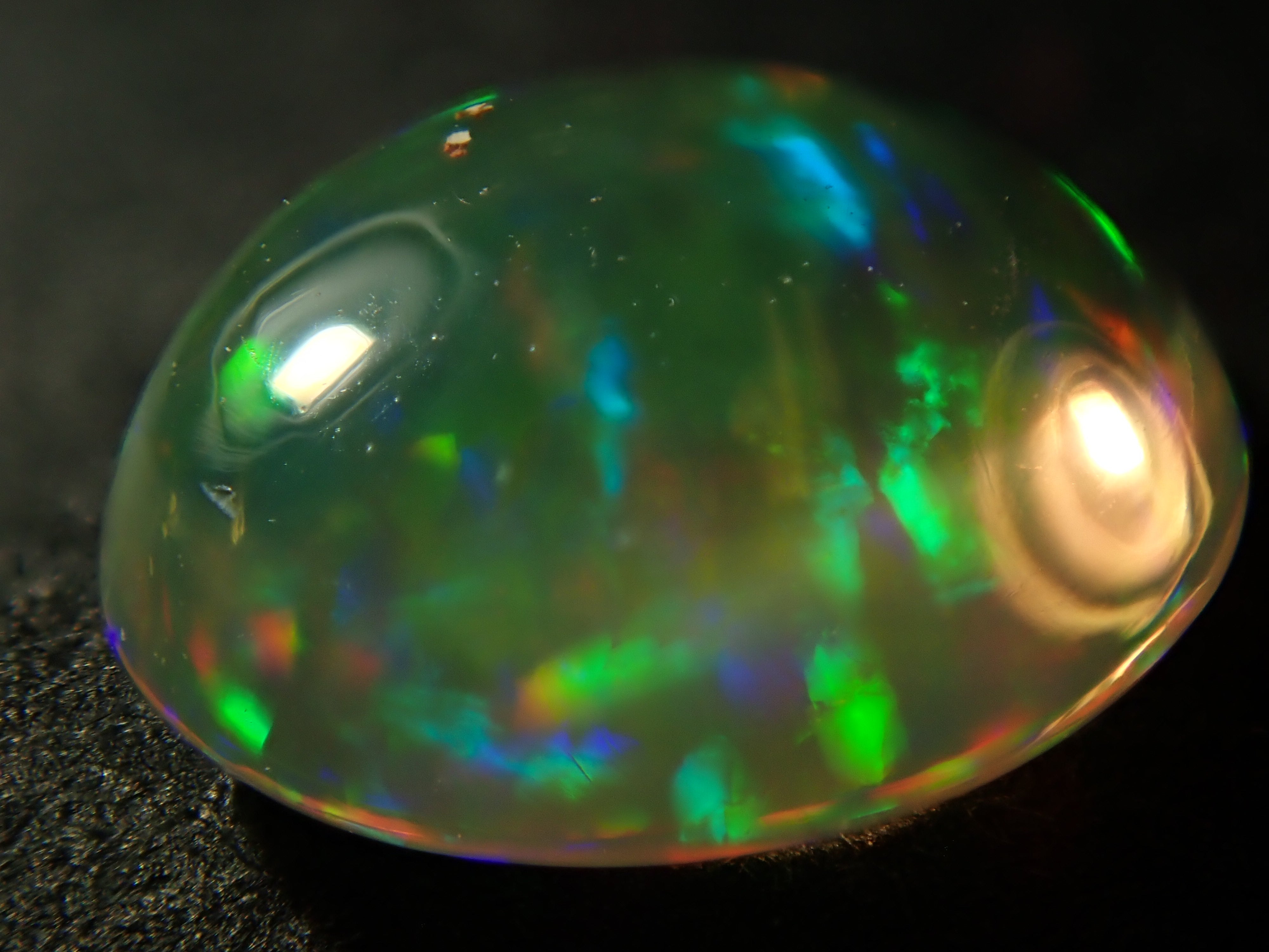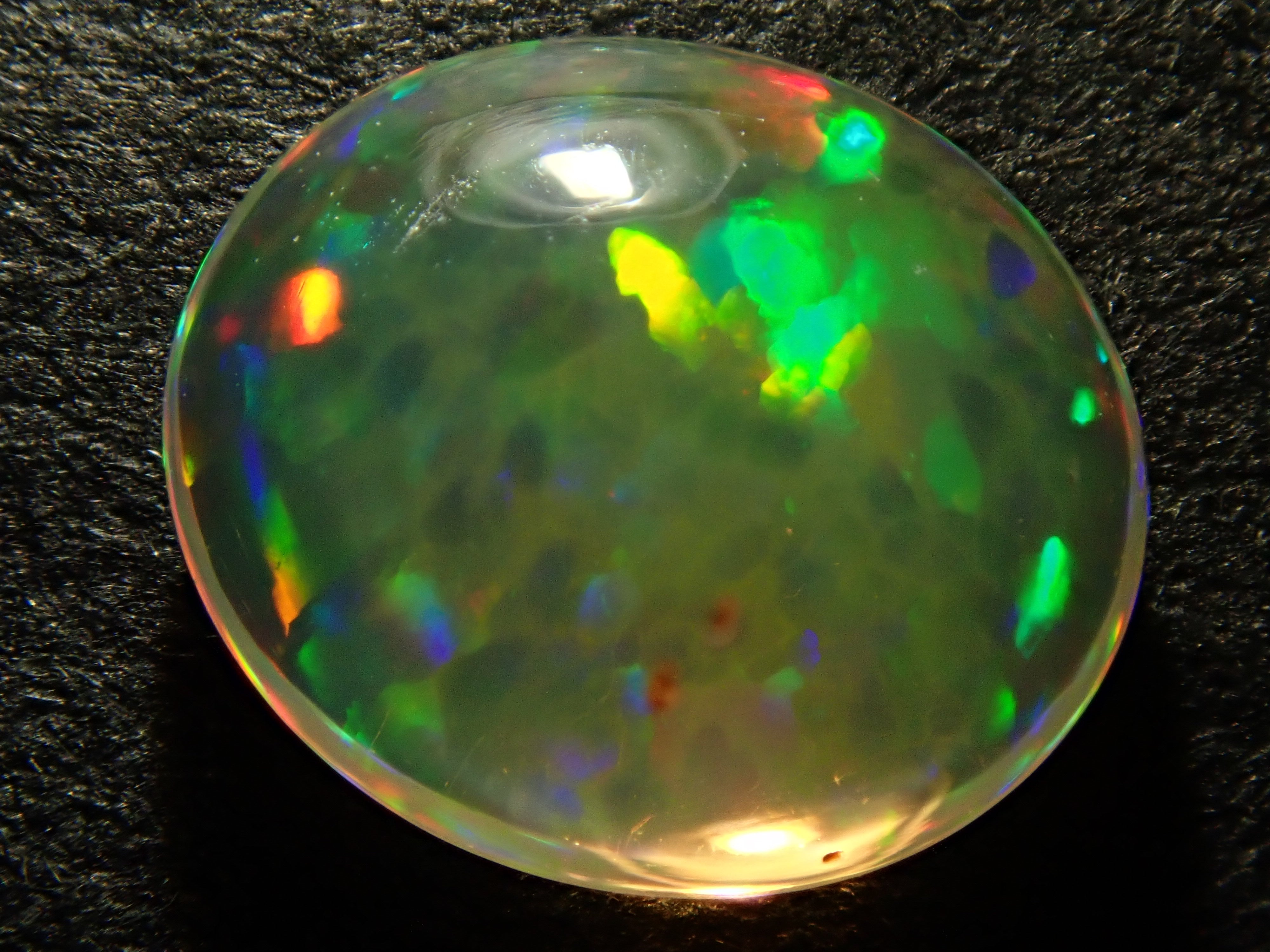 蛋白石自古羅馬時代以來就很受歡迎。火蛋白石是指底色從紅色到橘色的蛋白石,給人火的形象。照片是使用筆燈拍攝的。墨西哥火蛋白石 0.780 克拉裸石,附遊彩。