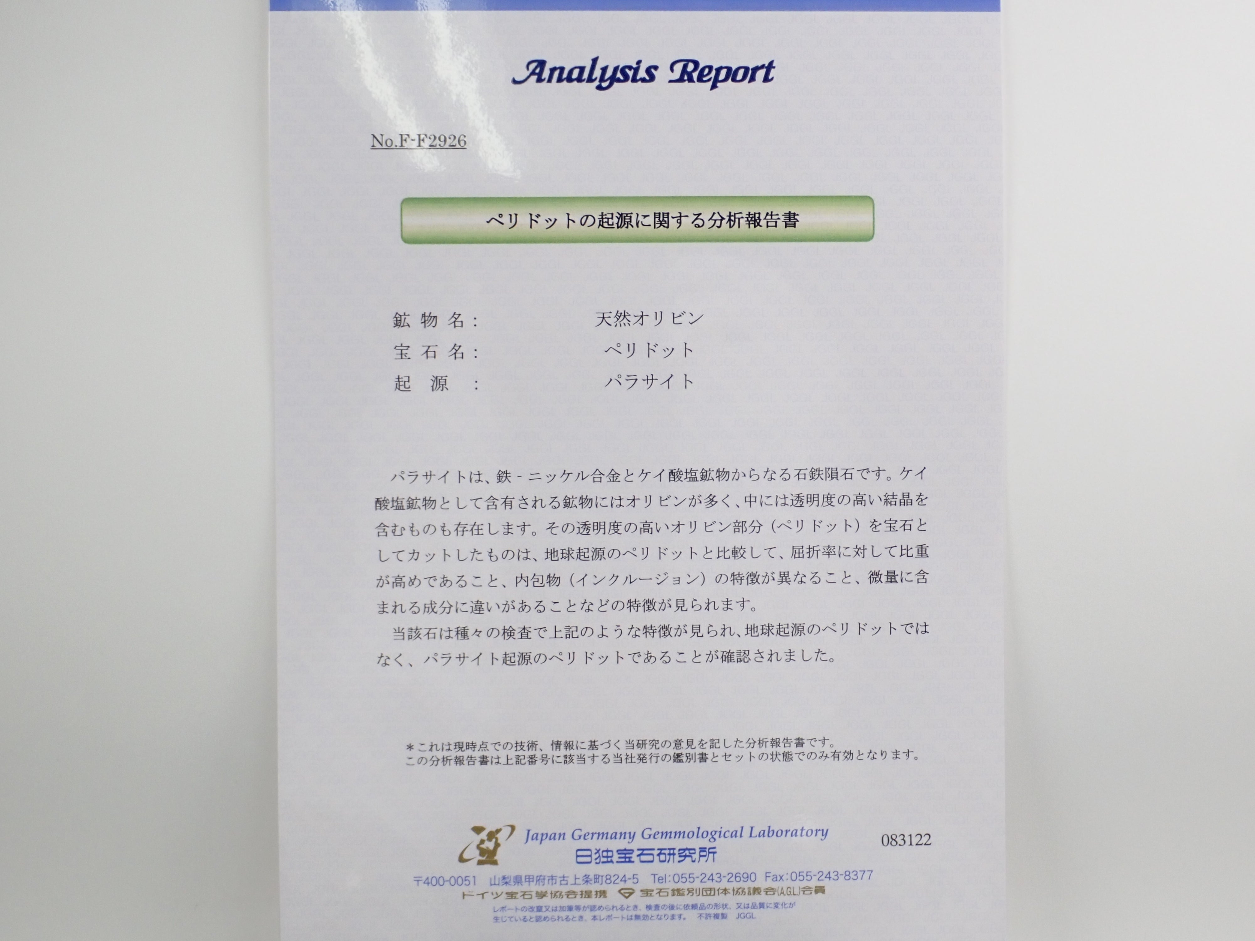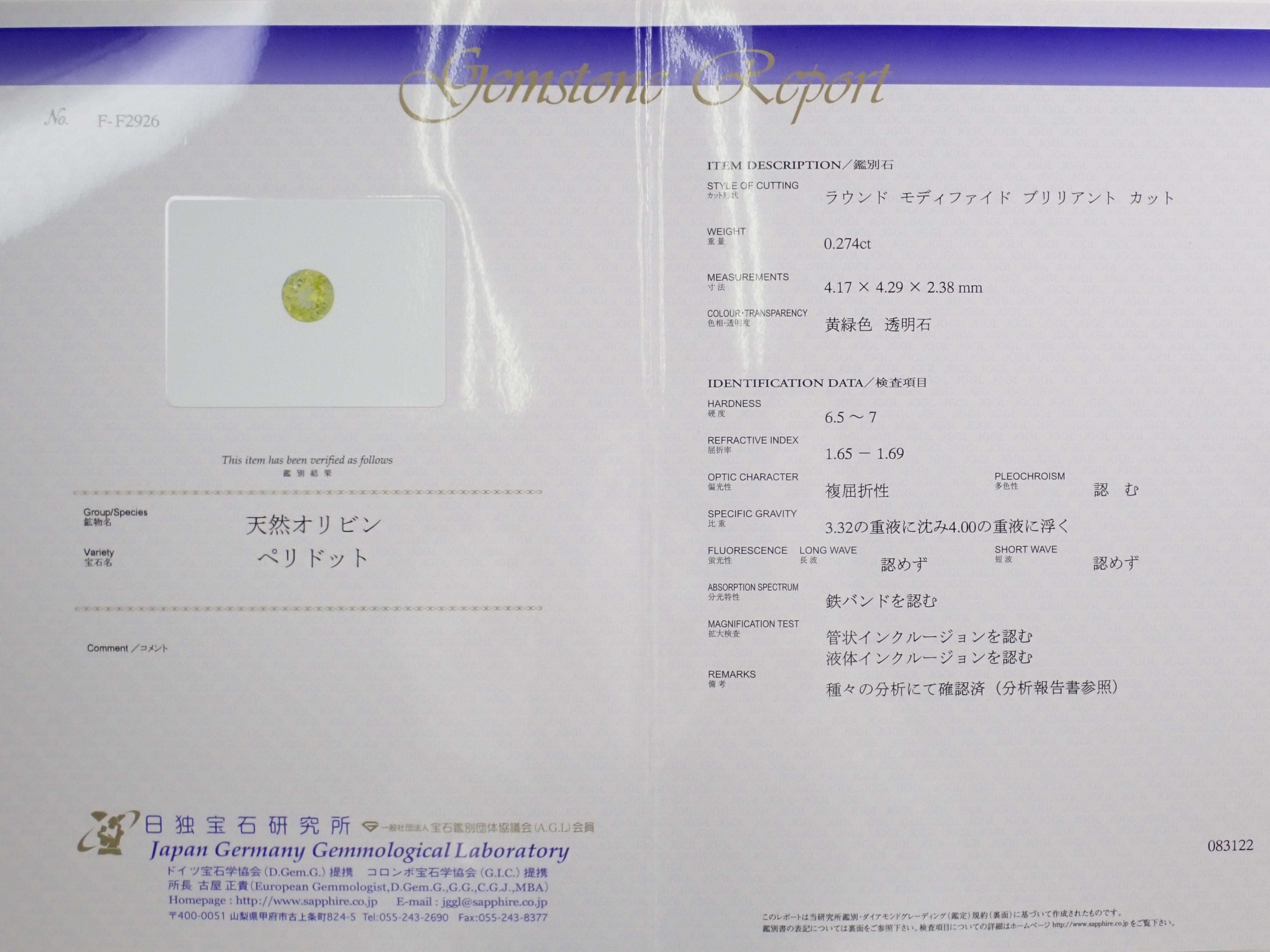 ・附件:鑑定書(日德寶石研究所)、盒子