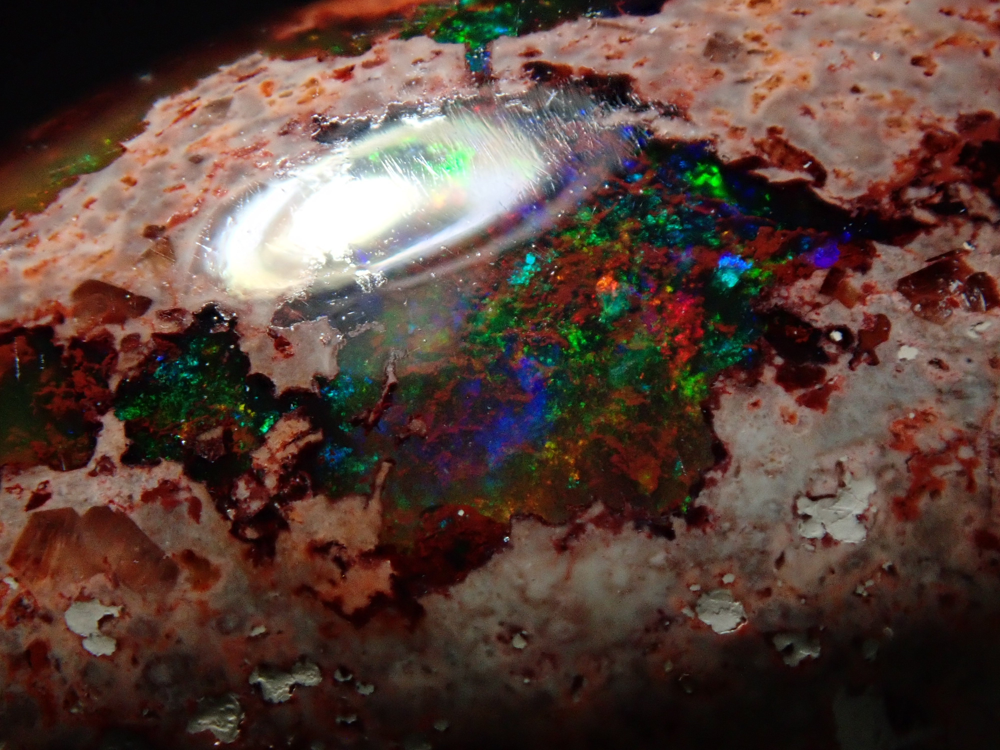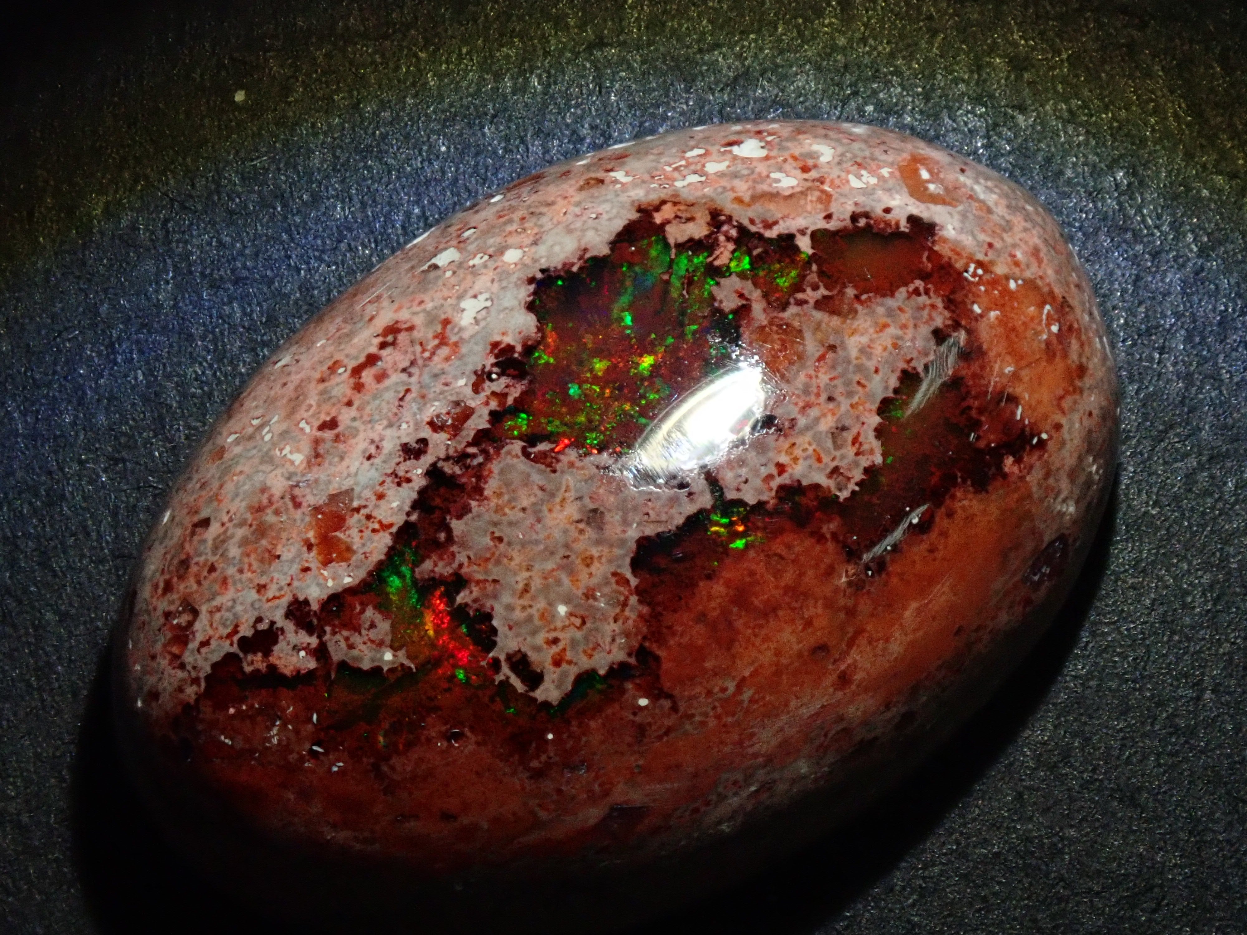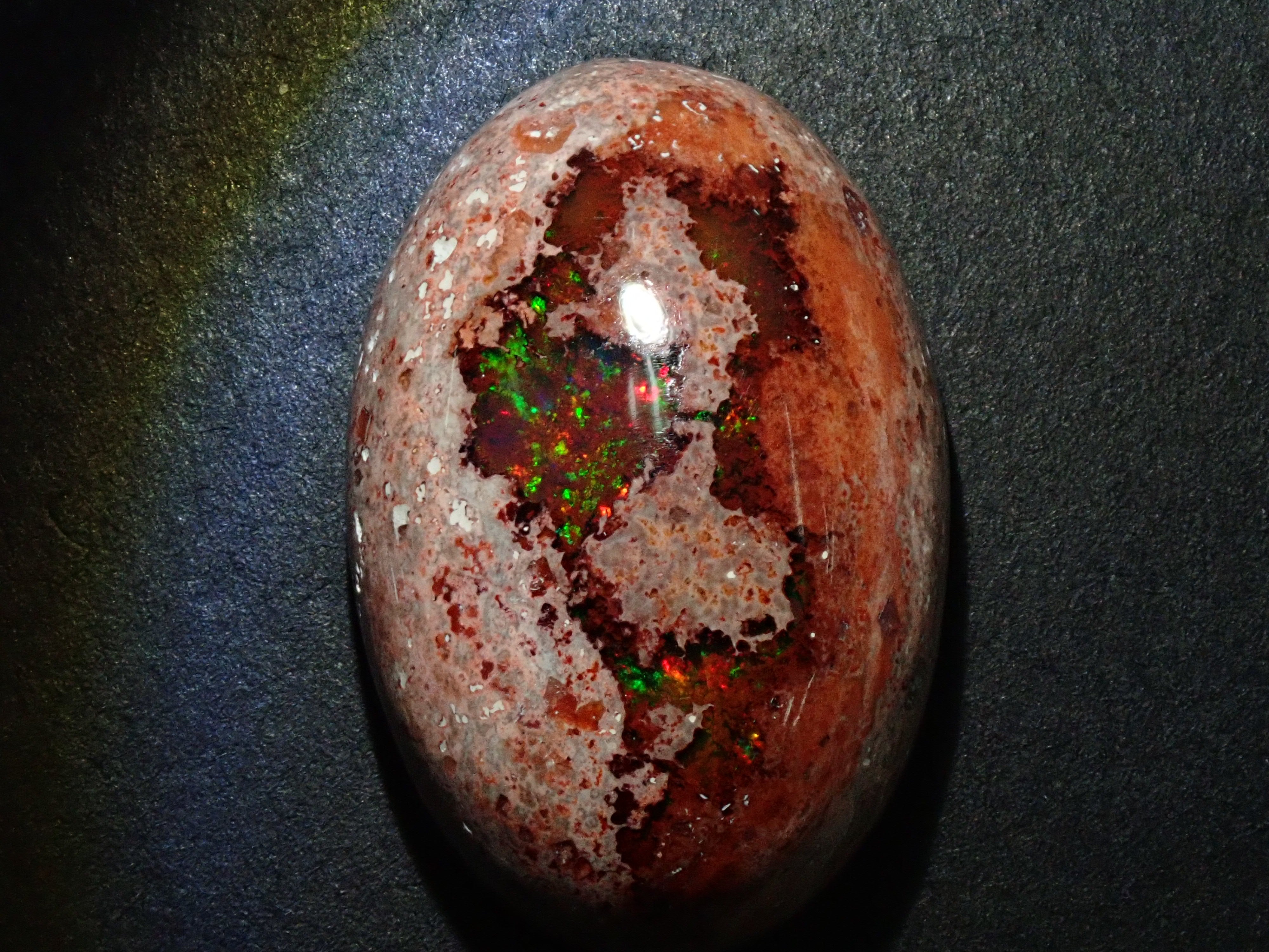 蛋白石是一種以彩虹般閃耀的色彩為特徵的寶石。蛋白石種類繁多,但最受收藏家青睞的是坎德拉蛋白石。它給人一種地球活力的印象,擁有眾多愛好者,即使是散石也可以欣賞。坎德拉蛋白石本身就是一種富含坎德拉的寶石。照片是用筆形電筒拍攝的。