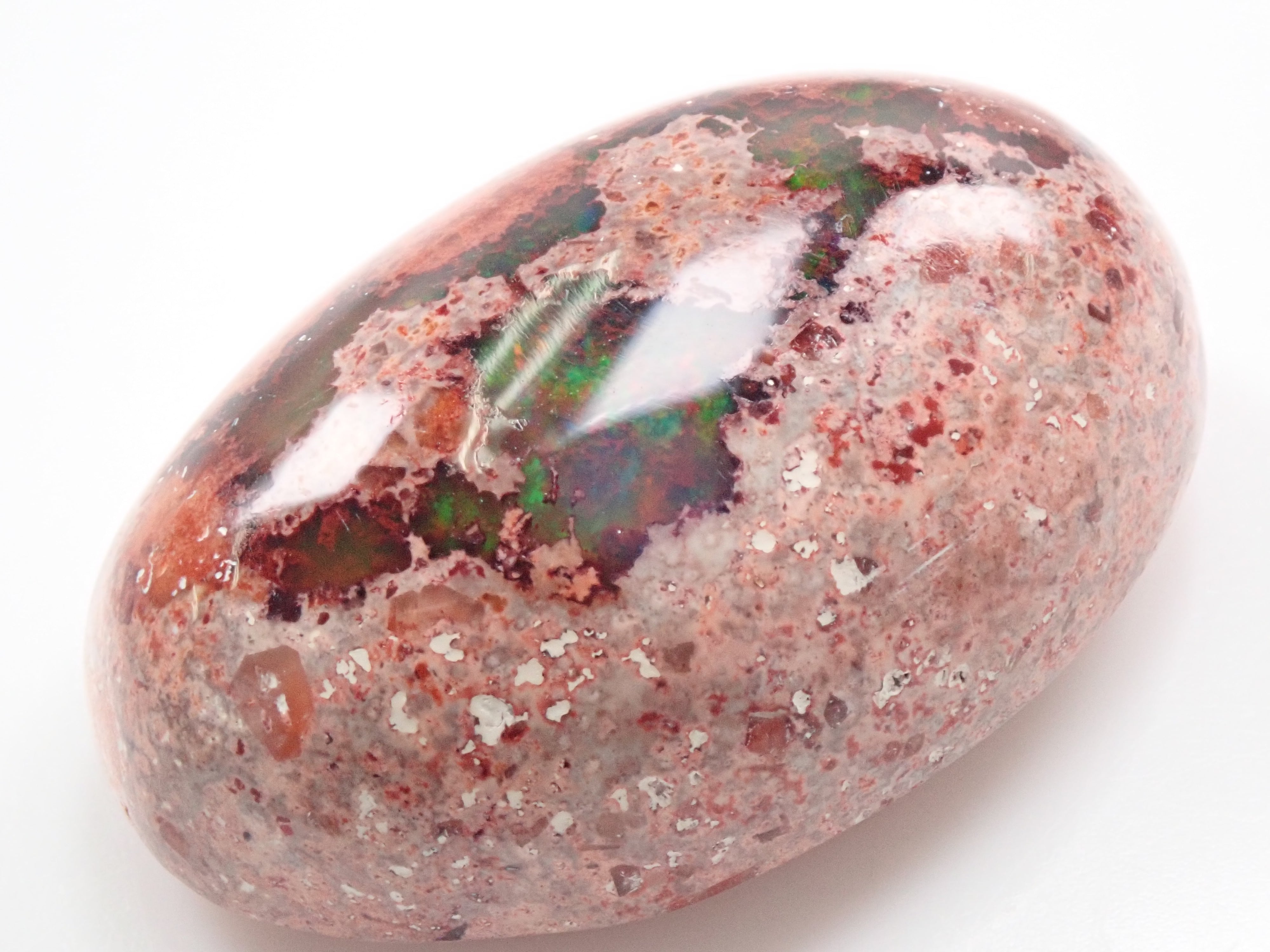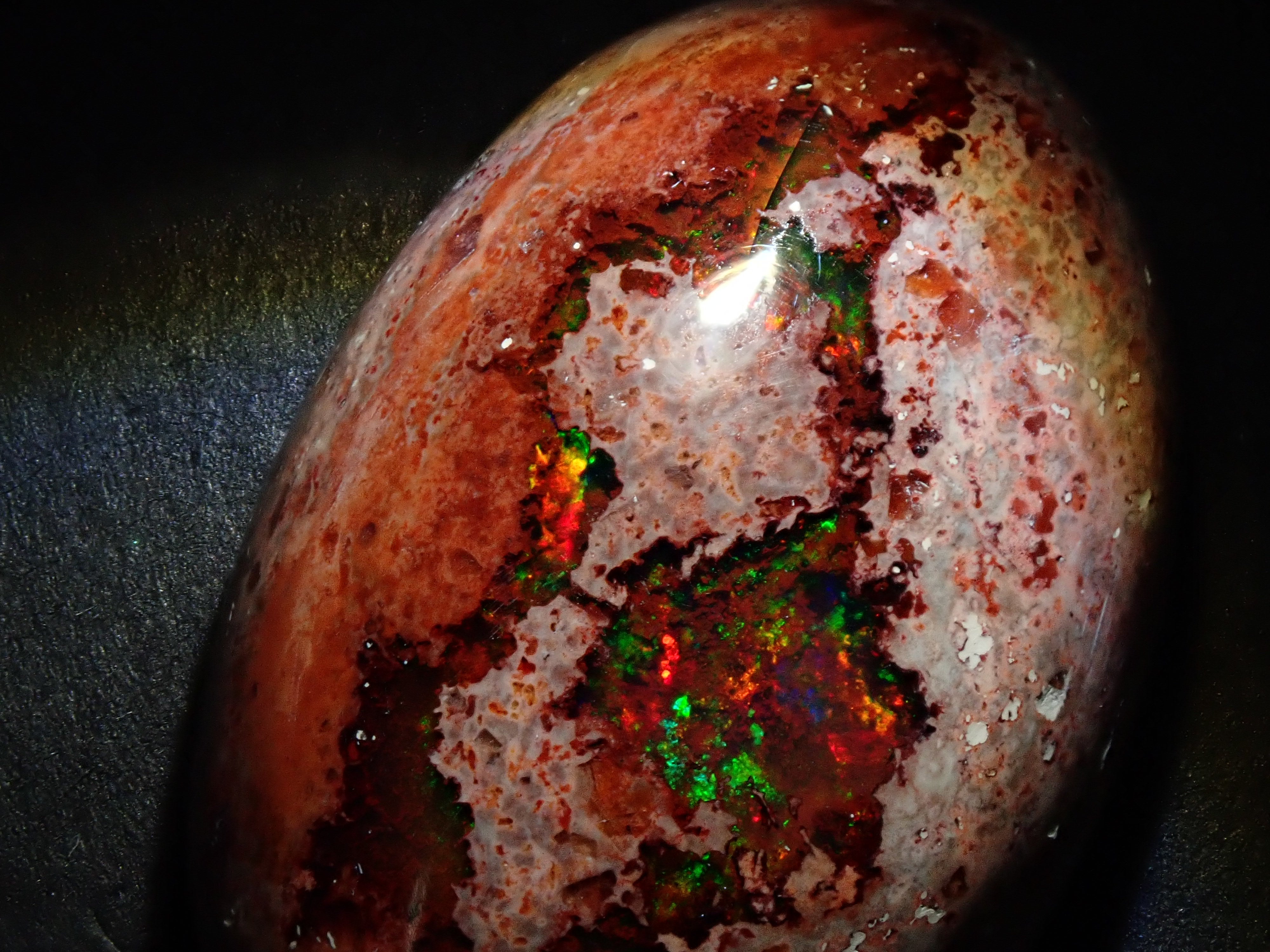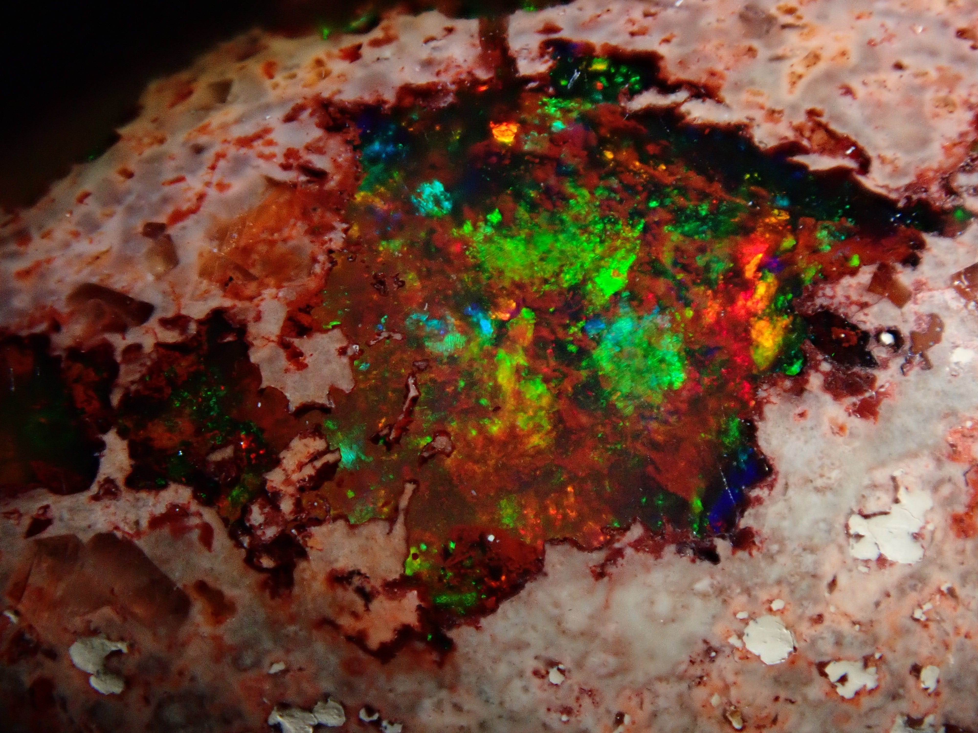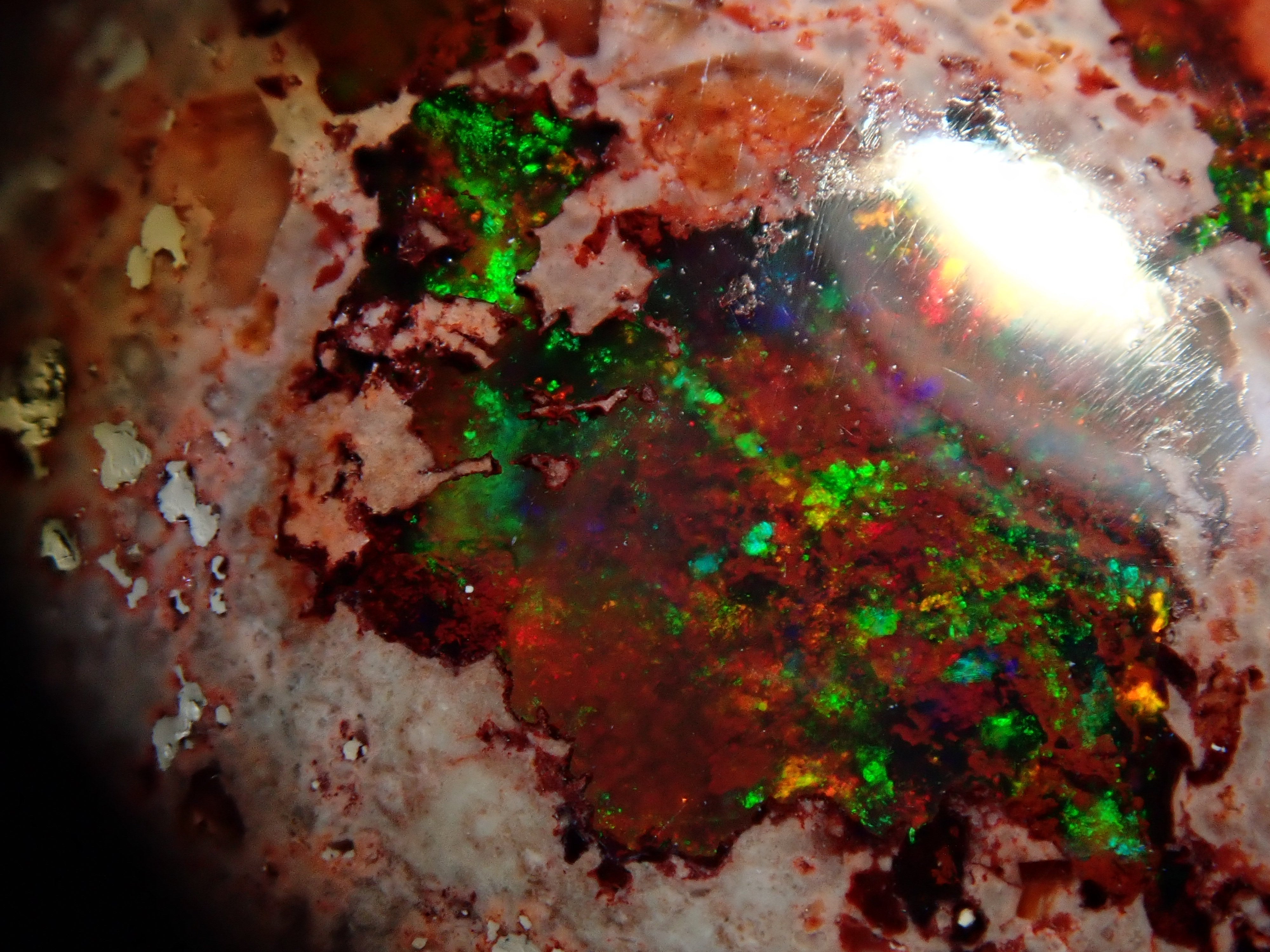 蛋白石是一種以彩虹般閃耀的色彩為特徵的寶石。蛋白石種類繁多,但最受收藏家青睞的是坎德拉蛋白石。它給人一種地球活力的印象,擁有眾多愛好者,即使是散石也可以欣賞。坎德拉蛋白石本身就是一種富含坎德拉的寶石。照片是用筆形電筒拍攝的。